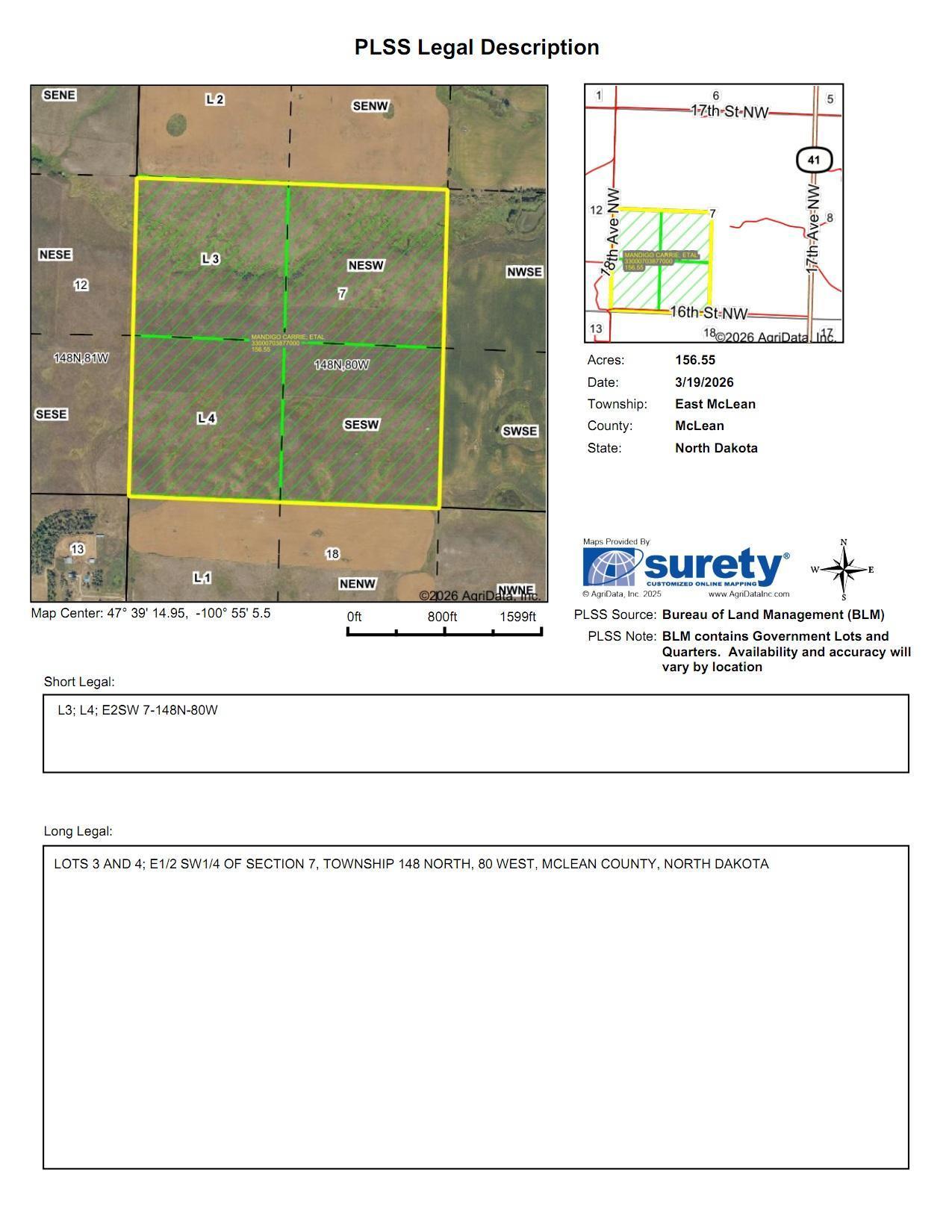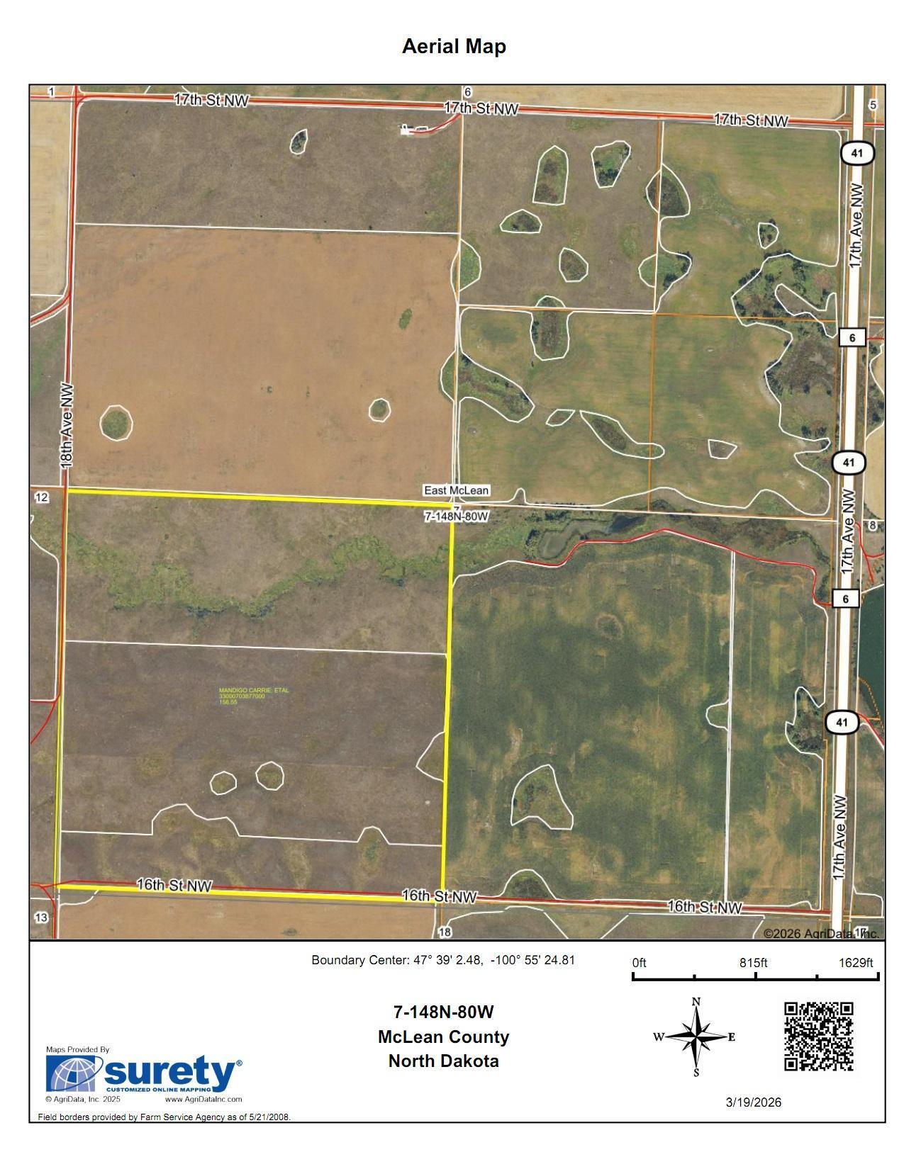 Parcel 3 lies just east of Parcel 2 and consists of 156.4+/- acres. It carries a Soil Productivity Index of 61.2 and an NCCPI of 41.4. This tract features a nice draw running east to west toward the north end, creating a great travel corridor for wildlife. The topography is slightly rolling to level, making it well suited for pasture, hayland, or possible conversion to tillable acres if desired. This is a very versatile tract with both agricultural and recreational upside.