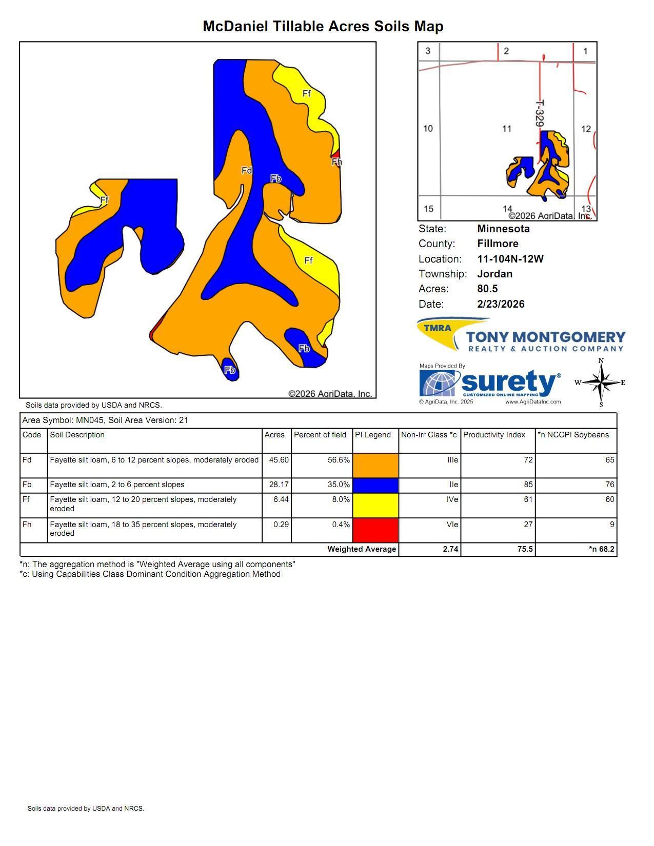 Parcel No. 1- 83.16+/- Surveyed Acres. Jordan Twp, Section 11.This is a great opportunity to purchase good productive tillable ground in Jordan Twp! This parcel contains 83.16 certified surveyed acres with approximately 80.5 acres of cropland. The Fayette soils are supported with excellent clay based for moisture retention. Two fields make up this attractive parcel. This cropland has been run by one family since the 1970’s. This auction surely will give a great opportunity for someone looking for good productive land with a good location! Parcel is buildable. (In certified survey recognized as parcel A). To be sold on a 10-Day online auction.