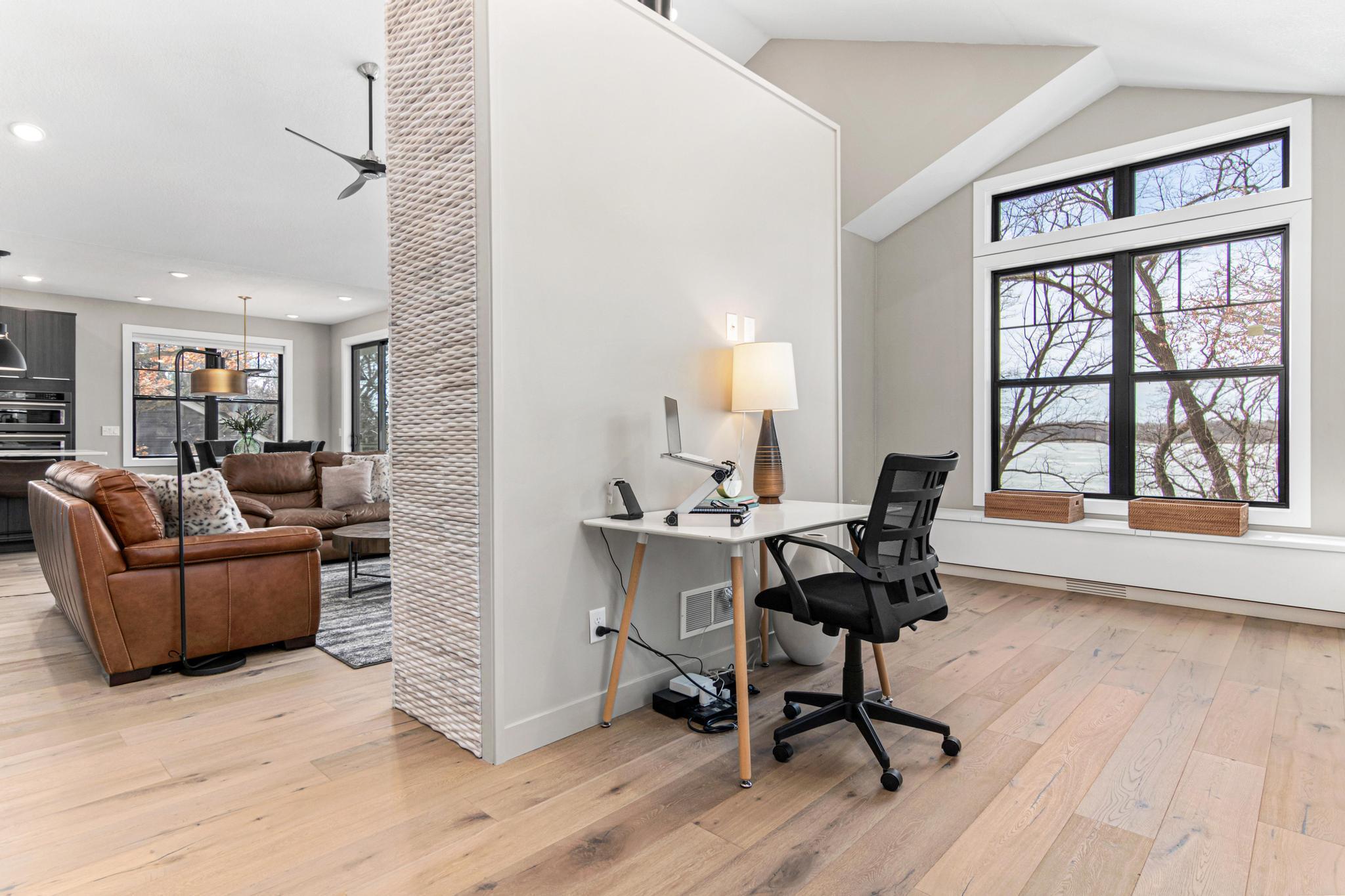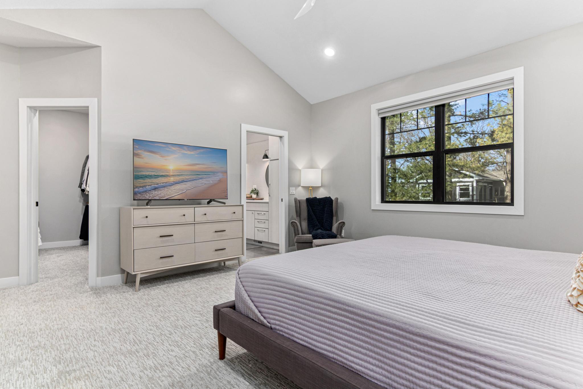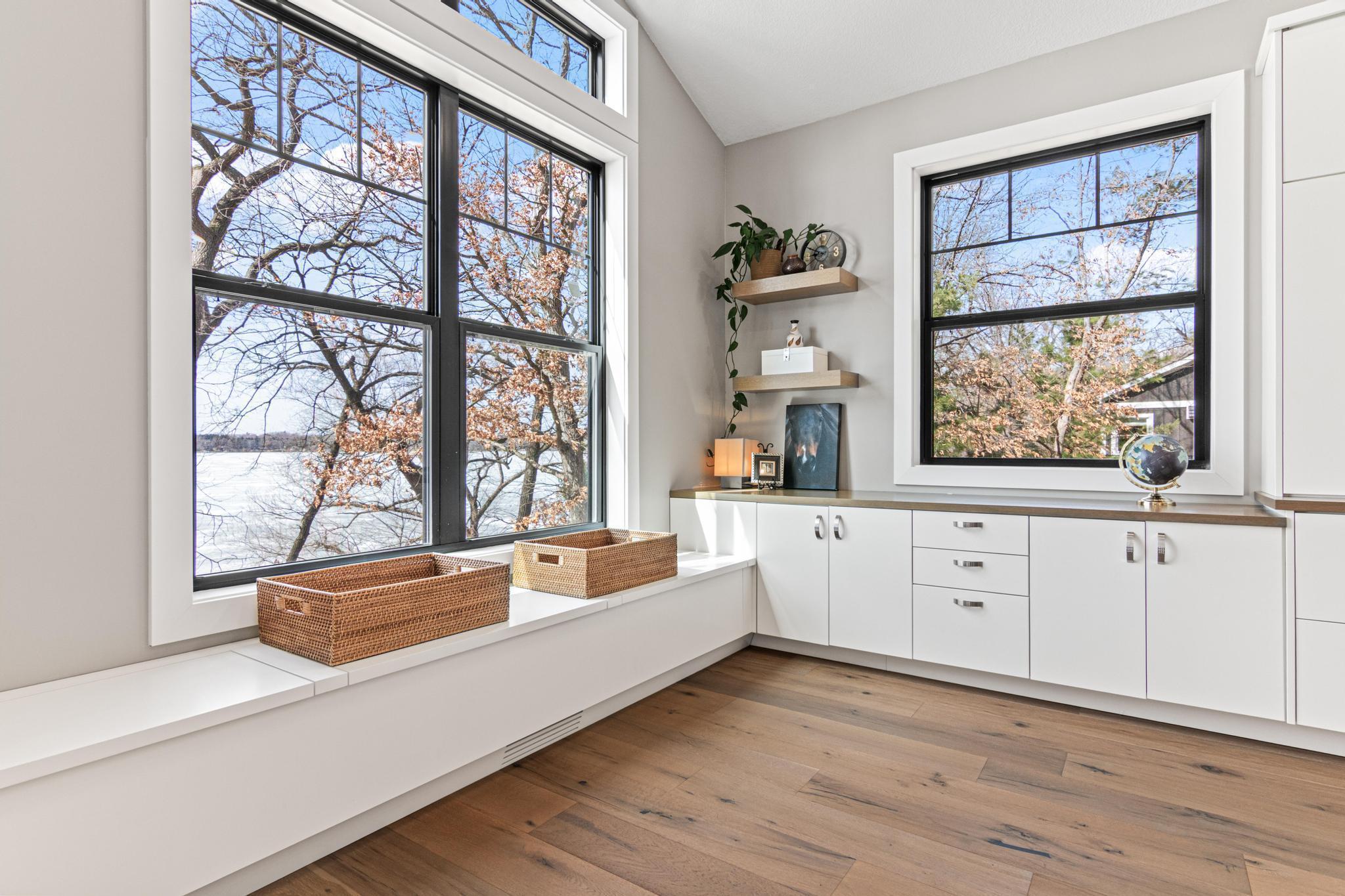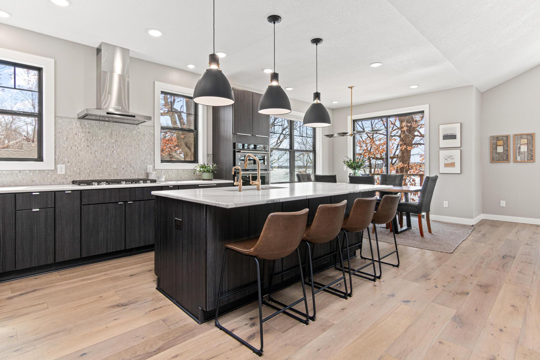 Welcome to an exceptional lakeshore retreat on Cedar Lake just minutes from the Twin Cities! This opportunity offers nearly 1 acre of beautifully positioned land and 100+ feet of prime frontage with breathtaking panoramic views. A beautiful fieldstone patio by the lake with a fire pit creates the perfect setting to relax, entertain, and take in the stunning surroundings. This thoughtfully designed home blends modern finishes with a warm, inviting feel—perfect for both everyday living and entertaining. Step inside to an open-concept main level highlighted by vaulted ceilings, expansive windows, and stunning 180 degree lake views that flood the home with natural light. The spacious living area centers around a sleek fireplace, creating a comfortable gathering space year-round. The gourmet kitchen features a large center island, custom cabinetry, and high-end finishes—ideal for hosting and everyday functionality. The main level offers a desirable layout with multiple bedrooms and a private primary suite, providing comfort and convenience with all living facilities on one level. The walkout lower level expands your living space with a large family room, wet bar area, additional bedrooms, and is enhanced by radiant in-floor heating, delivering consistent comfort throughout the colder months. Outdoor living is where this property truly shines. Enjoy peaceful mornings and unforgettable sunsets from the patio overlooking the water. The property features a spacious boathouse, making lake life effortless, along with gradual elevation to the shoreline and excellent water clarity—ideal for swimming, boating, and recreation. The heated and attached three car garage will keep your cars toasty in the winter and the additional land across the road is the perfect spot to build an additional garage or outbuilding. Great opportunity to combine lakeshore living with modern amenities!