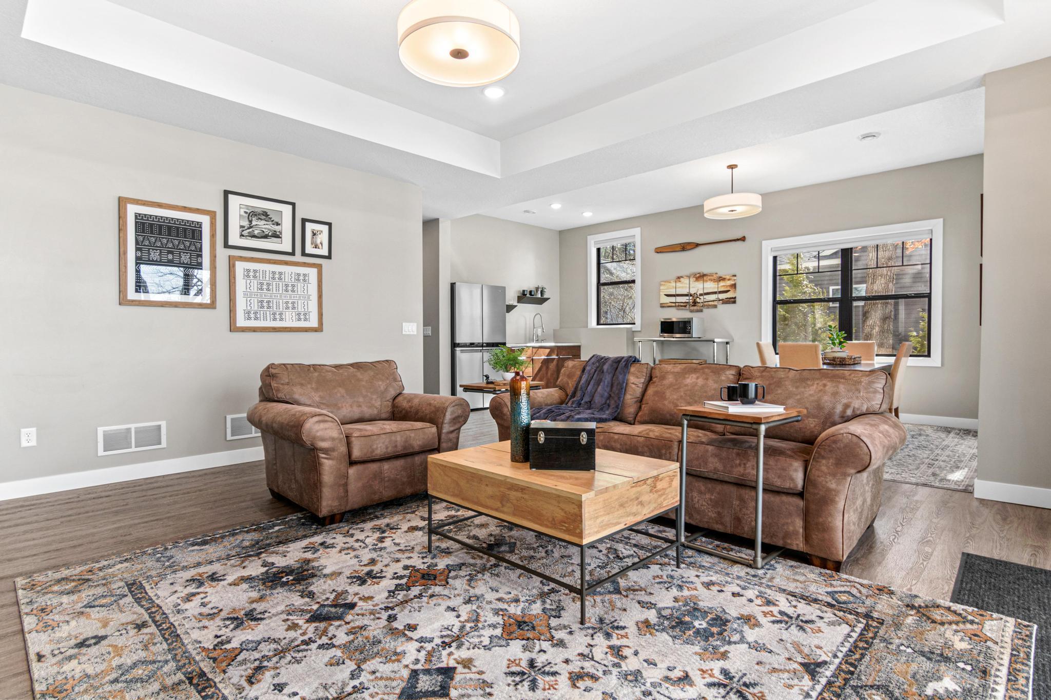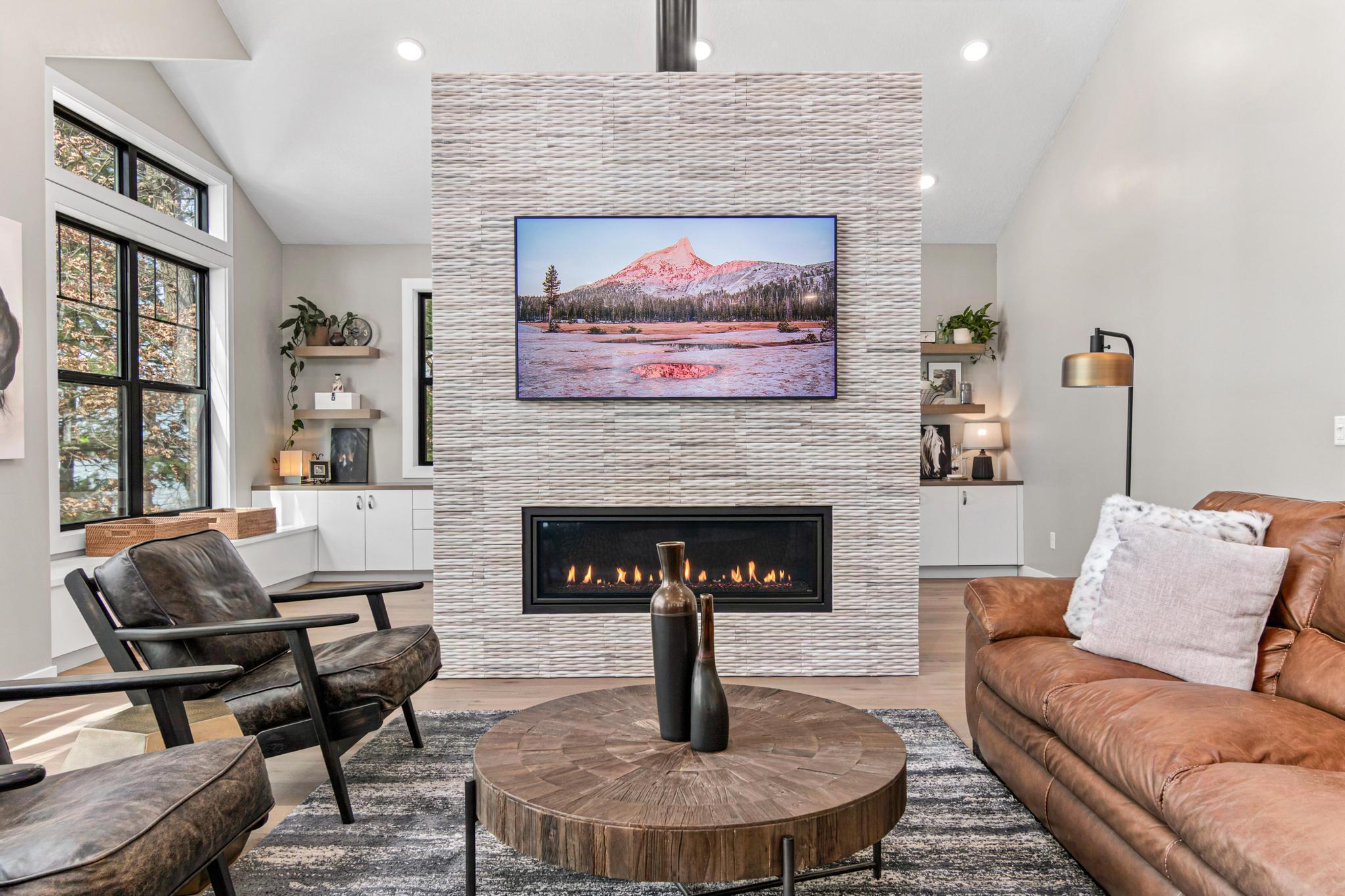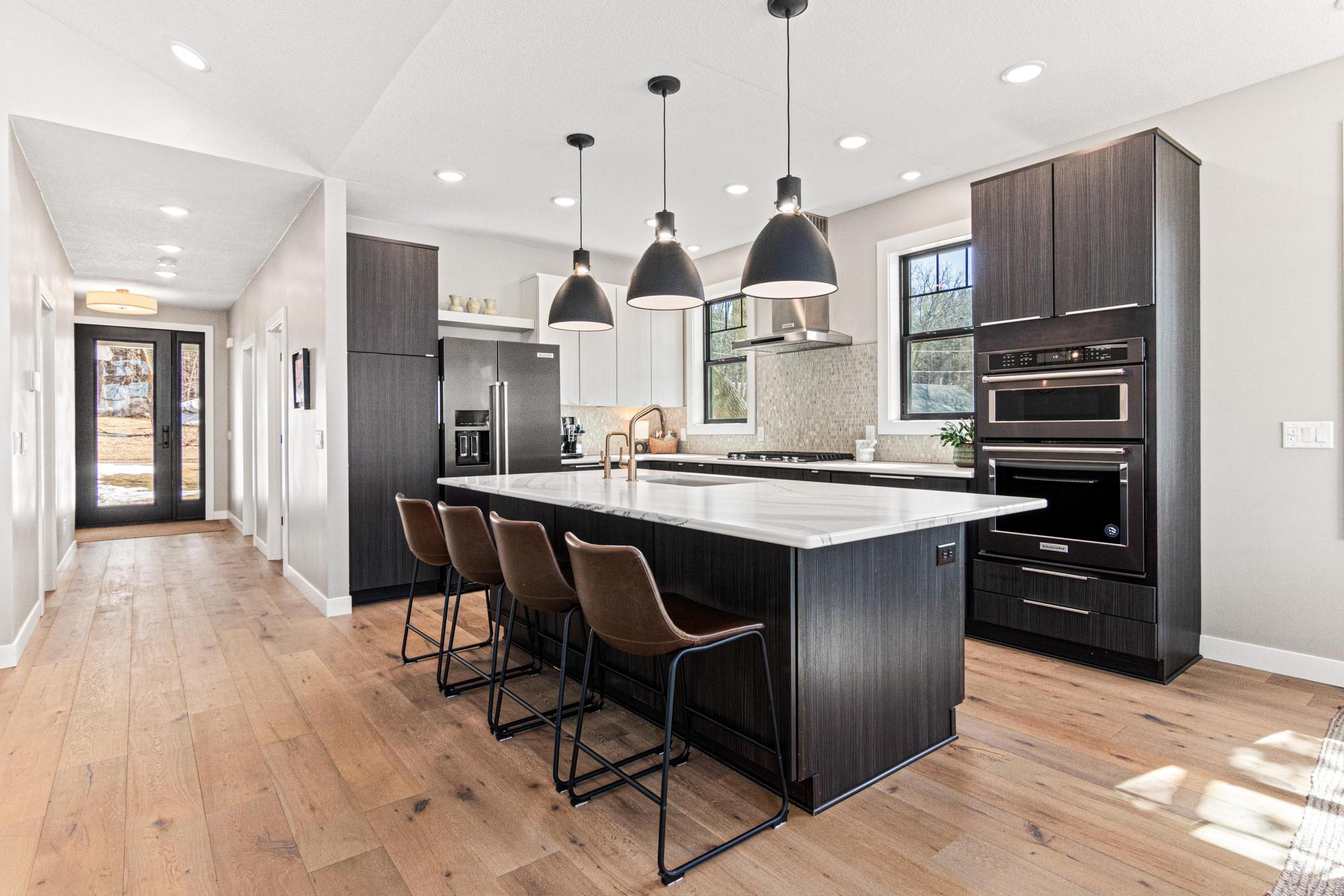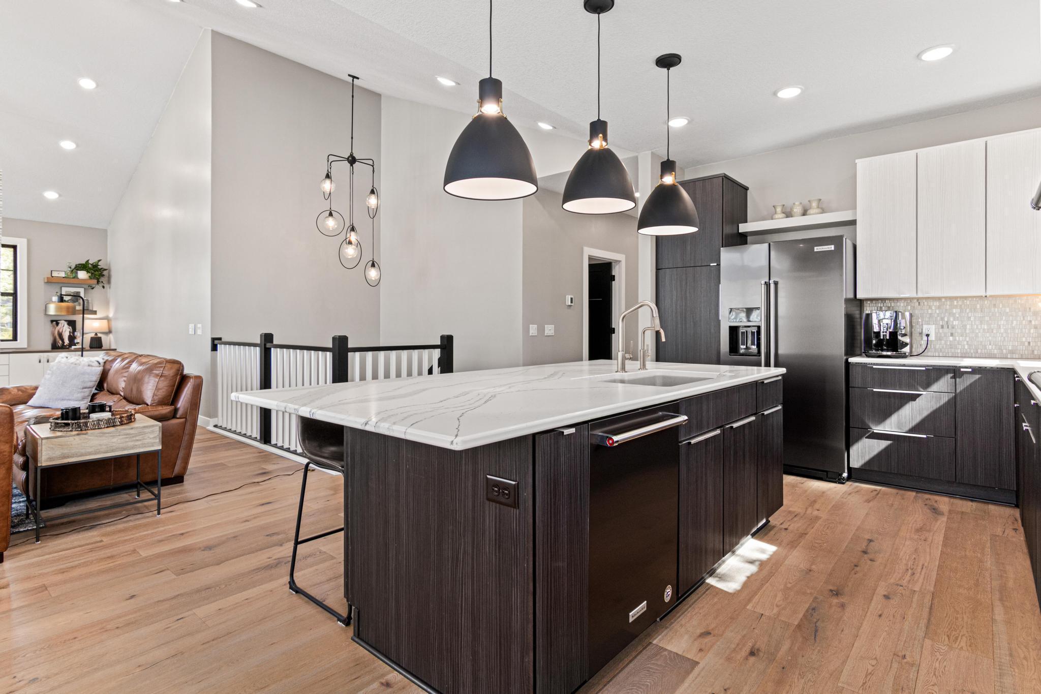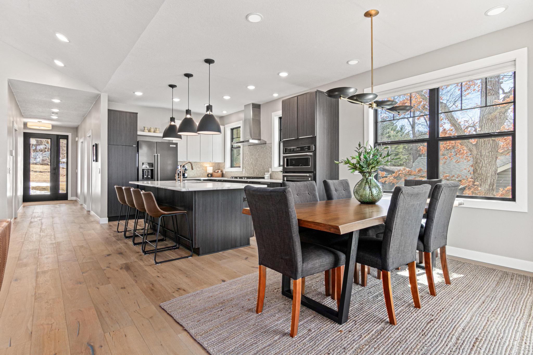 Welcome to an exceptional lakeshore retreat on Cedar Lake just minutes from the Twin Cities! This opportunity offers nearly 1 acre of beautifully positioned land and 100+ feet of prime frontage with breathtaking panoramic views. A beautiful fieldstone patio by the lake with a fire pit creates the perfect setting to relax, entertain, and take in the stunning surroundings. This thoughtfully designed home blends modern finishes with a warm, inviting feel—perfect for both everyday living and entertaining. Step inside to an open-concept main level highlighted by vaulted ceilings, expansive windows, and stunning 180 degree lake views that flood the home with natural light. The spacious living area centers around a sleek fireplace, creating a comfortable gathering space year-round. The gourmet kitchen features a large center island, custom cabinetry, and high-end finishes—ideal for hosting and everyday functionality. The main level offers a desirable layout with multiple bedrooms and a private primary suite, providing comfort and convenience with all living facilities on one level. The walkout lower level expands your living space with a large family room, wet bar area, additional bedrooms, and is enhanced by radiant in-floor heating, delivering consistent comfort throughout the colder months. Outdoor living is where this property truly shines. Enjoy peaceful mornings and unforgettable sunsets from the patio overlooking the water. The property features a spacious boathouse, making lake life effortless, along with gradual elevation to the shoreline and excellent water clarity—ideal for swimming, boating, and recreation. The heated and attached three car garage will keep your cars toasty in the winter and the additional land across the road is the perfect spot to build an additional garage or outbuilding. Great opportunity to combine lakeshore living with modern amenities!