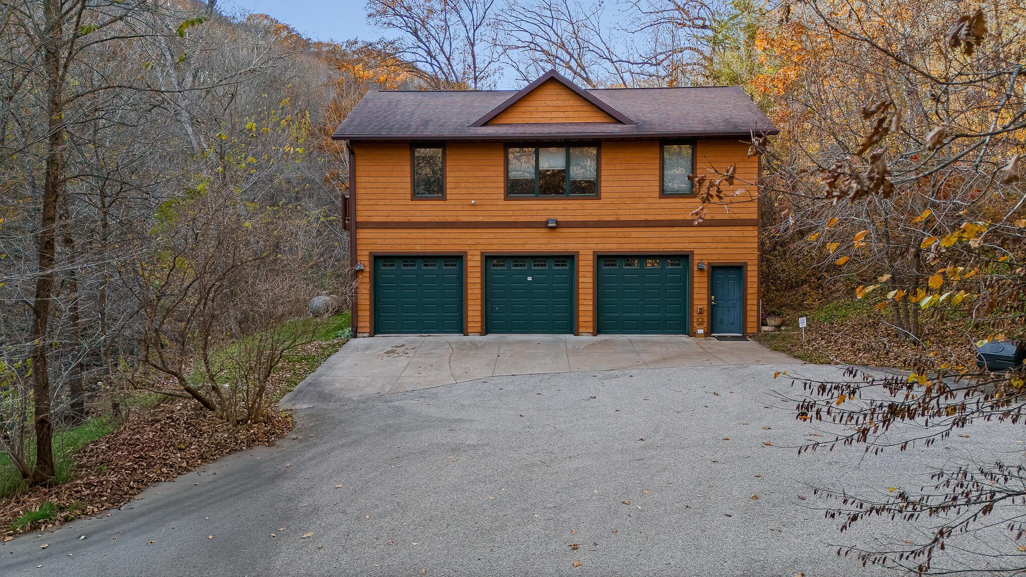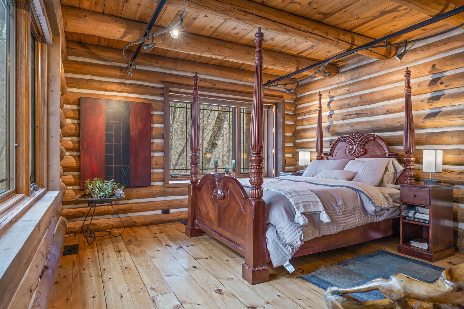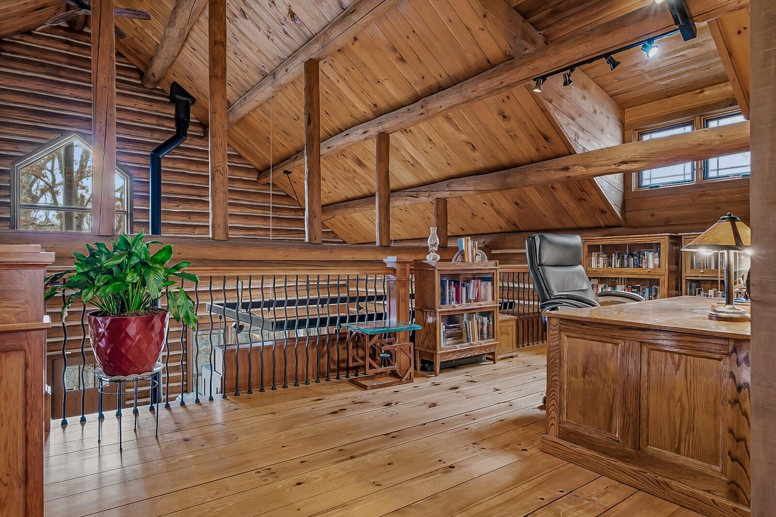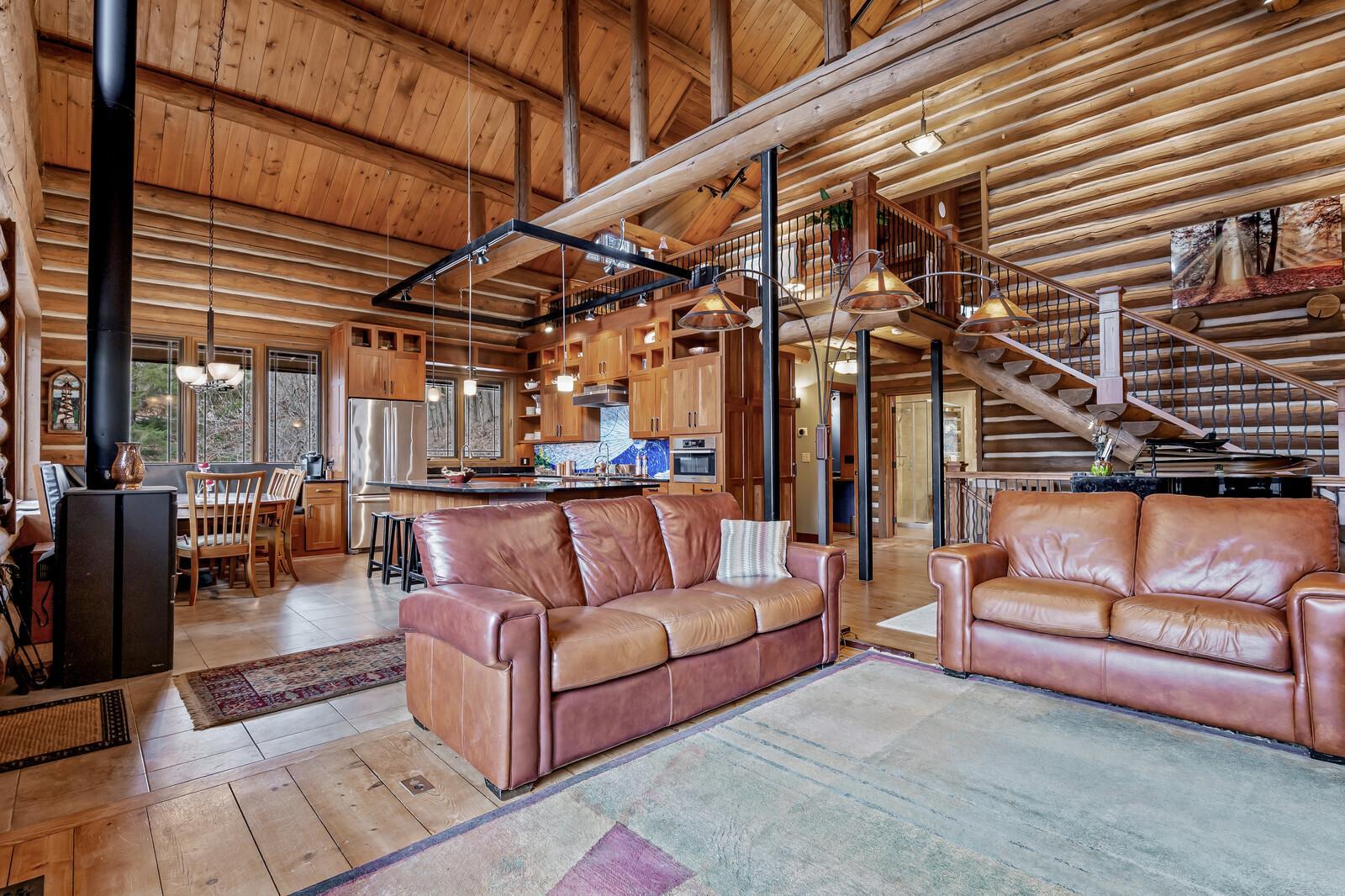 Experience the quiet beauty of true Northwoods living in this executive log home set on 80 pristine, wooded acres just 20 minutes from La Crosse. Custom designed by the original owners with inspiration from the iconic Old Faithful Lodge, it was thoughtfully crafted to feel connected to the surrounding landscape. Rich with custom tile work and warm natural finishes, the open-concept design showcases soaring log beams, expansive windows, and inviting gathering spaces. Enjoy main-floor living with in-floor heat, 4 bedrooms, 3.5 baths, and a spacious loft. A private studio apartment above the 3-car garage and a large heated woodshop add flexibility. A rare offering where design, craftsmanship, and nature align.