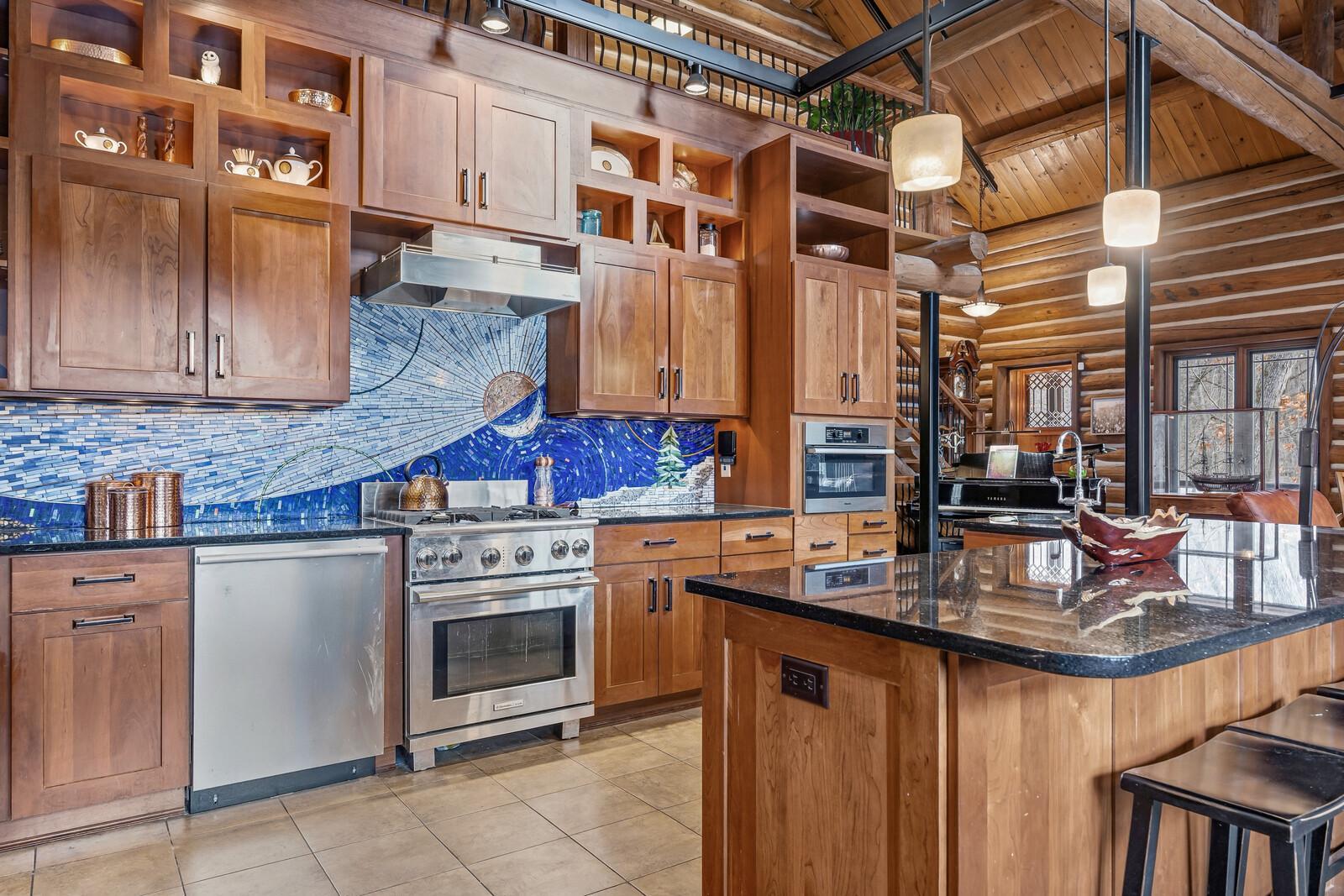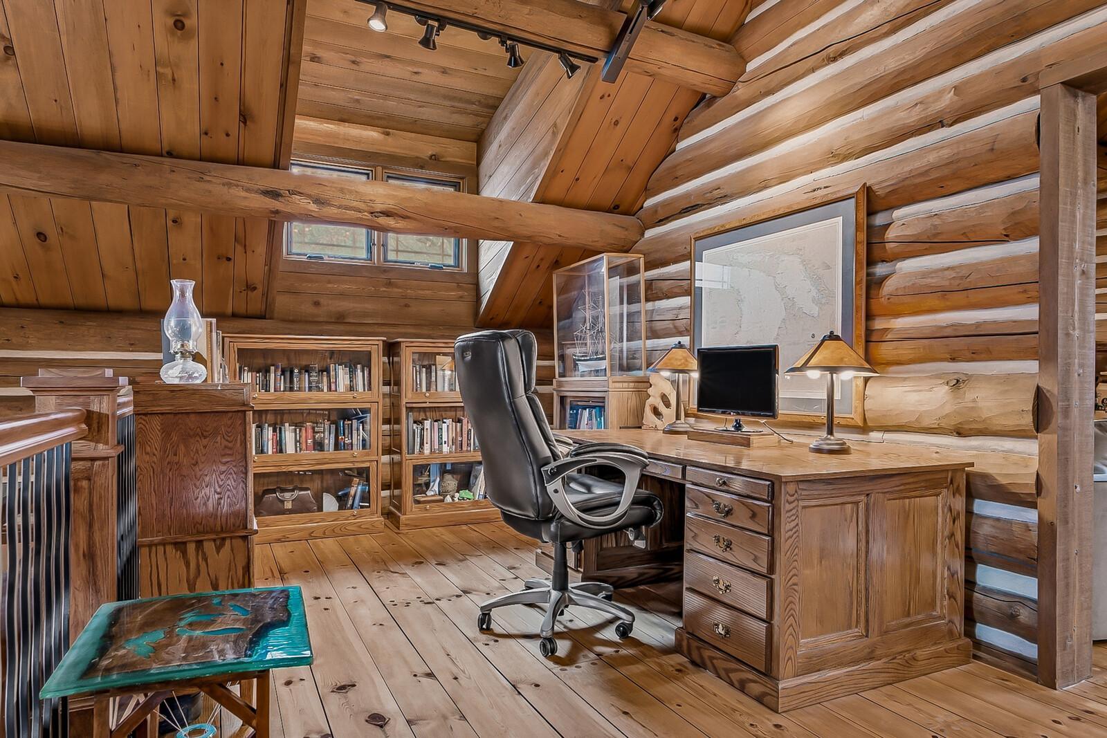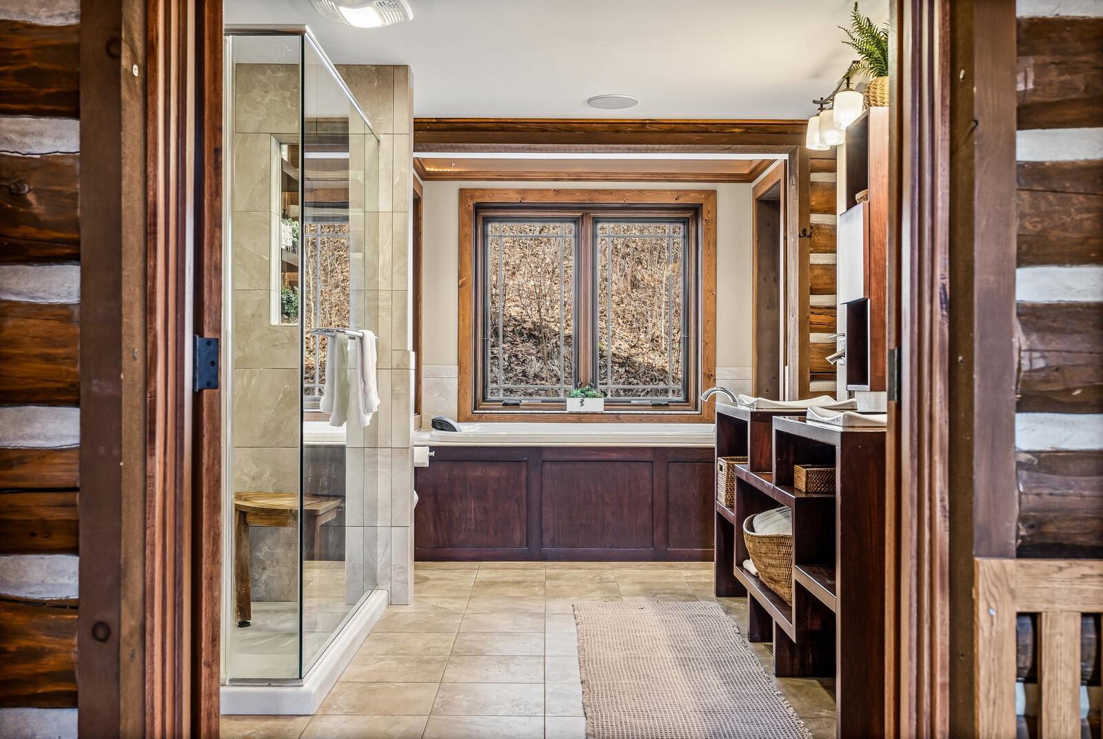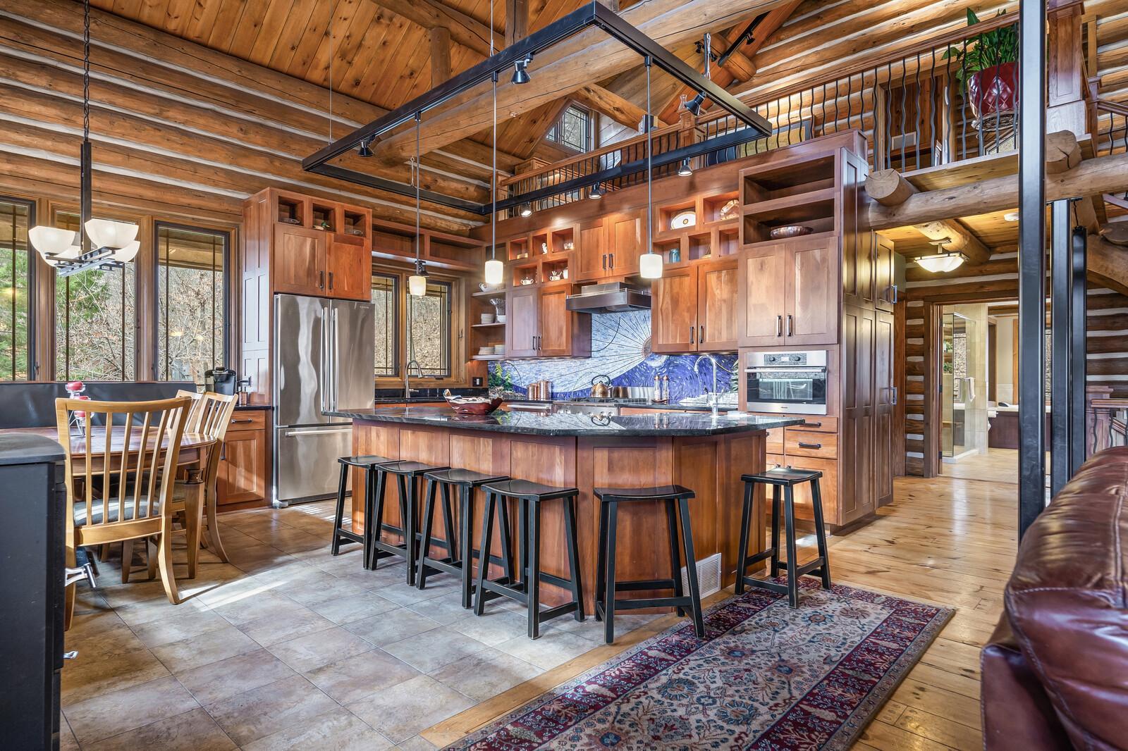 Experience the quiet beauty of true Northwoods living in this executive log home set on 80 pristine, wooded acres just 20 minutes from La Crosse. Custom designed by the original owners with inspiration from the iconic Old Faithful Lodge, it was thoughtfully crafted to feel connected to the surrounding landscape. Rich with custom tile work and warm natural finishes, the open-concept design showcases soaring log beams, expansive windows, and inviting gathering spaces. Enjoy main-floor living with in-floor heat, 4 bedrooms, 3.5 baths, and a spacious loft. A private studio apartment above the 3-car garage and a large heated woodshop add flexibility. A rare offering where design, craftsmanship, and nature align.
