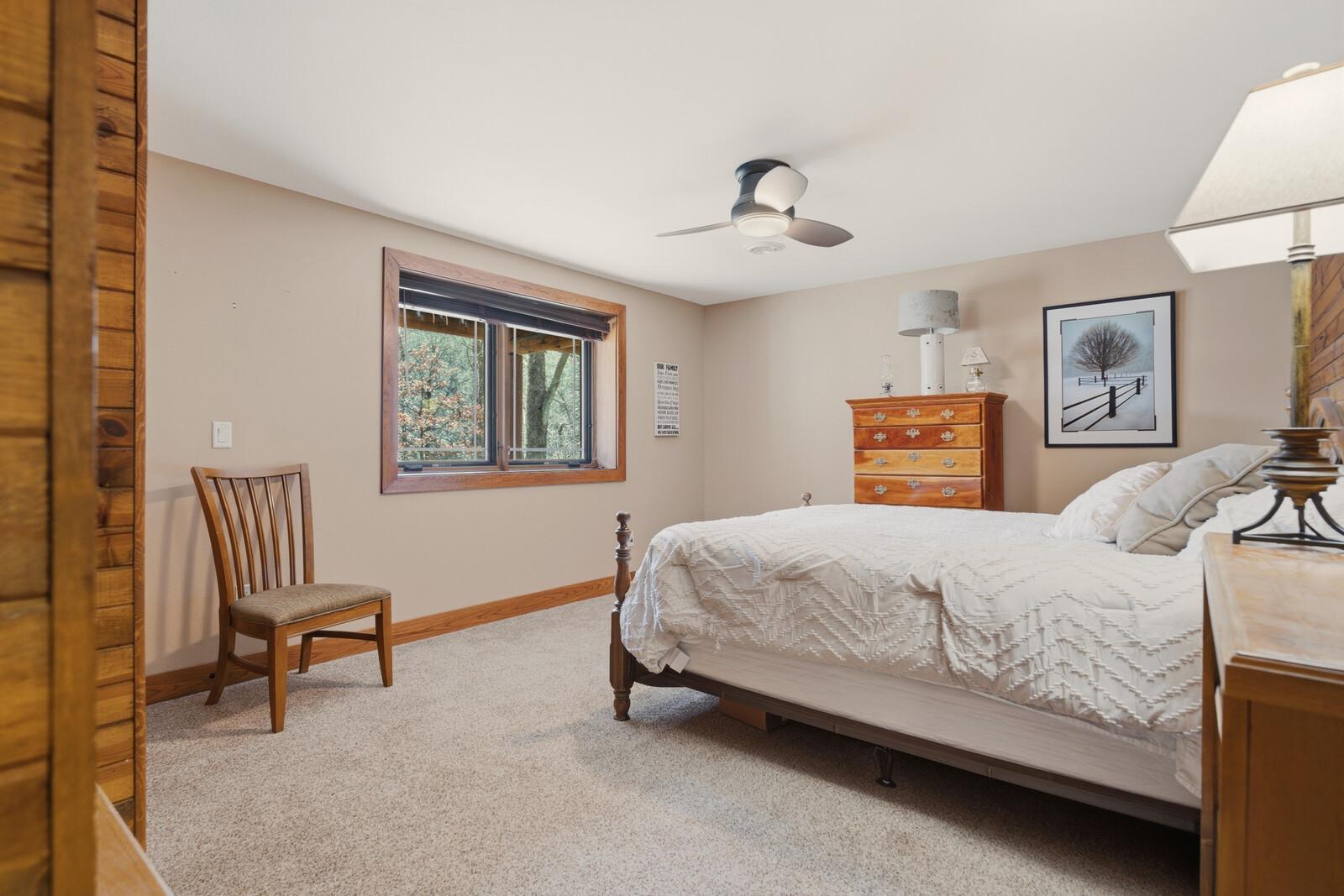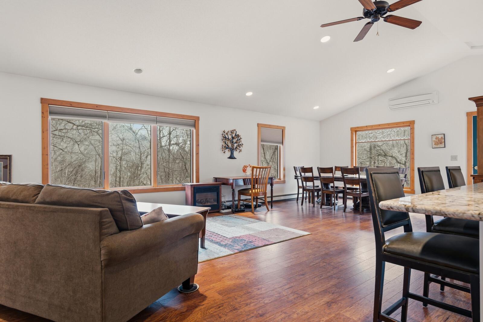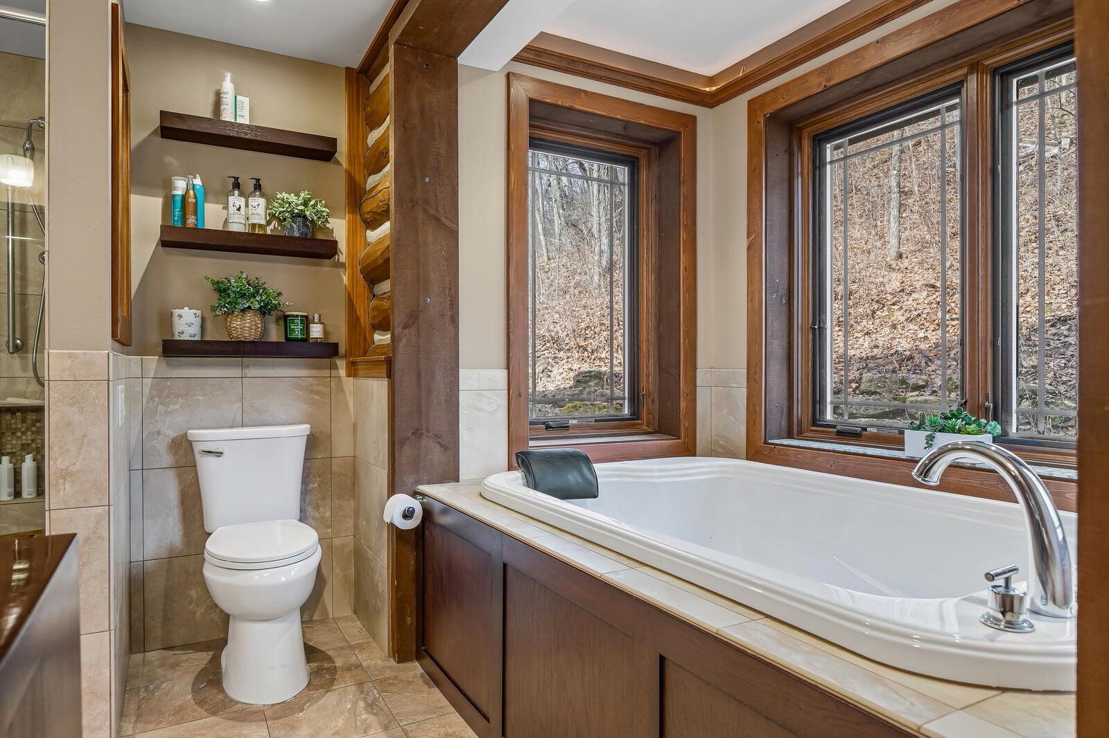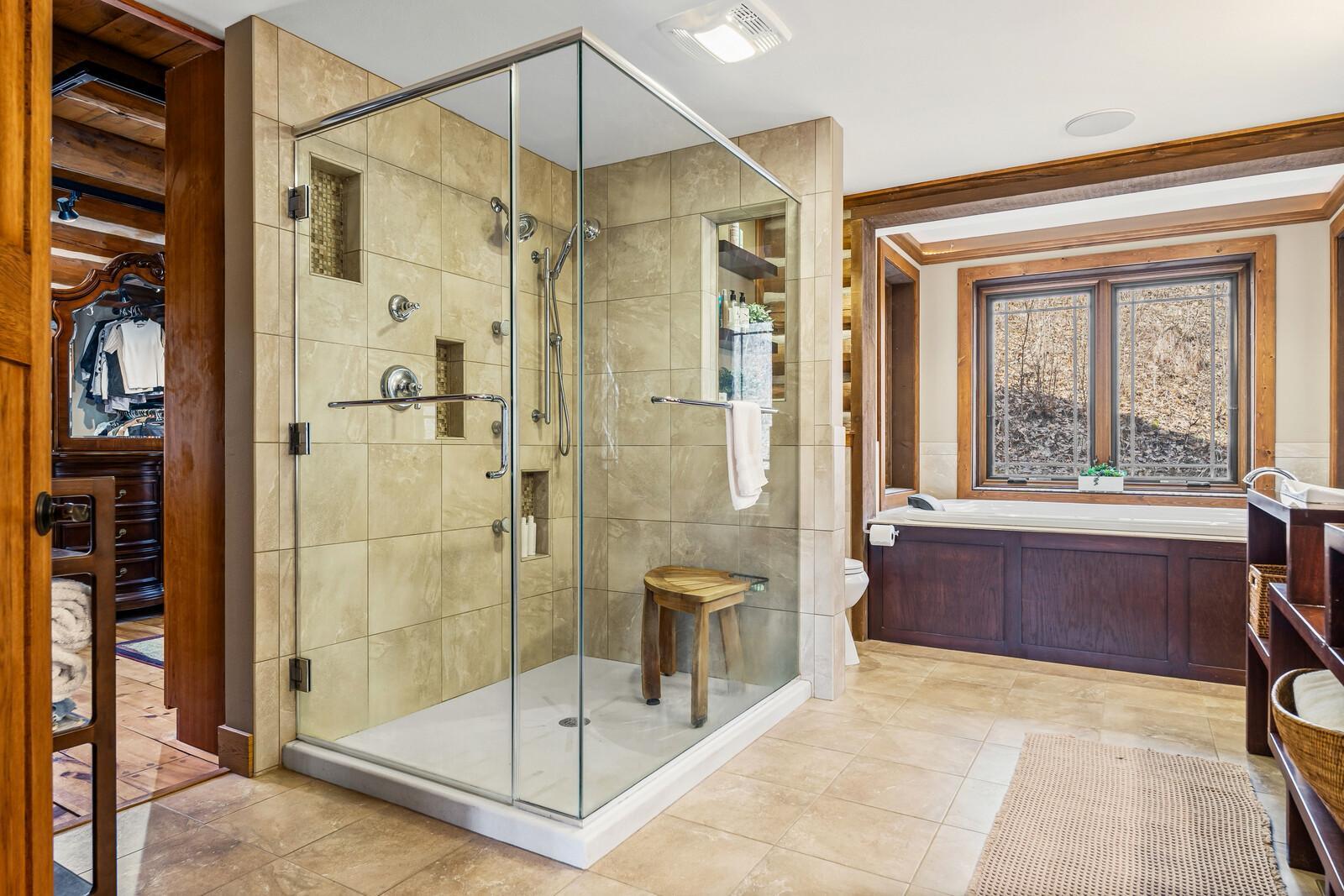 Experience the quiet beauty of true Northwoods living in this executive log home set on 80 pristine, wooded acres just 20 minutes from La Crosse. Custom designed by the original owners with inspiration from the iconic Old Faithful Lodge, it was thoughtfully crafted to feel connected to the surrounding landscape. Rich with custom tile work and warm natural finishes, the open-concept design showcases soaring log beams, expansive windows, and inviting gathering spaces. Enjoy main-floor living with in-floor heat, 4 bedrooms, 3.5 baths, and a spacious loft. A private studio apartment above the 3-car garage and a large heated woodshop add flexibility. A rare offering where design, craftsmanship, and nature align.