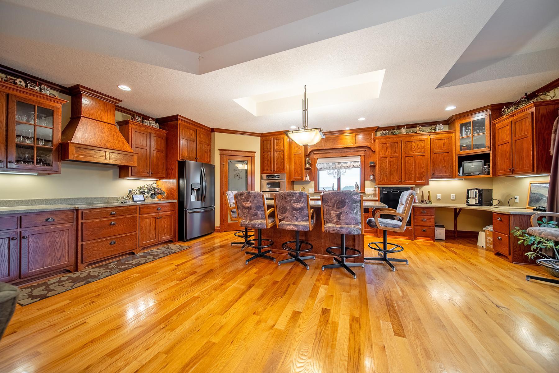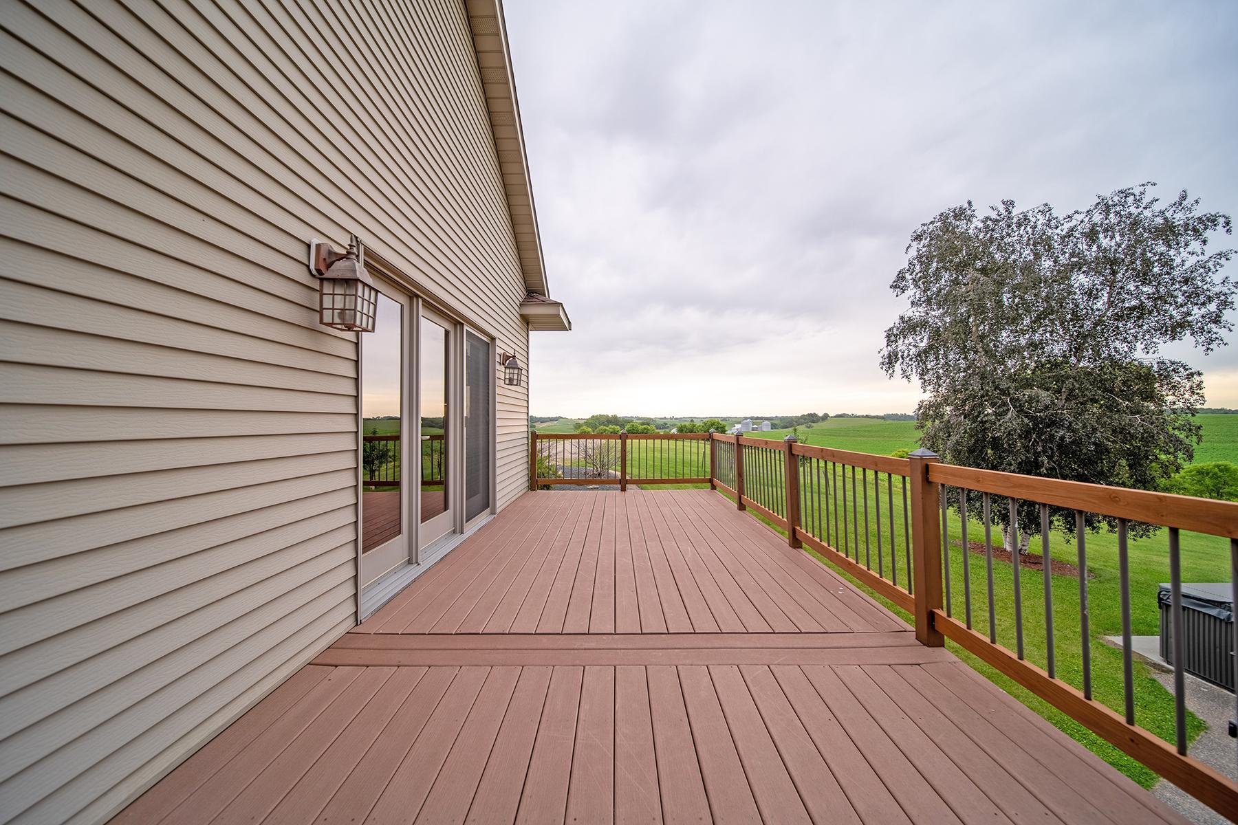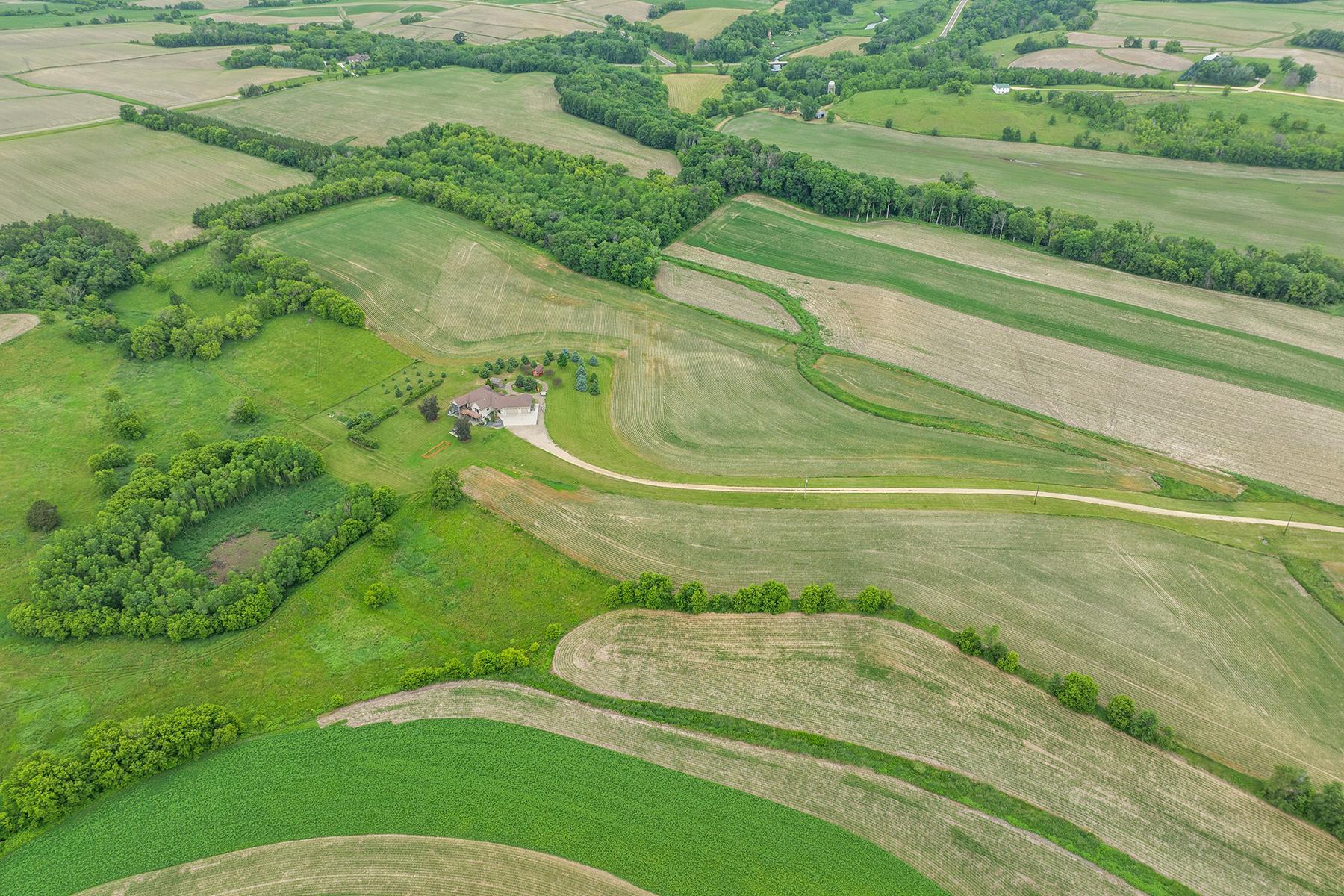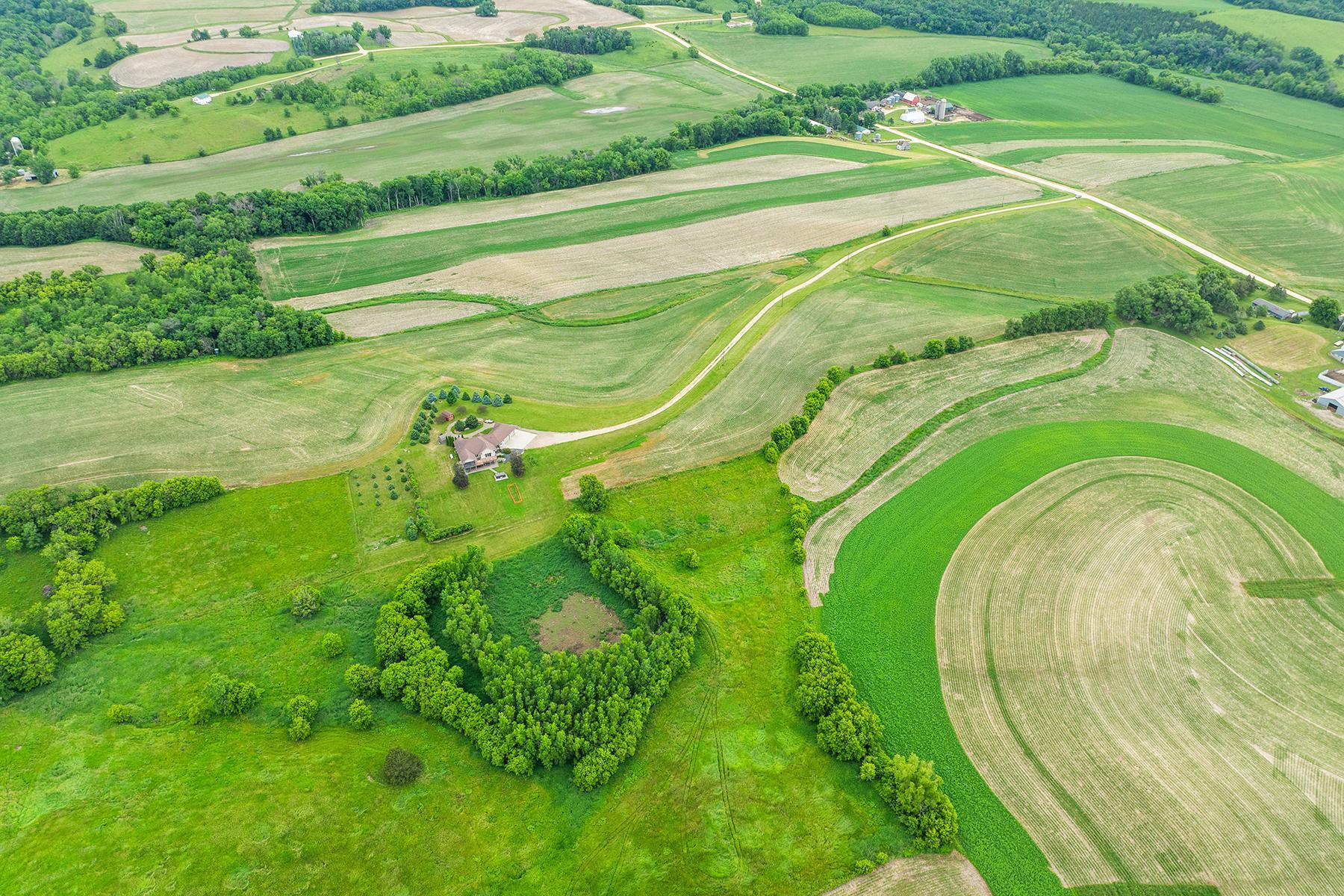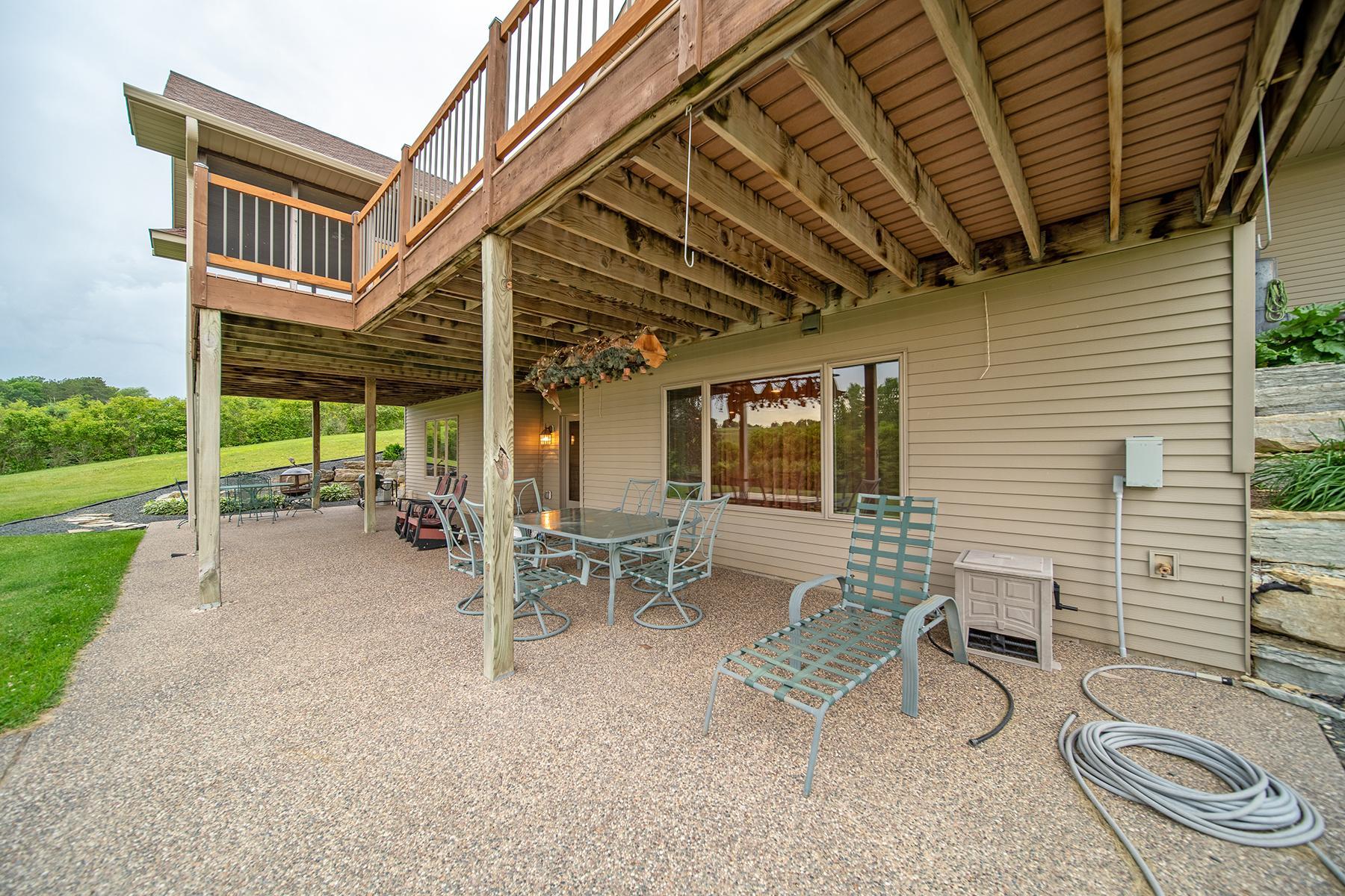 Custom built rambler on 57 acres just outside of Mazeppa! Beautiful country setting with amazing views! Spacious open floor plan with all one level living ! Ten foot ceilings, beautiful mission style trim and doors .- perfect for entertaining family and friends! Start inside and work your way out to the lovely backyard deck enjoying the expansive views - peaceful and quiet! Enjoy coffee in the morning or a glass of wine in the evening in the screened in porch off the master bedroom. Master on the main level and two additional bedrooms on the lower level of the home. A cozy fireplace in the main level living room and enjoy in floor heat in the lower level and garage! Second kitchen area/bar in the lower level walkout! Enjoy a night with friends around the bonfire or in the salt water chemical free swim spa! The land consists of 13 acres that could be fenced for cattle (fence posts are there - just needed fencing), 35 acres of crop land and approximately 10 acres of woods! Must see to appreciate all this home has to offer.