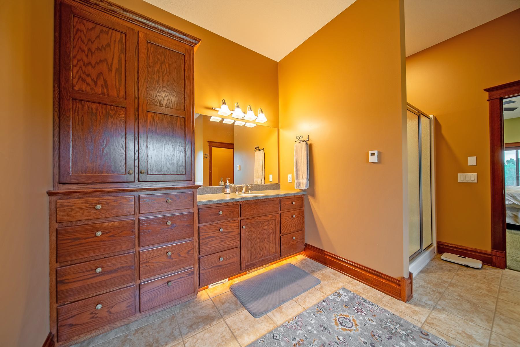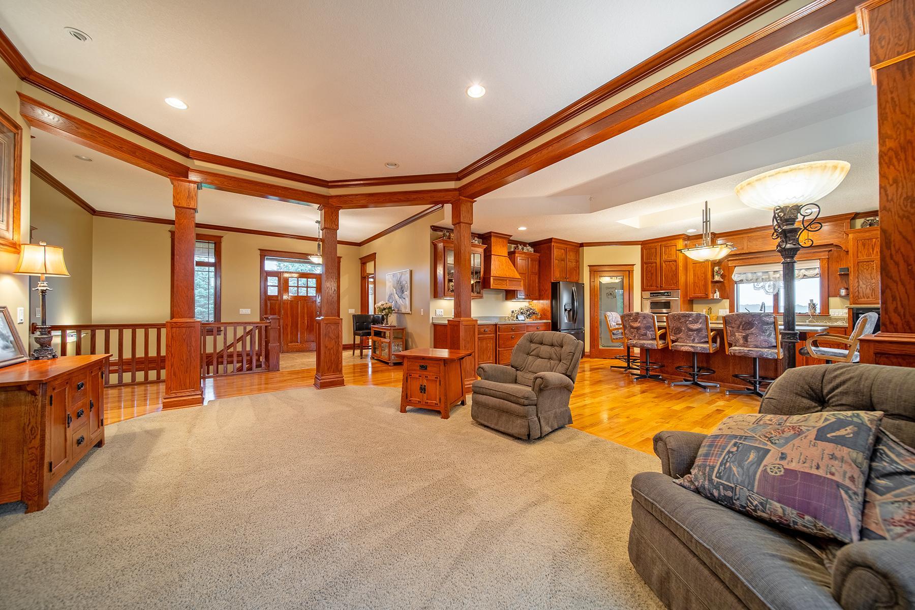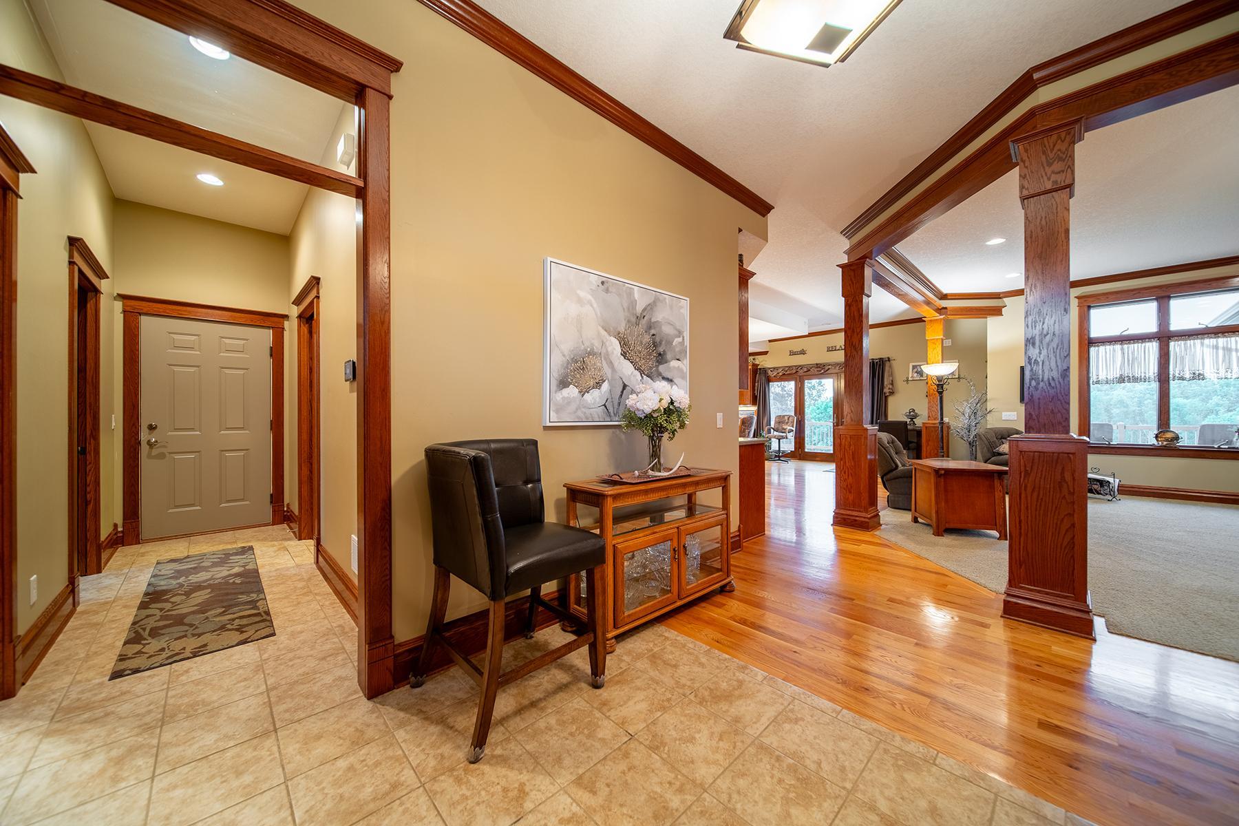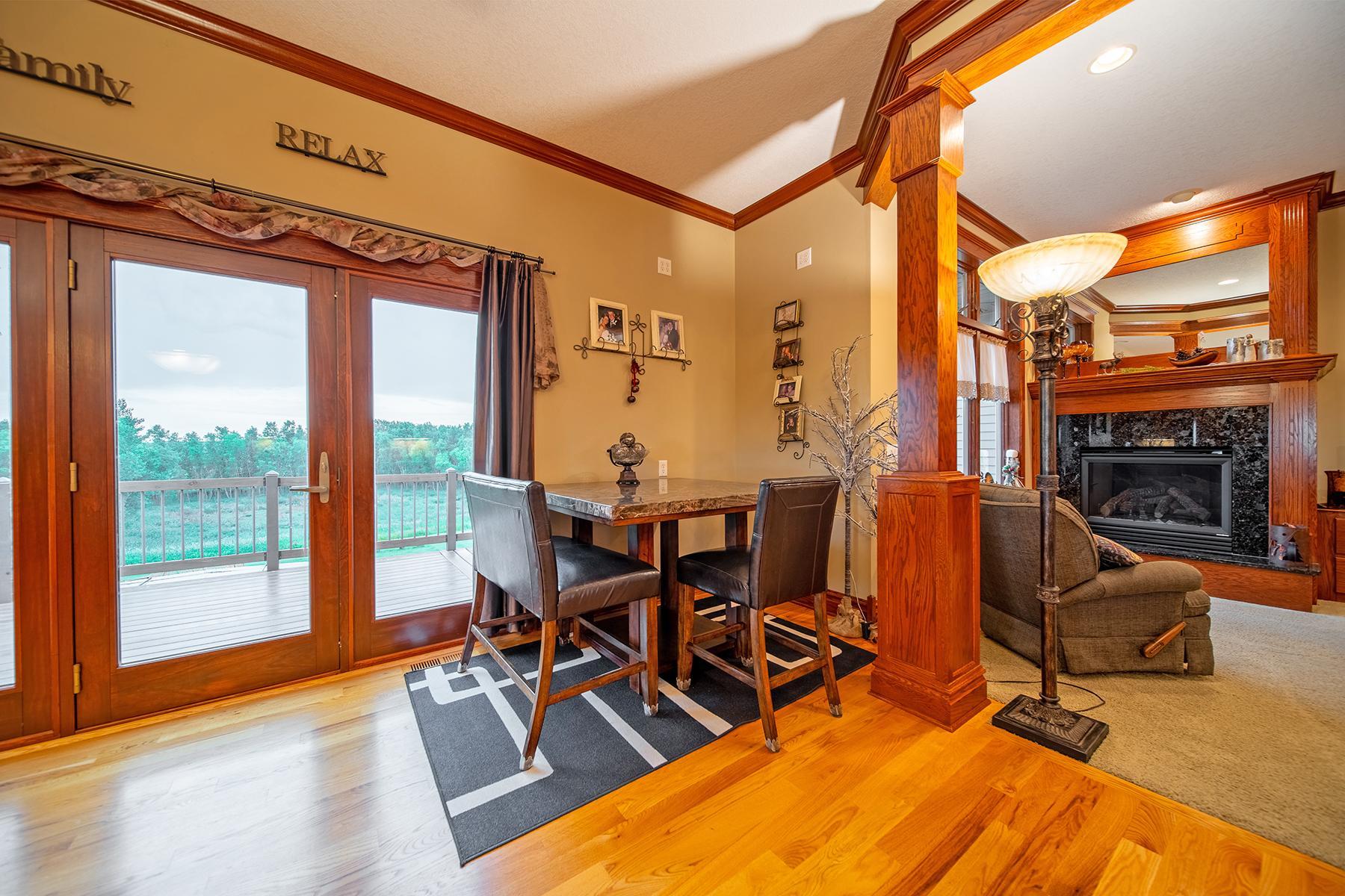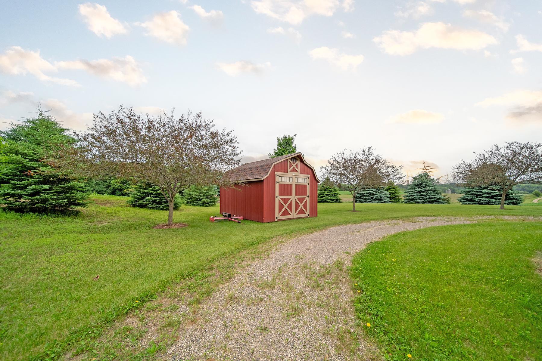Custom built rambler on 57 acres just outside of Mazeppa! Beautiful country setting with amazing views! Spacious open floor plan with all one level living ! Ten foot ceilings, beautiful mission style trim and doors .- perfect for entertaining family and friends! Start inside and work your way out to the lovely backyard deck enjoying the expansive views - peaceful and quiet! Enjoy coffee in the morning or a glass of wine in the evening in the screened in porch off the master bedroom. Master on the main level and two additional bedrooms on the lower level of the home. A cozy fireplace in the main level living room and enjoy in floor heat in the lower level and garage! Second kitchen area/bar in the lower level walkout! Enjoy a night with friends around the bonfire or in the salt water chemical free swim spa! The land consists of 13 acres that could be fenced for cattle (fence posts are there - just needed fencing), 35 acres of crop land and approximately 10 acres of woods! Must see to appreciate all this home has to offer.
