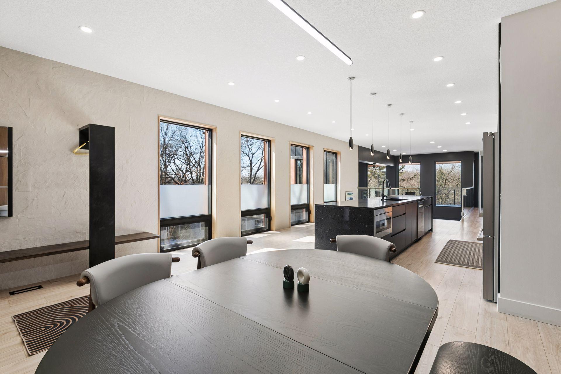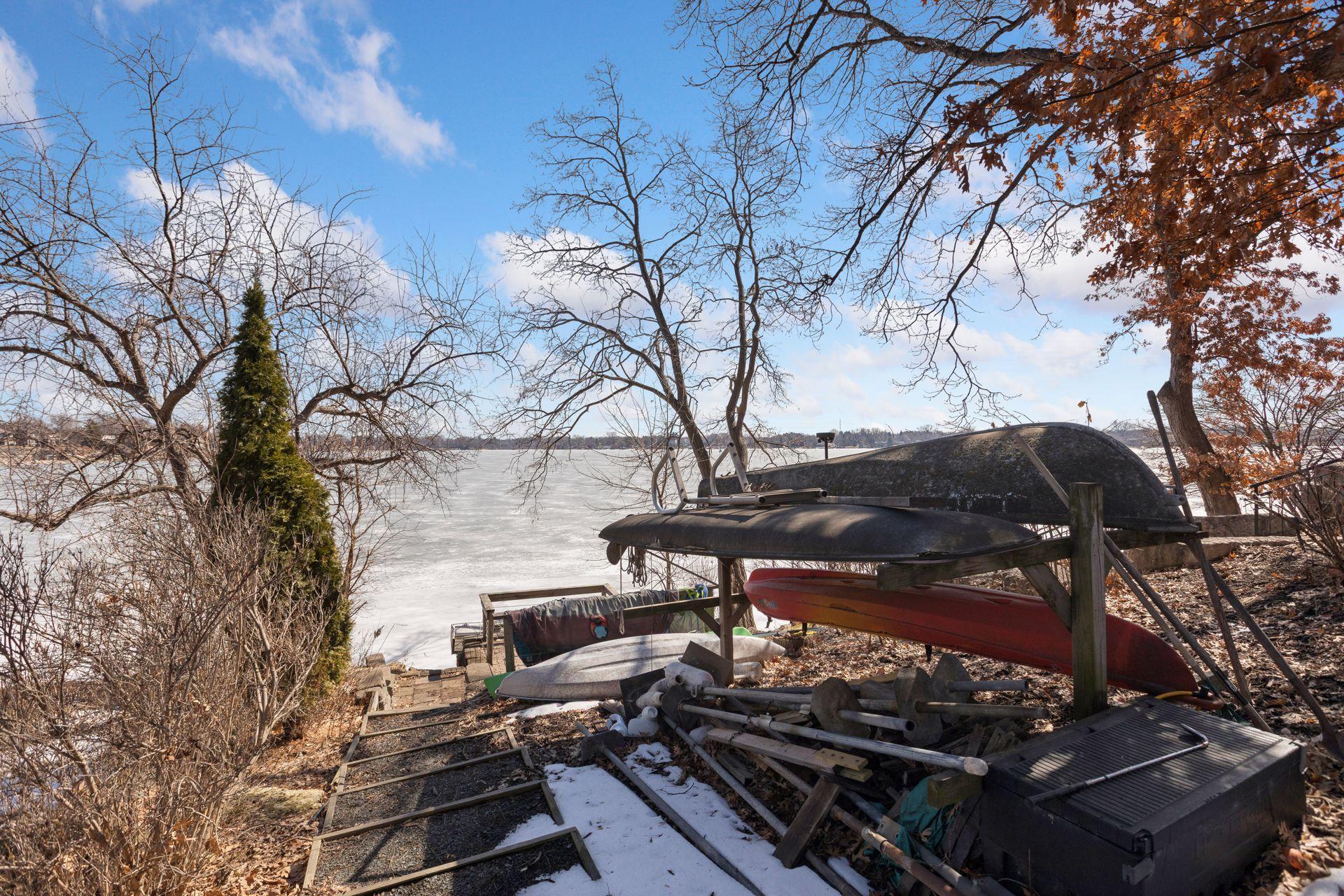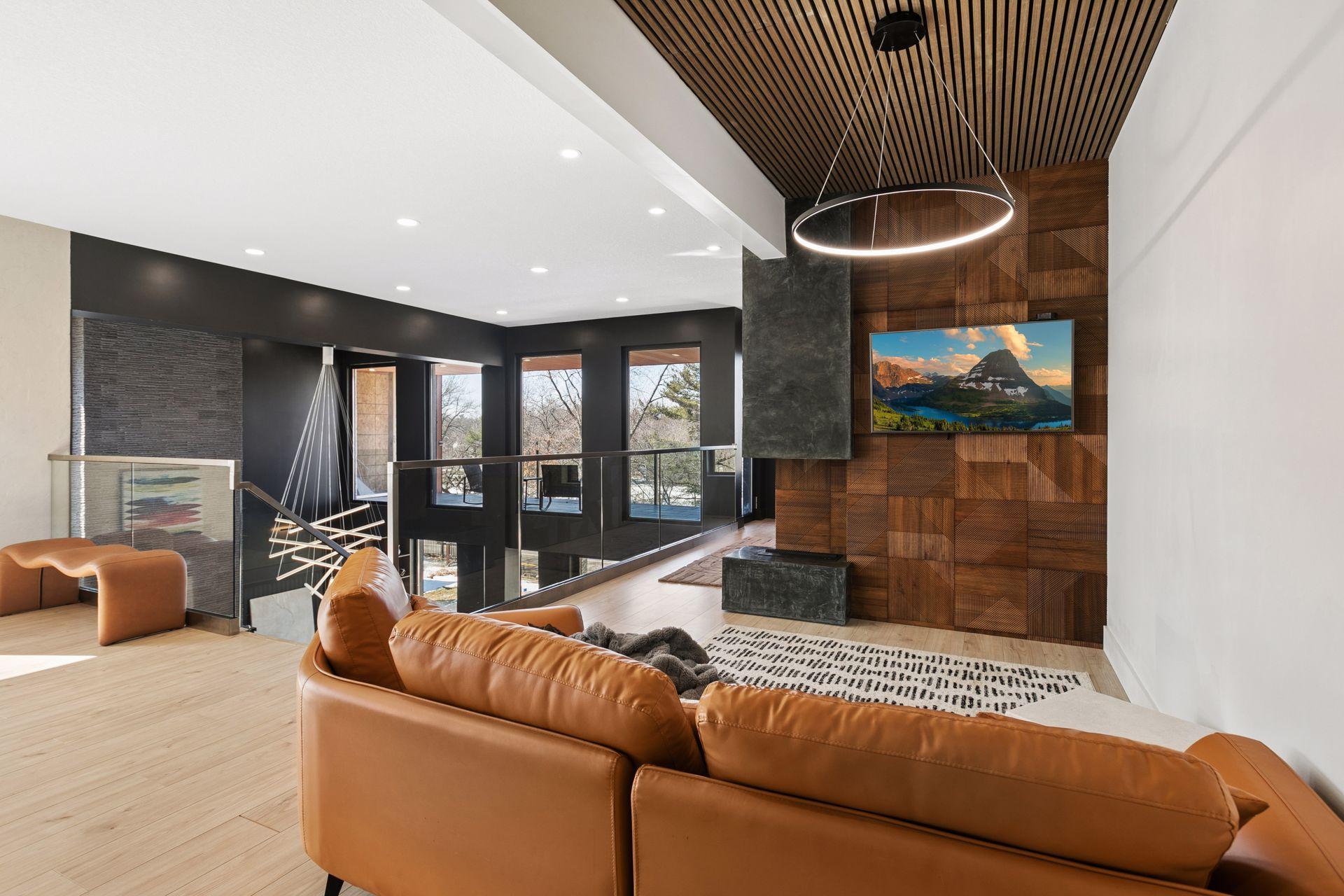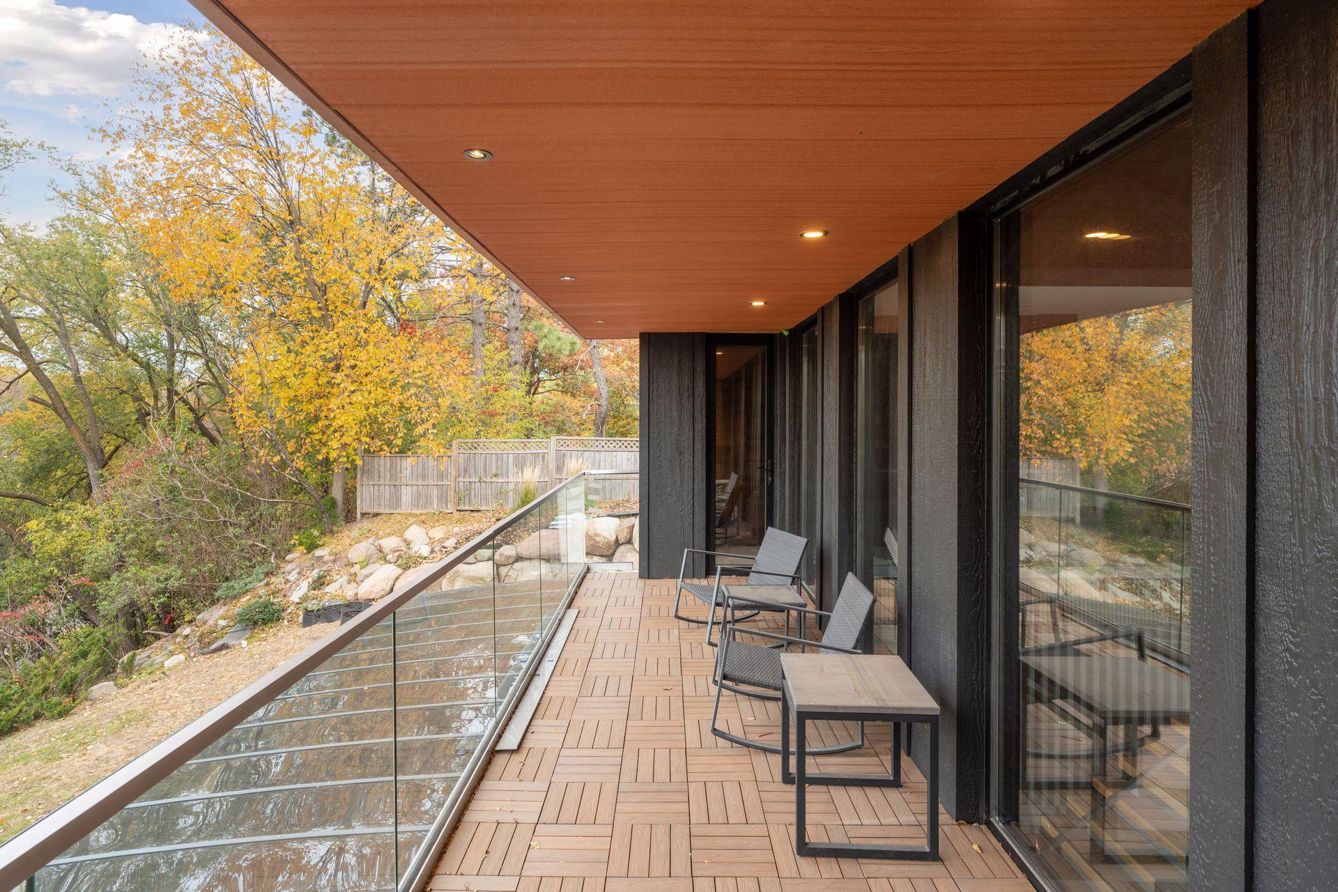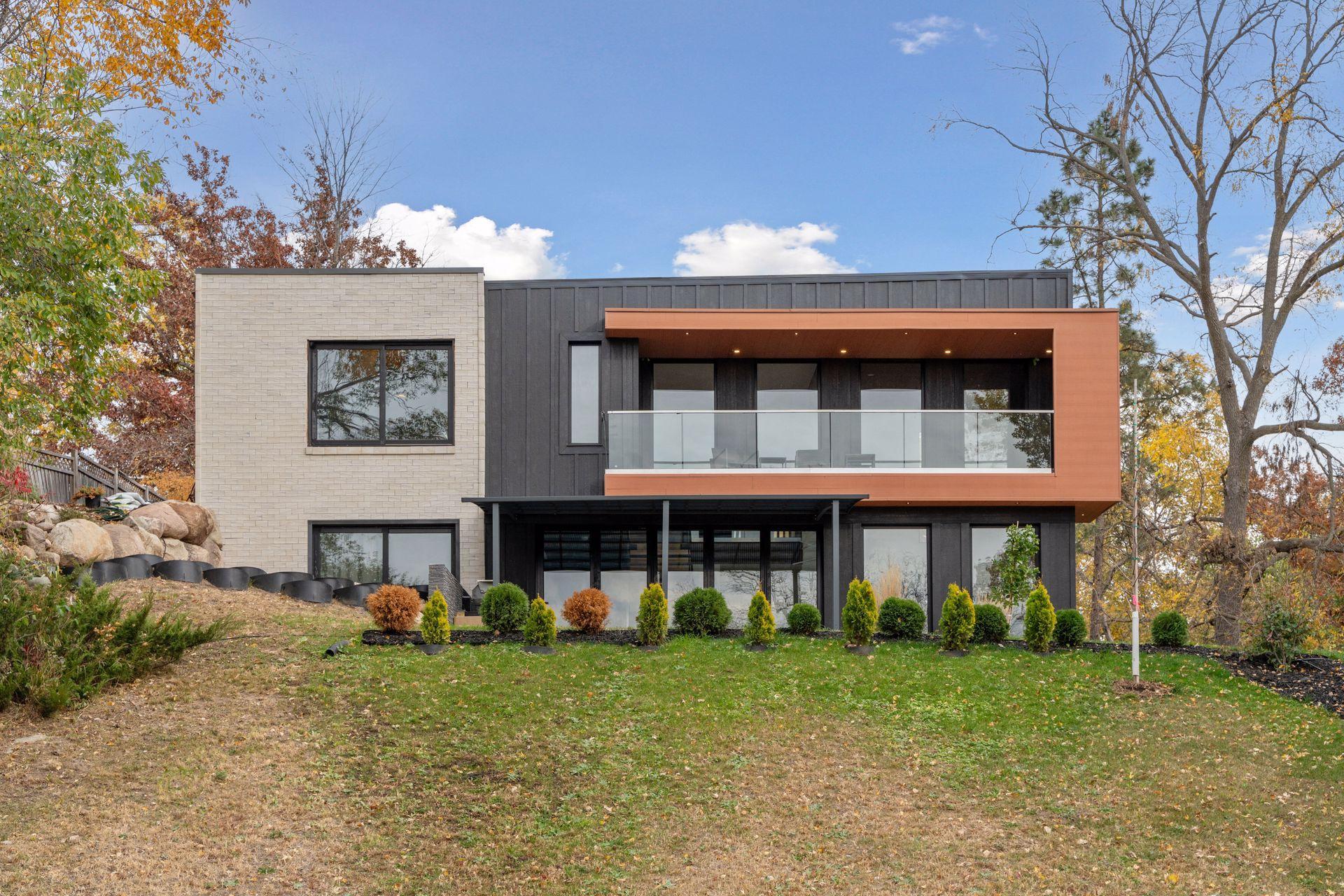 Stunning Contemporary Home Overlooking Lake Emily and Lake Owasso. Perfectly perched on an elevated 0.42-acre lot, this exceptional 4-bedroom, 4-bath modern rambler offers over 3,800 finished square feet and breathtaking lake views. Enjoy deeded access to Lake Owasso, blending peaceful privacy with the best of lakeside living. Step inside to an expansive, light-filled open floor plan where clean lines and designer finishes shine throughout. The spacious living area features soaring ceilings and panoramic views, creating an inviting atmosphere ideal for both entertaining and everyday living. The main level (1,754 sq ft) showcases a welcoming foyer, dining room, mudroom with custom built-ins, laundry room, and a cozy sitting area. Step out onto the relaxing balcony and take in serene views of Lake Emily. The gourmet kitchen is a showpiece, featuring custom cabinetry, an oversized center island, pantry, and a generous dining area perfect for gatherings. Retreat to the luxurious primary suite, complete with a large walk-in closet and spa-inspired bath offering a tiled walk-in shower, standalone stone soaking tub, and a full glass sauna. A striking glass-and-steel staircase leads to the walkout lower level, where a sun-drenched two-story family room awaits, highlighted by a stunning built-in fireplace and wet bar. This level seamlessly connects to the patio and outdoor kitchen, making indoor-outdoor living effortless. Also on the lower level are three additional bedrooms, two bathrooms, a private office, media room, and a cozy amusement room—providing ample space for family and guests. This one-of-a-kind home is ideally located near parks, lakes, trails, shopping, and dining. Welcome home.