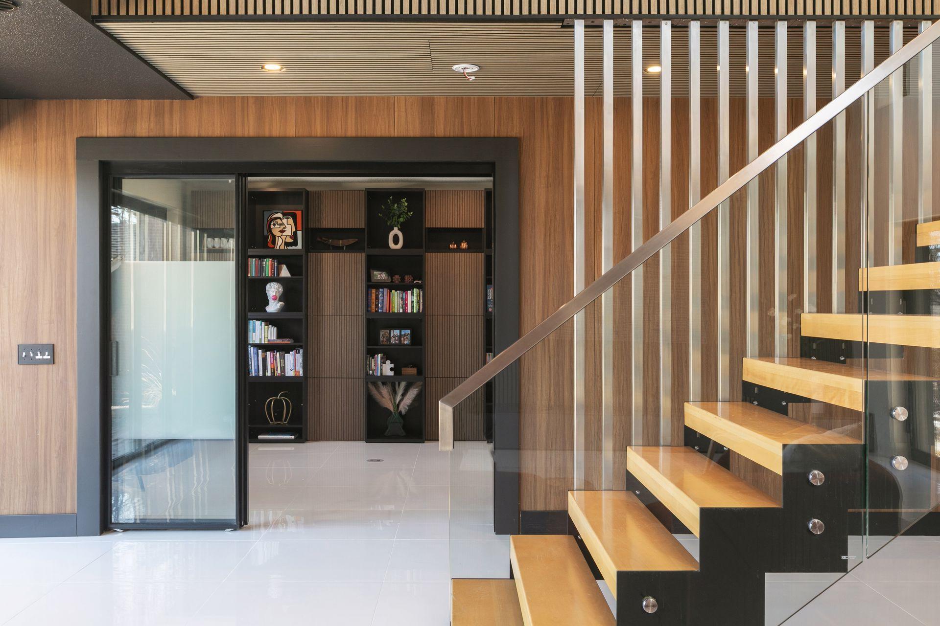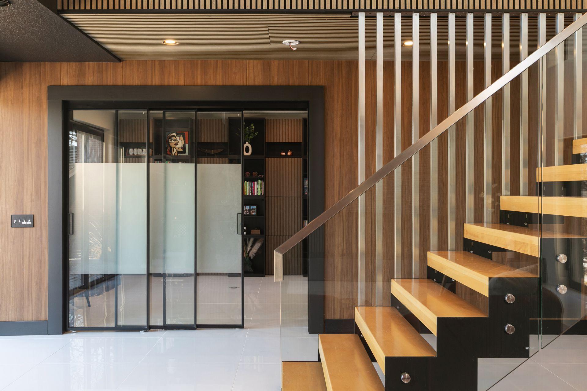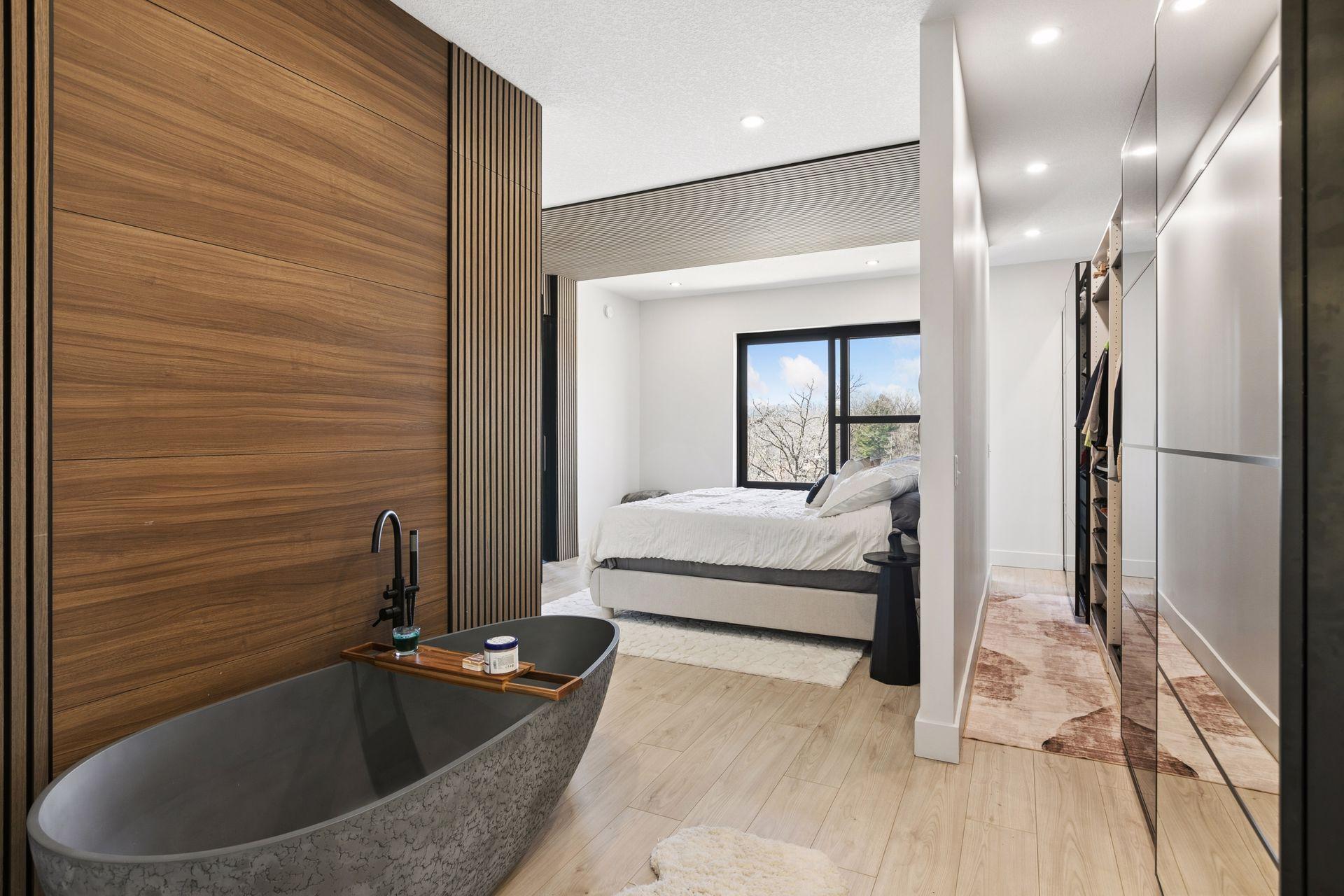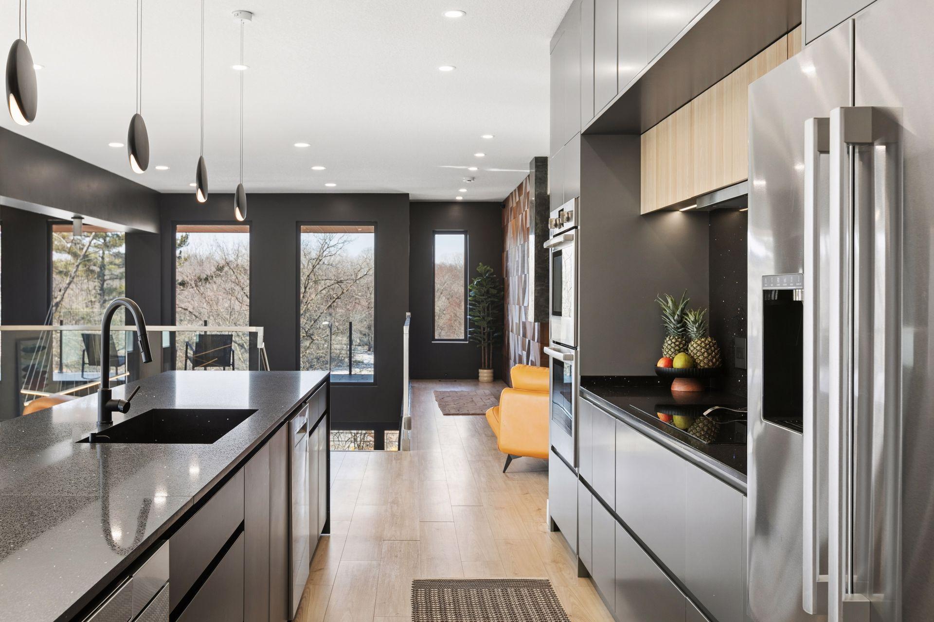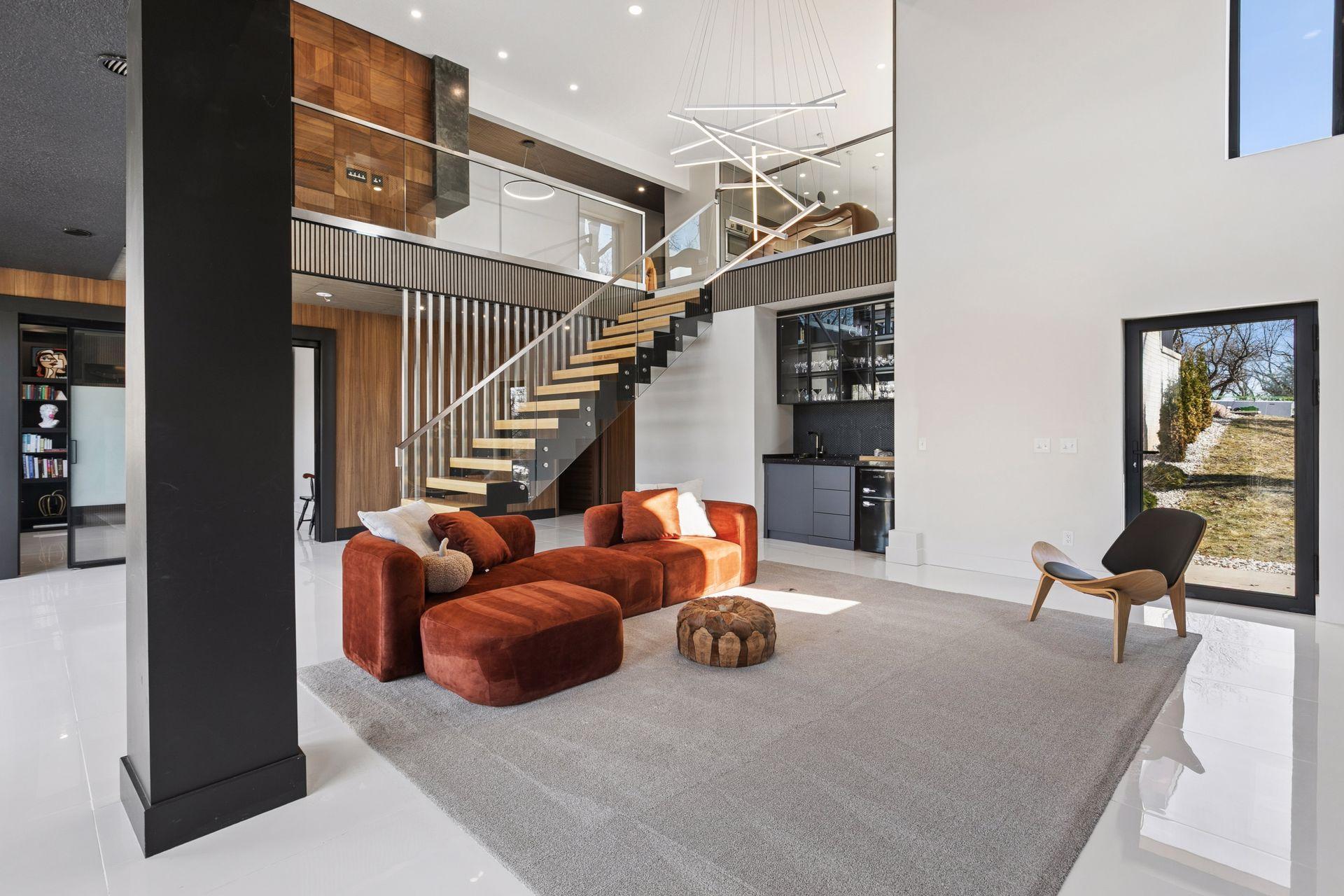Stunning Contemporary Home Overlooking Lake Emily and Lake Owasso. Perfectly perched on an elevated 0.42-acre lot, this exceptional 4-bedroom, 4-bath modern rambler offers over 3,800 finished square feet and breathtaking lake views. Enjoy deeded access to Lake Owasso, blending peaceful privacy with the best of lakeside living. Step inside to an expansive, light-filled open floor plan where clean lines and designer finishes shine throughout. The spacious living area features soaring ceilings and panoramic views, creating an inviting atmosphere ideal for both entertaining and everyday living. The main level (1,754 sq ft) showcases a welcoming foyer, dining room, mudroom with custom built-ins, laundry room, and a cozy sitting area. Step out onto the relaxing balcony and take in serene views of Lake Emily. The gourmet kitchen is a showpiece, featuring custom cabinetry, an oversized center island, pantry, and a generous dining area perfect for gatherings. Retreat to the luxurious primary suite, complete with a large walk-in closet and spa-inspired bath offering a tiled walk-in shower, standalone stone soaking tub, and a full glass sauna. A striking glass-and-steel staircase leads to the walkout lower level, where a sun-drenched two-story family room awaits, highlighted by a stunning built-in fireplace and wet bar. This level seamlessly connects to the patio and outdoor kitchen, making indoor-outdoor living effortless. Also on the lower level are three additional bedrooms, two bathrooms, a private office, media room, and a cozy amusement room—providing ample space for family and guests. This one-of-a-kind home is ideally located near parks, lakes, trails, shopping, and dining. Welcome home.