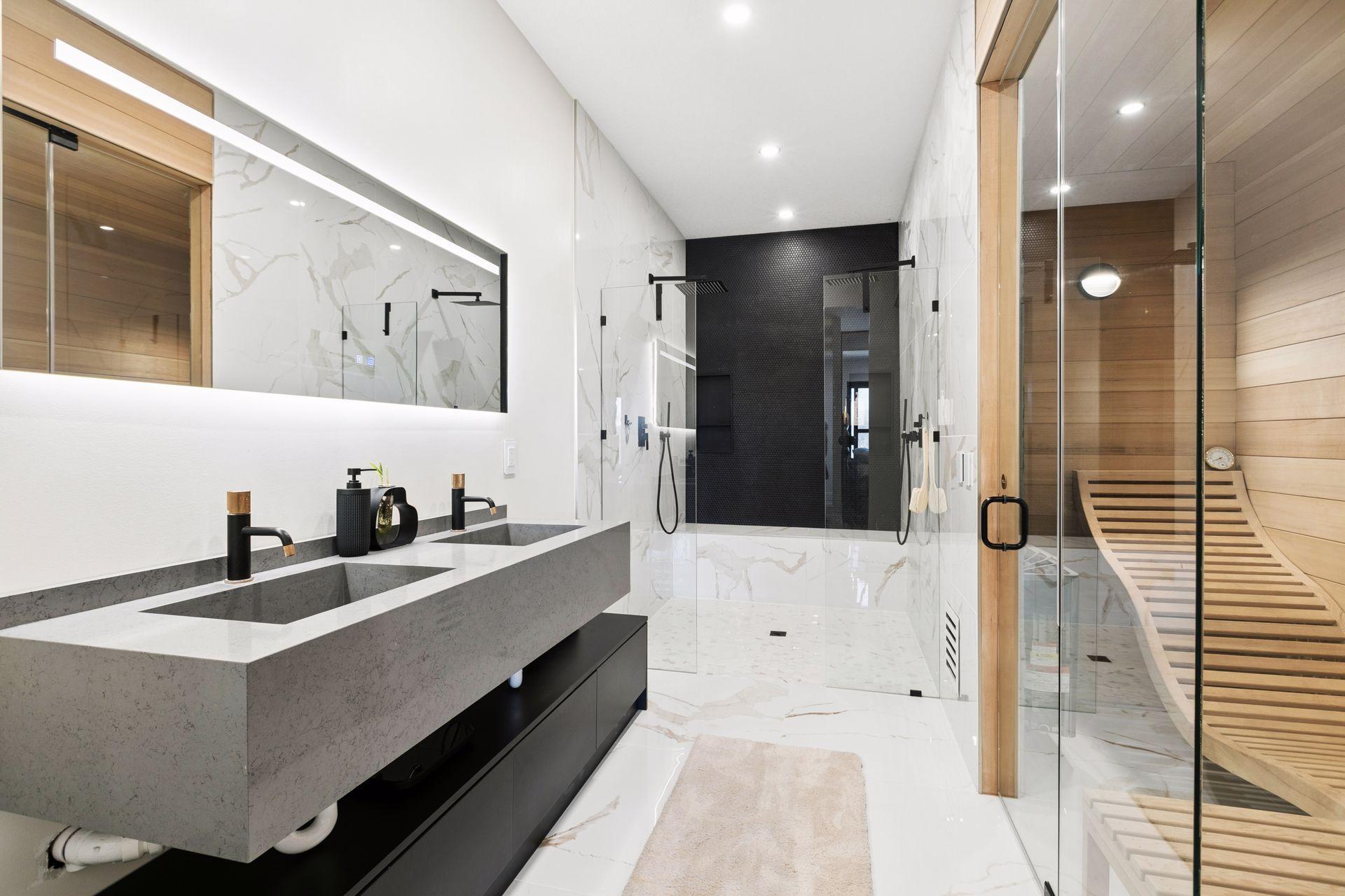 | Baths | Two Basement Baths,3/4 Basement,Double Sink,Bathroom Ensuite,Full Primary,Full Basement,His and Her Closets ,Private Primary,Main Floor 1/2 Bath,Sauna,Separate Tub & Shower |