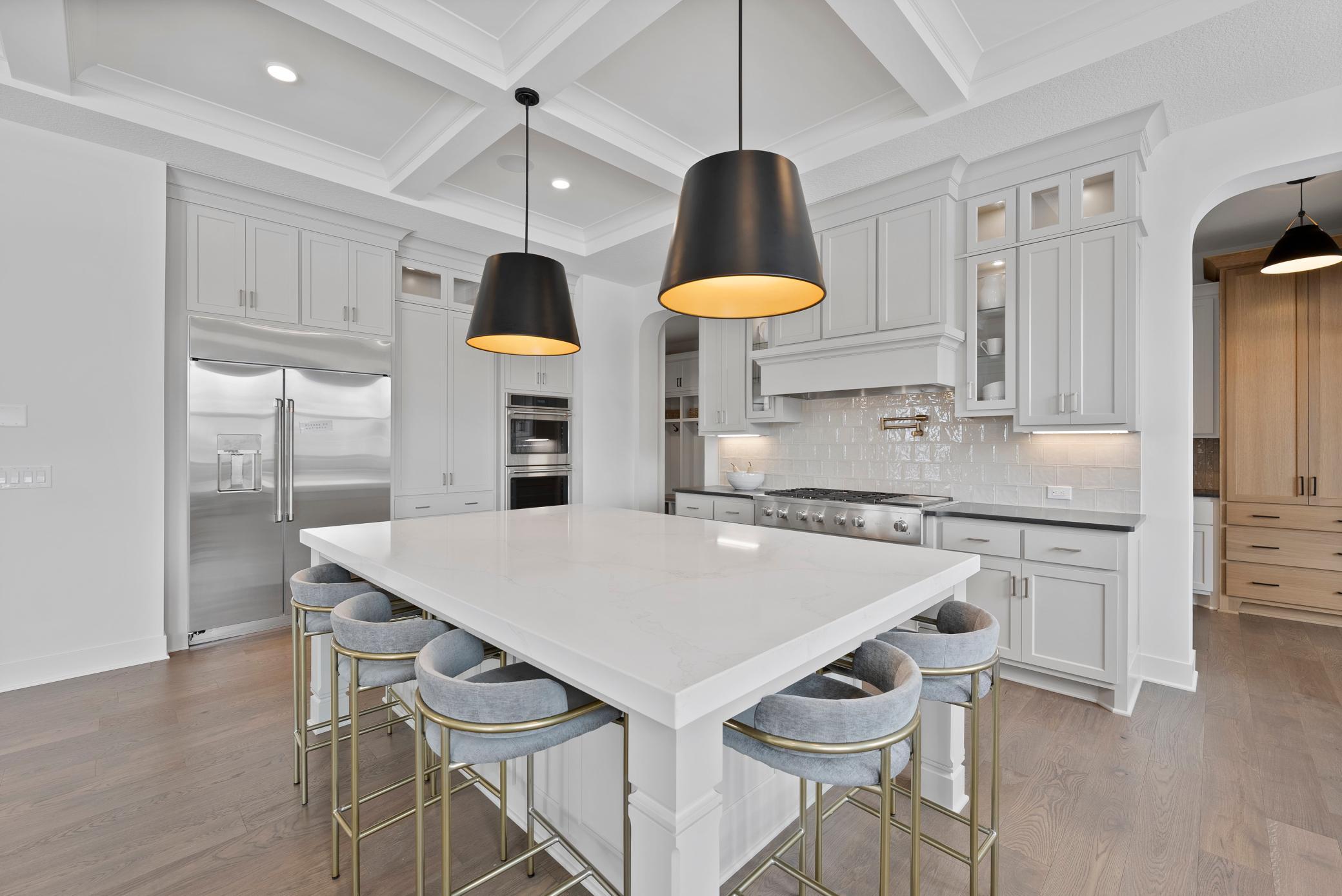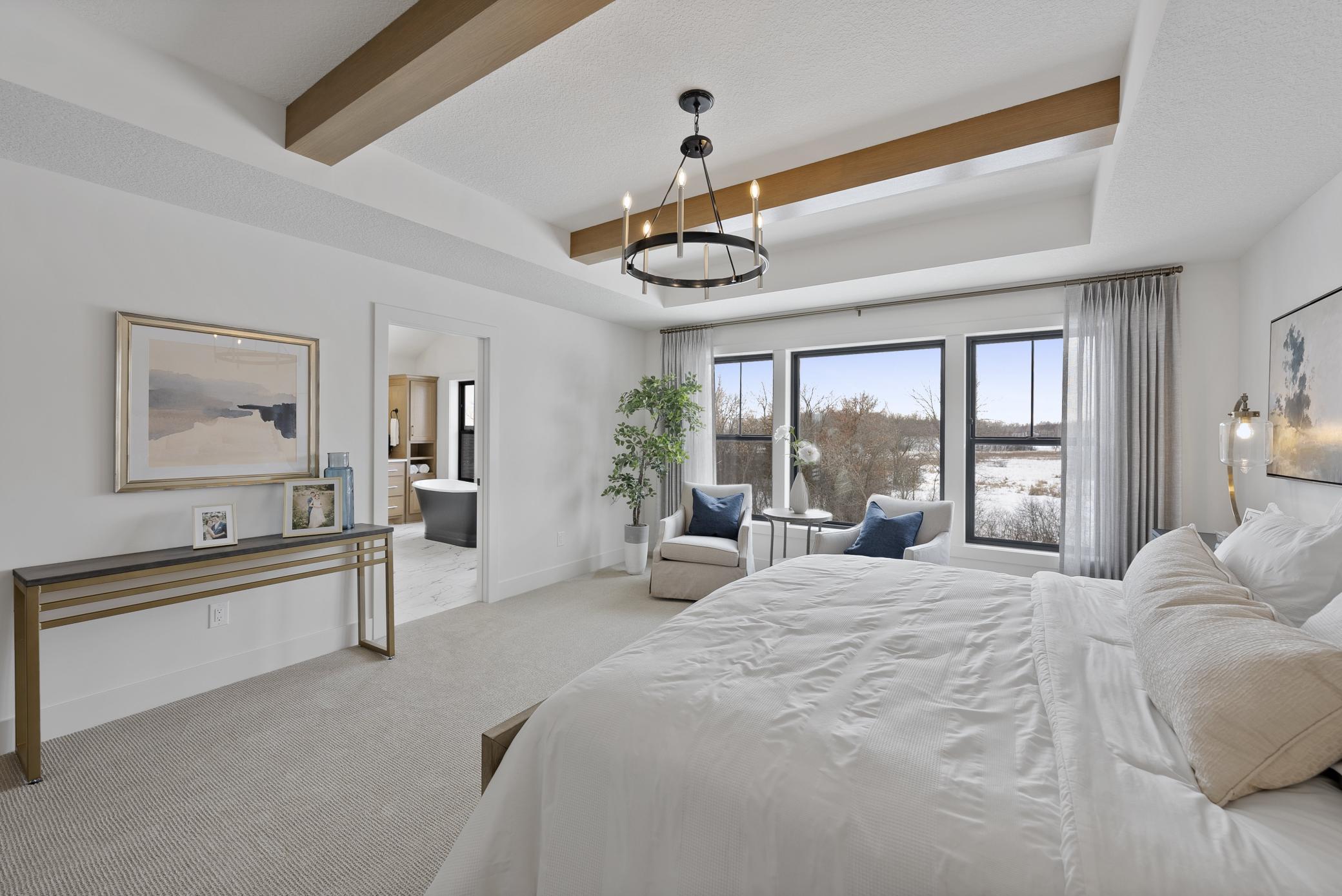 The Sheridan is one of Hanson Builders favorite home designs and will be ready to showcase this fall! Immediately notice the open and spacious feel of the 10'ceilings on the main, highly desired kitchen with oversized center island, large prep kitchen tucked behind with additional sink, beverage fridge, microwave and plenty of storage! Four-season porch with stone to ceiling fireplace. The upper level features 4 beds including Private Primary Suite with a stunning spa like bathroom; huge walk-in tile shower with glass wall and heated floors. Large bonus room perfect for a kids entertaining space! Fully finished LL with fifth bedroom, Indoor Sport Center, large exercise room, Custom Wet Bar, and so much more! Come feel the difference of a home that is designed for life, in a community that provides a serene setting and ample outdoor space! Built with superior methods and hands on experience. We have perfected this for over 45 years!!