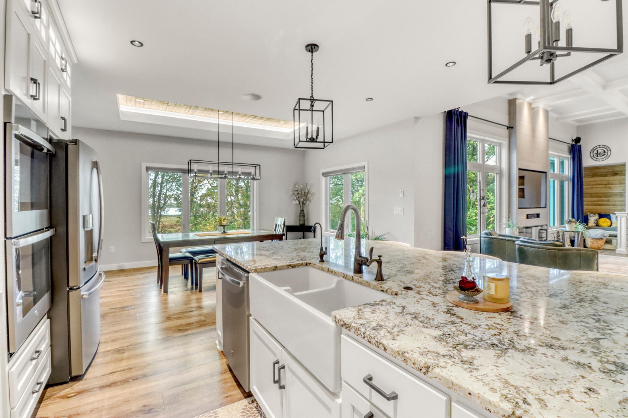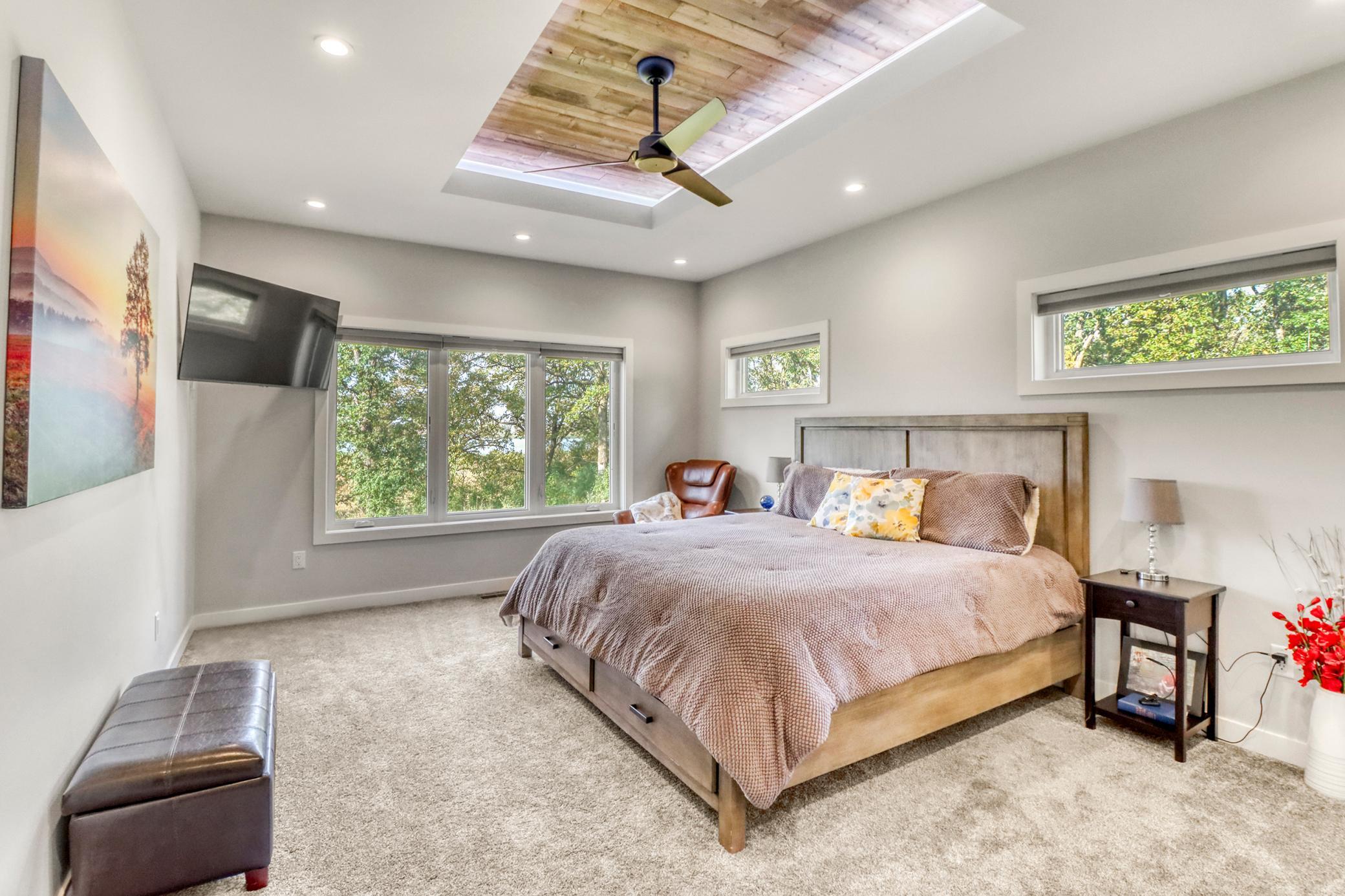 Must see one of a kind property! 5bed/5bath, (plus an office), custom built home sits on 34 acres, 2700 ft of lakeshore, 40x80 heated shop with finished bathroom. The home was designed with quality & functionality in mind. This home features a large spacious kitchen with butler's pantry, main floor primary bedroom with spa like bathroom with oversized shower & fireplace with soaker tub.