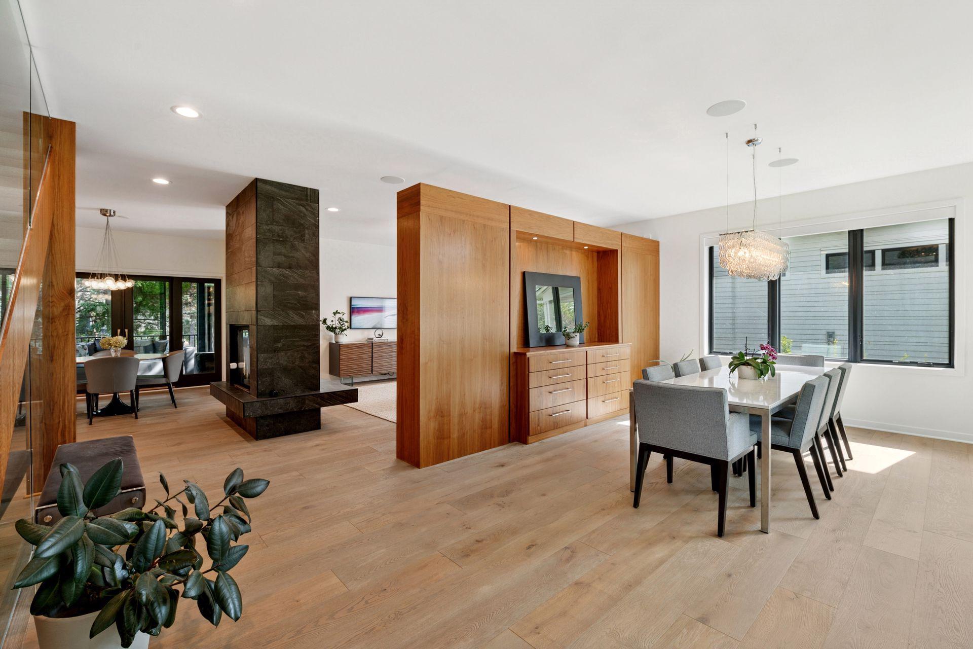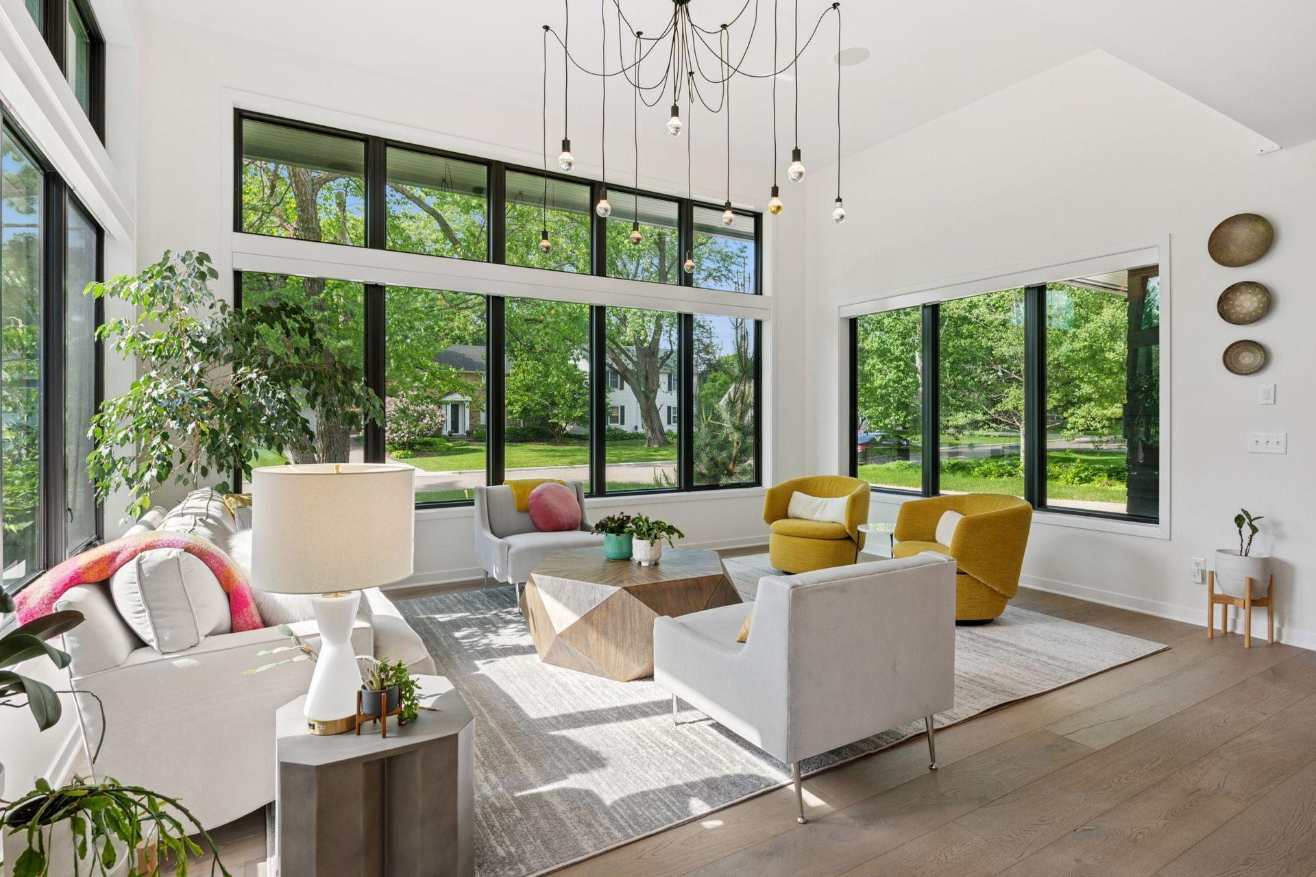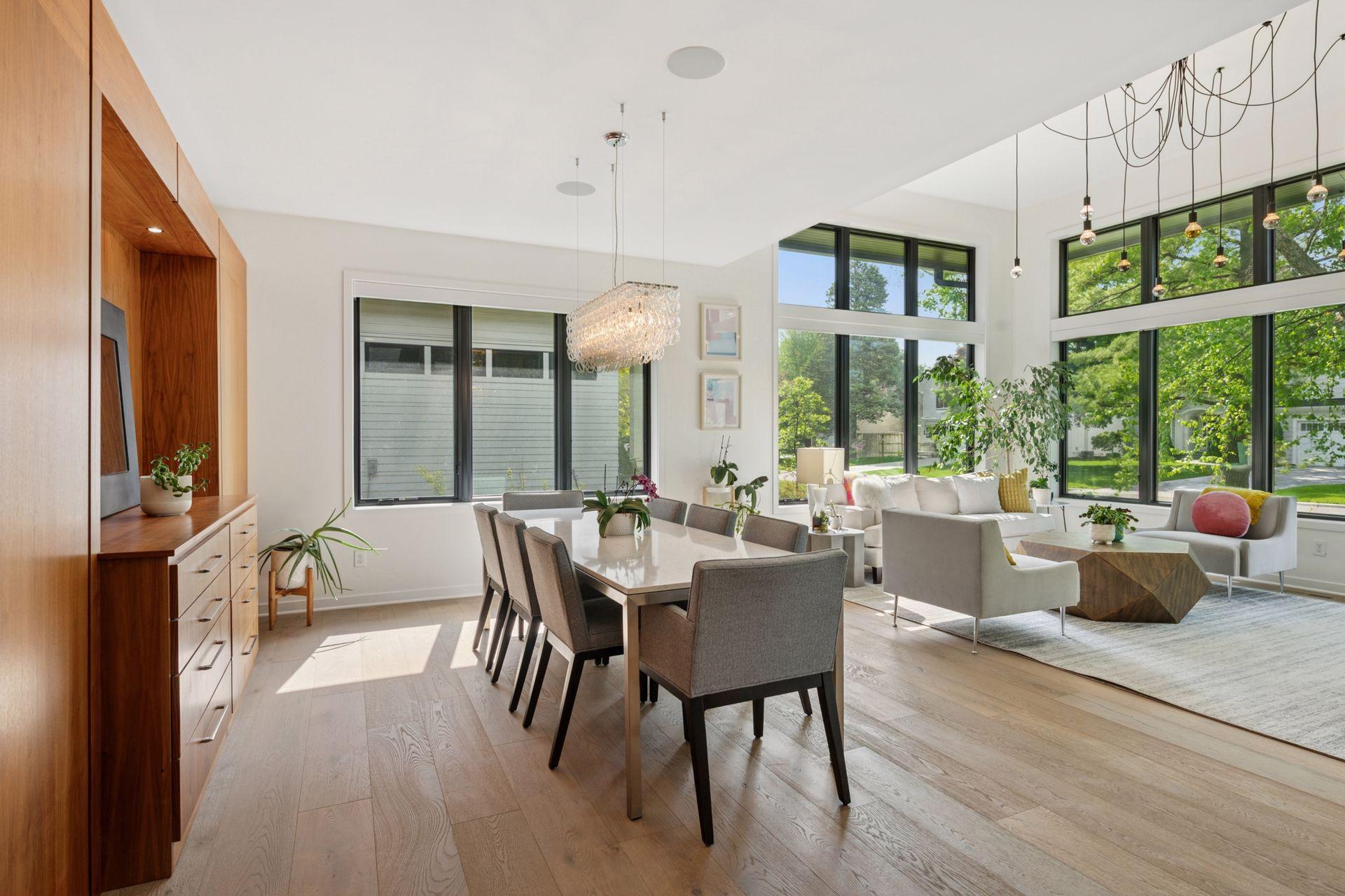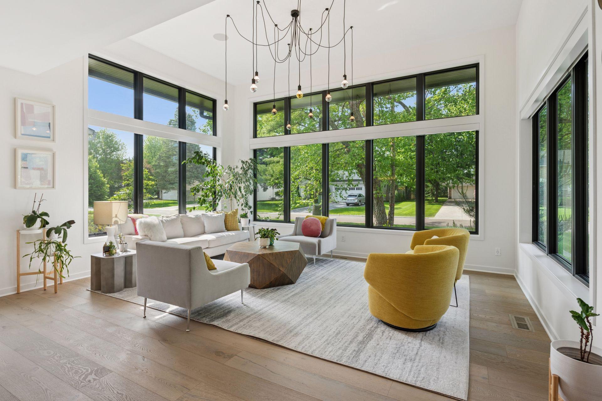 Welcome to 3516 Fuller Street in the heart of Edina, a masterpiece of organic modern design, thoughtfully crafted by Orfield Remodeling in 2016. This stunning 5-bedroom, 5-bath home exudes sophistication and comfort, with every detail carefully curated for modern living. Step inside and be greeted by an airy, light-filled sunroom with soaring ceilings that set the tone for this remarkable home. The formal dining room, complete with elegant built-ins, seamlessly blends style and function, while the chef’s kitchen is a true showstopper. Featuring sleek quartz countertops, soft-close cabinetry, a center island with seating, and top-of-the-line Thermador appliances, this space flows effortlessly into an informal dining area. From there, step out onto the maintenance-free deck or retreat to the screened porch’s perfect for enjoying Minnesota’s changing seasons. Ascend the architecturally striking glass-walled staircase to find four spacious bedrooms, including a luxurious primary suite. This sanctuary includes a custom wardrobe room and a spa-like private bath, complete with heated floors, a soaking tub, and a separate shower. The upper level also boasts a large, convenient laundry room. The lower level is designed for both entertaining and relaxation, with an expansive wet bar, an open family room, and a stylish storage wall that combines form and function. A fifth bedroom completes this versatile space, making it perfect for guests or multigenerational living. Located in one of Edina’s most sought-after neighborhoods, this home offers the perfect blend of modern elegance and practical design. Don’t miss your chance to make this extraordinary home your own!