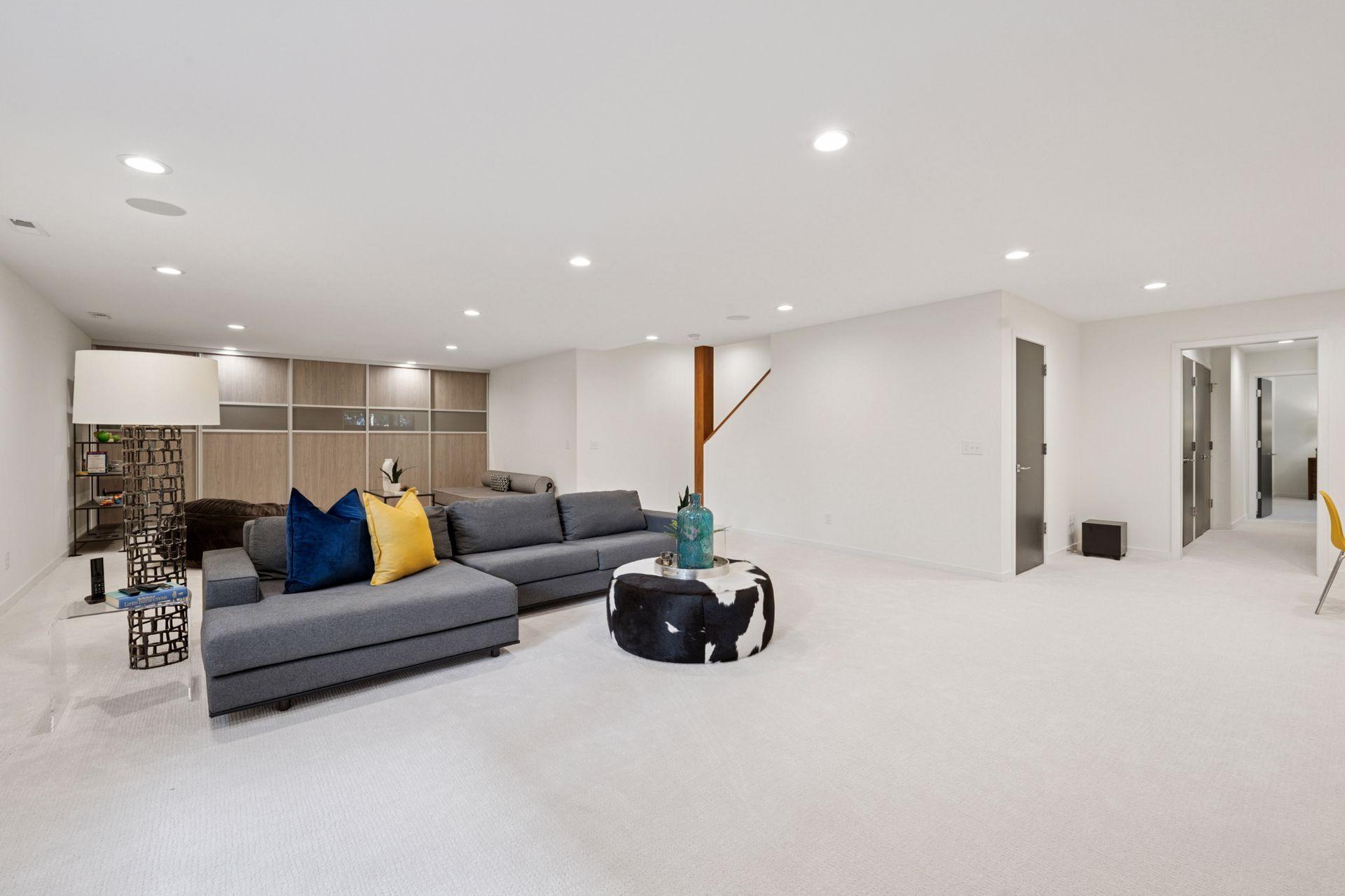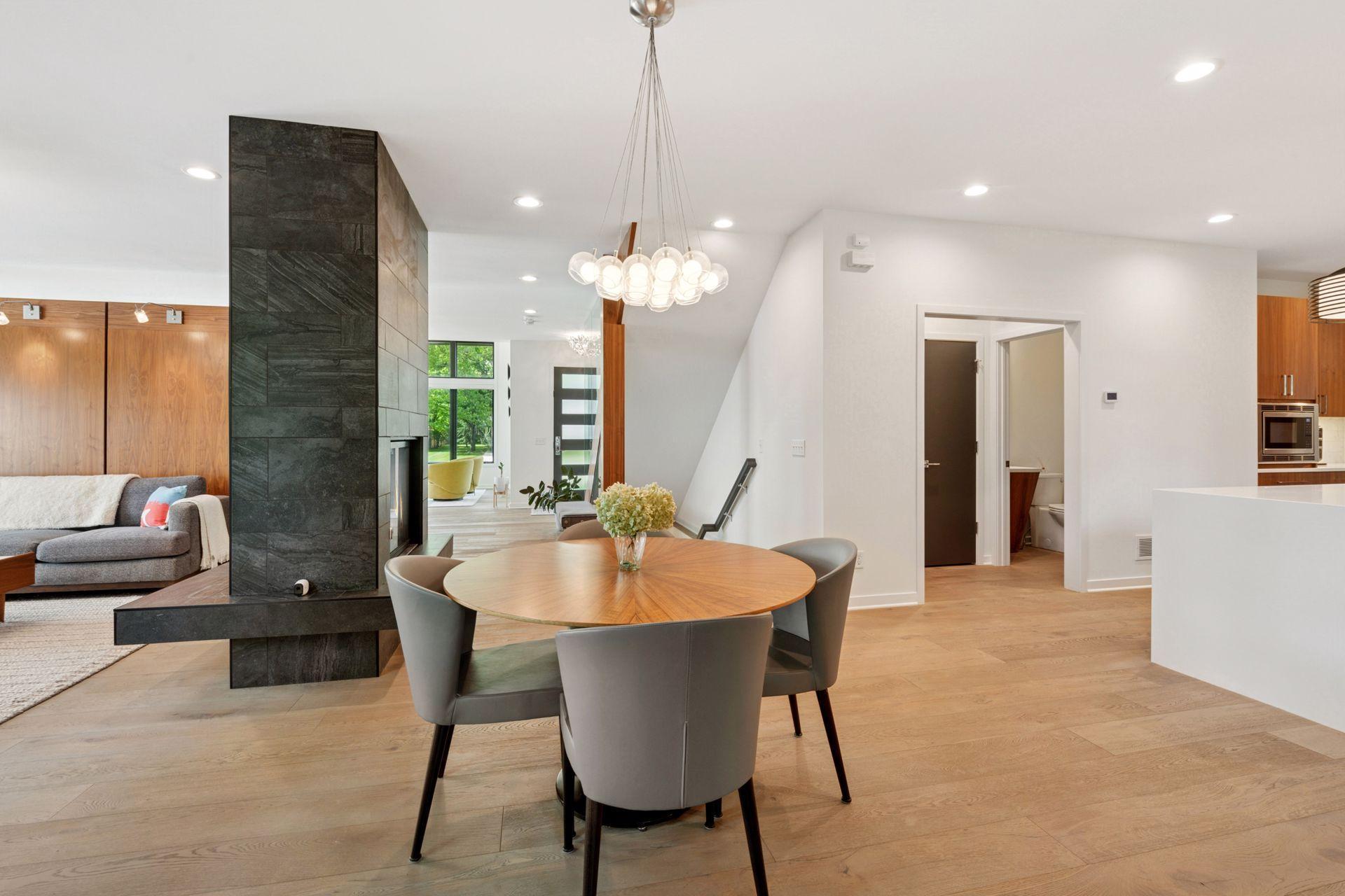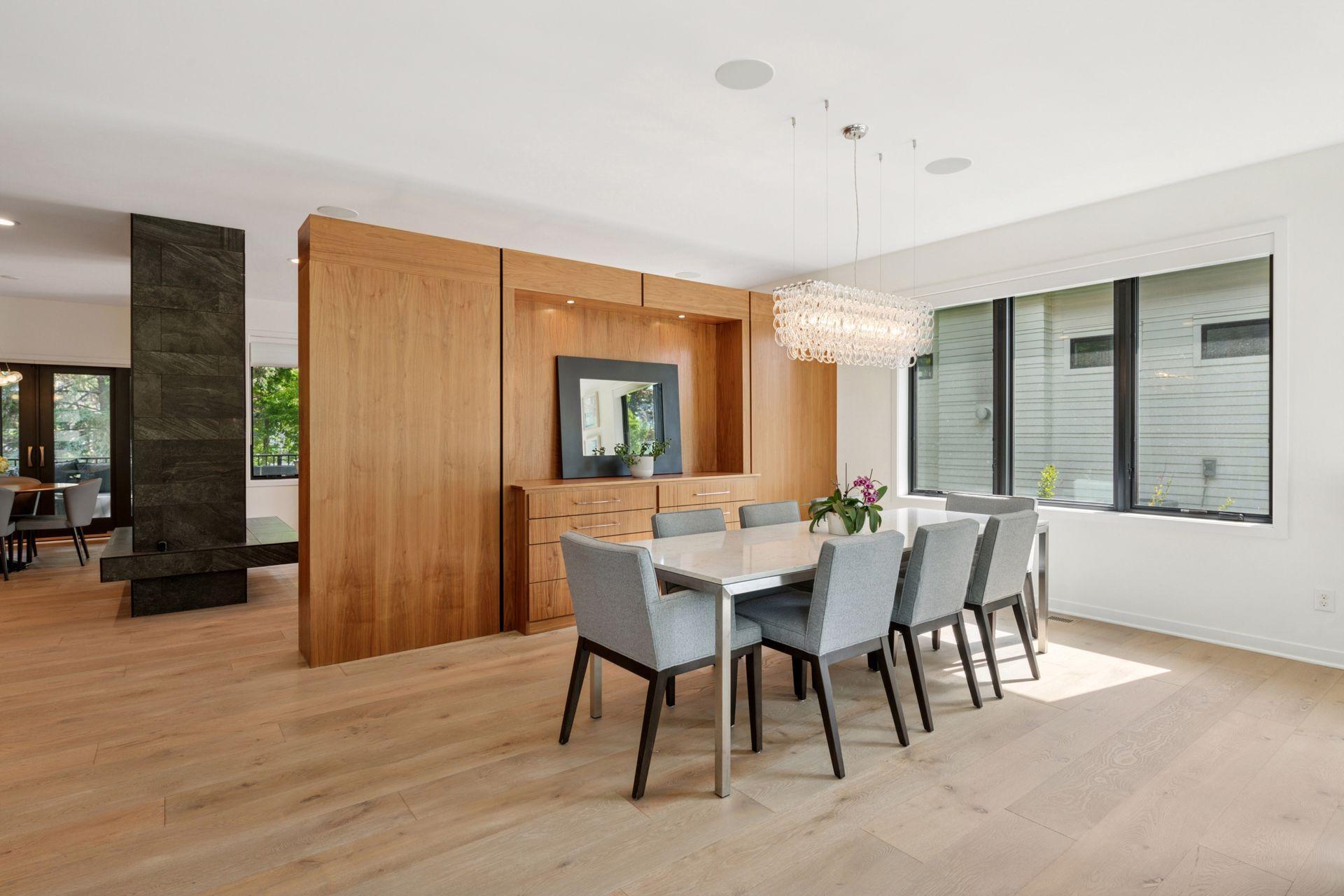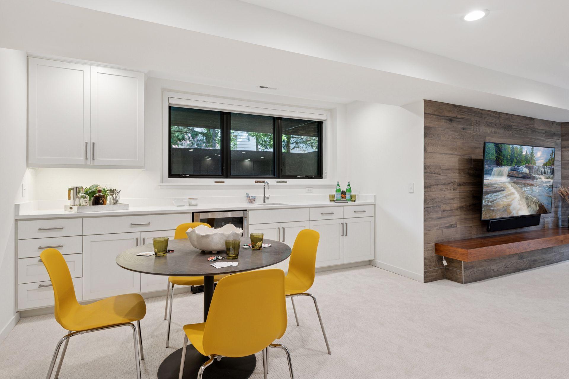 Welcome to 3516 Fuller Street in the heart of Edina, a masterpiece of organic modern design, thoughtfully crafted by Orfield Remodeling in 2016. This stunning 5-bedroom, 5-bath home exudes sophistication and comfort, with every detail carefully curated for modern living. Step inside and be greeted by an airy, light-filled sunroom with soaring ceilings that set the tone for this remarkable home. The formal dining room, complete with elegant built-ins, seamlessly blends style and function, while the chef’s kitchen is a true showstopper. Featuring sleek quartz countertops, soft-close cabinetry, a center island with seating, and top-of-the-line Thermador appliances, this space flows effortlessly into an informal dining area. From there, step out onto the maintenance-free deck or retreat to the screened porch’s perfect for enjoying Minnesota’s changing seasons. Ascend the architecturally striking glass-walled staircase to find four spacious bedrooms, including a luxurious primary suite. This sanctuary includes a custom wardrobe room and a spa-like private bath, complete with heated floors, a soaking tub, and a separate shower. The upper level also boasts a large, convenient laundry room. The lower level is designed for both entertaining and relaxation, with an expansive wet bar, an open family room, and a stylish storage wall that combines form and function. A fifth bedroom completes this versatile space, making it perfect for guests or multigenerational living. Located in one of Edina’s most sought-after neighborhoods, this home offers the perfect blend of modern elegance and practical design. Don’t miss your chance to make this extraordinary home your own!