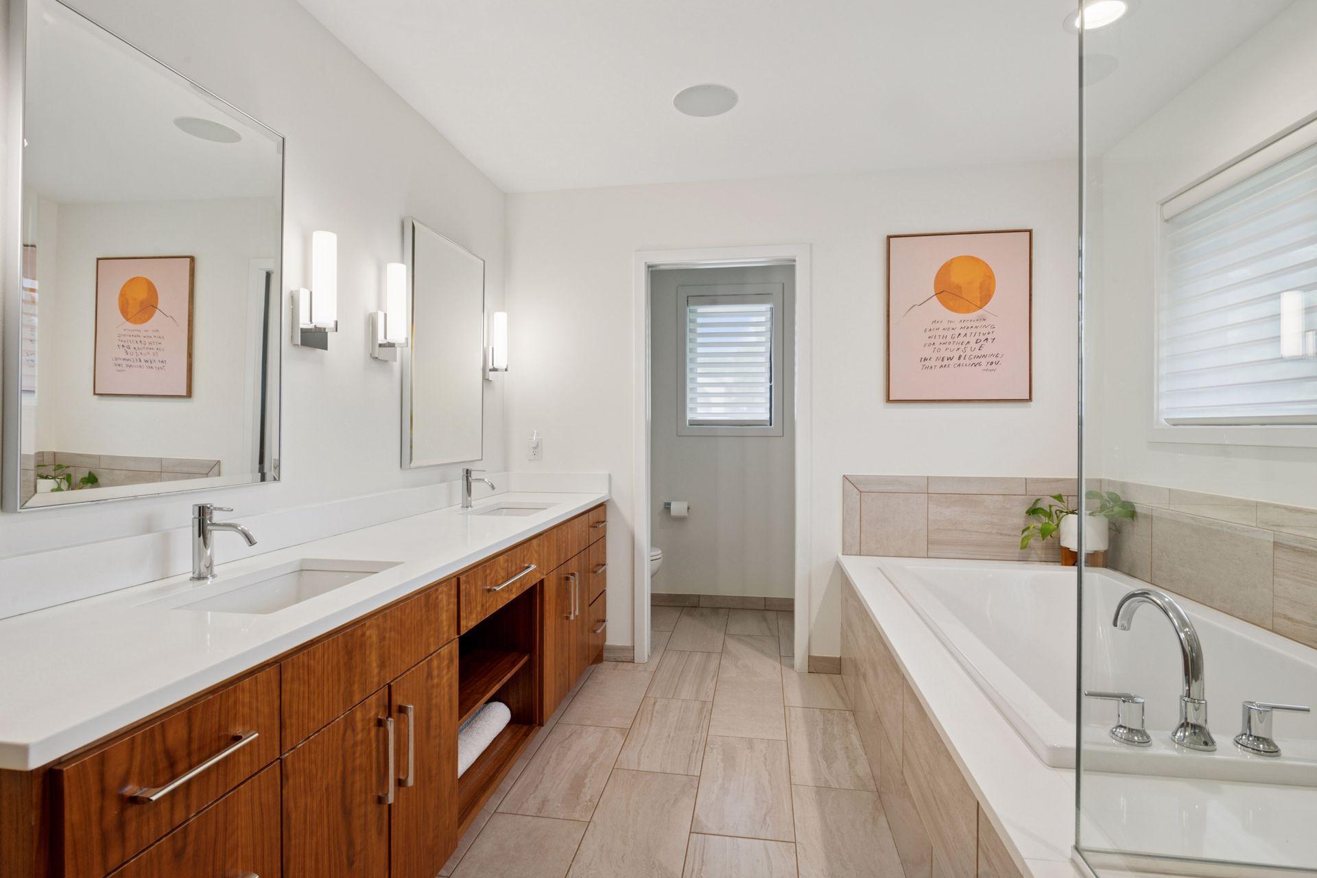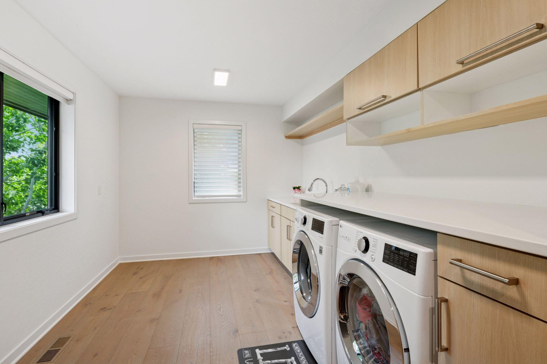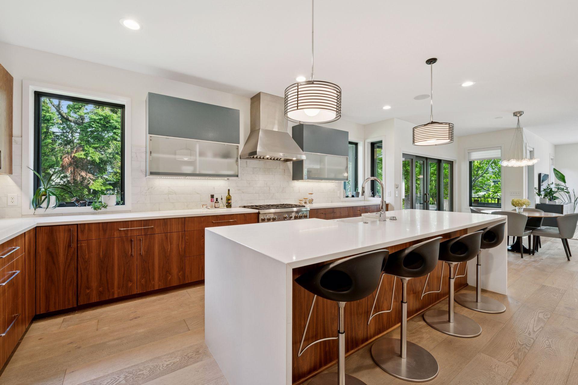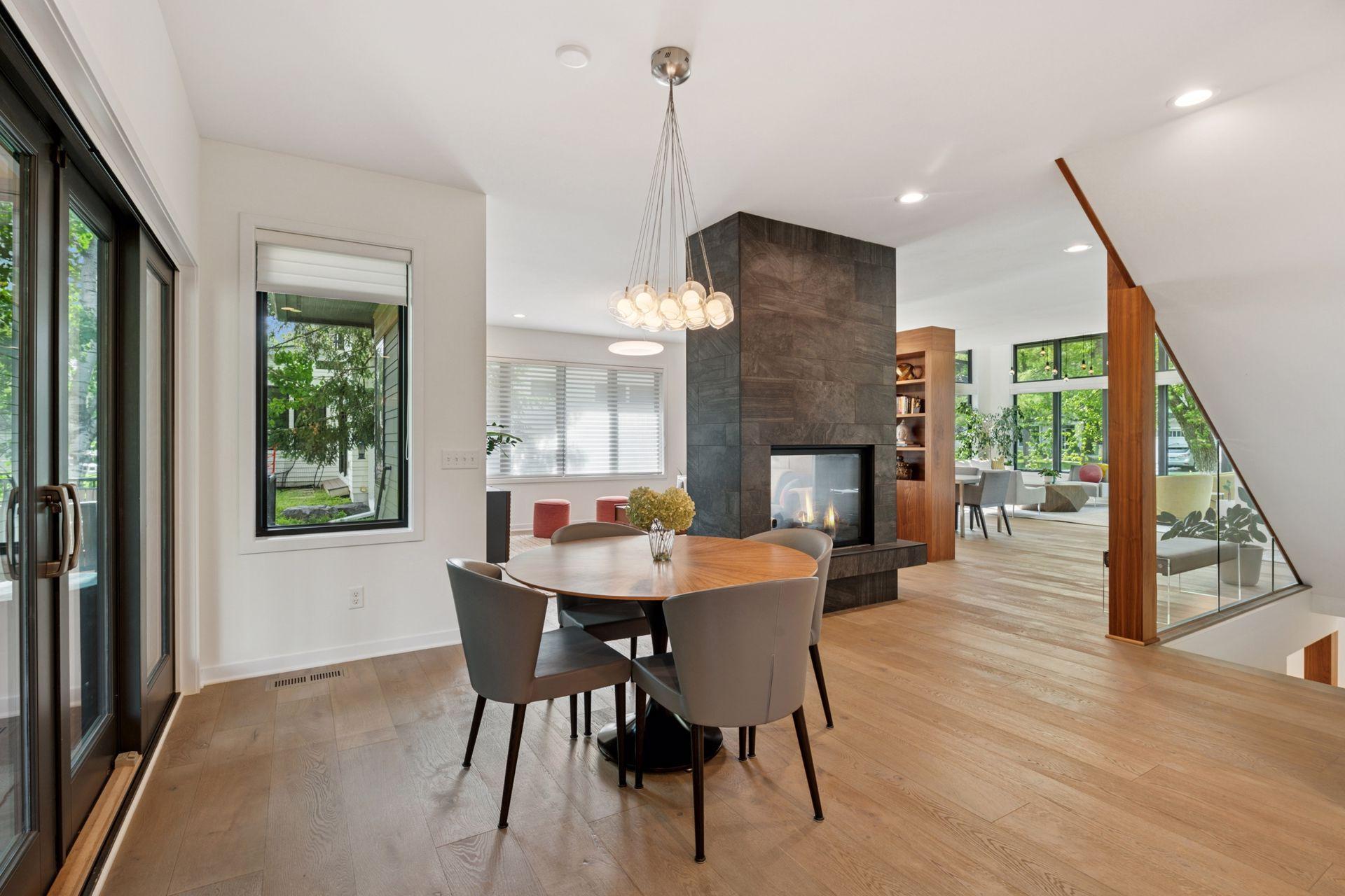Welcome to 3516 Fuller Street in the heart of Edina, a masterpiece of organic modern design, thoughtfully crafted by Orfield Remodeling in 2016. This stunning 5-bedroom, 5-bath home exudes sophistication and comfort, with every detail carefully curated for modern living. Step inside and be greeted by an airy, light-filled sunroom with soaring ceilings that set the tone for this remarkable home. The formal dining room, complete with elegant built-ins, seamlessly blends style and function, while the chef’s kitchen is a true showstopper. Featuring sleek quartz countertops, soft-close cabinetry, a center island with seating, and top-of-the-line Thermador appliances, this space flows effortlessly into an informal dining area. From there, step out onto the maintenance-free deck or retreat to the screened porch’s perfect for enjoying Minnesota’s changing seasons. Ascend the architecturally striking glass-walled staircase to find four spacious bedrooms, including a luxurious primary suite. This sanctuary includes a custom wardrobe room and a spa-like private bath, complete with heated floors, a soaking tub, and a separate shower. The upper level also boasts a large, convenient laundry room. The lower level is designed for both entertaining and relaxation, with an expansive wet bar, an open family room, and a stylish storage wall that combines form and function. A fifth bedroom completes this versatile space, making it perfect for guests or multigenerational living. Located in one of Edina’s most sought-after neighborhoods, this home offers the perfect blend of modern elegance and practical design. Don’t miss your chance to make this extraordinary home your own!