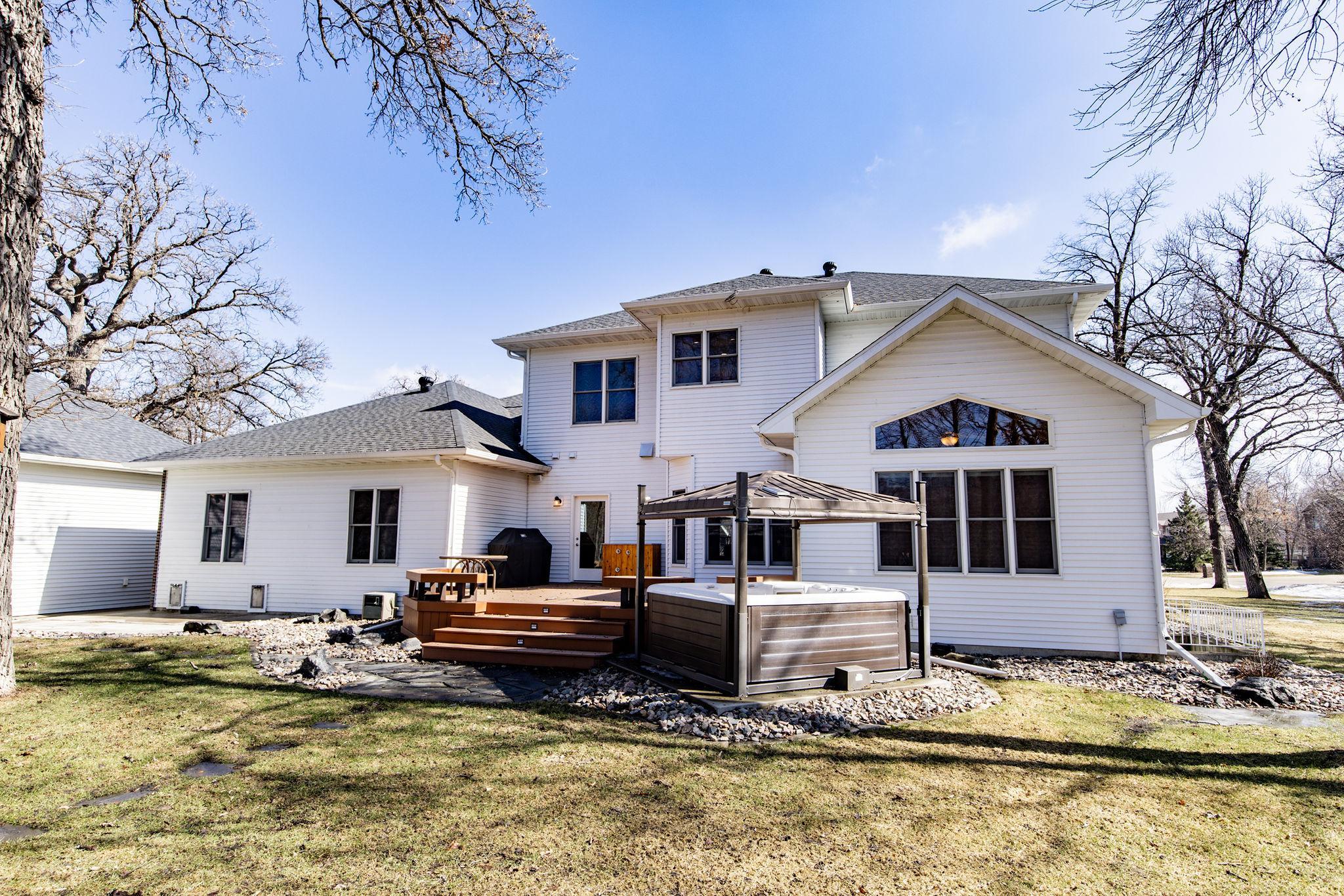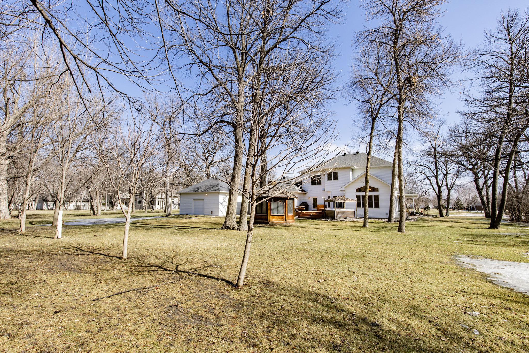 Your Sheyenne River retreat has arrived. Set on nearly 2 acres of private, tree-lined riverfront land, this 5-bedroom, 4-bathroom home offers over 5,500 square feet of meticulously updated living space with stunning river views. The kind of peaceful setting that is hard to find, yet still right in town. Add to that, extremely low remaining special assessments; this property checks all the boxes. From top to bottom, this home has been thoughtfully renovated. The basement was taken to the studs in 2019, and finished with spray foam insulation, a home theatre, full sound system, security and media setup, and all new mechanicals including furnaces, AC units, air exchanger, humidifiers, fireplace, and water filtration. The main floor followed in 2020 with a full kitchen rebuild featuring high-end appliances, new cabinetry, countertops, and hardwood floors throughout. The primary suite and bath were fully refreshed in 2022. Most recently, fresh paint was added throughout the main and second floors, new attic insulation was installed across the home and attached garage, and the attached garage floor was professionally epoxied. The roof, installed in 2019, includes a 50-year, 130 MPH wind warranty. Step outside and enjoy the oversized private lot from the maintenance free deck or the backyard gazebo overlooking the river. Whether it is a quiet morning coffee or an evening with friends, the setting delivers every time. For anyone needing serious garage space, the attached 3-stall with bonus workshop and basketball area totals over 1,500 square feet, with a separate detached 2-stall rounding it out even further. A coveted riverfront lot, a spacious and beautifully updated home, and garage space that most can only dream of! Schedule your private showing today.