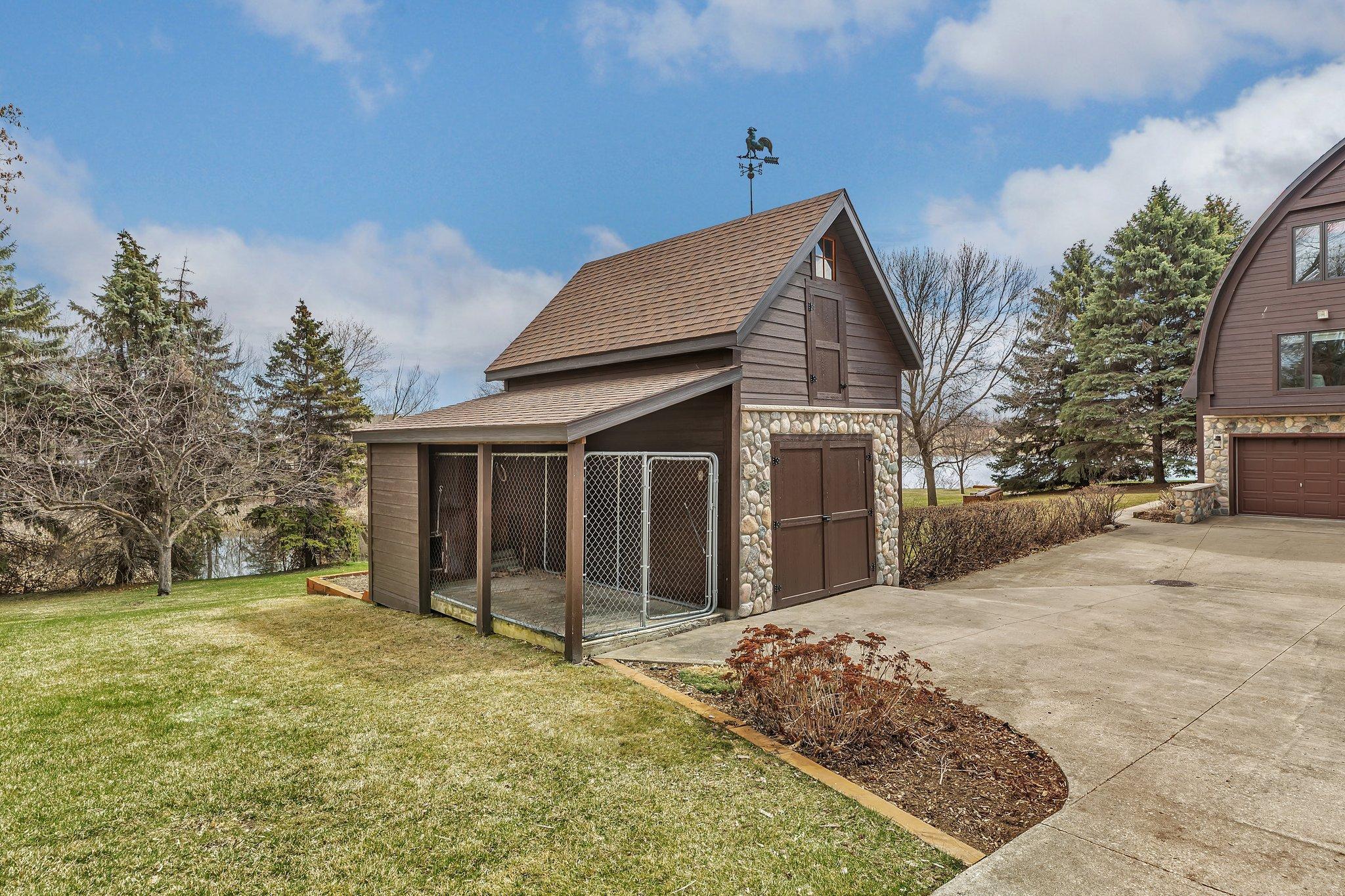 Tucked away off a tarred dead-end road, on a serene, park-like 2.5-acre parcel with over 300 feet of pristine lakeshore, this architecturally striking residence—designed in the timeless form of a quintessential barn—exudes understated luxury and refined charm. Bordered by a meticulously manicured lawn, the cement driveway leads to a one-of-a-kind estate that seamlessly blends rustic elegance with modern sophistication. Inside, soaring ceilings and a dramatic wall of lakeside windows bathe the living spaces in natural light, offering uninterrupted views of sparkling Lake Latoka. The custom kitchen is a culinary masterpiece, featuring high-end appliances, granite countertops, a built-in buffet, and rich wood flooring that flows through the main entry, kitchen, and dining areas. The expansive main floor includes the owner's suite, a well-appointed office with built-ins, a powder room, laundry room, and a gracious living room that opens to an oversized deck—perfect for morning coffee or evening sunsets over the lake. The upper level boasts an airy loft, two spacious bedrooms with generous walk-in closets and additional attic storage, and a well-appointed full bath. The walkout lower level is designed for comfort and entertaining, complete with a family room, fourth bedroom, ¾ bath, and a lakeside three-season porch with hot tub and sauna. An oversized three-stall attached garage with 2 storage rooms, custom silo gazebo with a wood dome ceiling, additional storage shed with built in dog kennel, and beautifully manicured grounds complete this exceptional offering. Rarely does an opportunity arise to own a legacy property of such architectural distinction, natural beauty, and unparalleled lakeshore on Lake Latoka.