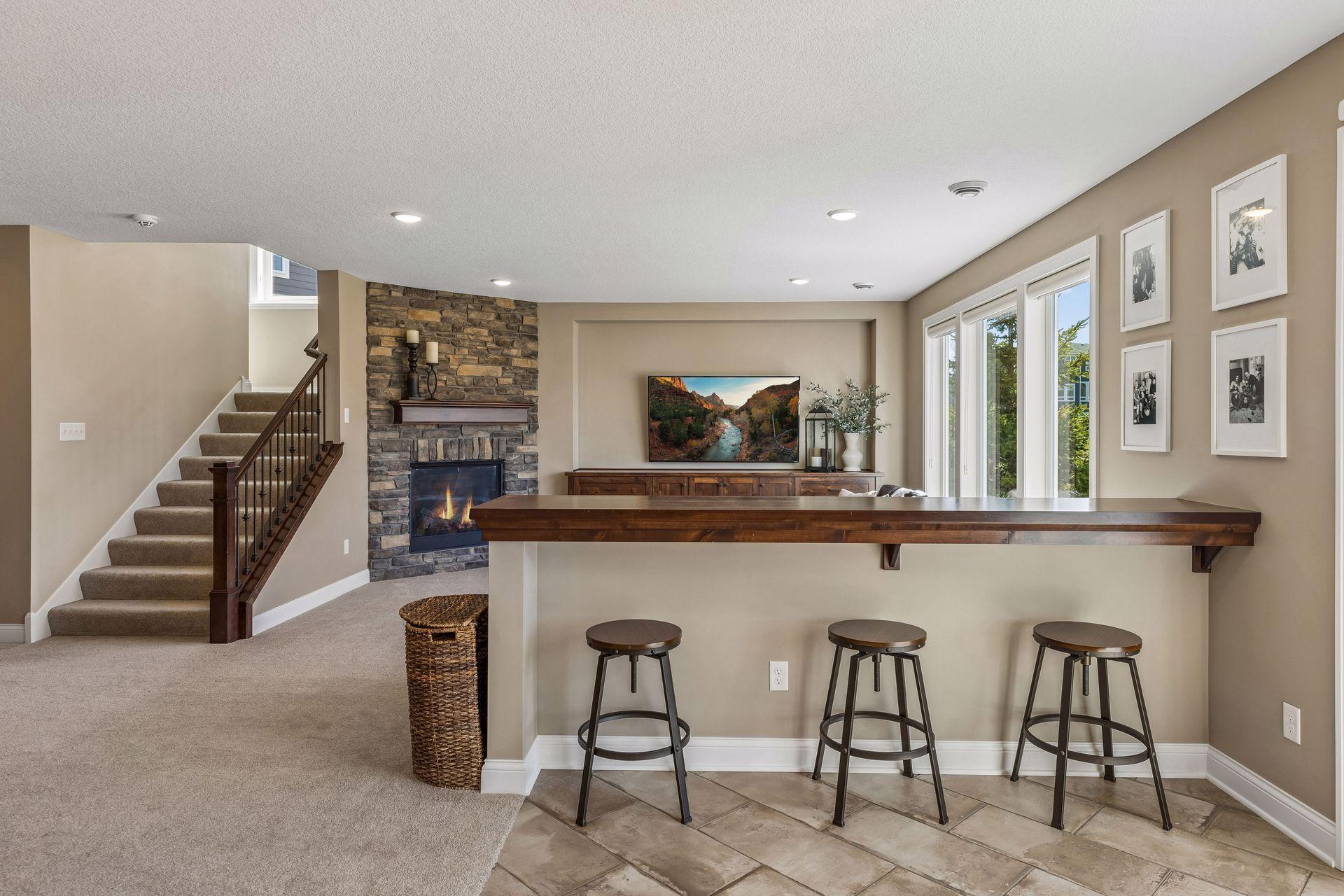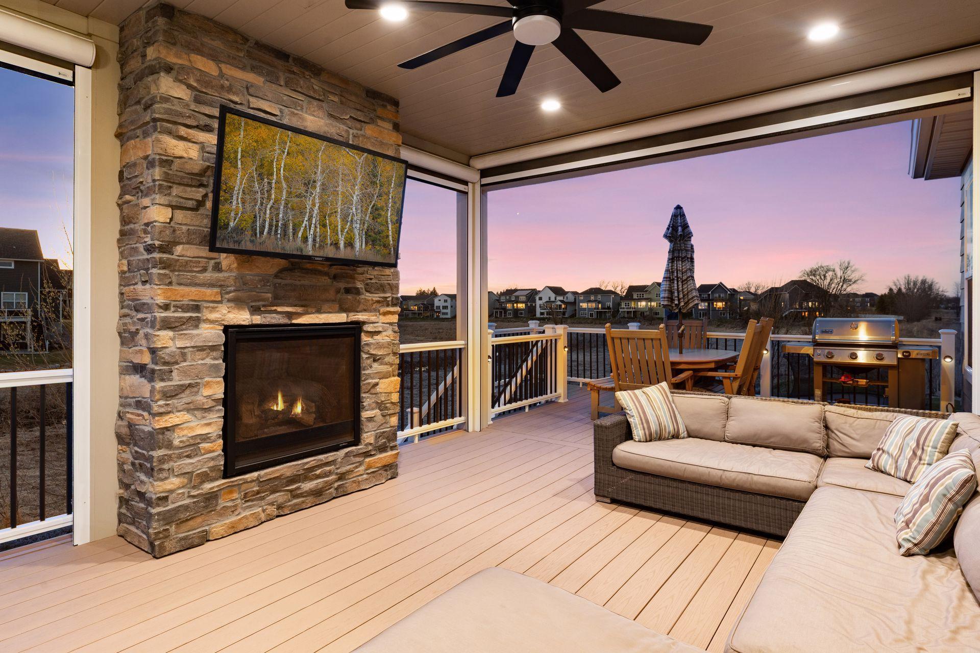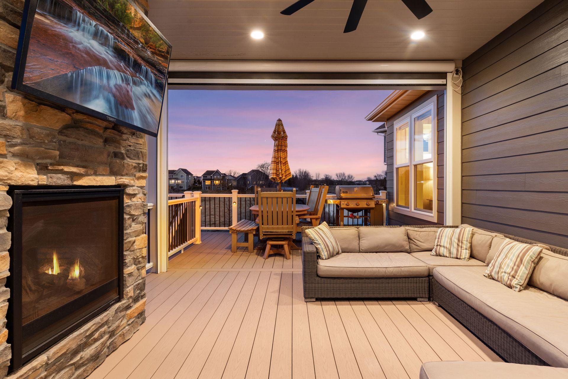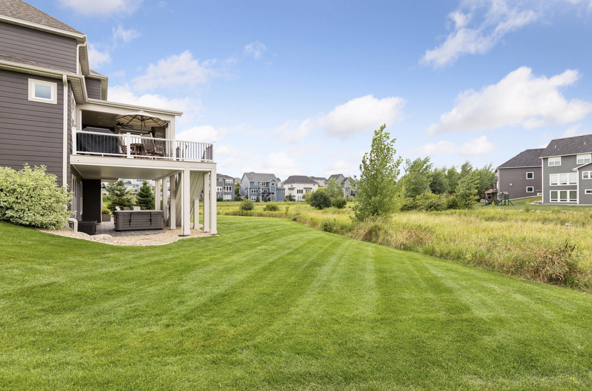 Welcome to this exceptional custom-built home in the highly sought-after Maple Creek Meadows neighborhood—perfectly situated within walking distance to Meadow Ridge Elementary. Built in 2017 by Hanson Builders, this thoughtfully designed residence blends luxury, comfort, and functionality across every level. The main floor showcases an inviting angled kitchen with a dedicated coffee bar, an eat-in dinette, and a formal dining room—ideal for both everyday living and entertaining. A private study offers a quiet workspace, while the Great Room is filled with natural light from stunning 84" windows. A versatile main-level bedroom—perfect as a guest suite or sunroom—features its own cozy fireplace, and is complemented by a nearby 3/4 bathroom with a convenient roll-in shower. Upstairs, you'll find four spacious bedrooms, including a luxurious Owner’s Suite retreat complete with a spa-like bathroom featuring a steam shower, soaking tub, and a generous walk-in closet. A bonus room with a closet offers flexibility as a fifth upper-level bedroom if desired. The home’s outdoor living spaces are equally impressive. Enjoy the screened porch with fireplace and Phantom screens—perfect for relaxing year-round. Step out to a maintenance-free deck overlooking a beautifully landscaped yard with a paver patio, built-in fire pit with gas line, and a hot tub—all set against breathtaking panoramic views of a pond and serene wetlands. The lower level is designed for entertainment and recreation, featuring a spacious family room with fireplace and built-in cabinetry, a theater rail, wet bar, exercise room, whimsical kids’ fort, an additional bedroom, and bathroom. Additional highlights include an insulated and heated garage with epoxy flooring and ample storage, as well as Hunter Douglas blinds throughout the home. This is a rare opportunity to own a truly remarkable home in an unbeatable location—where thoughtful design meets everyday luxury.