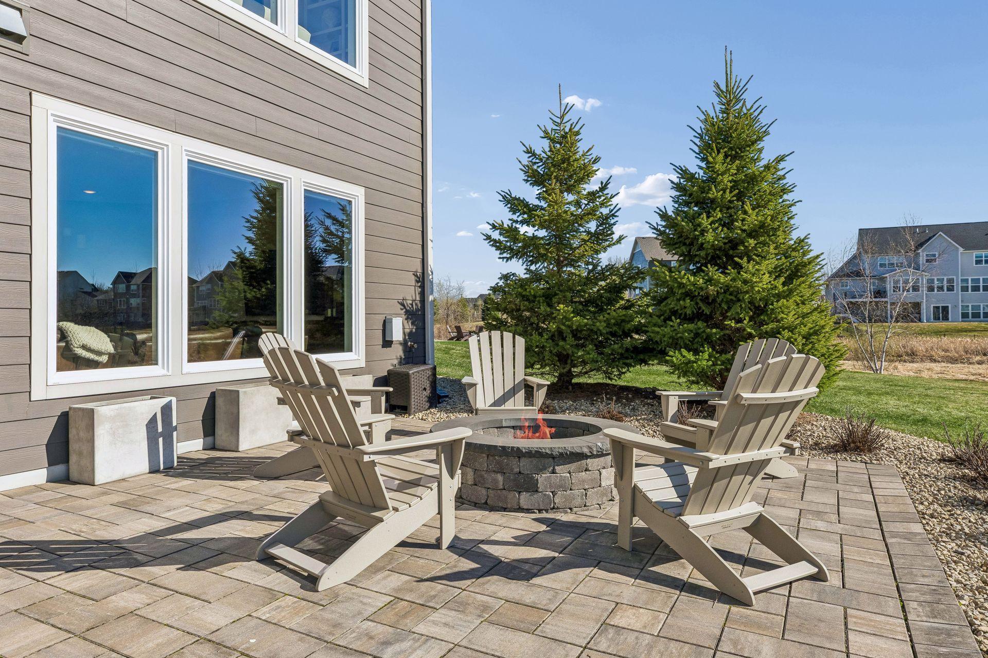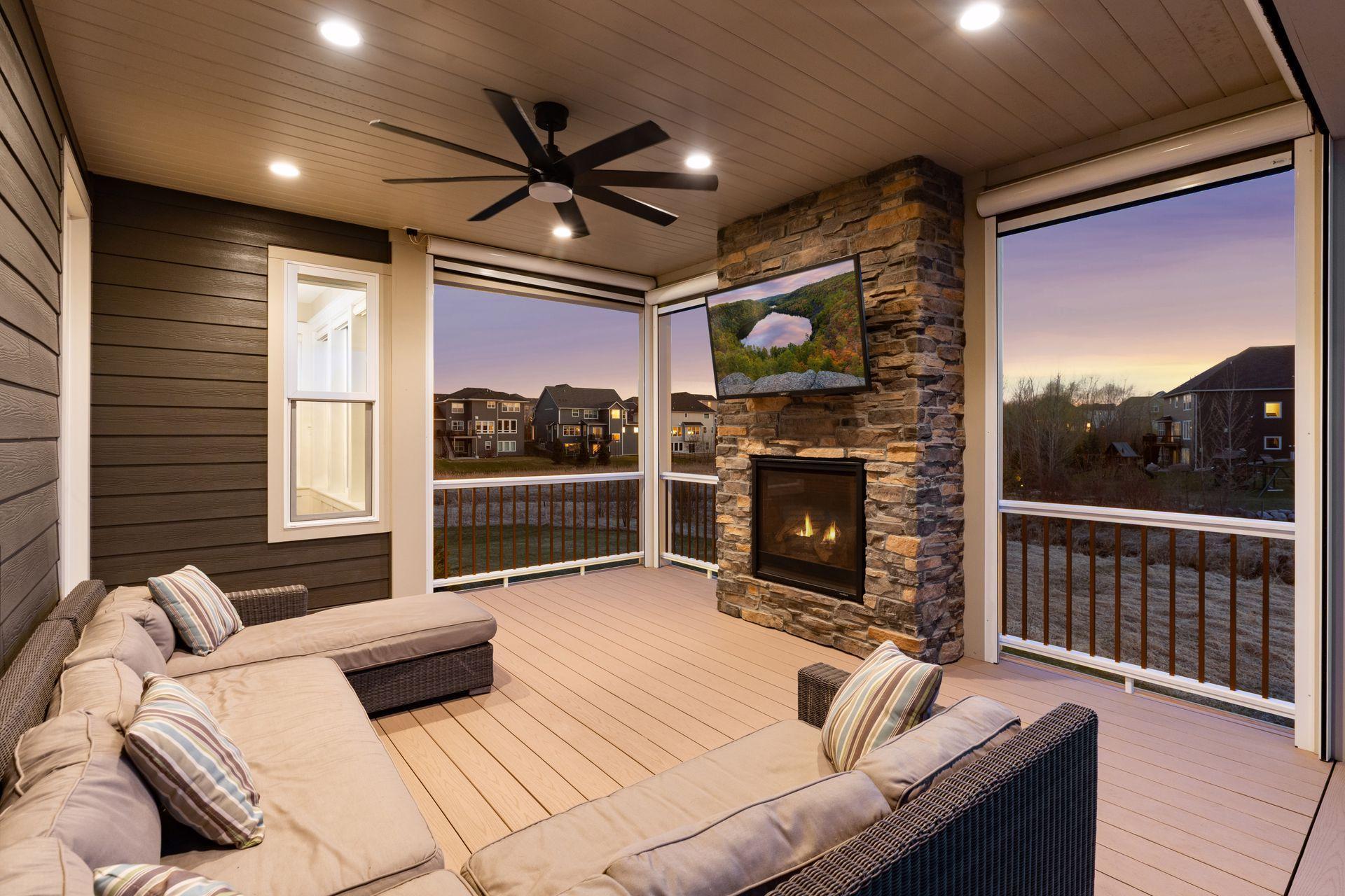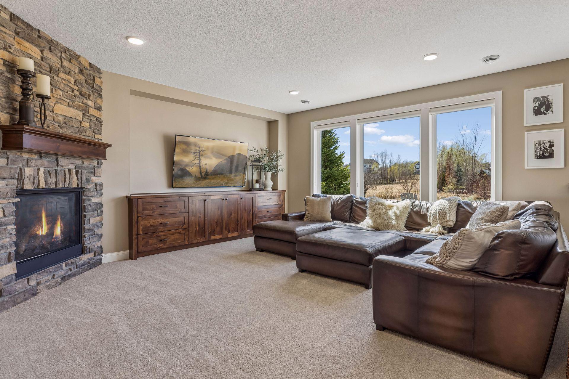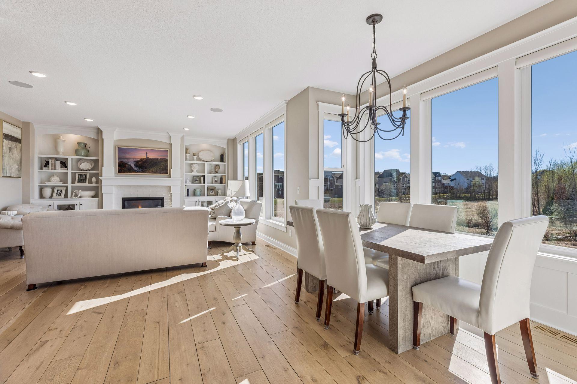 Welcome to this exceptional custom-built home in the highly sought-after Maple Creek Meadows neighborhood—perfectly situated within walking distance to Meadow Ridge Elementary. Built in 2017 by Hanson Builders, this thoughtfully designed residence blends luxury, comfort, and functionality across every level. The main floor showcases an inviting angled kitchen with a dedicated coffee bar, an eat-in dinette, and a formal dining room—ideal for both everyday living and entertaining. A private study offers a quiet workspace, while the Great Room is filled with natural light from stunning 84" windows. A versatile main-level bedroom—perfect as a guest suite or sunroom—features its own cozy fireplace, and is complemented by a nearby 3/4 bathroom with a convenient roll-in shower. Upstairs, you'll find four spacious bedrooms, including a luxurious Owner’s Suite retreat complete with a spa-like bathroom featuring a steam shower, soaking tub, and a generous walk-in closet. A bonus room with a closet offers flexibility as a fifth upper-level bedroom if desired. The home’s outdoor living spaces are equally impressive. Enjoy the screened porch with fireplace and Phantom screens—perfect for relaxing year-round. Step out to a maintenance-free deck overlooking a beautifully landscaped yard with a paver patio, built-in fire pit with gas line, and a hot tub—all set against breathtaking panoramic views of a pond and serene wetlands. The lower level is designed for entertainment and recreation, featuring a spacious family room with fireplace and built-in cabinetry, a theater rail, wet bar, exercise room, whimsical kids’ fort, an additional bedroom, and bathroom. Additional highlights include an insulated and heated garage with epoxy flooring and ample storage, as well as Hunter Douglas blinds throughout the home. This is a rare opportunity to own a truly remarkable home in an unbeatable location—where thoughtful design meets everyday luxury.