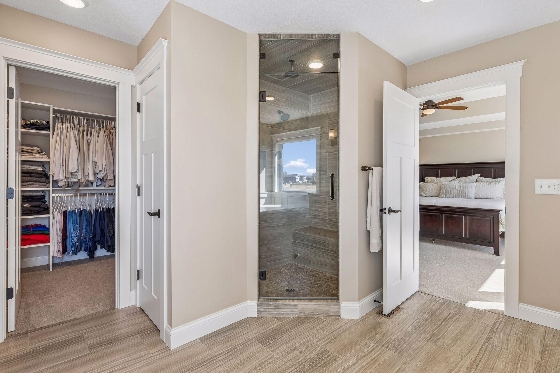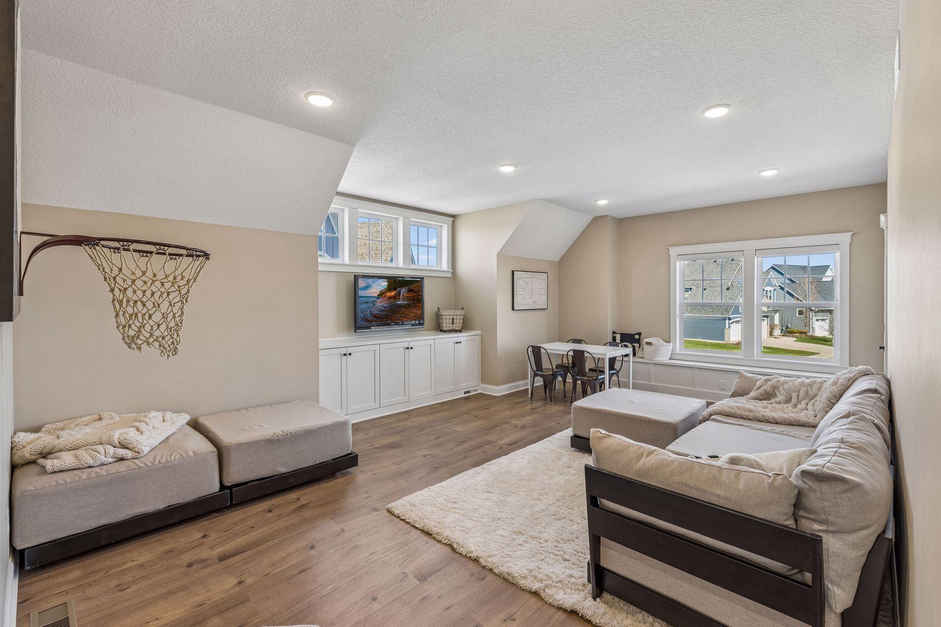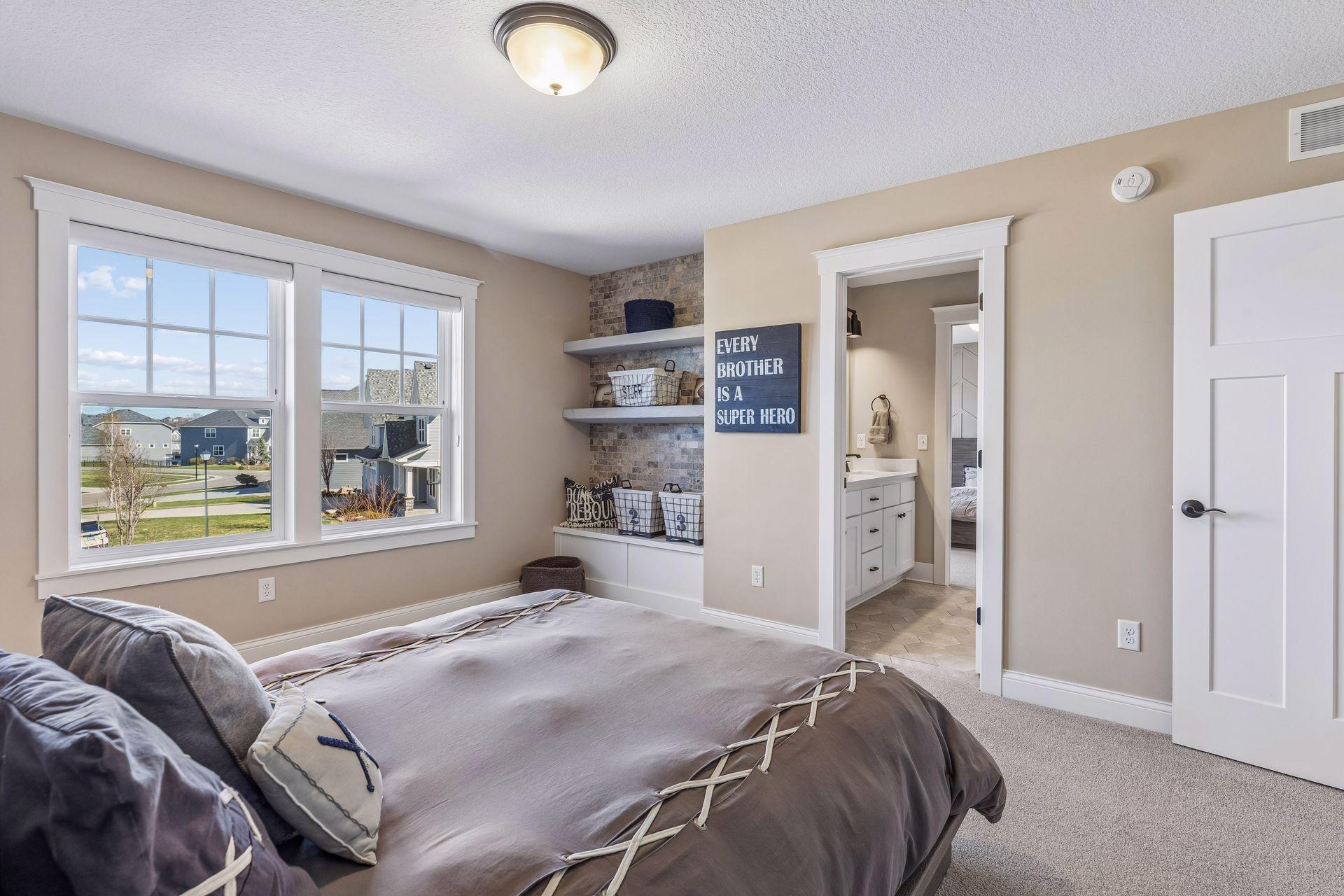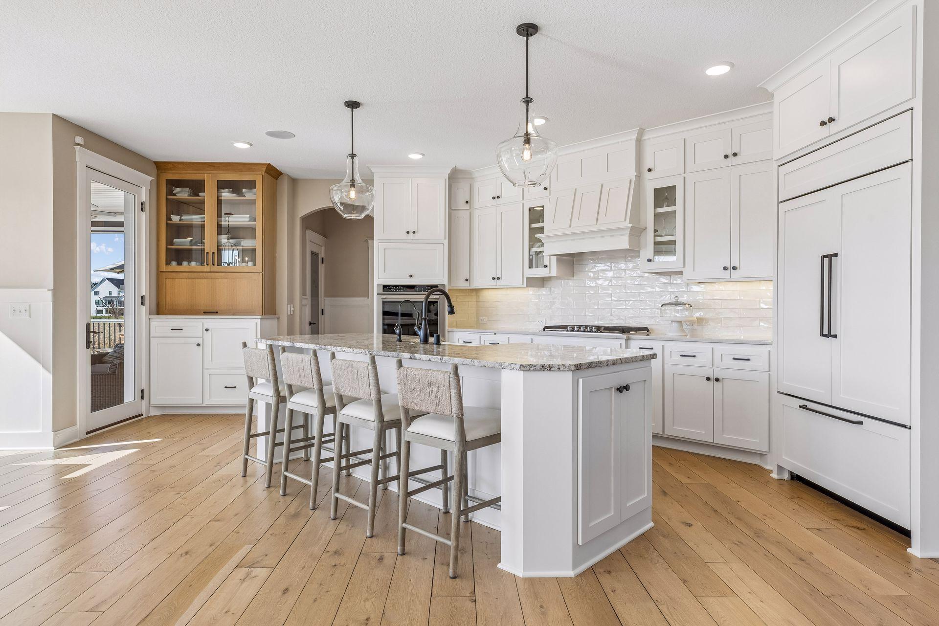 Welcome to this exceptional custom-built home in the highly sought-after Maple Creek Meadows neighborhood—perfectly situated within walking distance to Meadow Ridge Elementary. Built in 2017 by Hanson Builders, this thoughtfully designed residence blends luxury, comfort, and functionality across every level. The main floor showcases an inviting angled kitchen with a dedicated coffee bar, an eat-in dinette, and a formal dining room—ideal for both everyday living and entertaining. A private study offers a quiet workspace, while the Great Room is filled with natural light from stunning 84" windows. A versatile main-level bedroom—perfect as a guest suite or sunroom—features its own cozy fireplace, and is complemented by a nearby 3/4 bathroom with a convenient roll-in shower. Upstairs, you'll find four spacious bedrooms, including a luxurious Owner’s Suite retreat complete with a spa-like bathroom featuring a steam shower, soaking tub, and a generous walk-in closet. A bonus room with a closet offers flexibility as a fifth upper-level bedroom if desired. The home’s outdoor living spaces are equally impressive. Enjoy the screened porch with fireplace and Phantom screens—perfect for relaxing year-round. Step out to a maintenance-free deck overlooking a beautifully landscaped yard with a paver patio, built-in fire pit with gas line, and a hot tub—all set against breathtaking panoramic views of a pond and serene wetlands. The lower level is designed for entertainment and recreation, featuring a spacious family room with fireplace and built-in cabinetry, a theater rail, wet bar, exercise room, whimsical kids’ fort, an additional bedroom, and bathroom. Additional highlights include an insulated and heated garage with epoxy flooring and ample storage, as well as Hunter Douglas blinds throughout the home. This is a rare opportunity to own a truly remarkable home in an unbeatable location—where thoughtful design meets everyday luxury.