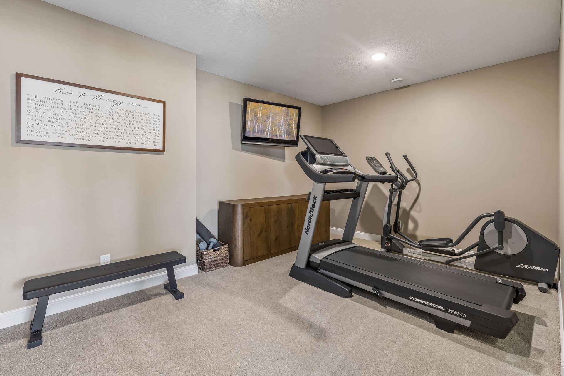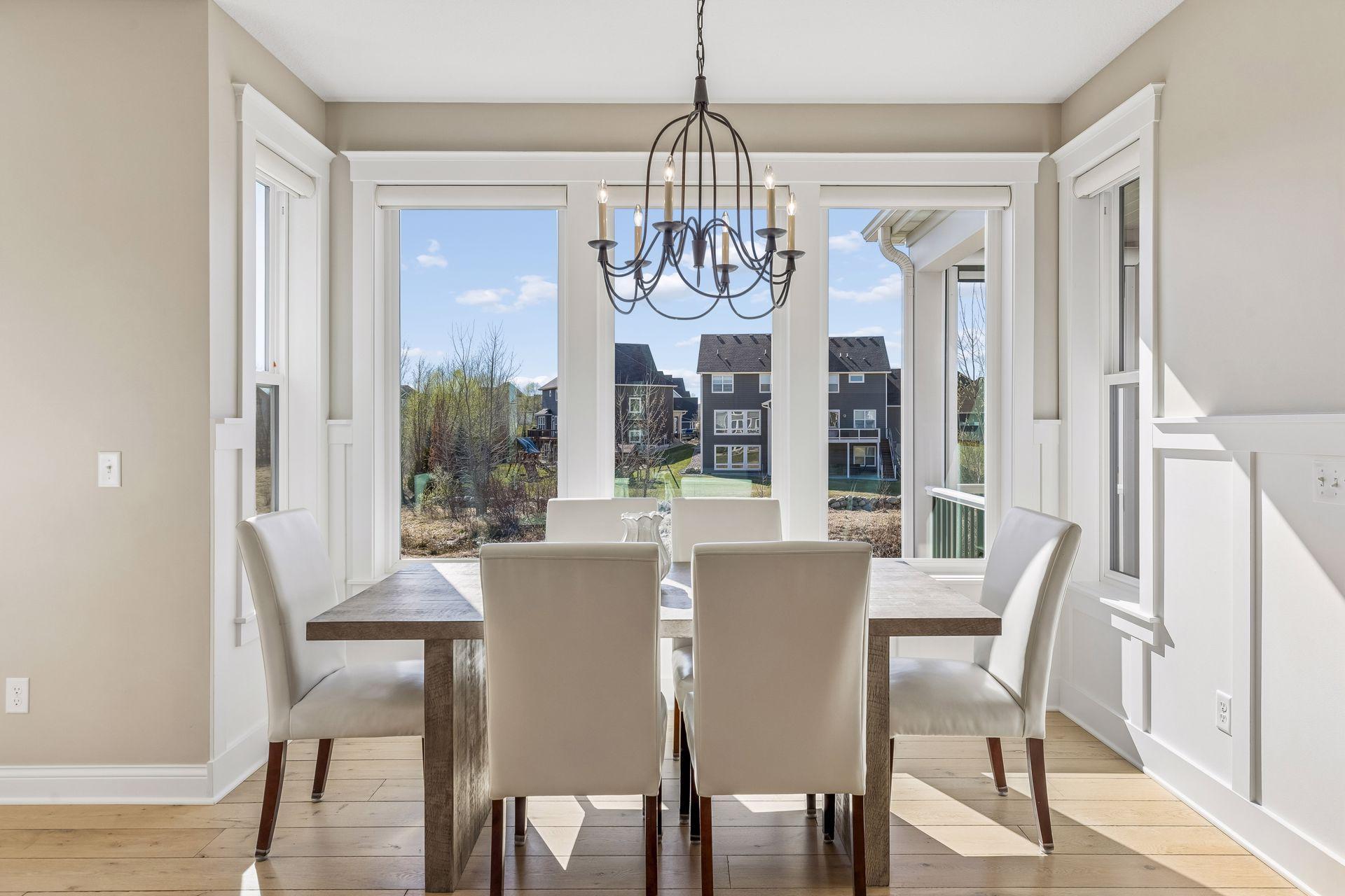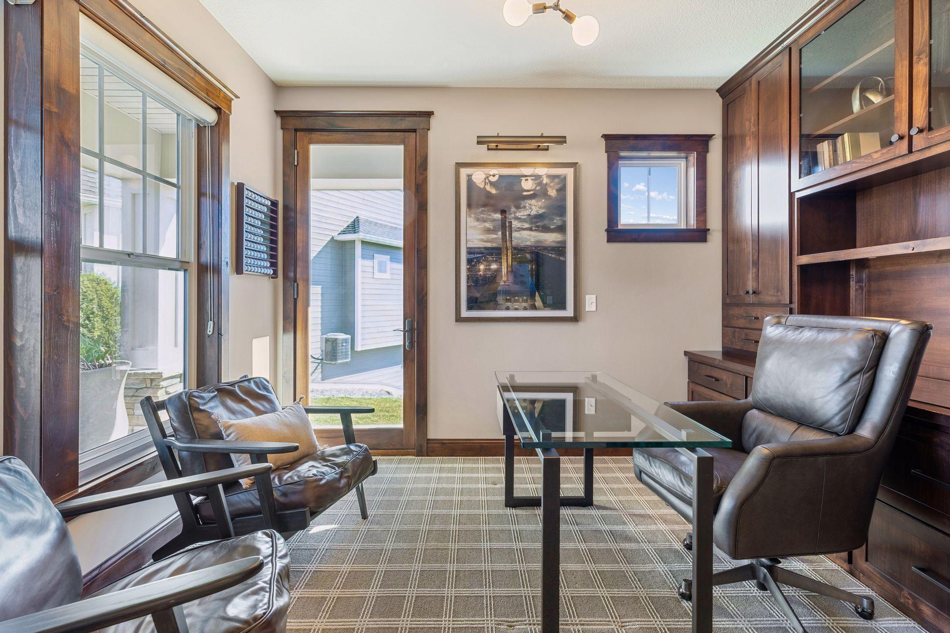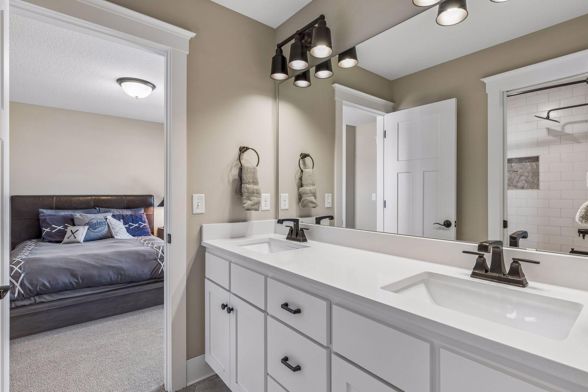 Welcome to this exceptional custom-built home in the highly sought-after Maple Creek Meadows neighborhood—perfectly situated within walking distance to Meadow Ridge Elementary. Built in 2017 by Hanson Builders, this thoughtfully designed residence blends luxury, comfort, and functionality across every level. The main floor showcases an inviting angled kitchen with a dedicated coffee bar, an eat-in dinette, and a formal dining room—ideal for both everyday living and entertaining. A private study offers a quiet workspace, while the Great Room is filled with natural light from stunning 84" windows. A versatile main-level bedroom—perfect as a guest suite or sunroom—features its own cozy fireplace, and is complemented by a nearby 3/4 bathroom with a convenient roll-in shower. Upstairs, you'll find four spacious bedrooms, including a luxurious Owner’s Suite retreat complete with a spa-like bathroom featuring a steam shower, soaking tub, and a generous walk-in closet. A bonus room with a closet offers flexibility as a fifth upper-level bedroom if desired. The home’s outdoor living spaces are equally impressive. Enjoy the screened porch with fireplace and Phantom screens—perfect for relaxing year-round. Step out to a maintenance-free deck overlooking a beautifully landscaped yard with a paver patio, built-in fire pit with gas line, and a hot tub—all set against breathtaking panoramic views of a pond and serene wetlands. The lower level is designed for entertainment and recreation, featuring a spacious family room with fireplace and built-in cabinetry, a theater rail, wet bar, exercise room, whimsical kids’ fort, an additional bedroom, and bathroom. Additional highlights include an insulated and heated garage with epoxy flooring and ample storage, as well as Hunter Douglas blinds throughout the home. This is a rare opportunity to own a truly remarkable home in an unbeatable location—where thoughtful design meets everyday luxury.