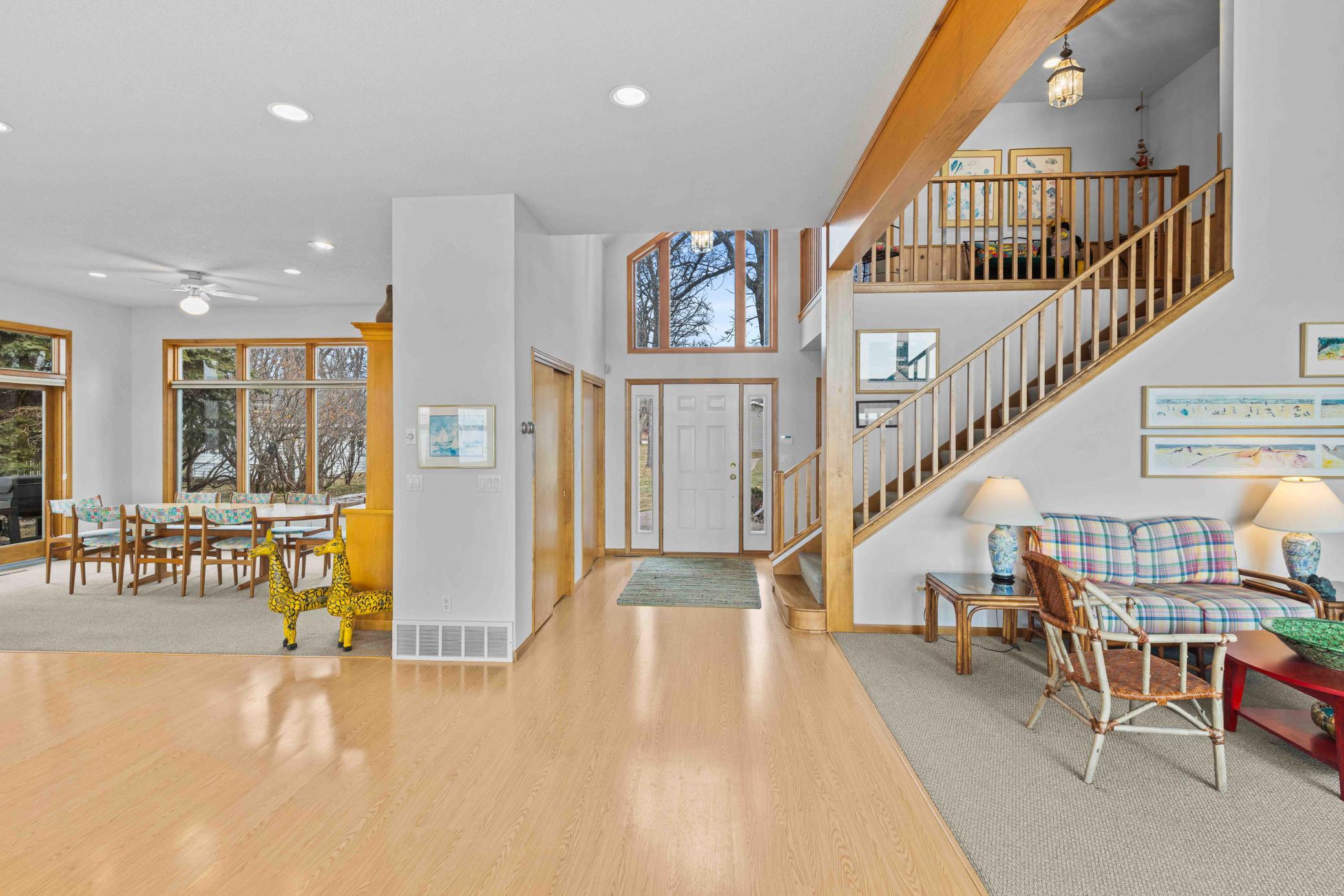 6 bedrooms, 3 bathrooms, large lot 75' front feet on the water. 3 bedrooms on the Main level, spacious Main floor with plenty of room to live and Entertain, wide Open floor plan, 10' ceilings & Vaulted ceilings 16'9" in the Great room w/many windows to the water. Sunroom, wonderful Dining room, Kitchen with Granite Counters and windows to the water, knotty Pine wood ceiling, wood burning Fireplace, open stair case. Second floor features 3 additional bedrooms and bathroom. Plenty of storage and Linen closets, 4' crawl space houses the 4 furnaces(gas & electric), Central Air Conditioning. Patio off of the Dining room for Grilling, Spacious Stamped concrete Patio off the the Lakeside of the home looking on to the Water. Highly sought after Location on a beautiful lot on a Premier location at Pelican Lake. Short and easy drive from Fargo/Moorhead and surrounding communities. Maintenance free exterior, 24 x 30 garage and extra parking. Andersen Windows & Patio doors, well maintained home, mature trees. Truly a Fun and Easy Lake home to enjoy !