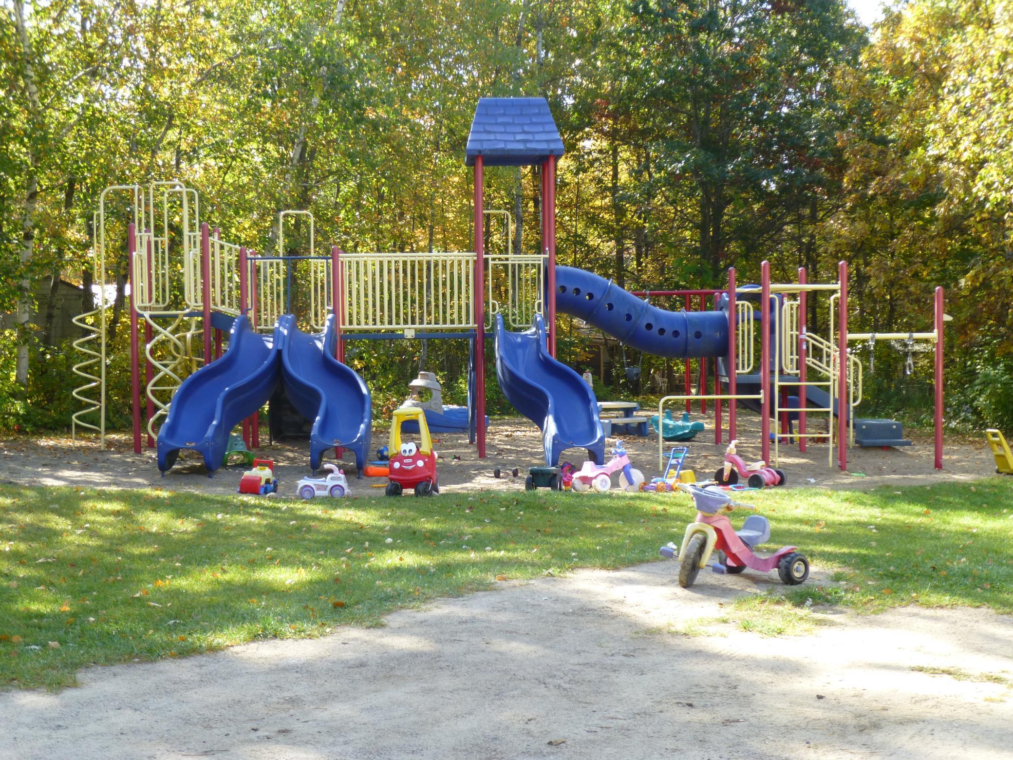 Rustic campsite on a sloped lot. Lot is privately owned in the Exclusive Whitebirch RV and Camping Resort. Located in a quiet area near comfort station, playground and walking distance to pools, basketball court, tennis and pickleball court. Purchase includes Breezy Point Resort Country Club Membership, a $500 value.