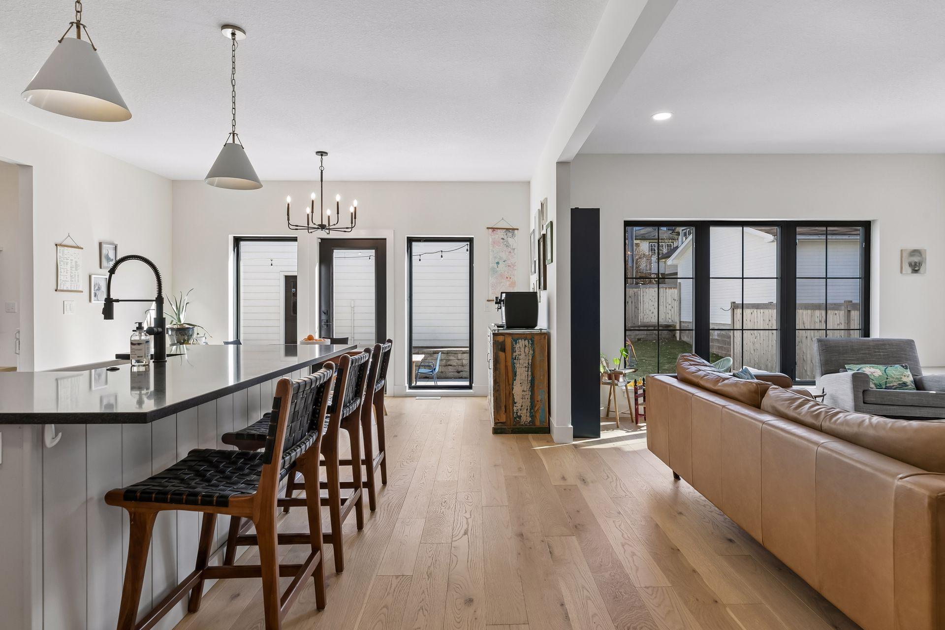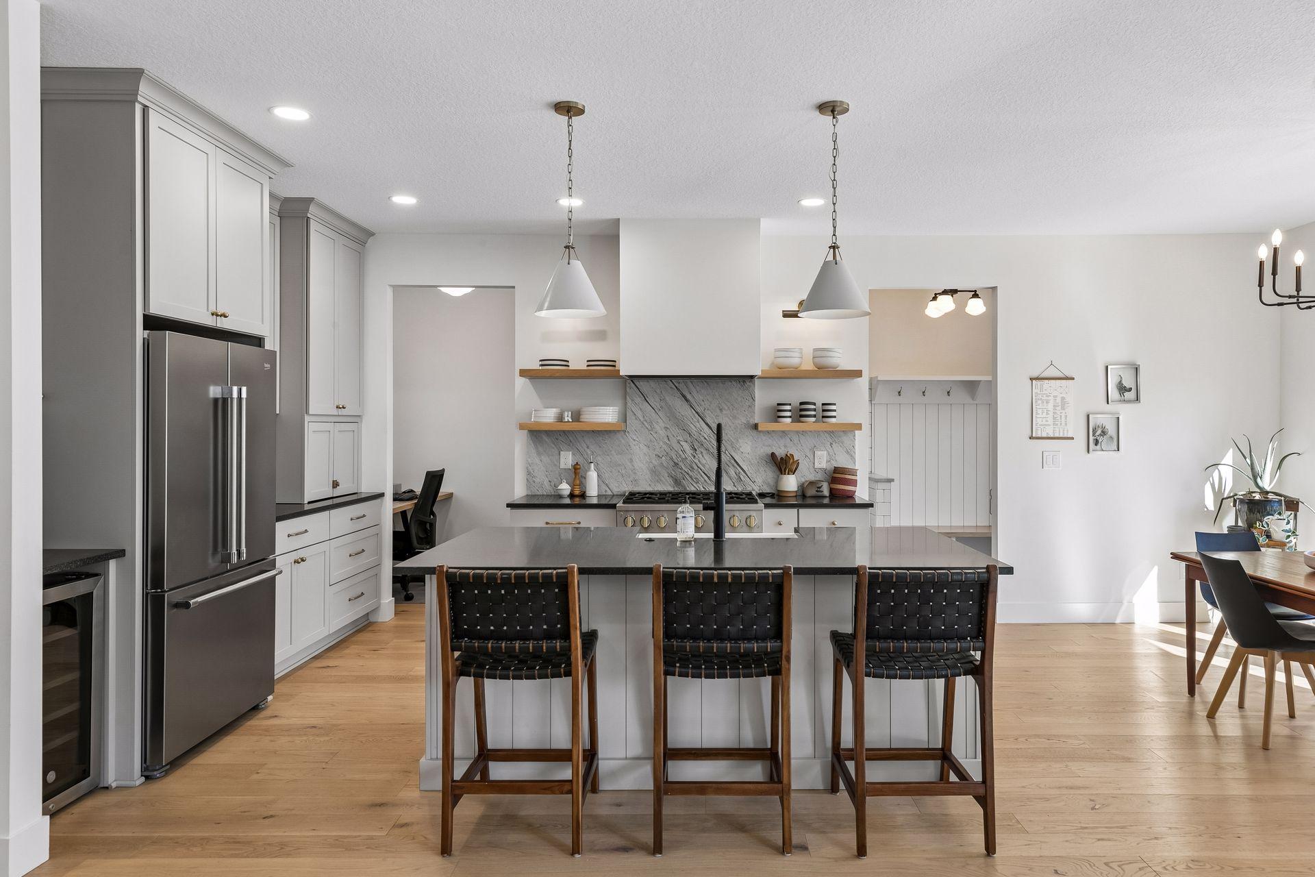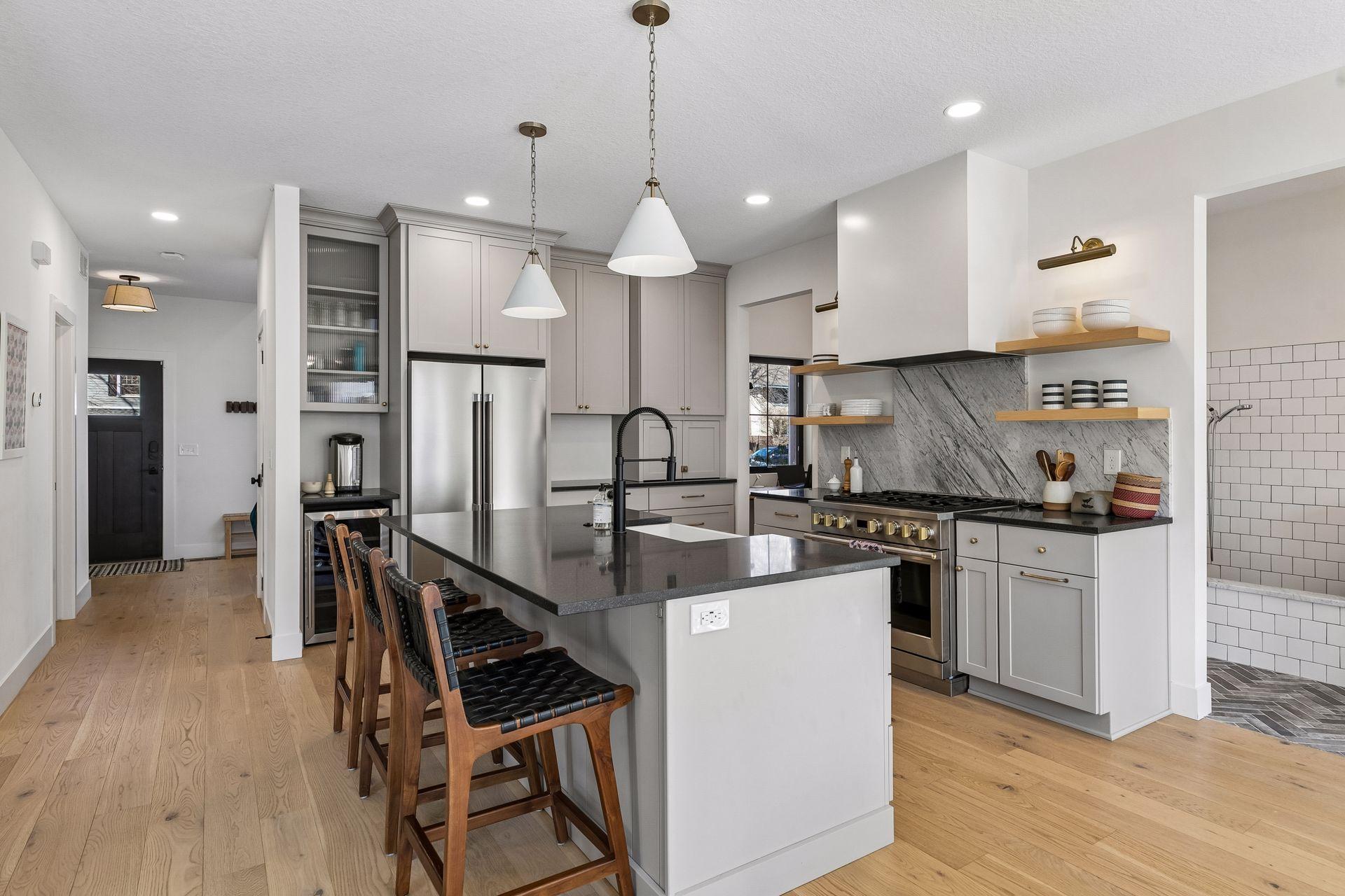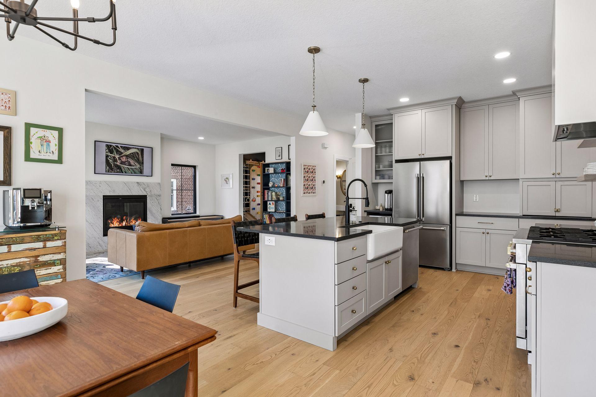 Experience modern living in the heart of Mac-Groveland. Built in 2021 by Cornerstone, this nearly new home features an open, sun-filled layout with oversized south-facing windows, a stunning high-end kitchen, and a main-level mudroom complete with a tiled dog wash. Open and bright, the main floor den offers space for a kids play room, home library or office; a perfect flex space for your changing needs. The upper level includes a spacious primary suite, three additional bedrooms, and a convenient laundry room. The finished lower level adds a family room, fitness area, fifth bedroom and generous storage. Outside, enjoy a fully fenced backyard with large patio perfect for relaxing or entertaining. Energy efficient zoned heating/cooling; see supplements for utility cost information. A rare opportunity to own newer construction in one of Saint Paul’s most sought-after neighborhoods.