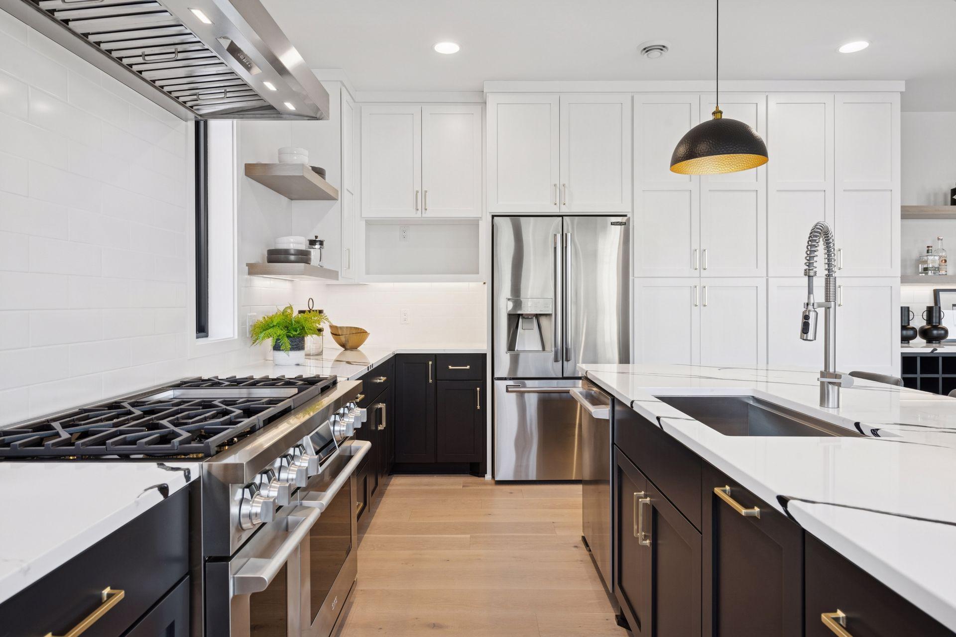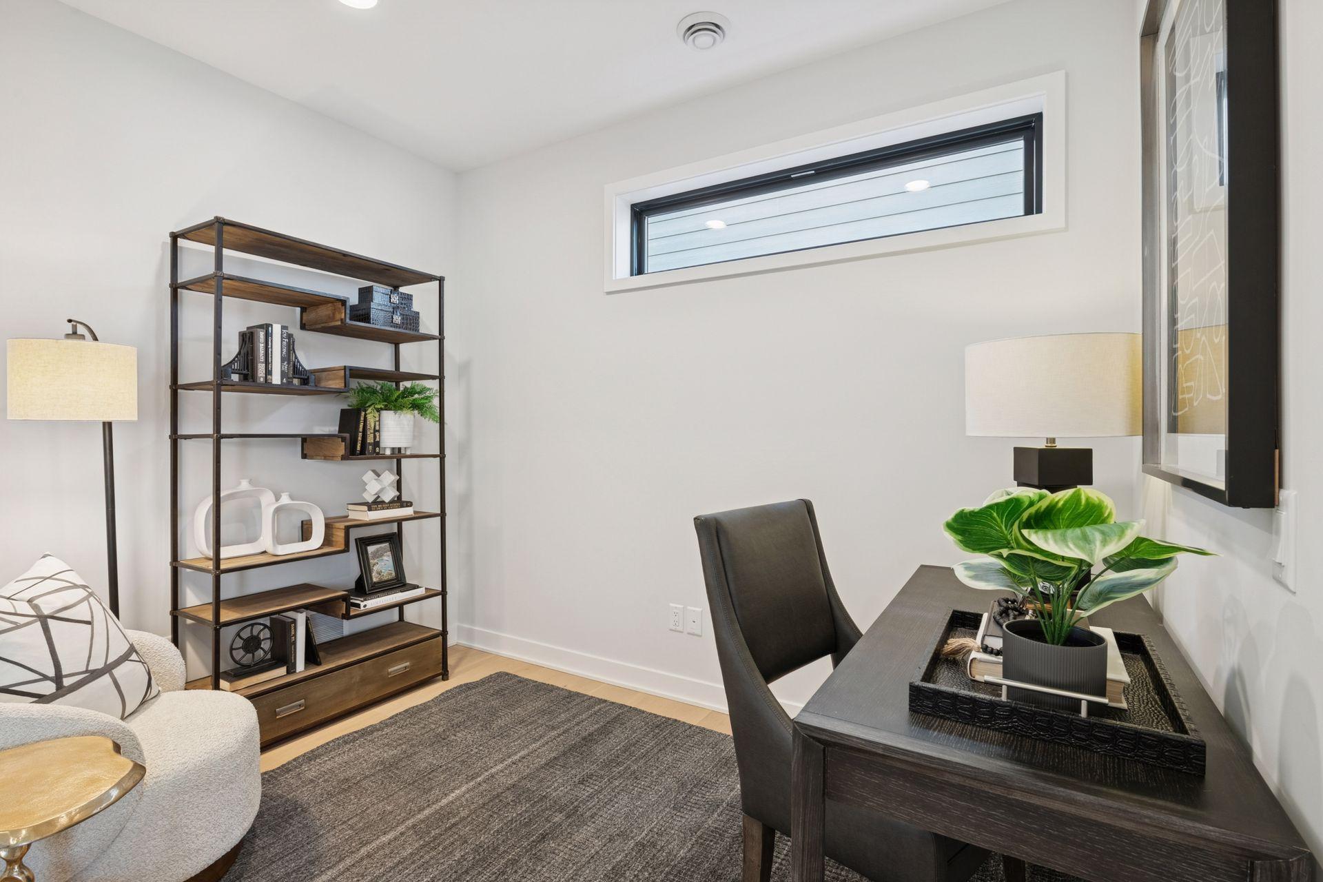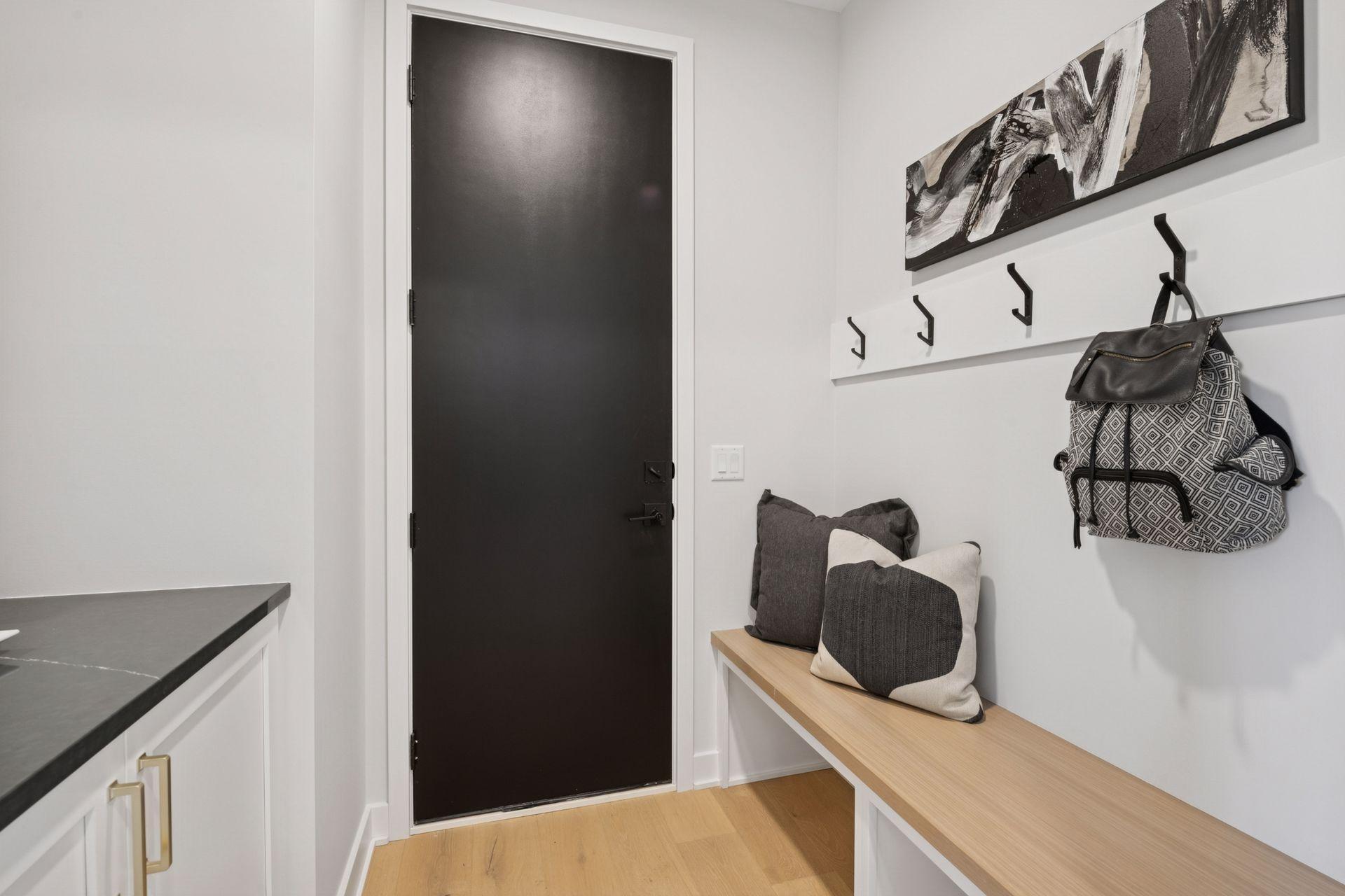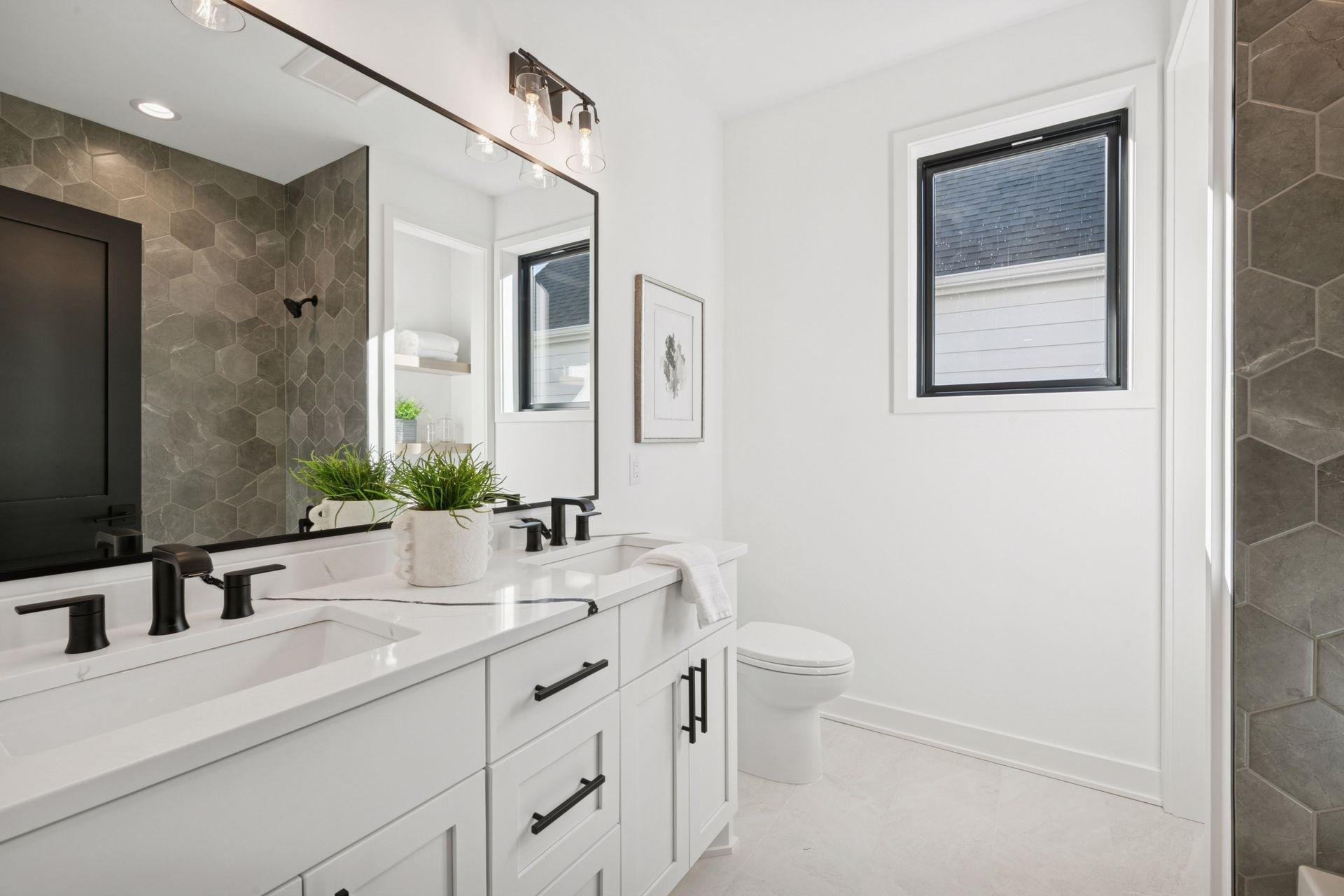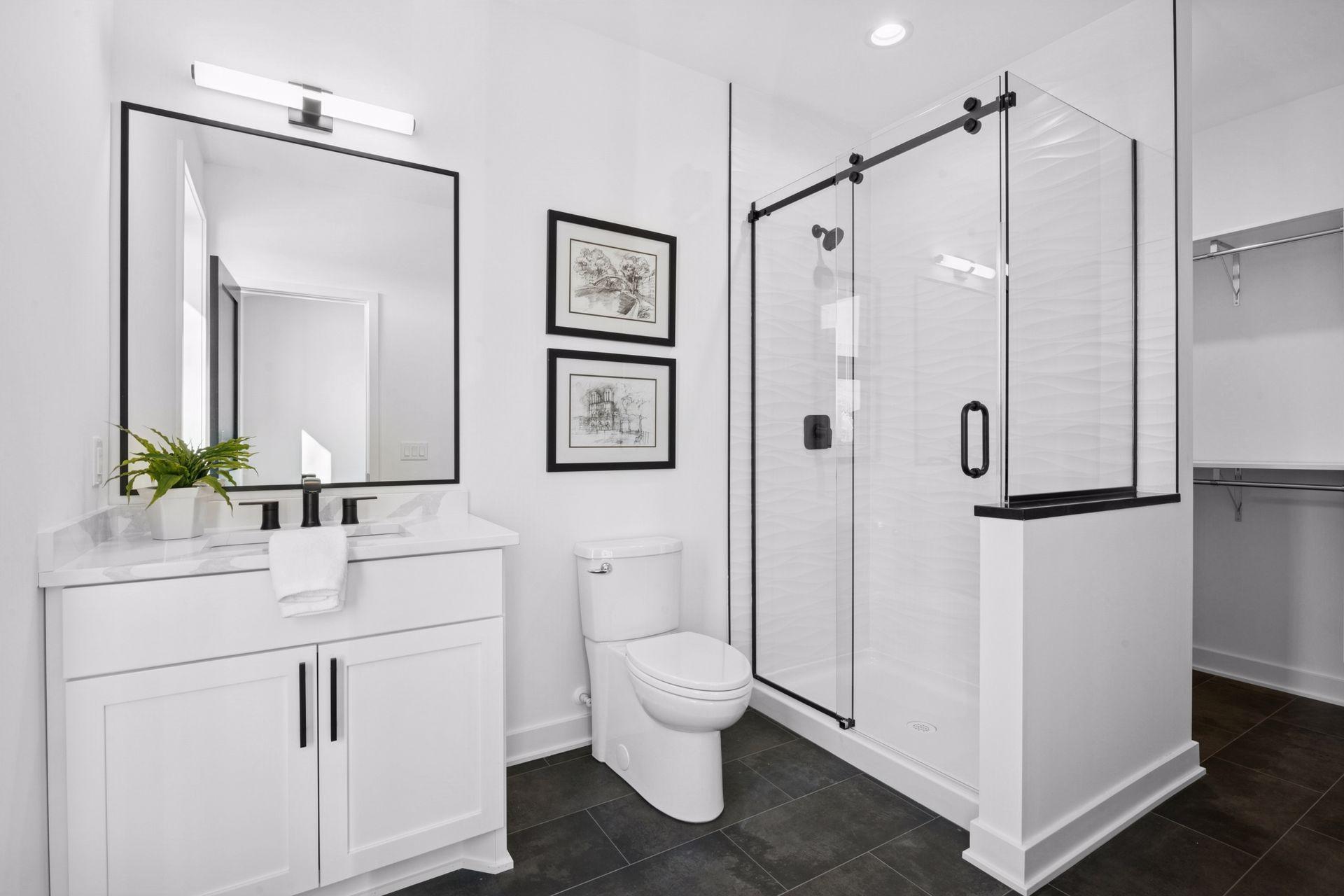 guest accommodations, a golf simulator, or a private work-from-home retreat. The home's urban-modern design package with Tuxedo finishes (black and white timeless interior color palette) showcases clean architectural lines, oversized windows, and wide-plank flooring. The open-concept main level seamlessly connects living, dining, and kitchen spaces, delivering effortless flow for both entertaining and daily life. Upstairs, spacious bedrooms offer privacy and comfort, while the primary suite provides a spa-inspired vibe and a generous walk-in closet. The