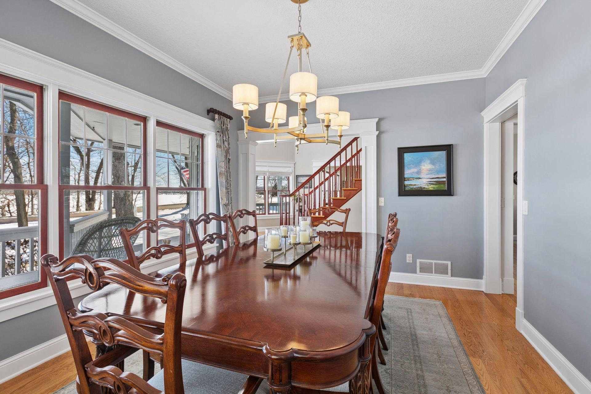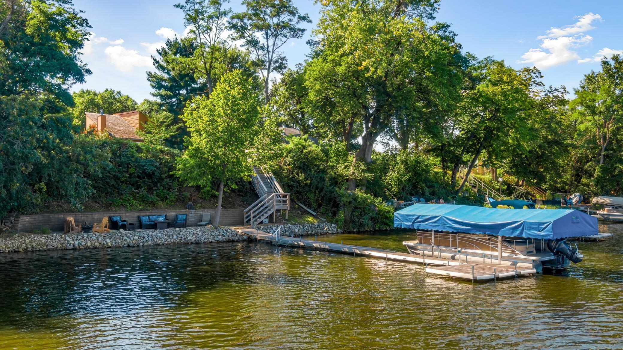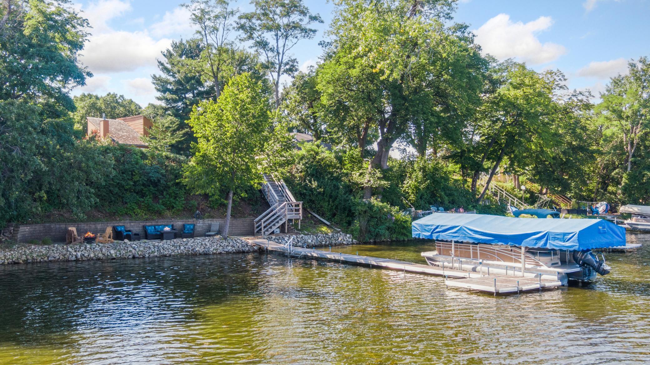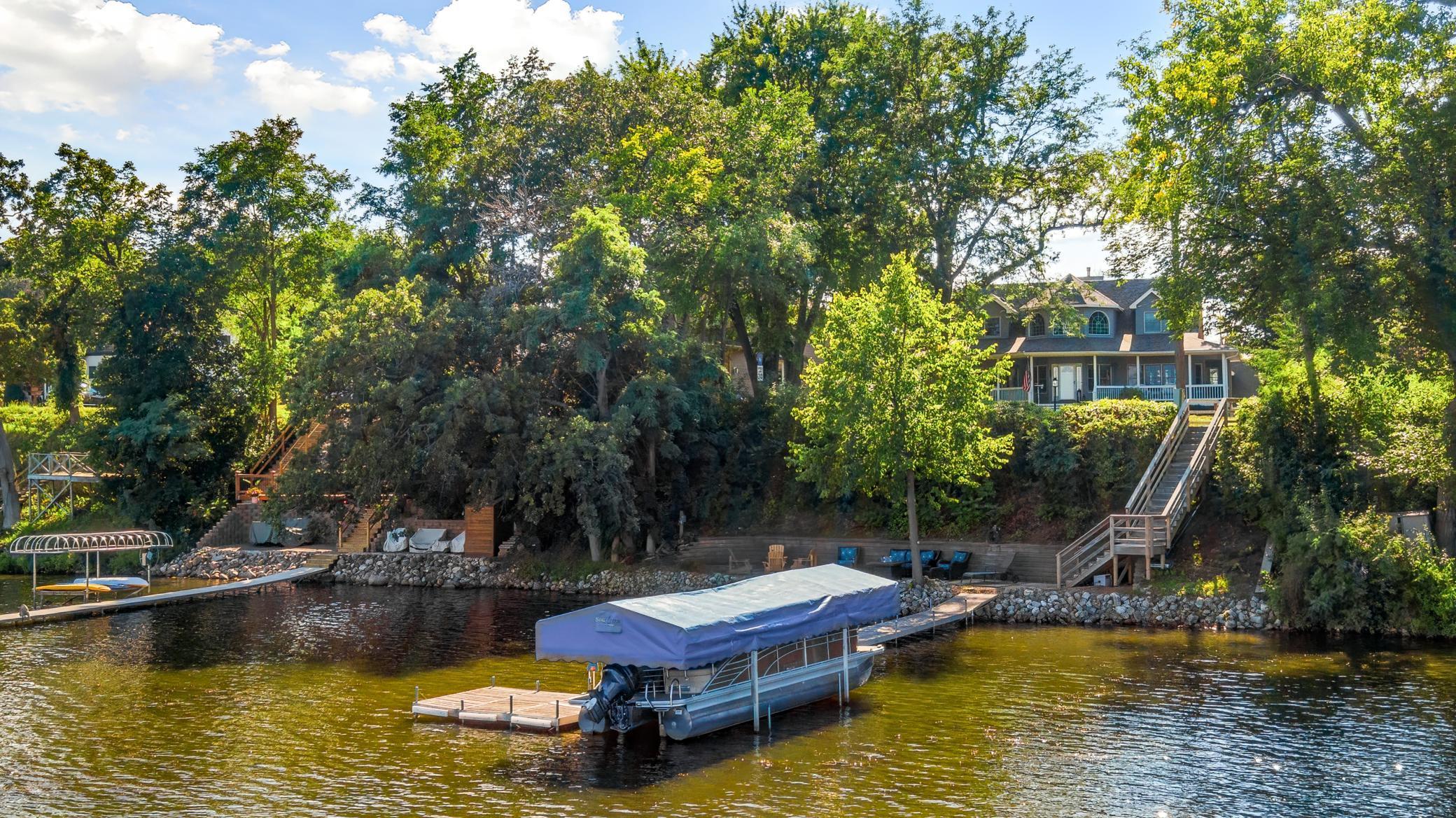 Welcome to your dream lake home on Bald Eagle Lake where everyday living feels like a getaway. This home was custom built by the owners in 2001. With 4,600 square feet, this spacious 5 bedroom, 4 1/4 bathroom home offers the perfect blend of comfort, functionality and breath-taking views. You will also enjoy the beautifully curated landscaping that surrounds the home with a blend of mature trees and lush greenery. The well-maintained exterior and landscaping offer exceptional curb appeal. An expansive front porch offers a space to have your morning coffee or unwind in the evening while overlooking Bald Eagle lake. The main level primary suite provides a private retreat, complete with a luxurious en-suite bathroom. The 2 generous family rooms on the main Level and. lower level are perfect for ,entertaining all your guests or spending quality time with your family. The main Level formal dining room and living room are beautiful spaces filled with natura light and stunning lake views. Custom Cherry cabinets and quartz countertops are showcased in this true cook s kitchen. Designed with abundant prep space and storage on and in the center island . Outfitted with professional grade appliances, including a gas range and double· ovens takes this kitchen from casual to gourmet. The 3-stall garage includes a dedicated bay with a car lift - perfect for car enthusiasts. Above the double garage space, you’ll find a finished room for additional storage. The property boasts 77 feet of pristine lake shore, complete with a dock for your boat, custom patio and firepit- ideal for lakeside gatherings summer nights and making lifelong memories. This home offers ample space for a growing family, entertaining spaces galore and endless opportunities for boating, swimming, and year-round recreation. Whether hosting your friends or simply soaking in the scenery, this home offers the ultimate lake lifestyle.