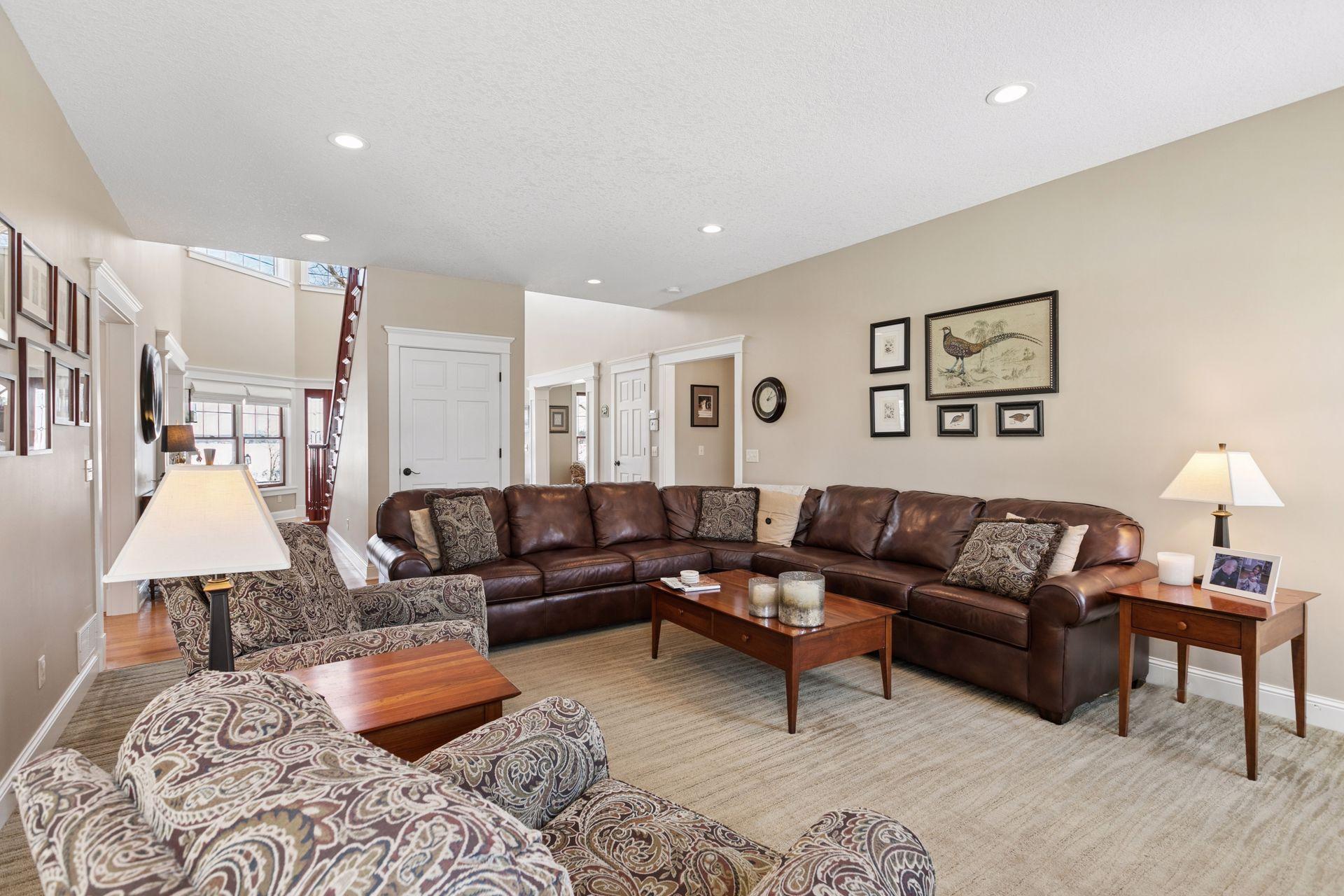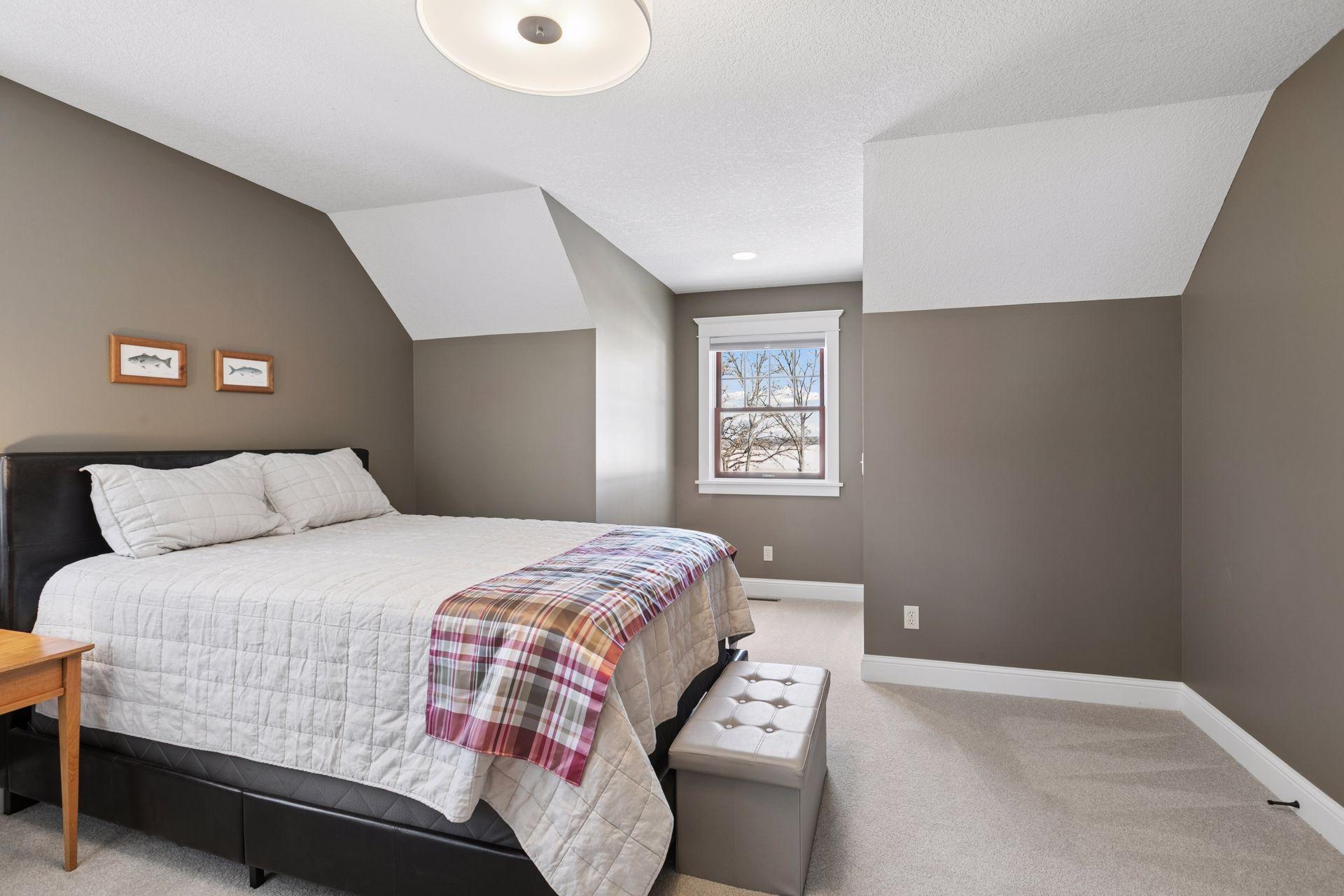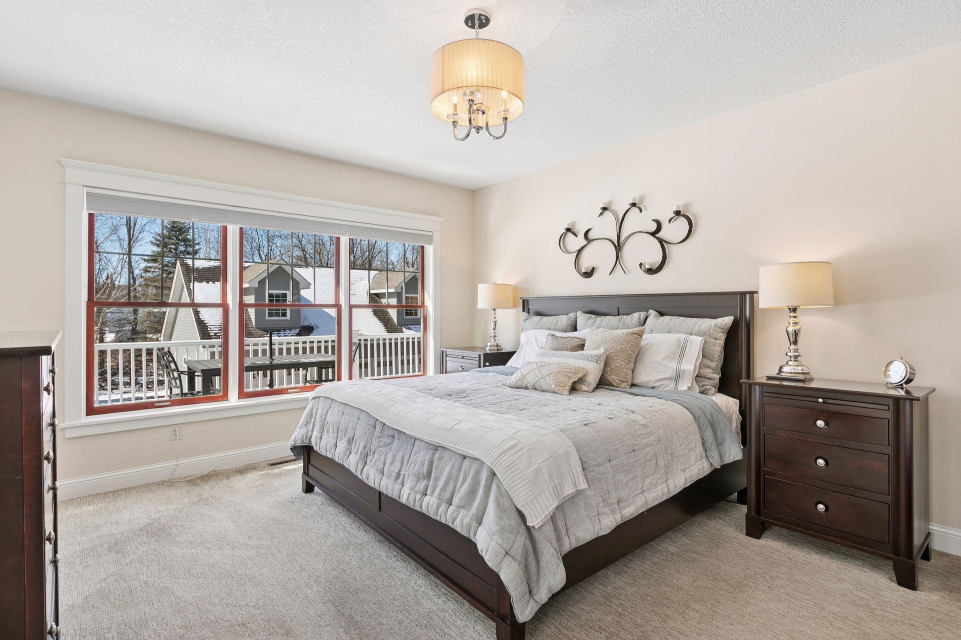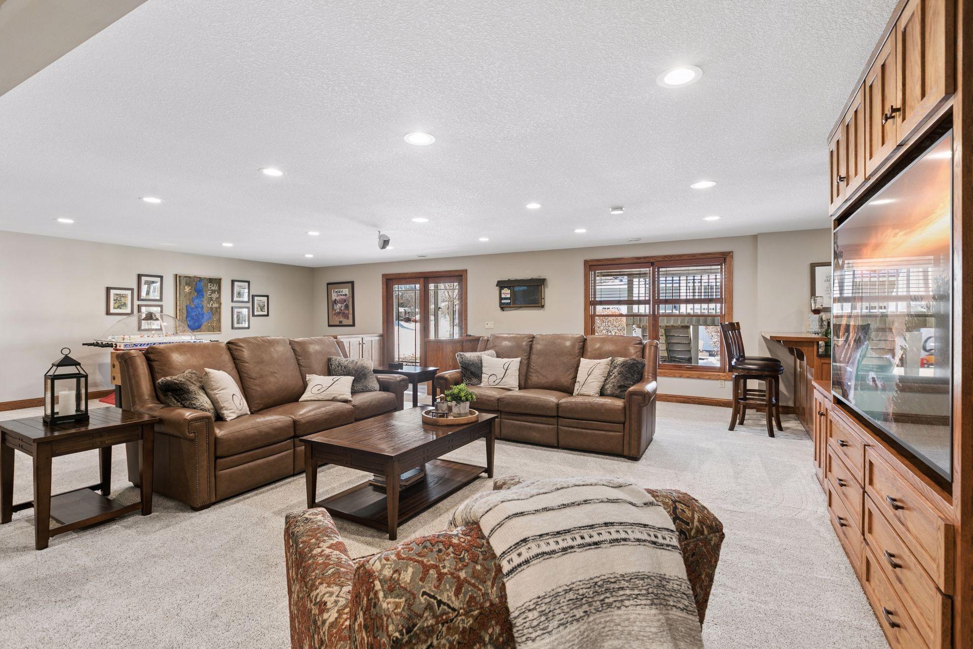 Welcome to your dream lake home on Bald Eagle Lake where everyday living feels like a getaway. This home was custom built by the owners in 2001. With 4,600 square feet, this spacious 5 bedroom, 4 1/4 bathroom home offers the perfect blend of comfort, functionality and breath-taking views. You will also enjoy the beautifully curated landscaping that surrounds the home with a blend of mature trees and lush greenery. The well-maintained exterior and landscaping offer exceptional curb appeal. An expansive front porch offers a space to have your morning coffee or unwind in the evening while overlooking Bald Eagle lake. The main level primary suite provides a private retreat, complete with a luxurious en-suite bathroom. The 2 generous family rooms on the main Level and. lower level are perfect for ,entertaining all your guests or spending quality time with your family. The main Level formal dining room and living room are beautiful spaces filled with natura light and stunning lake views. Custom Cherry cabinets and quartz countertops are showcased in this true cook s kitchen. Designed with abundant prep space and storage on and in the center island . Outfitted with professional grade appliances, including a gas range and double· ovens takes this kitchen from casual to gourmet. The 3-stall garage includes a dedicated bay with a car lift - perfect for car enthusiasts. Above the double garage space, you’ll find a finished room for additional storage. The property boasts 77 feet of pristine lake shore, complete with a dock for your boat, custom patio and firepit- ideal for lakeside gatherings summer nights and making lifelong memories. This home offers ample space for a growing family, entertaining spaces galore and endless opportunities for boating, swimming, and year-round recreation. Whether hosting your friends or simply soaking in the scenery, this home offers the ultimate lake lifestyle.