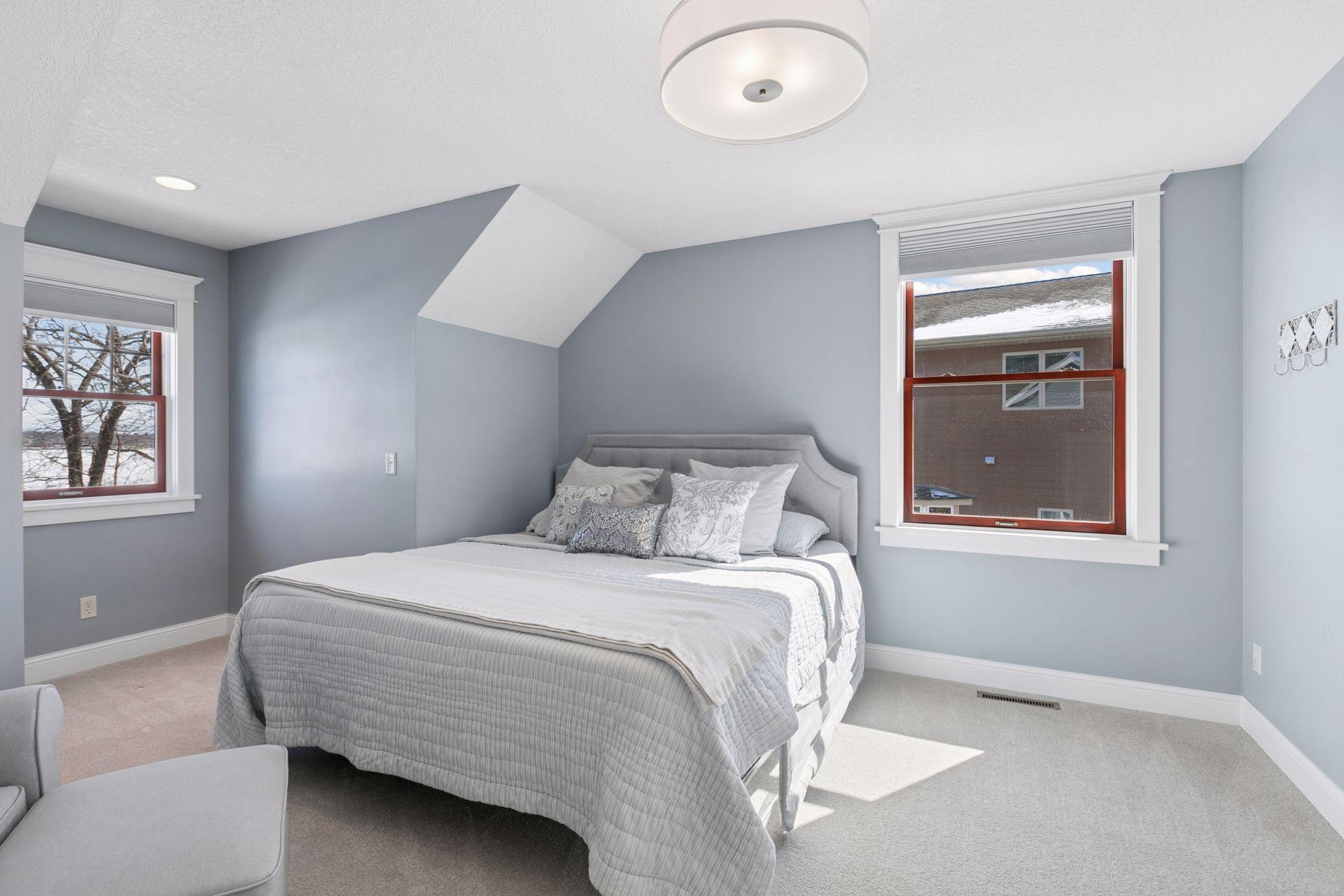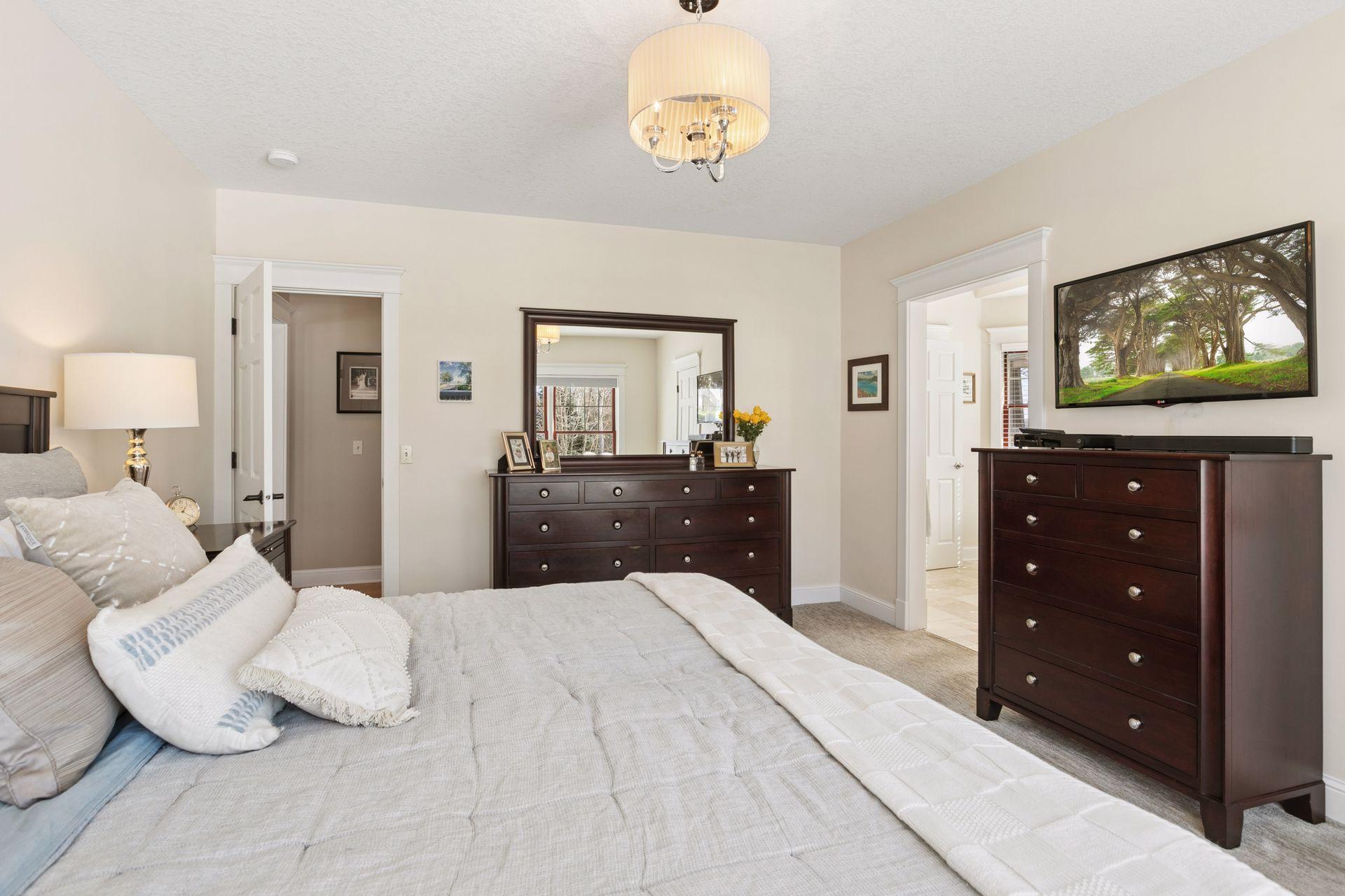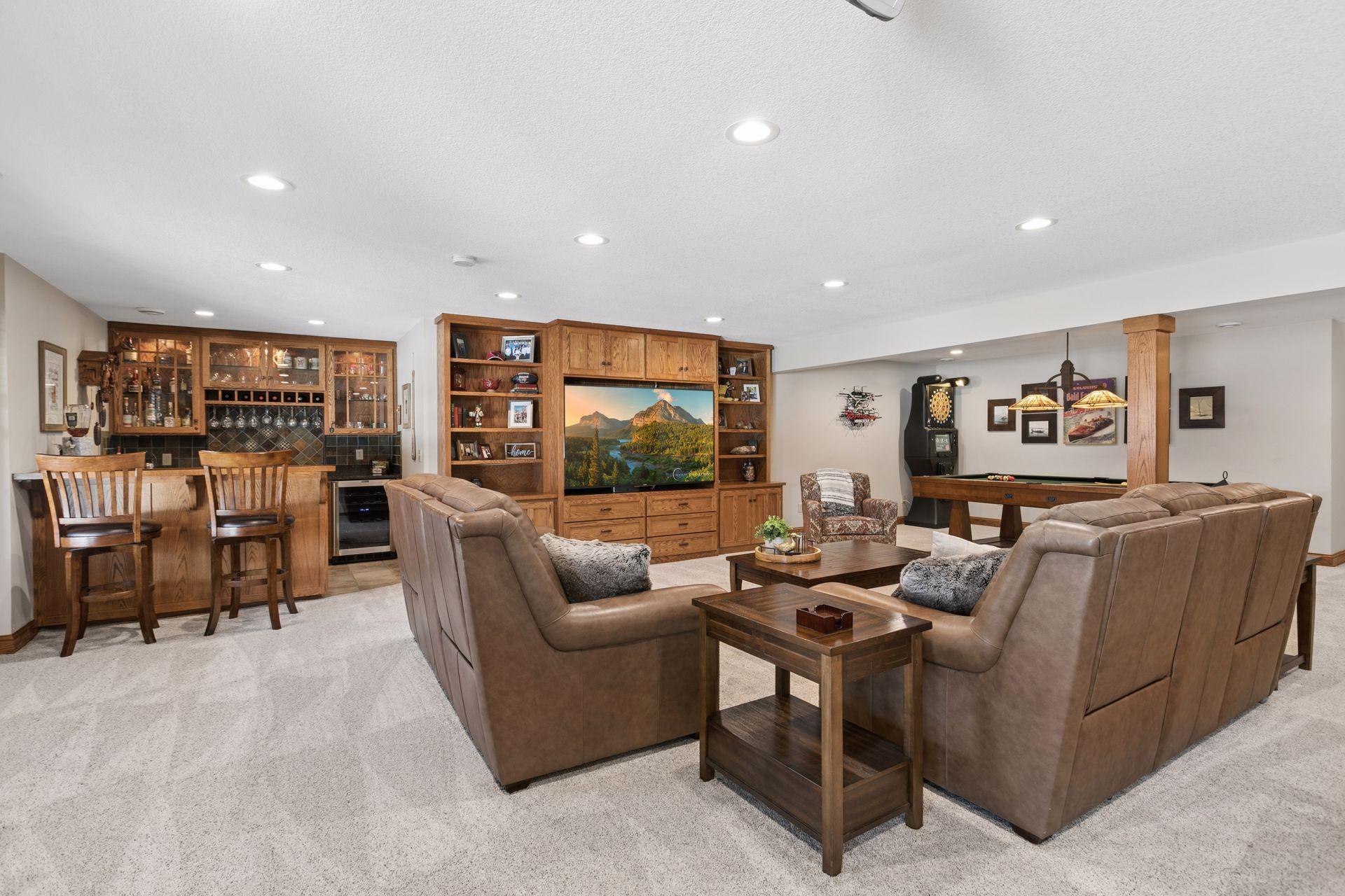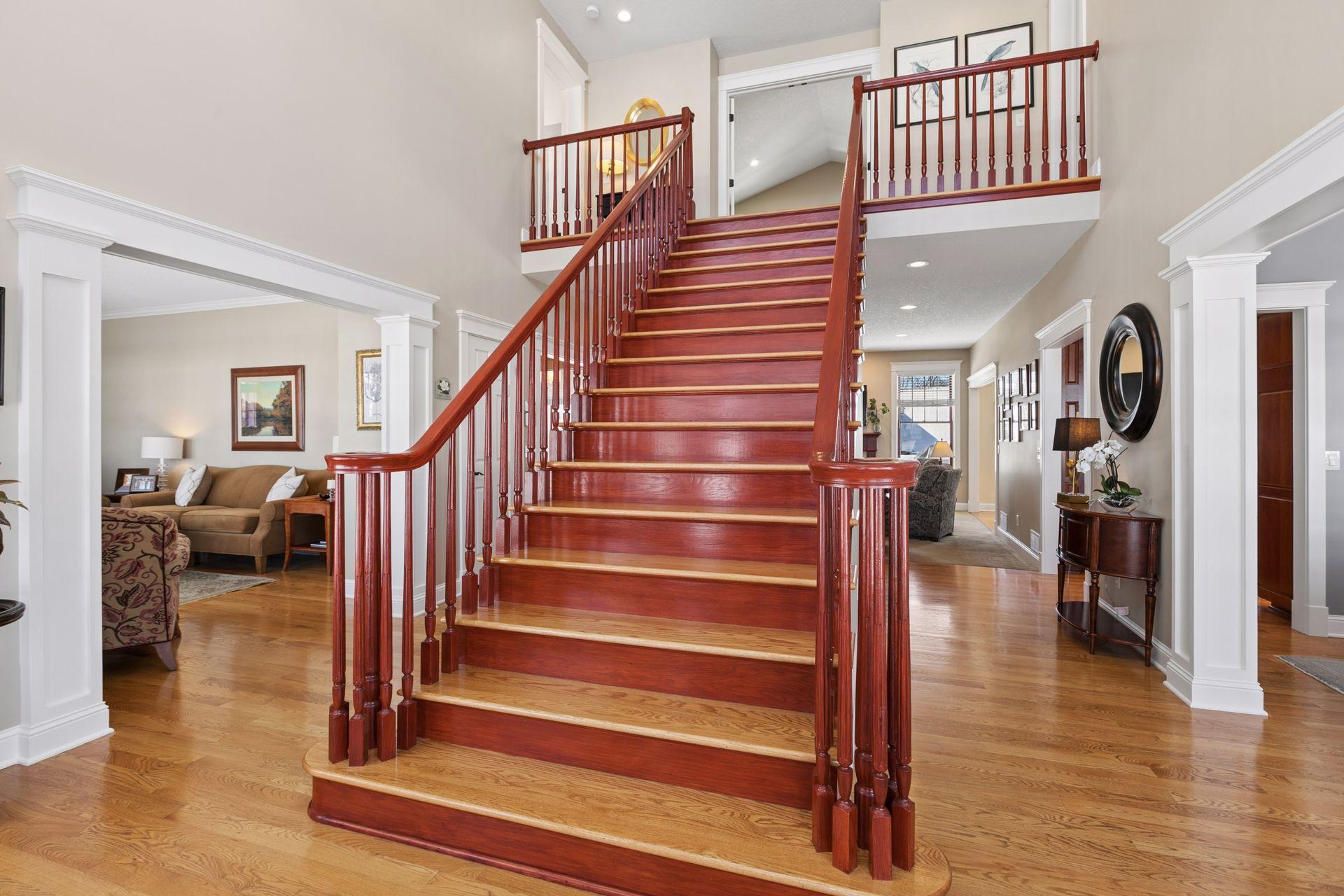 Welcome to your dream lake home on Bald Eagle Lake where everyday living feels like a getaway. This home was custom built by the owners in 2001. With 4,600 square feet, this spacious 5 bedroom, 4 1/4 bathroom home offers the perfect blend of comfort, functionality and breath-taking views. You will also enjoy the beautifully curated landscaping that surrounds the home with a blend of mature trees and lush greenery. The well-maintained exterior and landscaping offer exceptional curb appeal. An expansive front porch offers a space to have your morning coffee or unwind in the evening while overlooking Bald Eagle lake. The main level primary suite provides a private retreat, complete with a luxurious en-suite bathroom. The 2 generous family rooms on the main Level and. lower level are perfect for ,entertaining all your guests or spending quality time with your family. The main Level formal dining room and living room are beautiful spaces filled with natura light and stunning lake views. Custom Cherry cabinets and quartz countertops are showcased in this true cook s kitchen. Designed with abundant prep space and storage on and in the center island . Outfitted with professional grade appliances, including a gas range and double· ovens takes this kitchen from casual to gourmet. The 3-stall garage includes a dedicated bay with a car lift - perfect for car enthusiasts. Above the double garage space, you’ll find a finished room for additional storage. The property boasts 77 feet of pristine lake shore, complete with a dock for your boat, custom patio and firepit- ideal for lakeside gatherings summer nights and making lifelong memories. This home offers ample space for a growing family, entertaining spaces galore and endless opportunities for boating, swimming, and year-round recreation. Whether hosting your friends or simply soaking in the scenery, this home offers the ultimate lake lifestyle.
