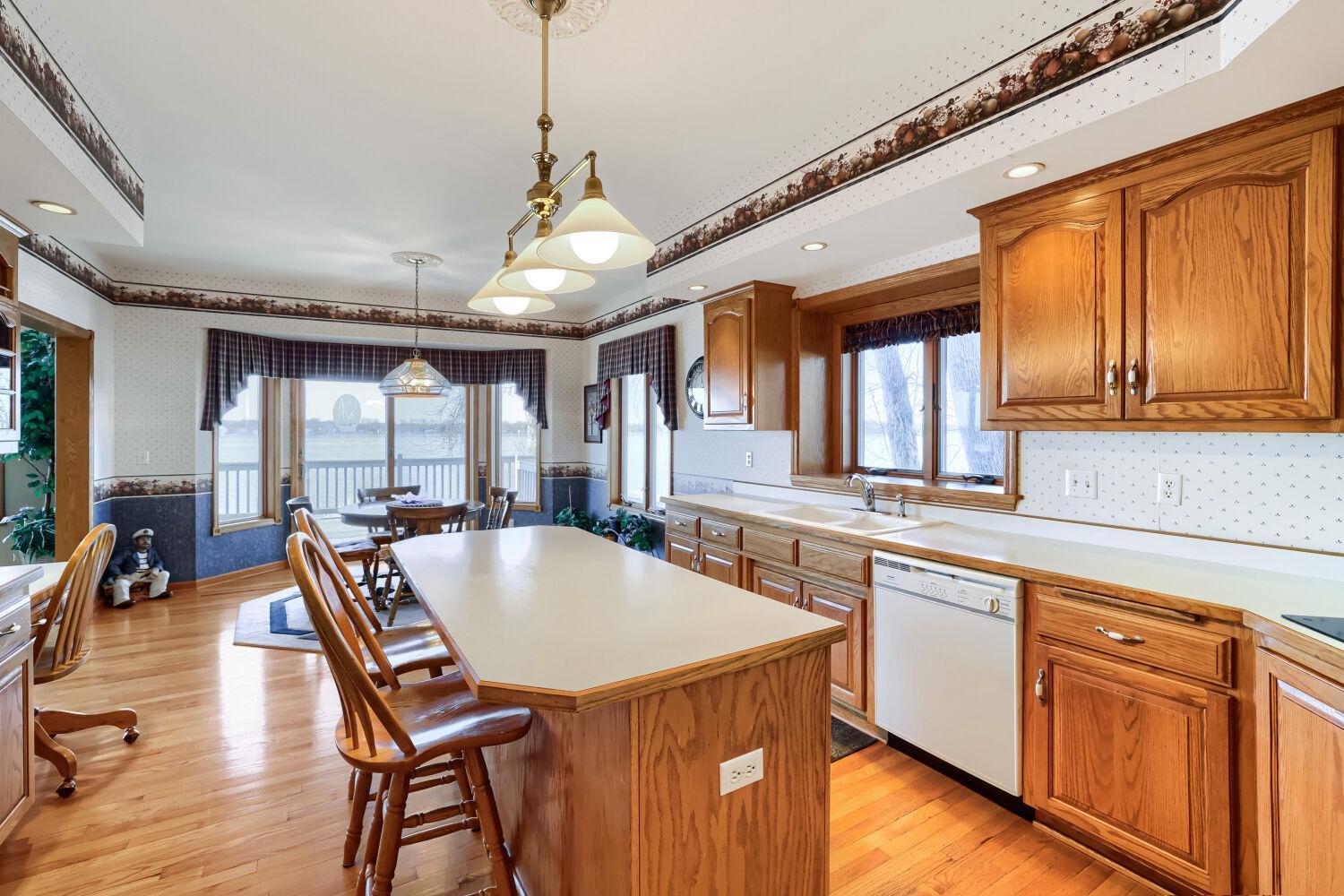 Welcome to the epitome of lakeside living on the shores of Forest Lake. This CUSTOM BUILT exceptional property boasts a rare 115 feet of beautiful, sandy shoreline—ideal for swimming, relaxing, and fully embracing the lake lifestyle. Set on a spacious lot, the home features a bright and inviting layout with comfortable living spaces designed to capture natural light and stunning long scenic views. The large kitchen offers ample cabinetry and workspace, seamlessly flowing into the dining, living areas, and massive lakeside deck—perfect for both everyday living and entertaining. The home features all living facilities on one level, including well-sized bedrooms, functional bathrooms, and flexible additional living space that can be adapted to suit your needs—whether it be for a family room, office, additional bedroom, or recreation area. A standout feature is the 14x43 reverse tuck-under lakeside garage, which provides generous space for vehicles, lake toys, and extra storage—maximizing convenience and functionality while preserving the home's curb appeal. Step outside to enjoy the expansive yard that leads to a stunning stretch of hard sand base shoreline with a perfect gradual approach to the water's edge. Spend your days swimming, boating, fishing, or simply taking in breathtaking therapeutic sunsets right from your own property. Located in a peaceful, quiet neighborhood with easy access to parks, shopping, and commuter routes, this home offers the perfect balance of relaxation and convenience. Don’t miss this rare opportunity to own a PRIME waterfront home on Forest Lake!