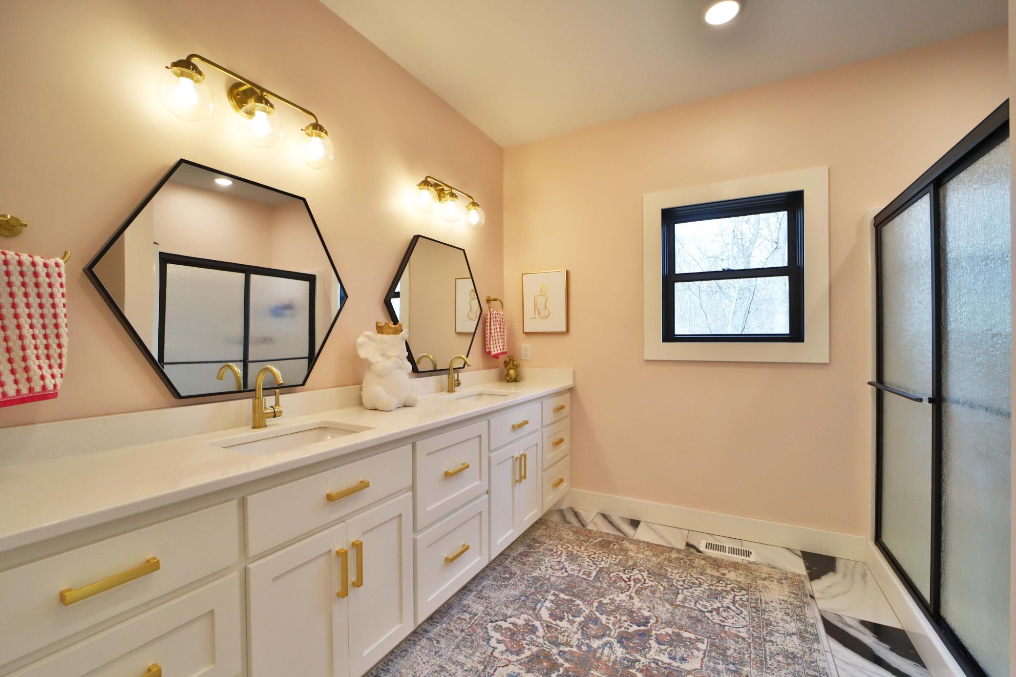 1/2 Primary,Basement,Double Sink,Bathroom Ensuite,Main Floor 1/2 Bath,Main Floor Full Bath,Rough In,Upper Level Full Bath,Primary Walk-Thru,Walk-In Shower Stall |