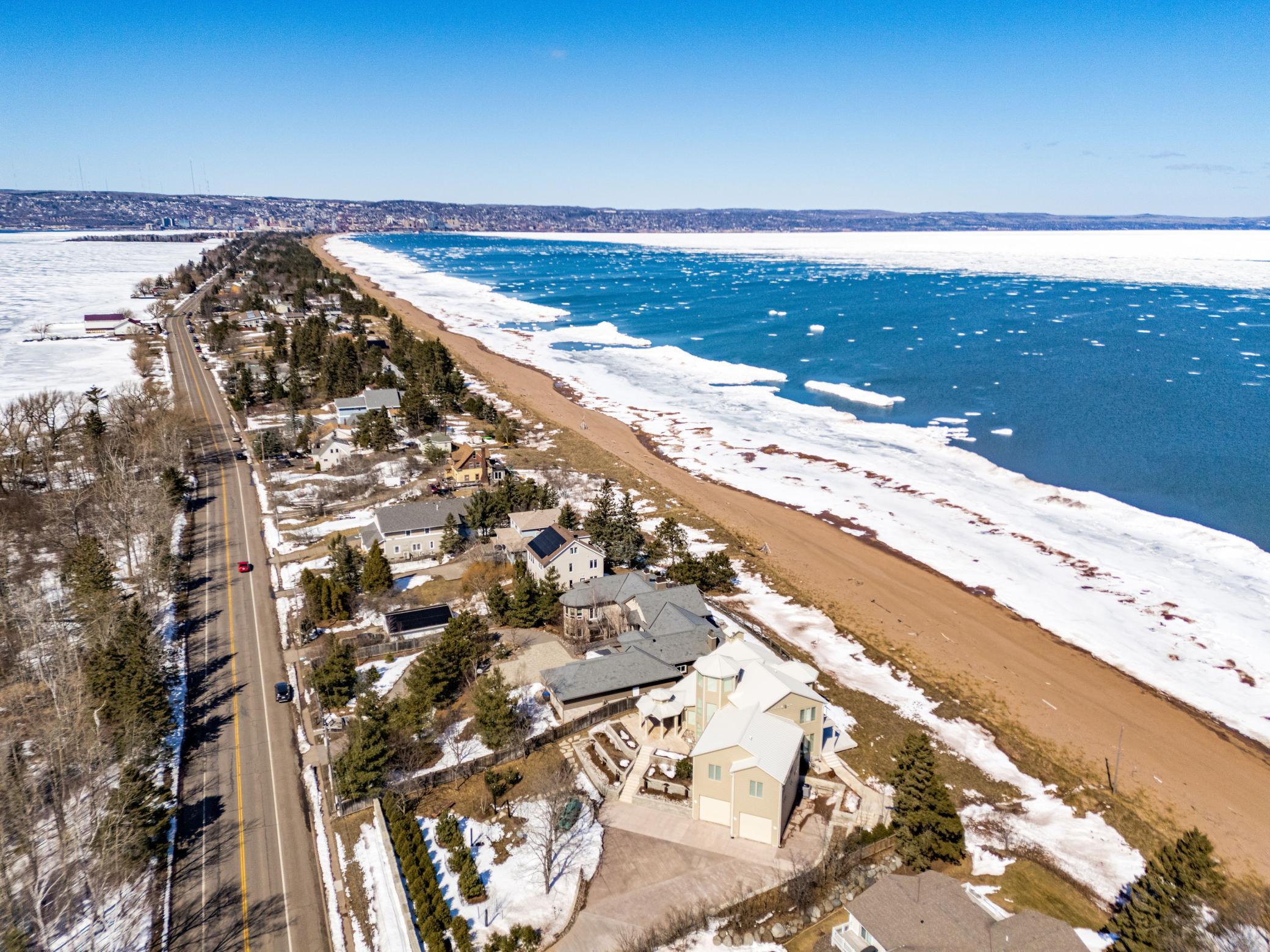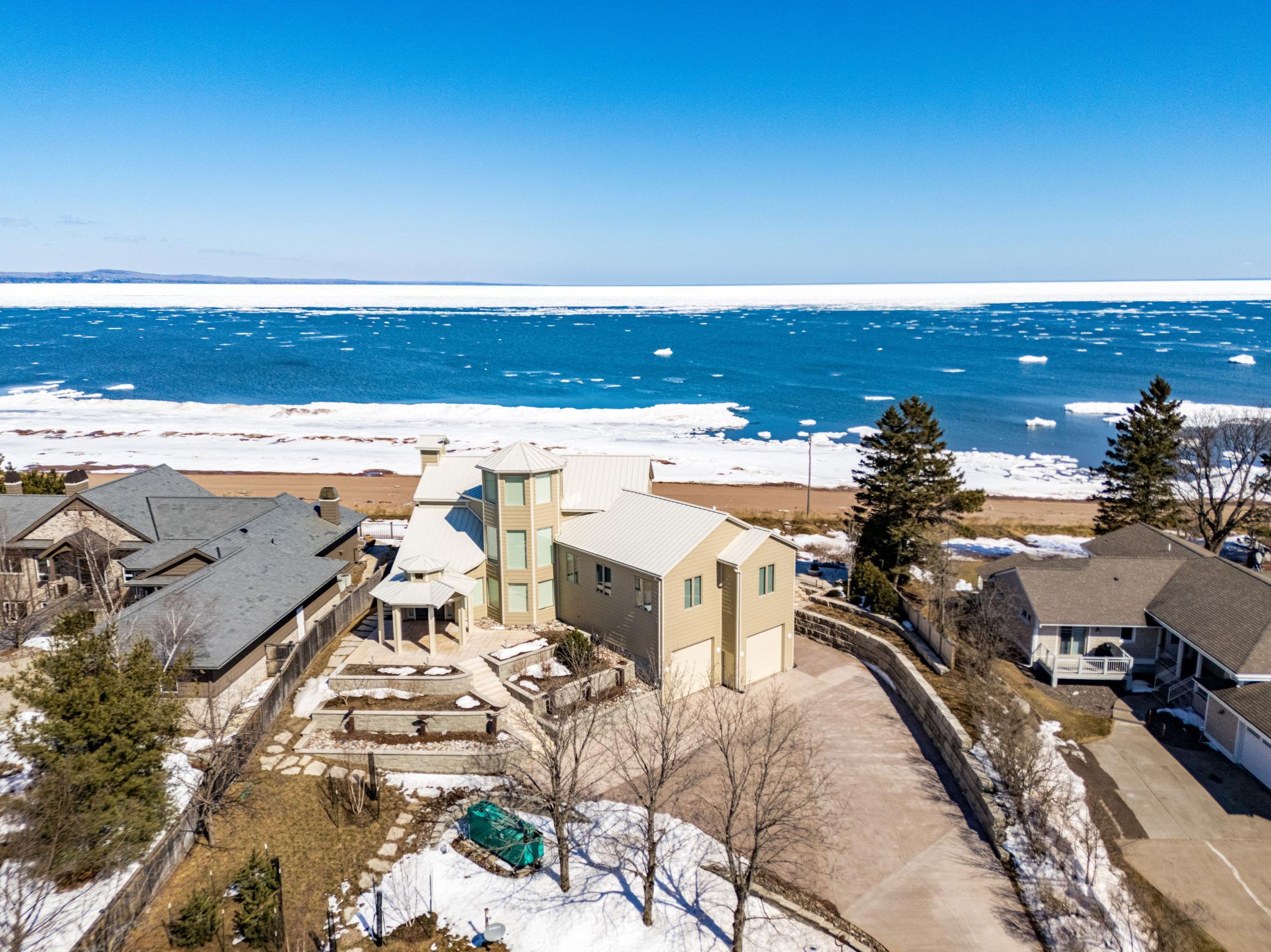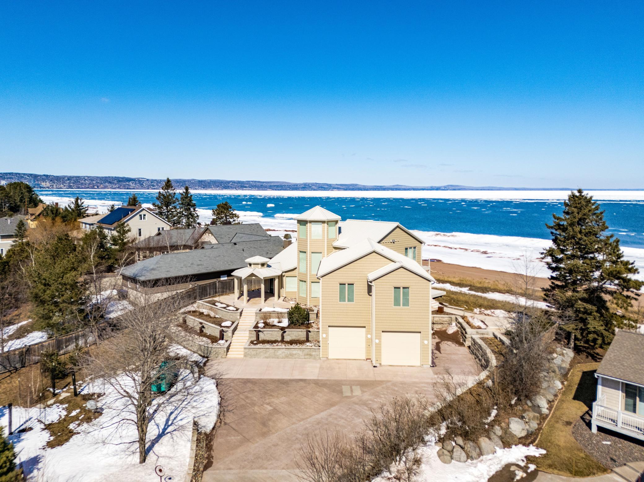 This Lake Superior Beach House on Park Point has the most spectacular views of both the Lake and the Harbor. The secluded location at the end of the largest fresh water sandbar in North America offers the perfect combination of serenity with access to everything Canal Park and Duluth has to offer. The home has recently and supremely been renovated inside and out to an unprecedented level of luxury and comfort. Every inch of this property captivates an attention to beauty and comfort. This is truly a legacy property that rarely comes along. The home does have a sauna. Home does feature a generator to run the entire house. Extensive custom landscaping, featuring custom and unique features, including a custom engineered landscaping block. The garage is big enough for three cars. Outdoor patio and dining areas. Every bedroom has its own bathroom. There is a sanctuary room in fourth floor tower.