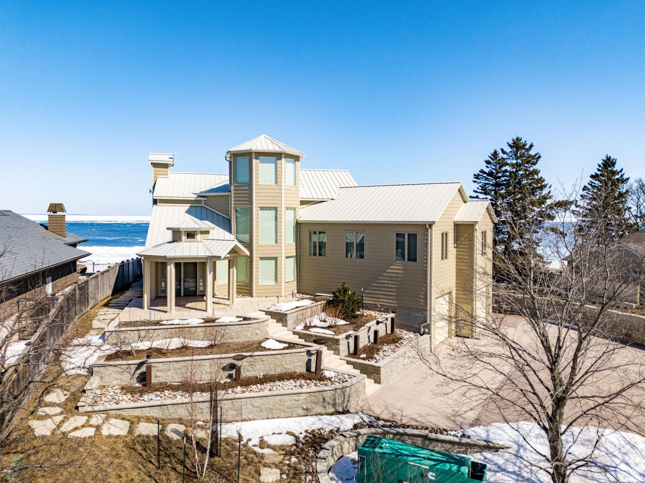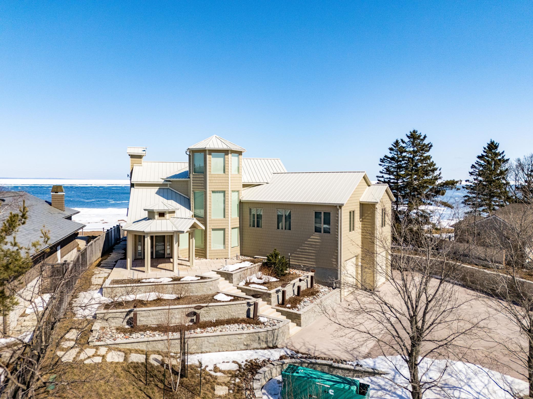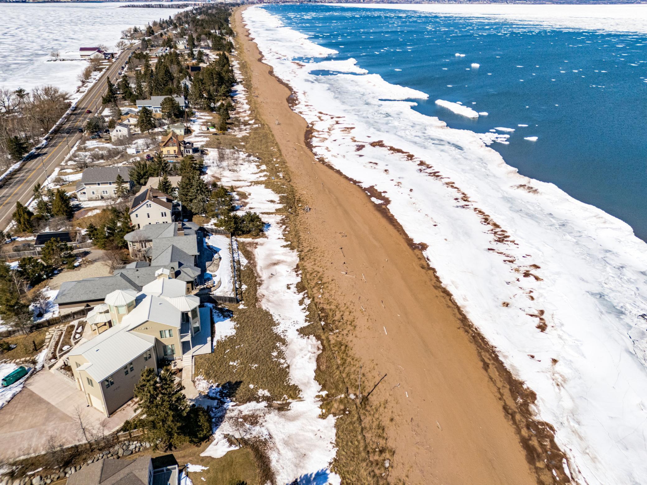 This Lake Superior Beach House on Park Point has the most spectacular views of both the Lake and the Harbor. The secluded location at the end of the largest fresh water sandbar in North America offers the perfect combination of serenity with access to everything Canal Park and Duluth has to offer. The home has recently and supremely been renovated inside and out to an unprecedented level of luxury and comfort. Every inch of this property captivates an attention to beauty and comfort. This is truly a legacy property that rarely comes along. The home does have a sauna. Home does feature a generator to run the entire house. Extensive custom landscaping, featuring custom and unique features, including a custom engineered landscaping block. The garage is big enough for three cars. Outdoor patio and dining areas. Every bedroom has its own bathroom. There is a sanctuary room in fourth floor tower.