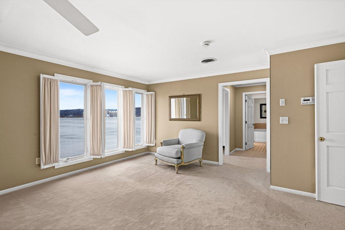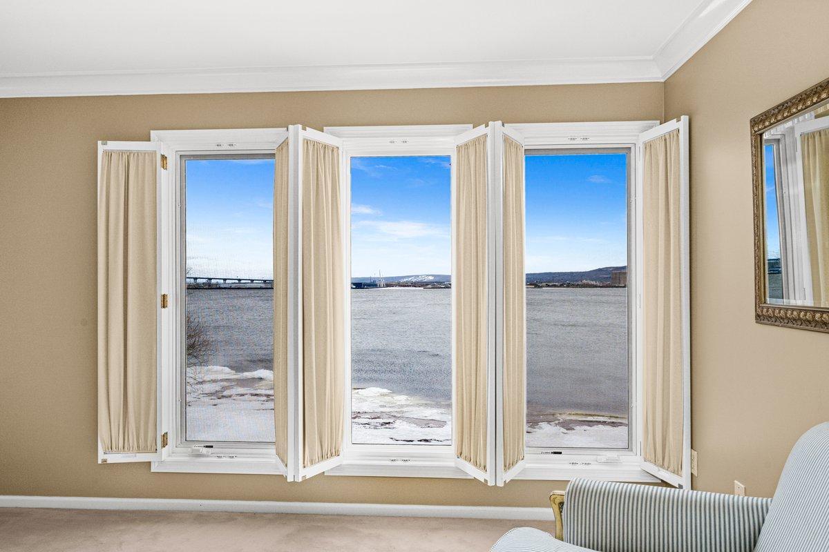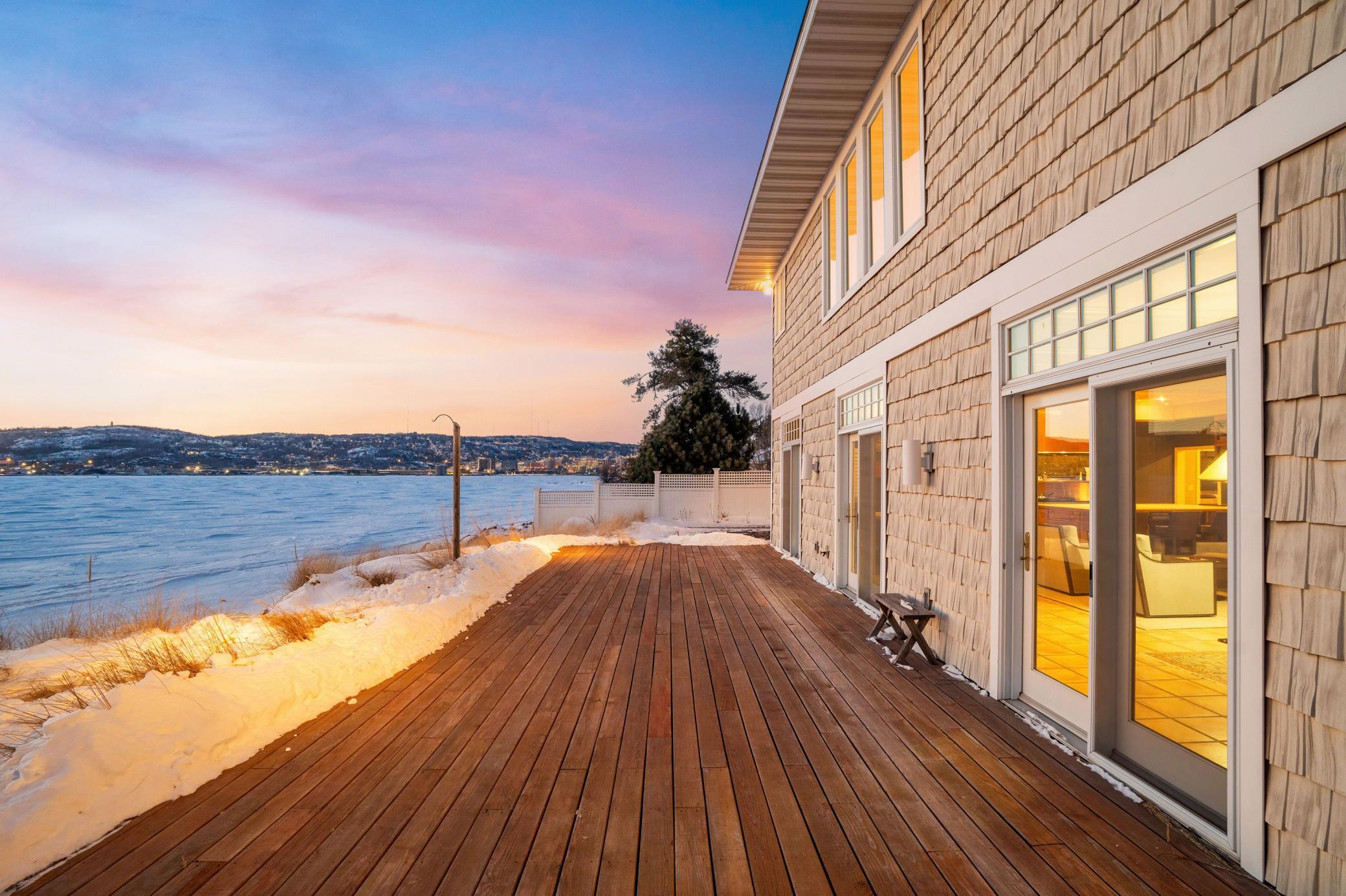 Welcome to a breathtaking paradise on Duluth’s Park Point. This stunning home sits on a spectacular lot boasting mesmerizing views, lush landscaping, vibrant gardens, and a fabulous sandy beach with a dock into the bay! Sunlight pours into every room, creating a bright and inviting ambiance. The main floor features a spacious great room with built-in bookshelves and cozy gas fireplace framed by a grand mantle. You'll love the chef’s dream kitchen with 12-burner Jade range and indoor grill beneath a striking copper hood. Three French doors open to a deck overlooking the water, seamlessly merging indoor and outdoor spaces. Adjacent to the kitchen are a generous pantry, a laundry/mudroom, and access to the 2-car garage. Upstairs, 4 bedrooms include a luxurious primary suite with 2 walk-in closets and private bath featuring a tiled shower and soaking tub. Enjoy the best of lake life watching sunsets on the deck, sitting around the gas fire pit next to the water, or taking a dip from your own beach. A new bluestone patio and vine covered pergola set amongst the well established gardens is the perfect place to admire the flourishing blueberry bushes, amazing peonies and movable beds. Other highlights include an office/wine room, newer windows, boiler and shoreline riprap, and 3 gardening sheds. Don’t miss this rare opportunity to own a waterfront retreat blending elegance, comfort, and nature.