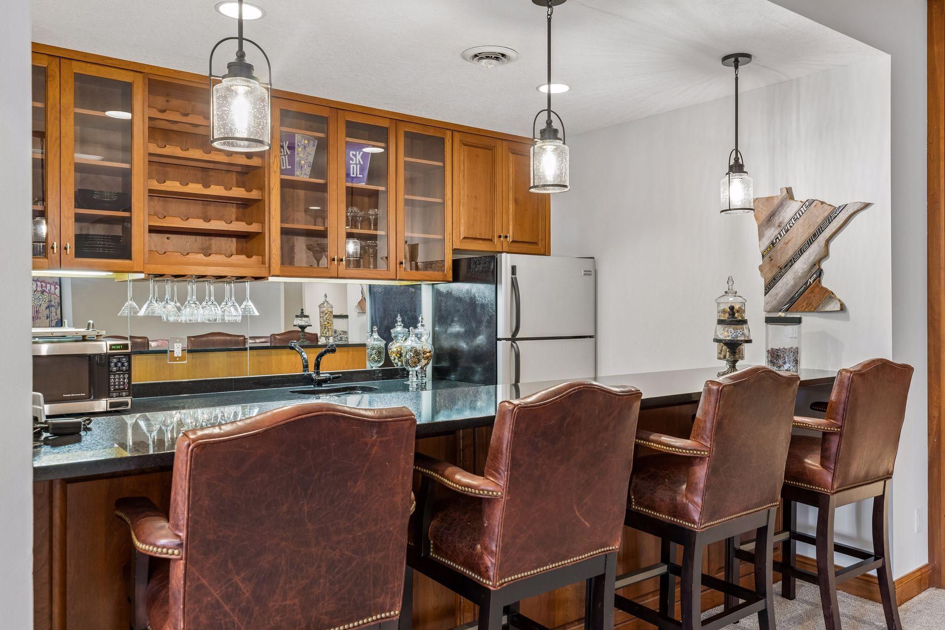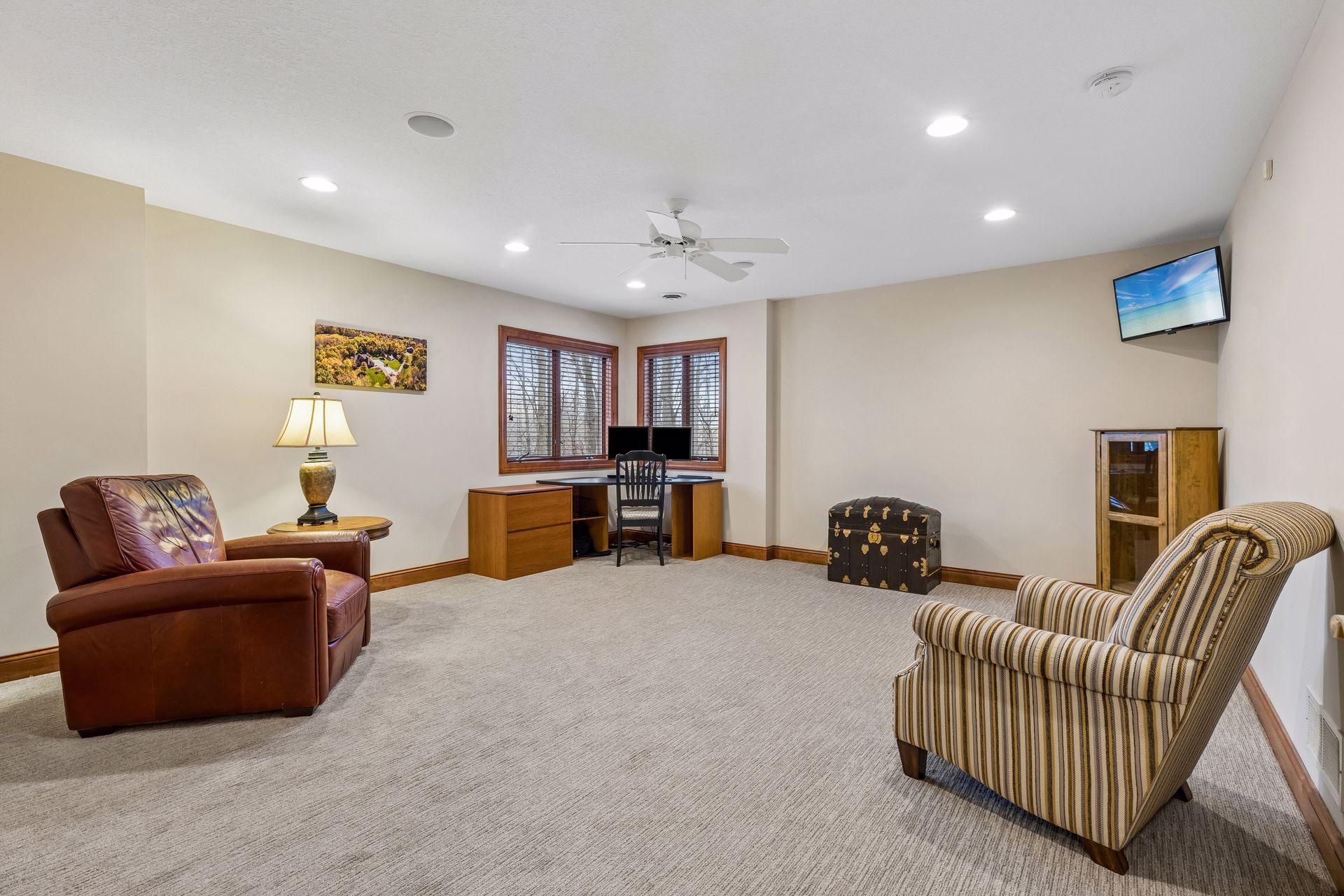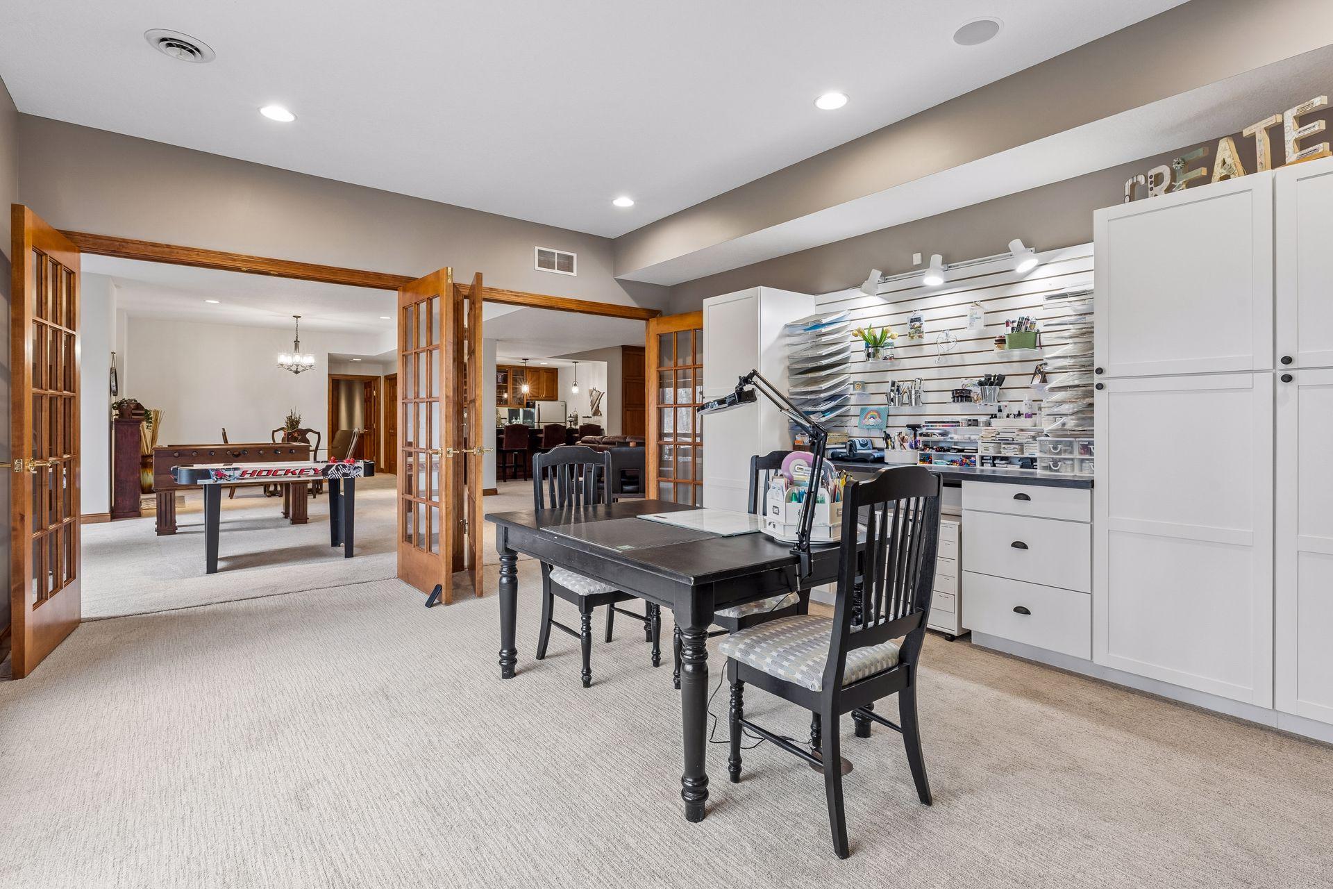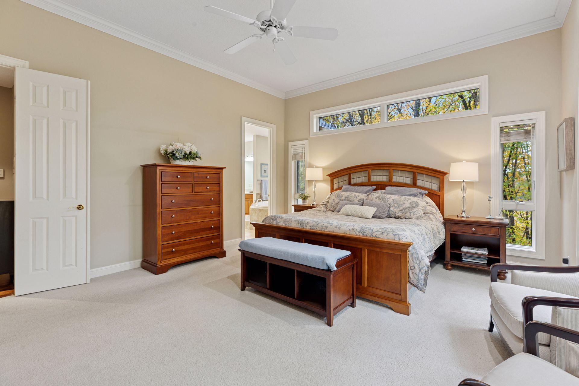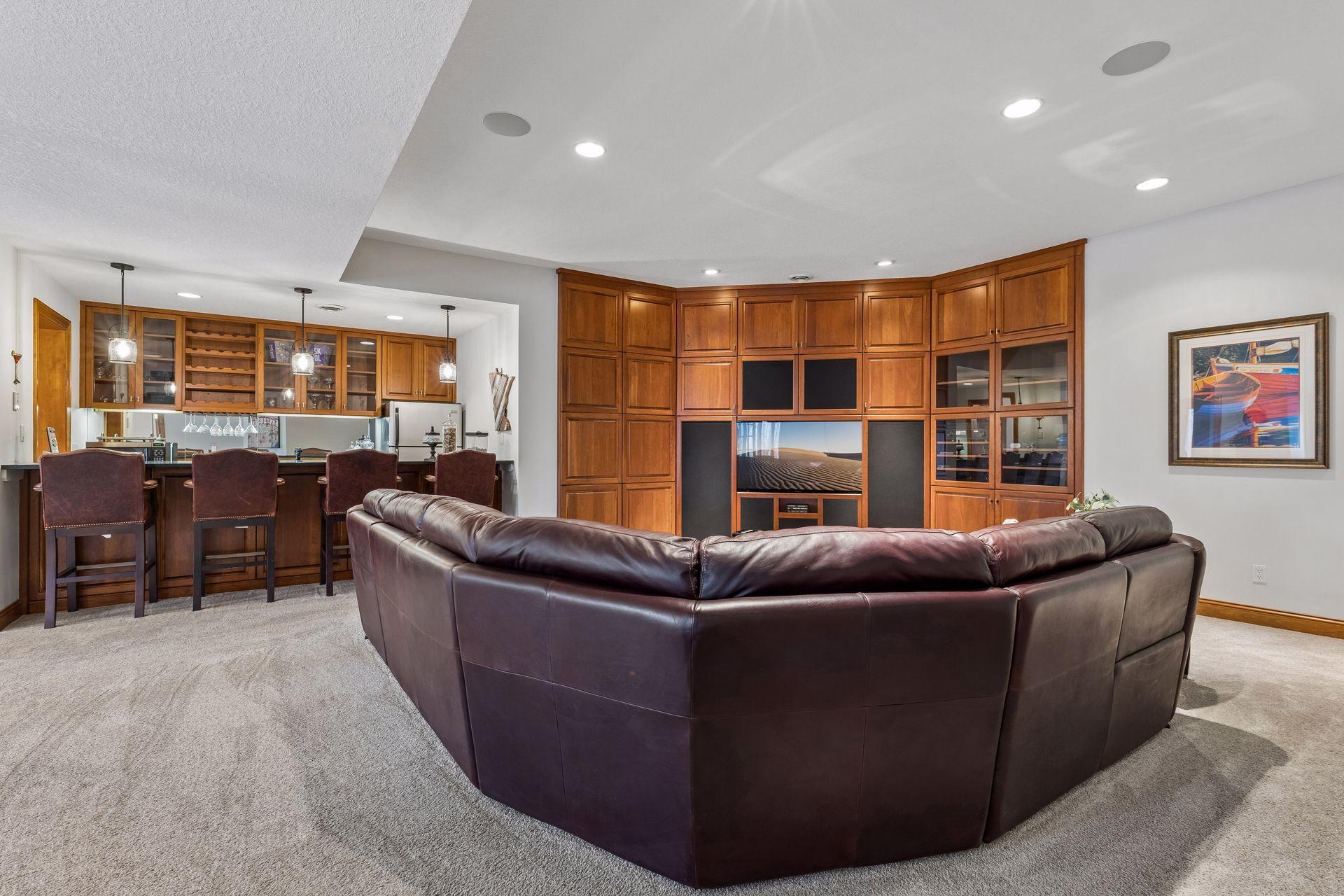 Tucked away on over 9 acres of scenic privacy, this custom-built retreat offers a rare combination of peaceful seclusion and convenient access to all that Maple Grove has to offer. Adjacent to Elm Creek Park Reserve, you’ll enjoy breathtaking natural surroundings, miles of trails, and abundant wildlife right in your backyard. Designed with enduring quality and attention to detail throughout, the main level showcases a true chef’s kitchen equipped with Sub-Zero and Wolf appliances, seamlessly connected to a stunning two-story vaulted family room filled with natural light. Formal living and dining spaces provide elegant entertaining options, complemented by a butler’s pantry with wet bar. The main-floor primary suite is a luxurious retreat, featuring dual closets, a dedicated dressing area, dual vanities, a large steam shower, and a separate jetted tub. A beautifully appointed main floor office with a full wall of cherry built-ins adds both function and sophistication. Upstairs, you’ll find three additional bedrooms, including a private ensuite, along with a full bath and a versatile study or lounge space. The walkout lower level expands the home’s living and entertaining potential with 9-foot ceilings, a spacious family room with built-in media center, a theater room, wet bar, flexible craft or exercise room with French doors, a fifth bedroom, and a ¾ bath. Outside, the setting is truly exceptional—complete with a private pond with fountain, plus a 60x40 outbuilding ideal for hobbies, storage, or recreational use in addition to the attached fully finished and heated four-car garage. A one-of-a-kind property offering space, privacy, and refined living—all within minutes of shopping, dining, and major freeway access.