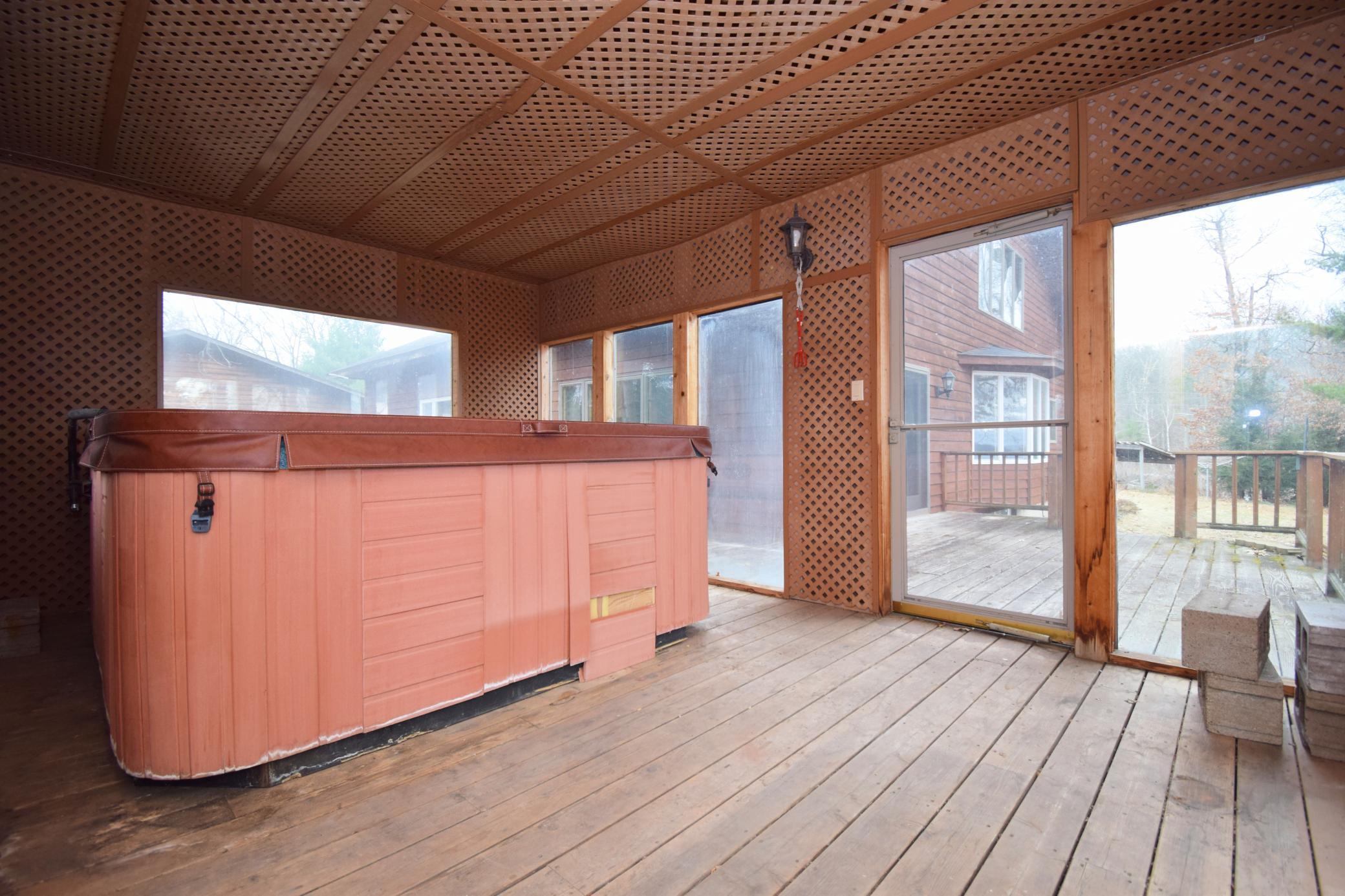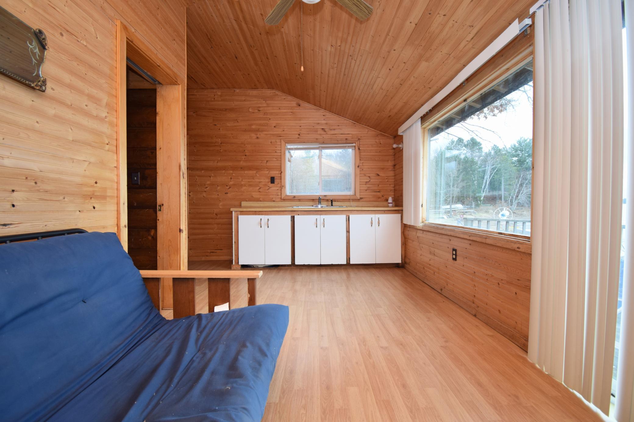 Wind down a private drive to discover a rare opportunity to own a piece of history on sought-after North Sand Lake—153 feet of pristine sugar sand frontage & 1.42 acres of west-facing shoreline delivering breathtaking sunset views. Formerly a family resort called "Our Place", the property offers incredible versatility and potential, featuring a chalet-style 3 BR, 3 BA home, two seasonal guest cabins, a 3+ car detached garage that’s insulated & heated, an additional one-stall garage, and even a dedicated lakeside hot tub house. Whether you're envisioning a private family retreat or an investment opportunity, the possibilities here are endless. Inside, the home showcases warm Northwoods charm with tongue-and-groove wood throughout, vaulted ceilings, wood floors, & a cozy wood stove with brick surround. Spacious layout includes a large dining & family room ideal for gathering, one level living, main floor laundry, & an upper-level primary suite, & a partially finished walkout basement complete with sauna. Step out onto the lakeside deck and take it all in—kids playing on the sandy beach, the crystal-clear water stretching out before you, and unforgettable sunsets that never get old. With a little TLC, this premier property can easily become your legacy lake home!