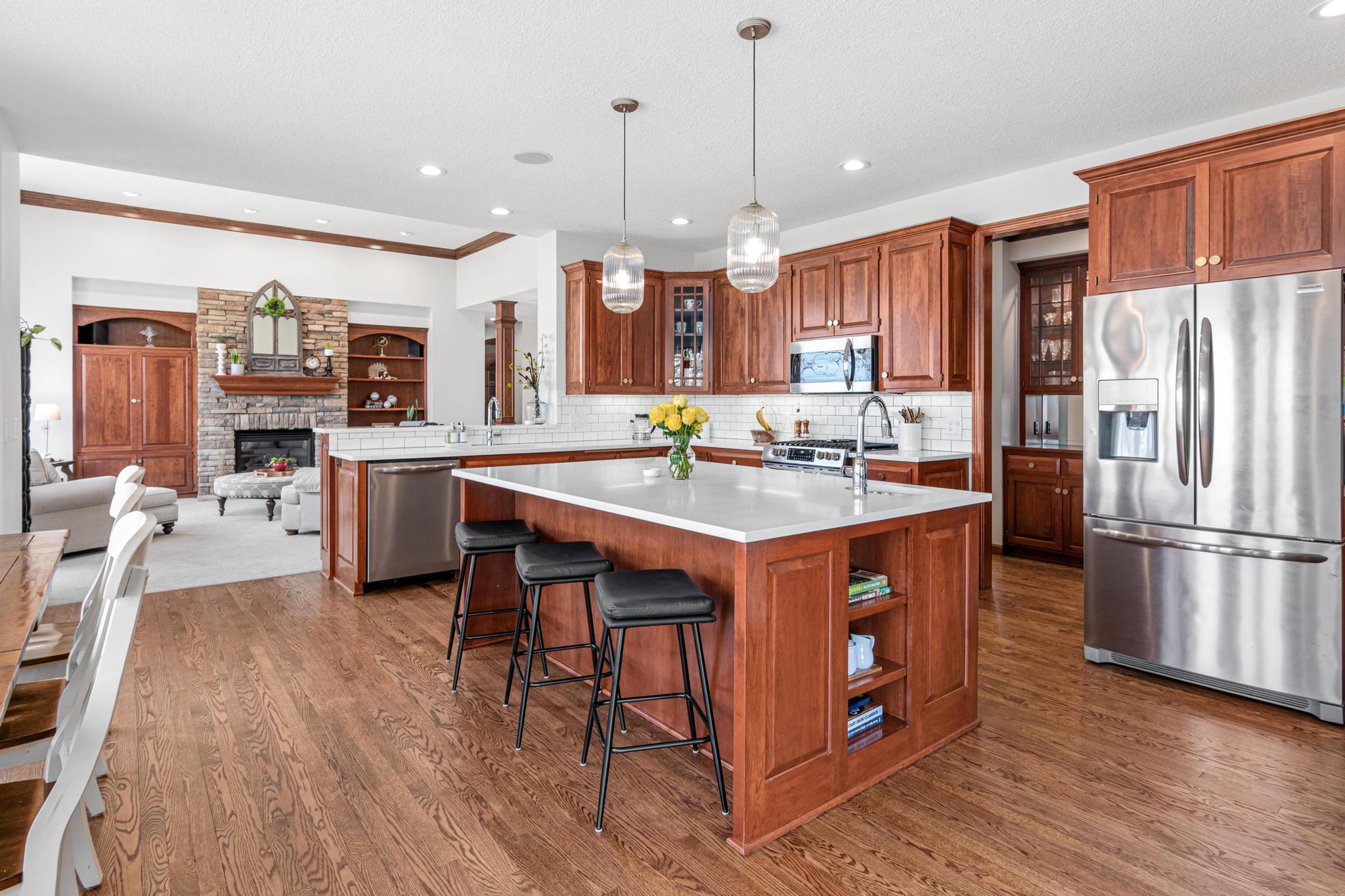 Stunning executive home set on 5 private acres in the highly coveted Grant/Dellwood area, within the award-winning Mahtomedi School District. This custom-built DeWitt brick walkout rambler is defined by showstopping walls of windows framing picturesque, professionally landscaped grounds. The light-filled open-concept design is complemented by refined, high-end finishes throughout. A gourmet cherry kitchen with custom cabinetry opens to a maintenance-free deck, ideal for outdoor dining. Main level highlights include a beautiful great room, sunroom, executive office, guest room, and a luxurious primary suite. The beautifully remodeled walkout lower-level features new LVP flooring and lighting, an expansive concrete patio, amusement room, two additional bedrooms, exercise room (optional third bedroom), study, wet bar, and exceptional spaces for entertaining. Impeccably maintained and thoughtfully updated, this remarkable property offers a rare blend of sophistication, privacy, and comfort.