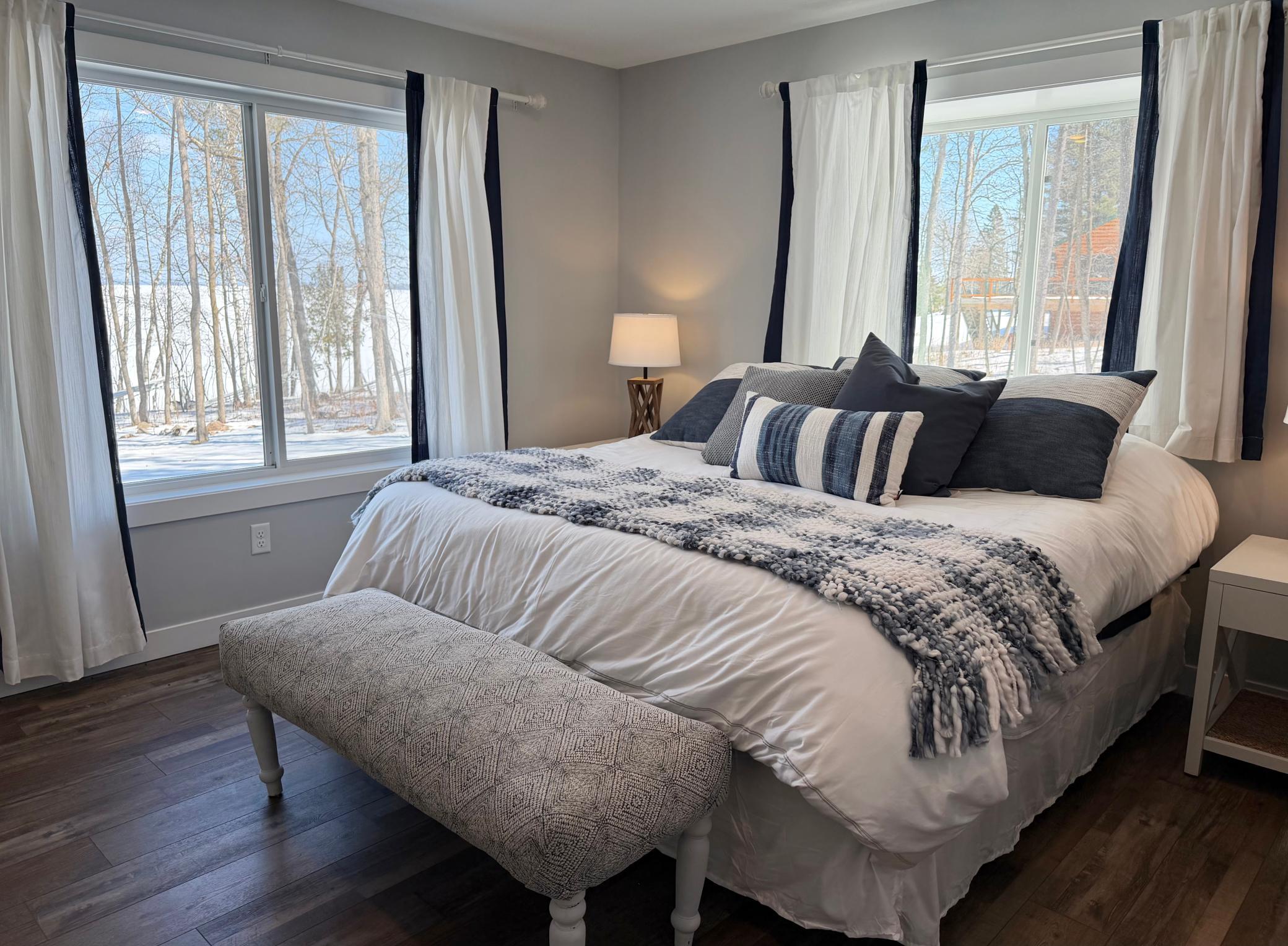 Looking for a unicorn? You just found it. This exceptional Leech Lake home checks every box, featuring world-class water, ideal walk-out elevation, rock and sand frontage, new construction, AND a 40’ x 56’ pole building. Built in 2022 and located in the sought-after Pine Point community, this home was designed for both comfort and entertaining. The main level features an open-concept living space anchored by a stunning kitchen with a large center island and walk-in pantry. The lakeside wall of windows fills the home with natural light, while the gas fireplace creates a warm, inviting atmosphere. A truly unique highlight: TWO MAIN-LEVEL PRIMARY SUITES, thoughtfully positioned on opposite sides of the home, flank the open-concept living area. Each offers a spa-like bathroom with a walk-in shower, private water closet, and generous walk-in closet. There is also a ½ bath on the main level. The walk-out lower level expands your living space with a large family room featuring another wall of windows and patio doors, a roughed-in wet bar, three additional bedrooms, a cozy office (currently housing bunkbeds:)), and two additional bathrooms…perfect for hosting family and guests. Step outside to enjoy effortless lake living with a covered front porch, lakeside deck, and a finished patio beneath with an under-deck ceiling system. The oversized 2-stall heated, insulated attached garage features epoxy floors, floor drains, and a fish cleaning station (which will come in handy when you catch big ol’ walleye’s OFF THE DOCK!). In-floor heat in both the home and attached garage ensures year-round comfort and low-maintenance siding and decking make this home easy living. The driveway and road are fully paved for added convenience. And if all of that is not enough, an impressive 40’ x 56’ pole building includes a concrete floor, electricity, ¾ bath and a 14’ x 16’ overhead door. Don’t forget to check out the virtual tour!