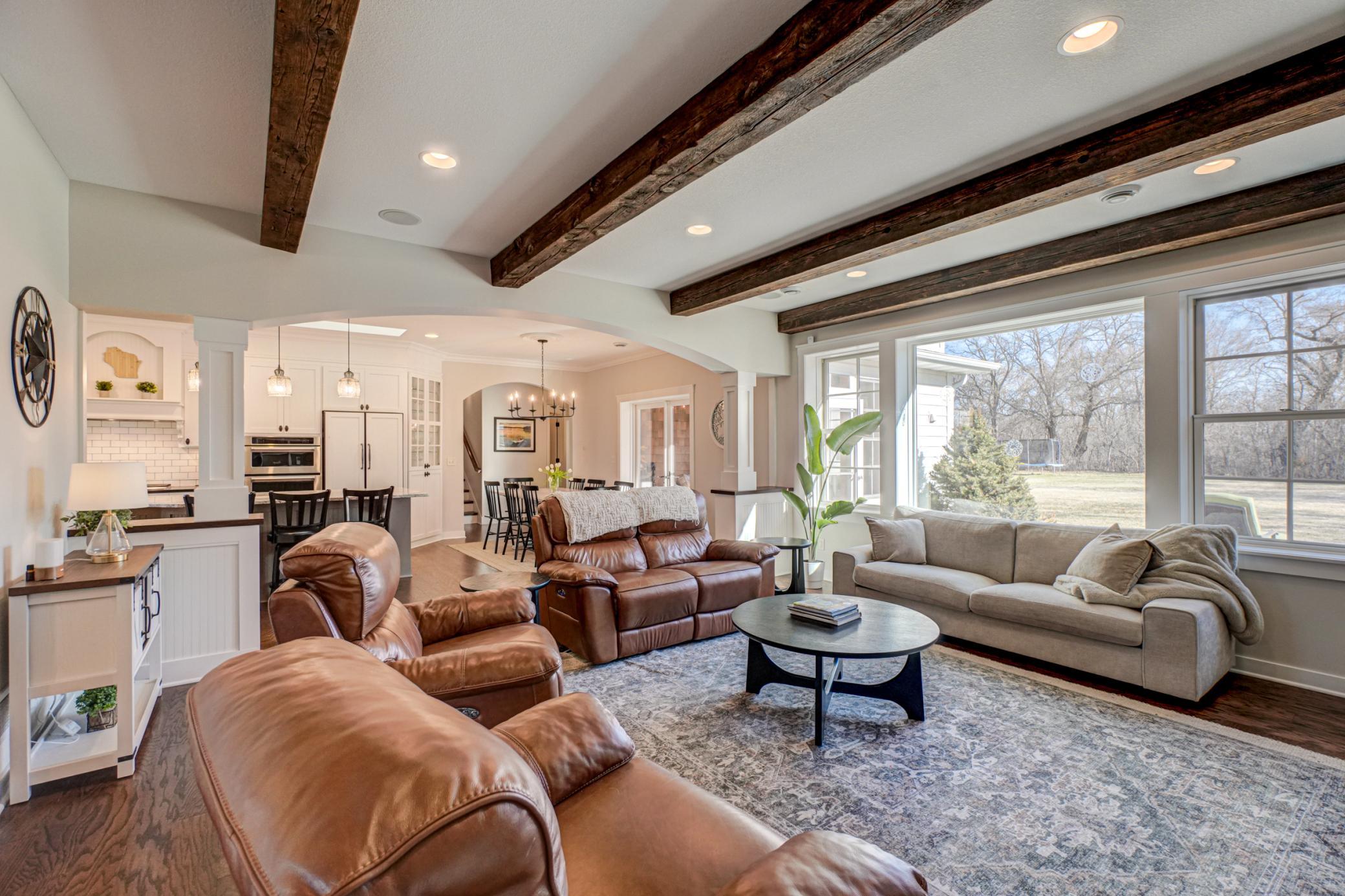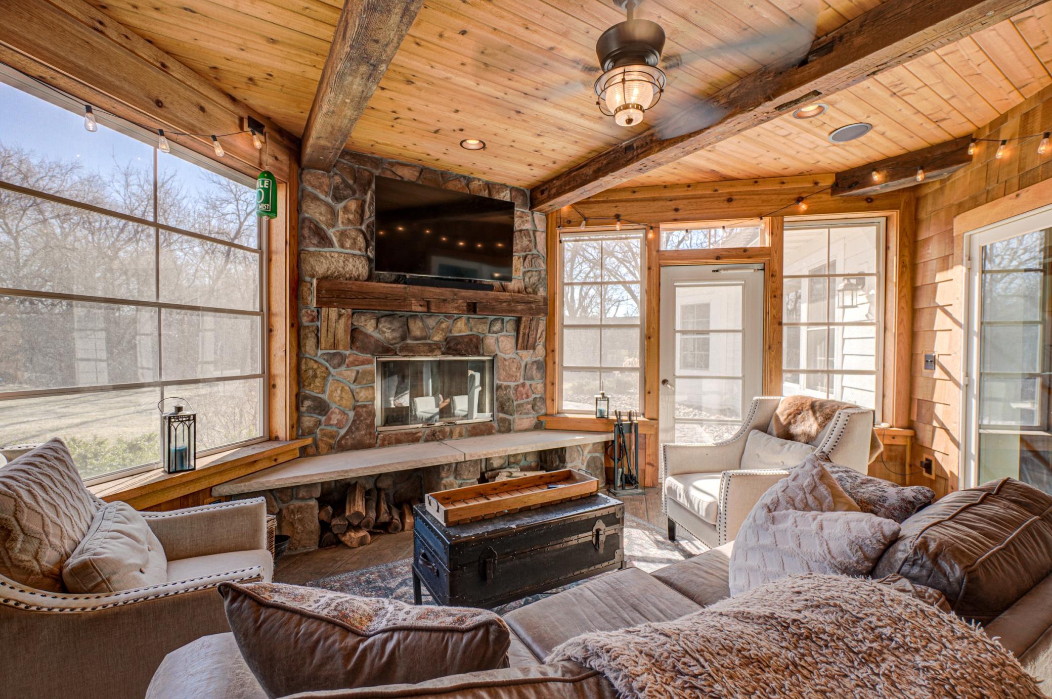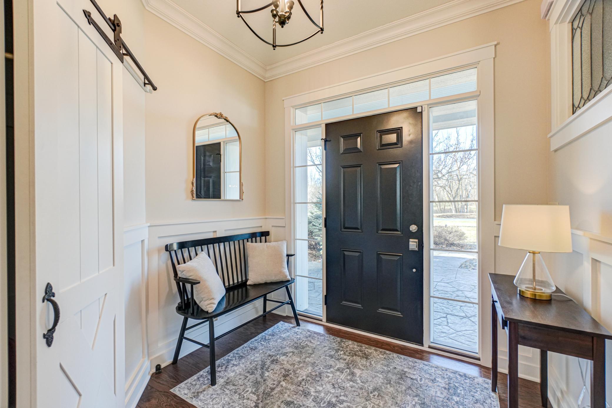 Experience refined design and exceptional efficiency at 877 Yellowstone Trail. Bathed in natural light, this beautifully crafted home showcases an open-concept layout enhanced by custom millwork, elegant cabinetry, multiple fireplaces, and a stunning three-season porch that invites you to relax and unwind. Designed for effortless main-level living, the home features a designer kitchen, a versatile bonus room above the garage is perfect for the 4th bedroom—and a luxurious primary suite complete with its own fireplace, a soaking tub, and a separate shower for a true spa-like retreat. Garage is equipped with an EV charging outlet (charging cord not included). The impressive 40' x 64' pole barn offers incredible flexibility for hobbyists or business use, featuring spray foam insulation, a dedicated shop/office space, and a ¾ bath. Both the home and pole barn are served by separate geothermal systems, delivering energy-efficient, multi-zone in-floor radiant heat for optimal comfort year-round. Built with ICF construction for enhanced durability and efficiency, this Divine Custom Home is a rare blend of craftsmanship, comfort, and sustainability—an exceptional opportunity to live beautifully while embracing smart, modern living. Please watch video!!