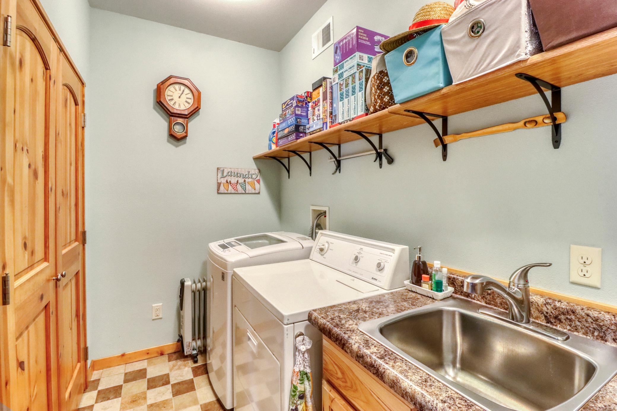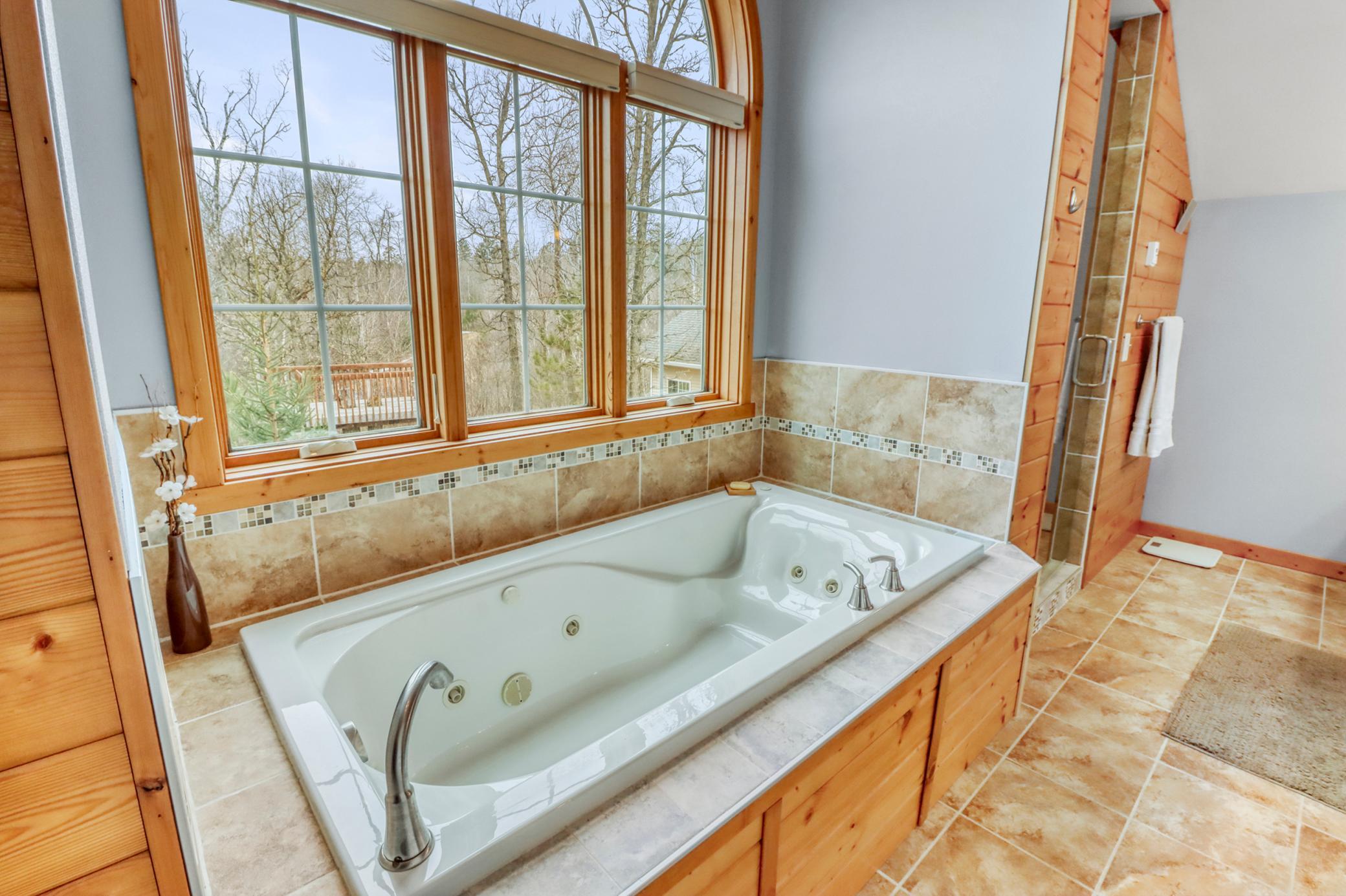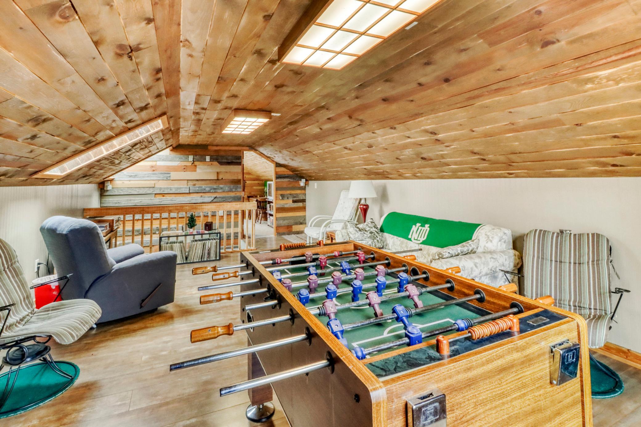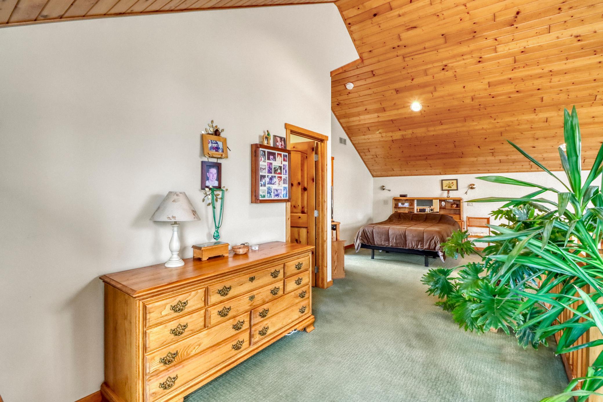 Inside the home you are immediately greeted by the vaulted ceilings and floor to ceiling windows taking in that gorgeous lake view. Main floor has two bedrooms and full bathroom. With main floor laundry for added convenience. Kitchen has stainless steel appliances, custom cabinetry, granite large center island and quartz counter tops. Upstairs in the loft is additional sleeping space with its own private bathroom and walk-in closet.