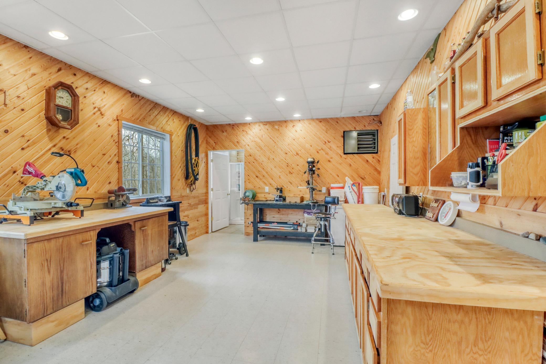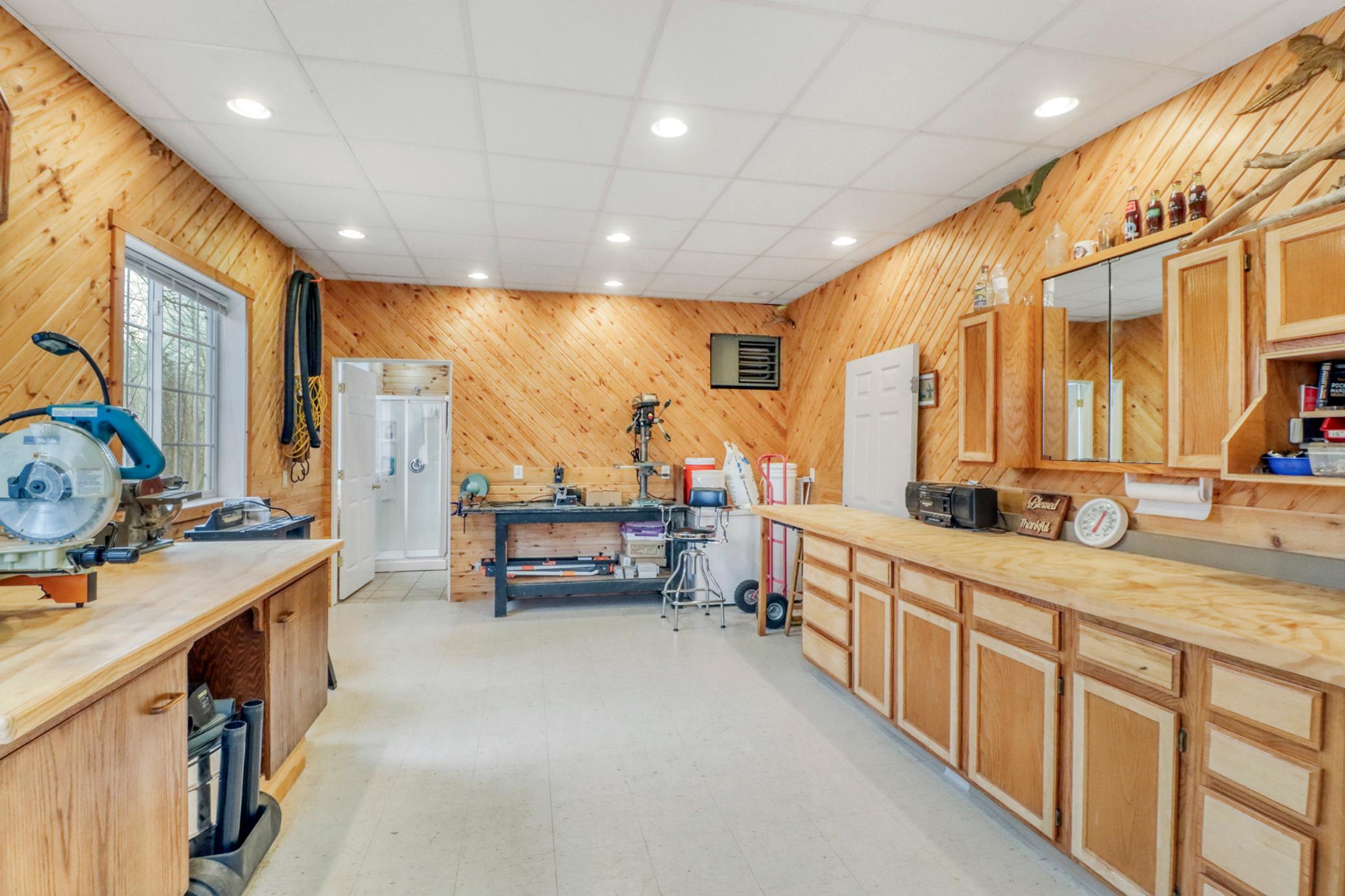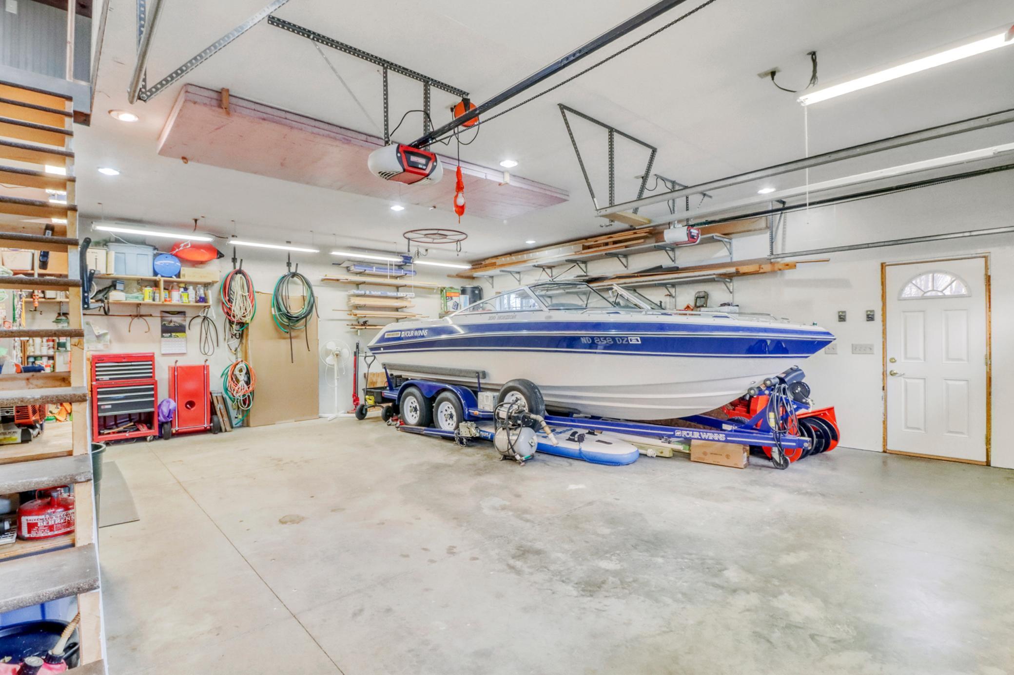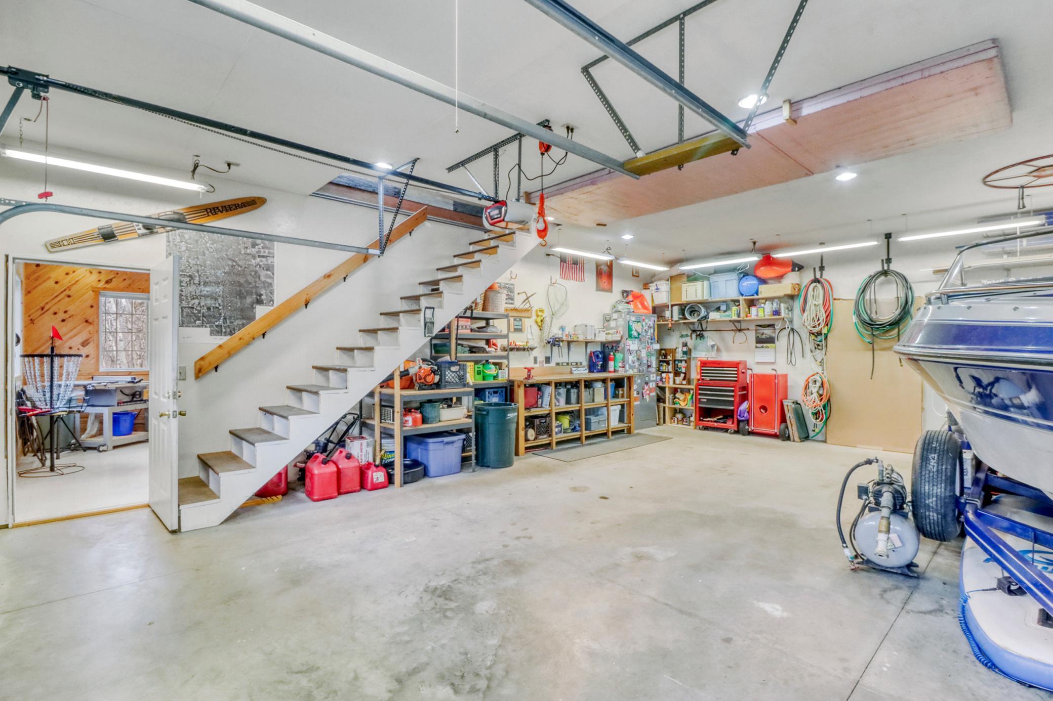 An attached garage as well as a detached two stall garage for any extra toys, along with its own heated workshop for all your project needs and its own bathroom.