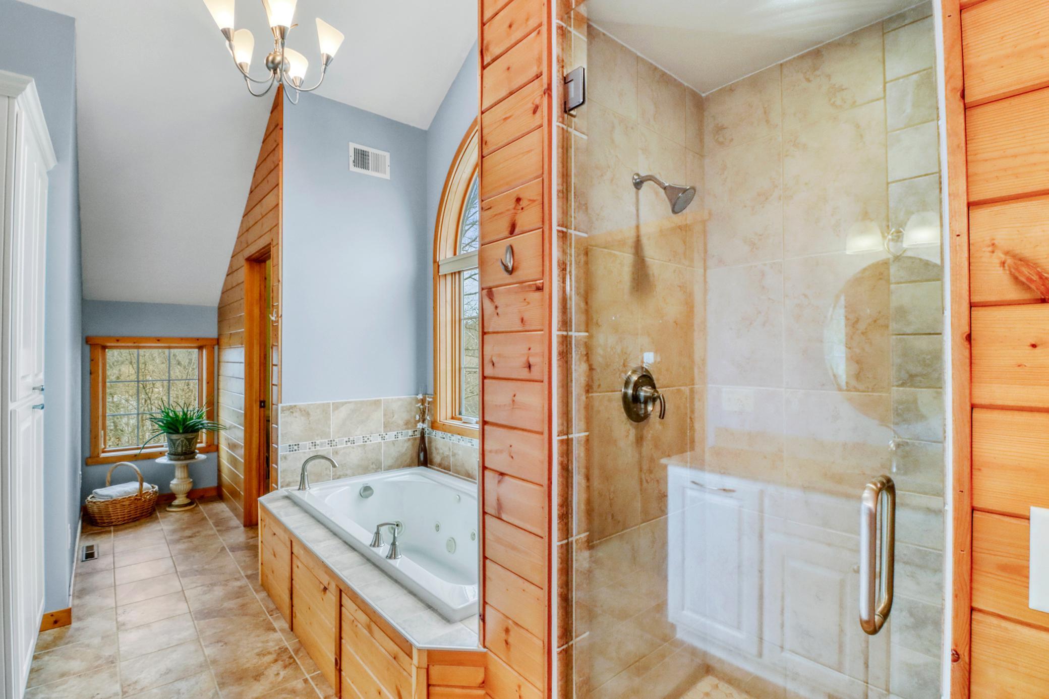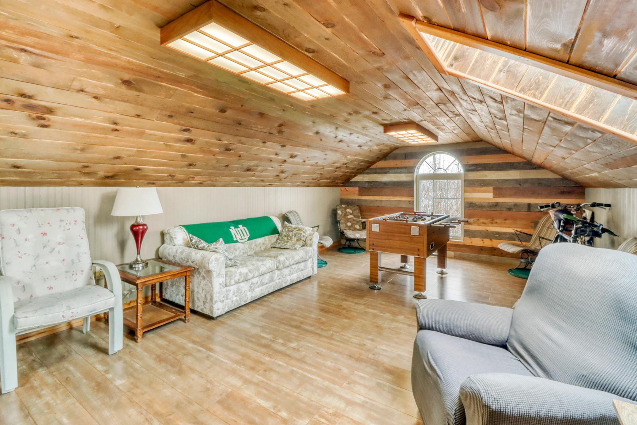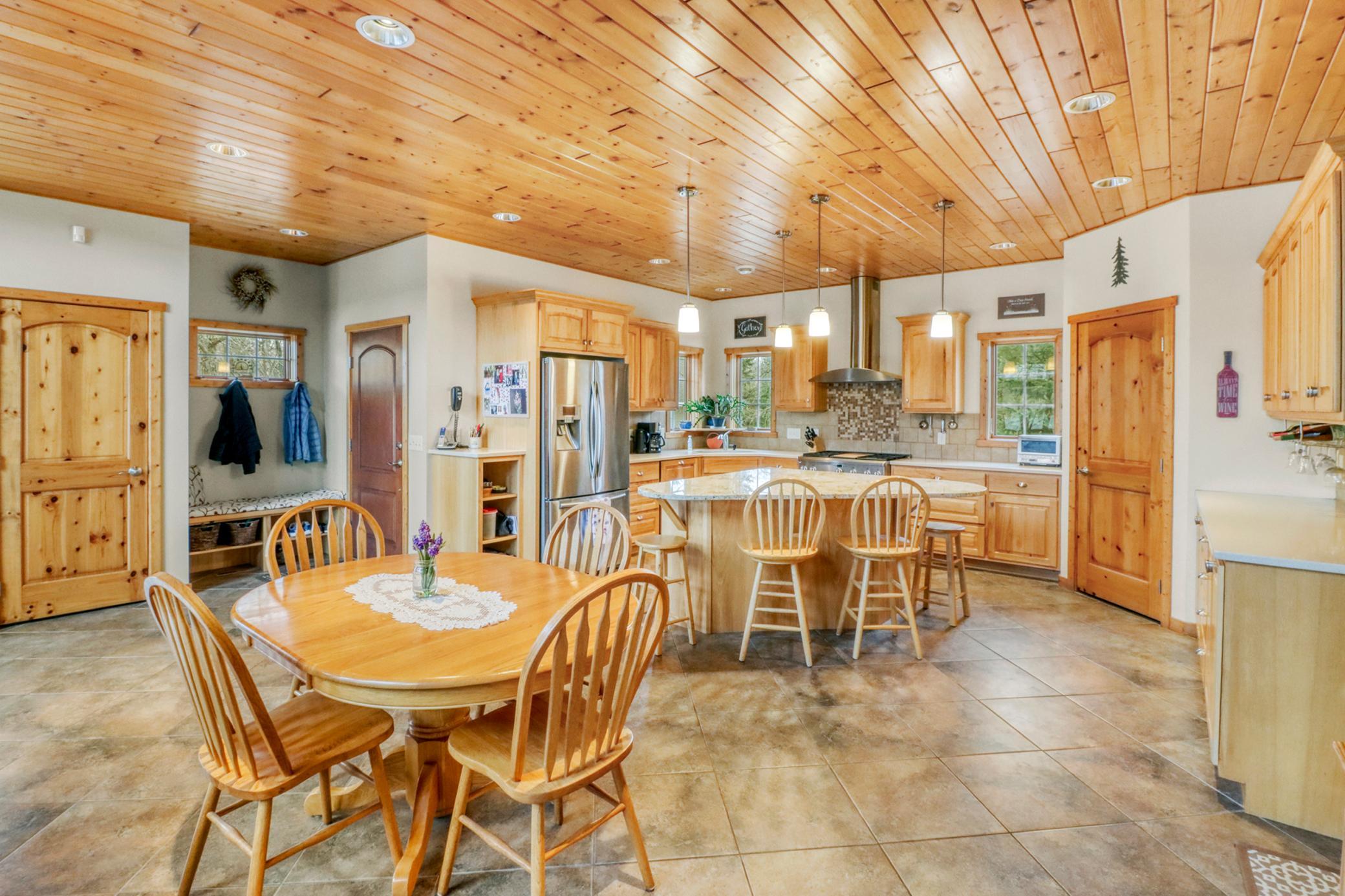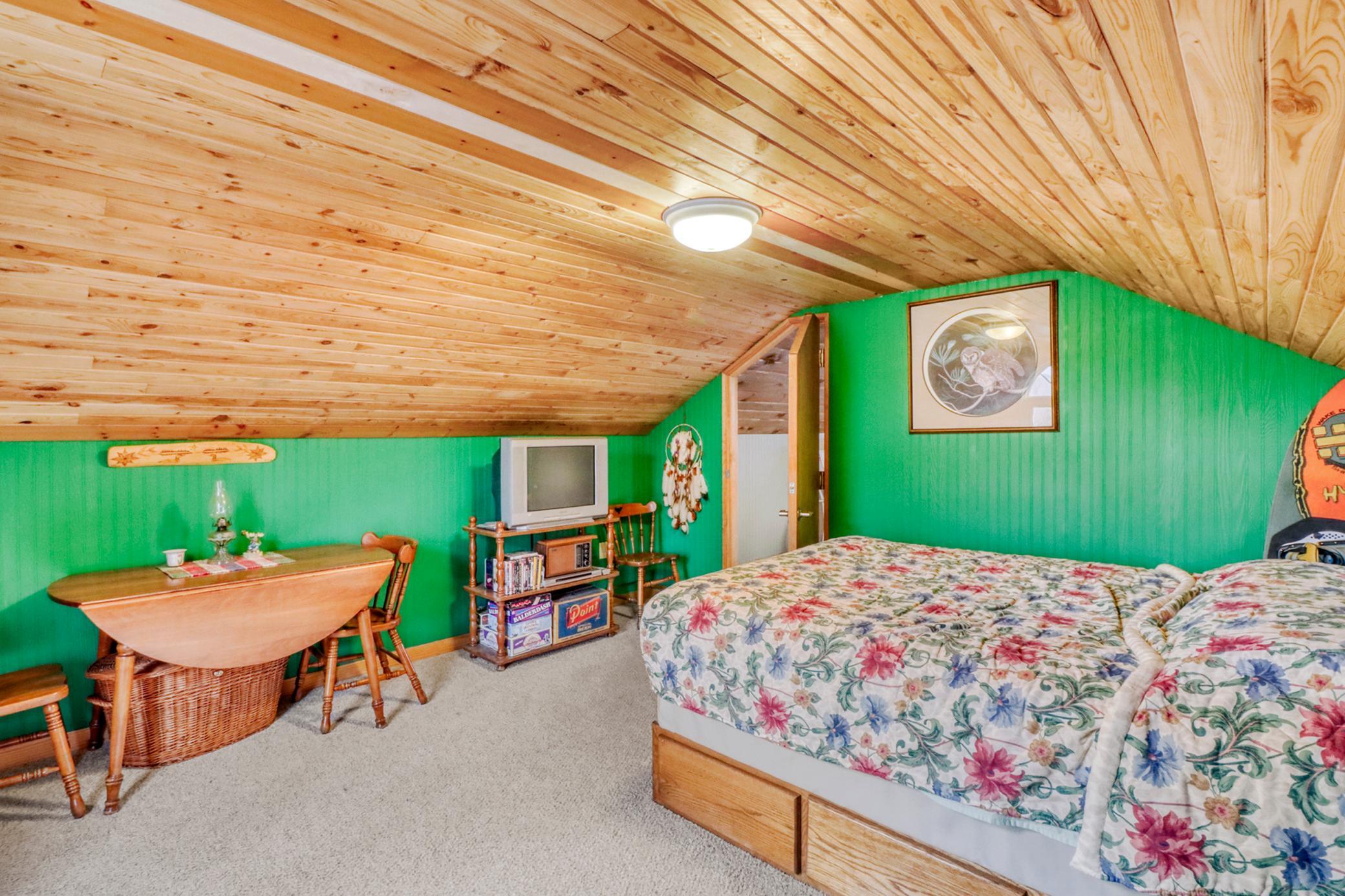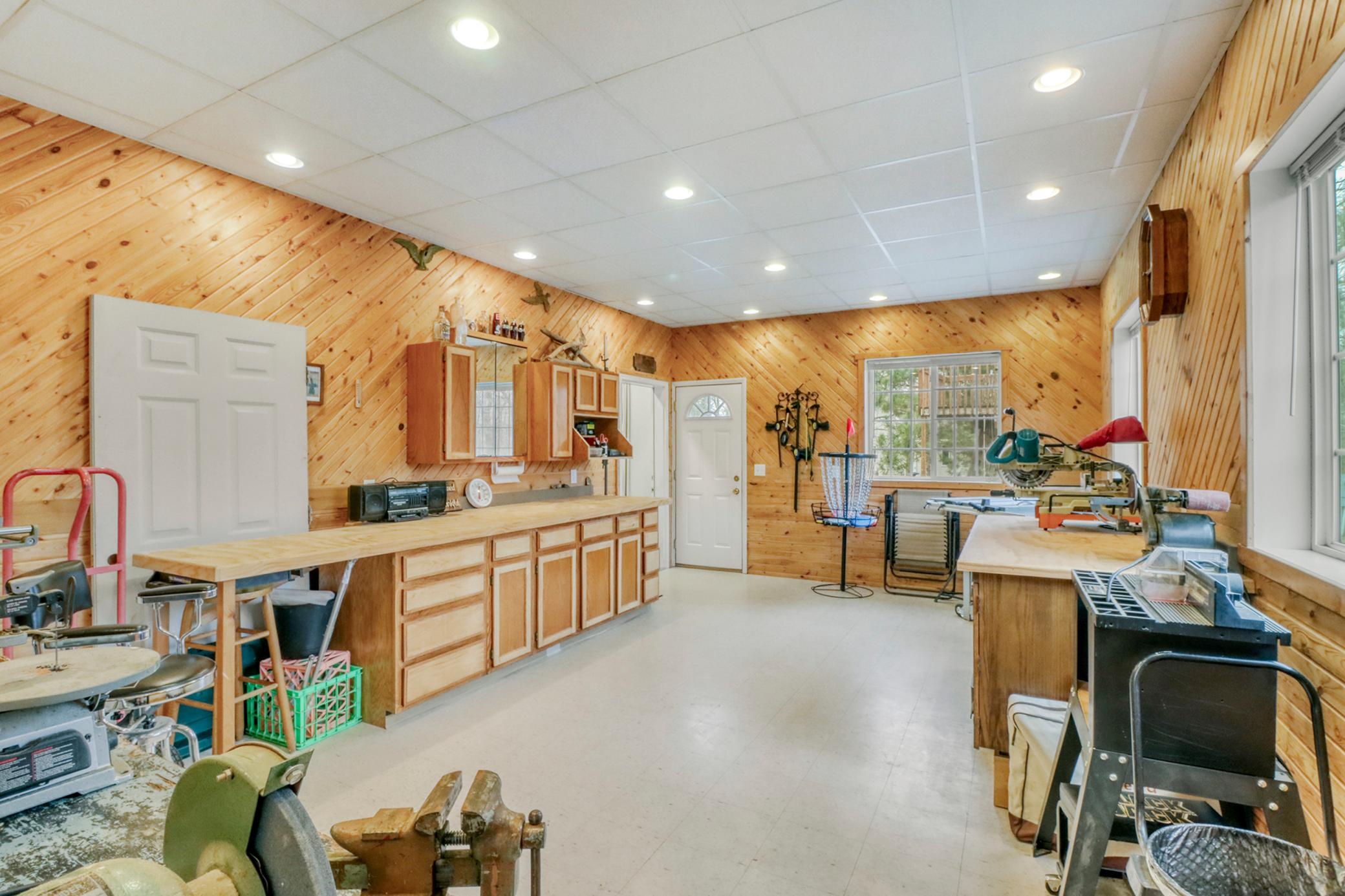 An attached garage as well as a detached two stall garage for any extra toys, along with its own heated workshop for all your project needs and its own bathroom.