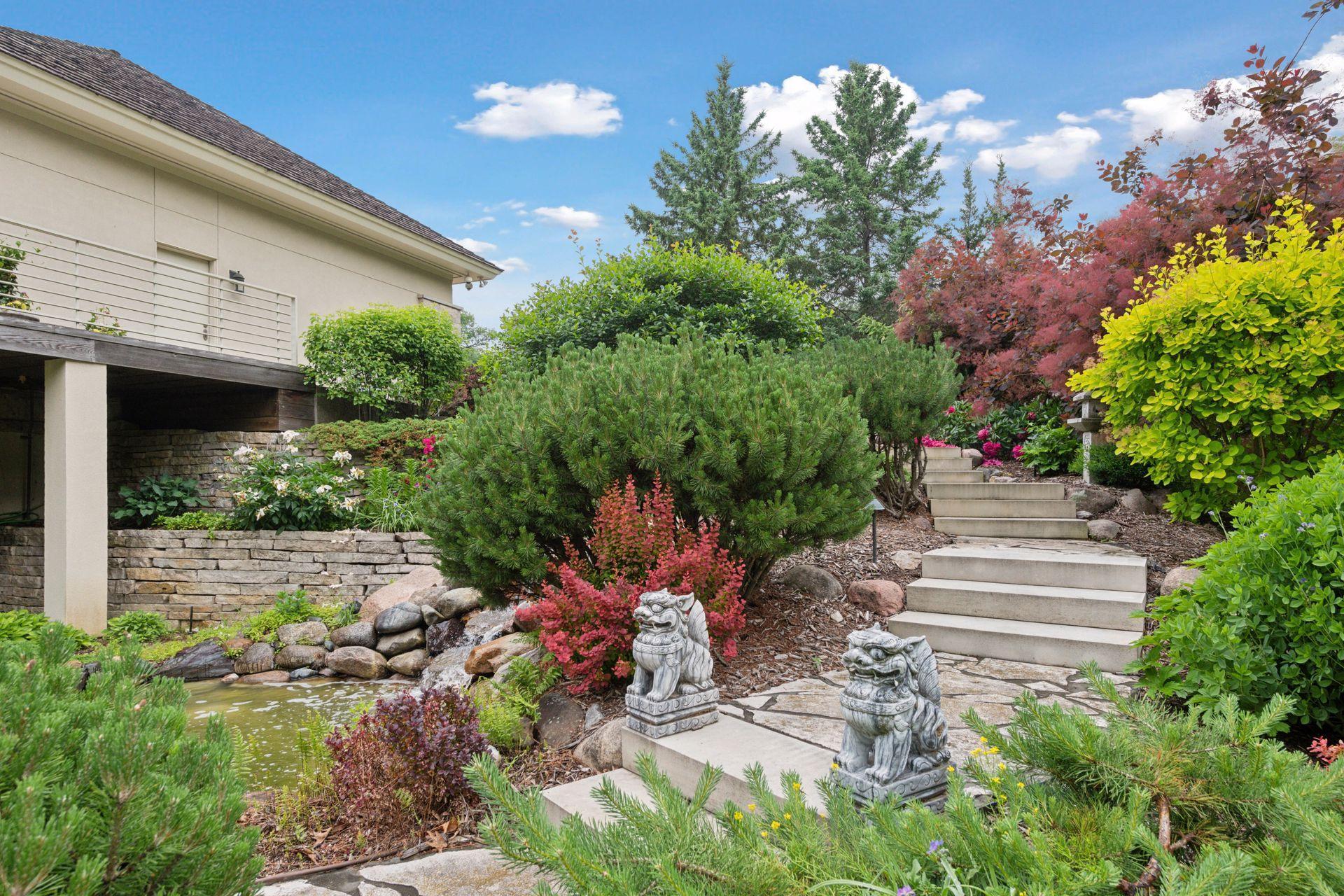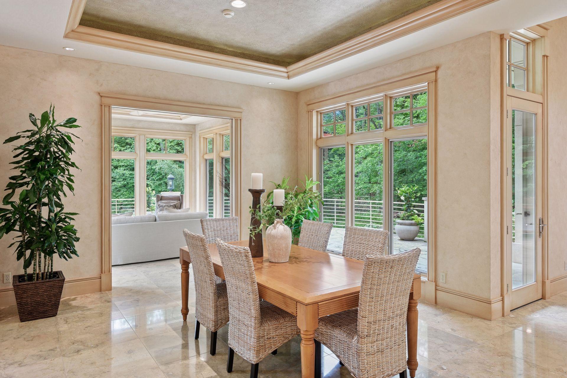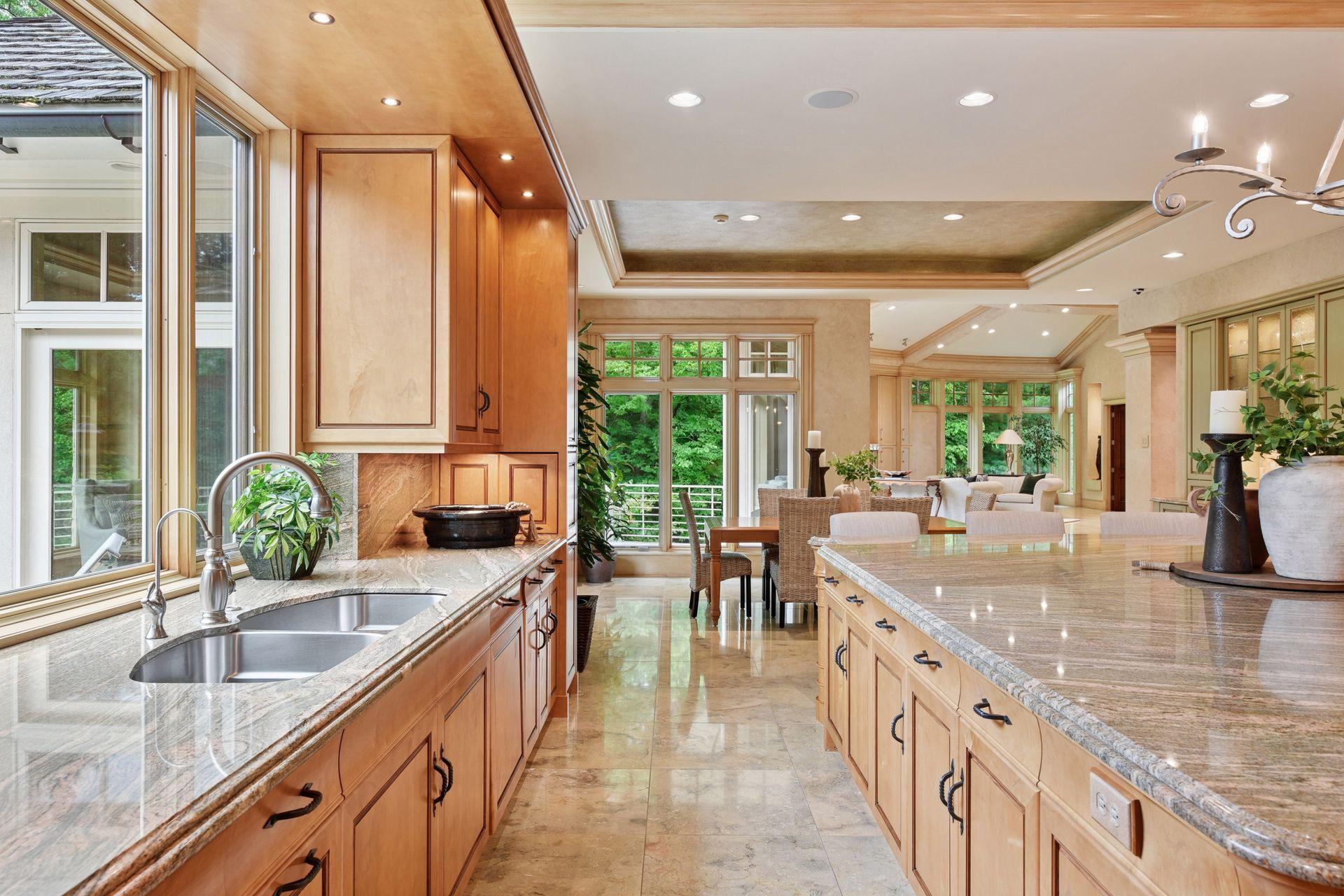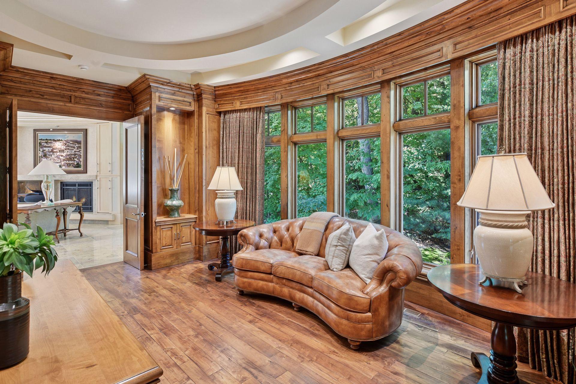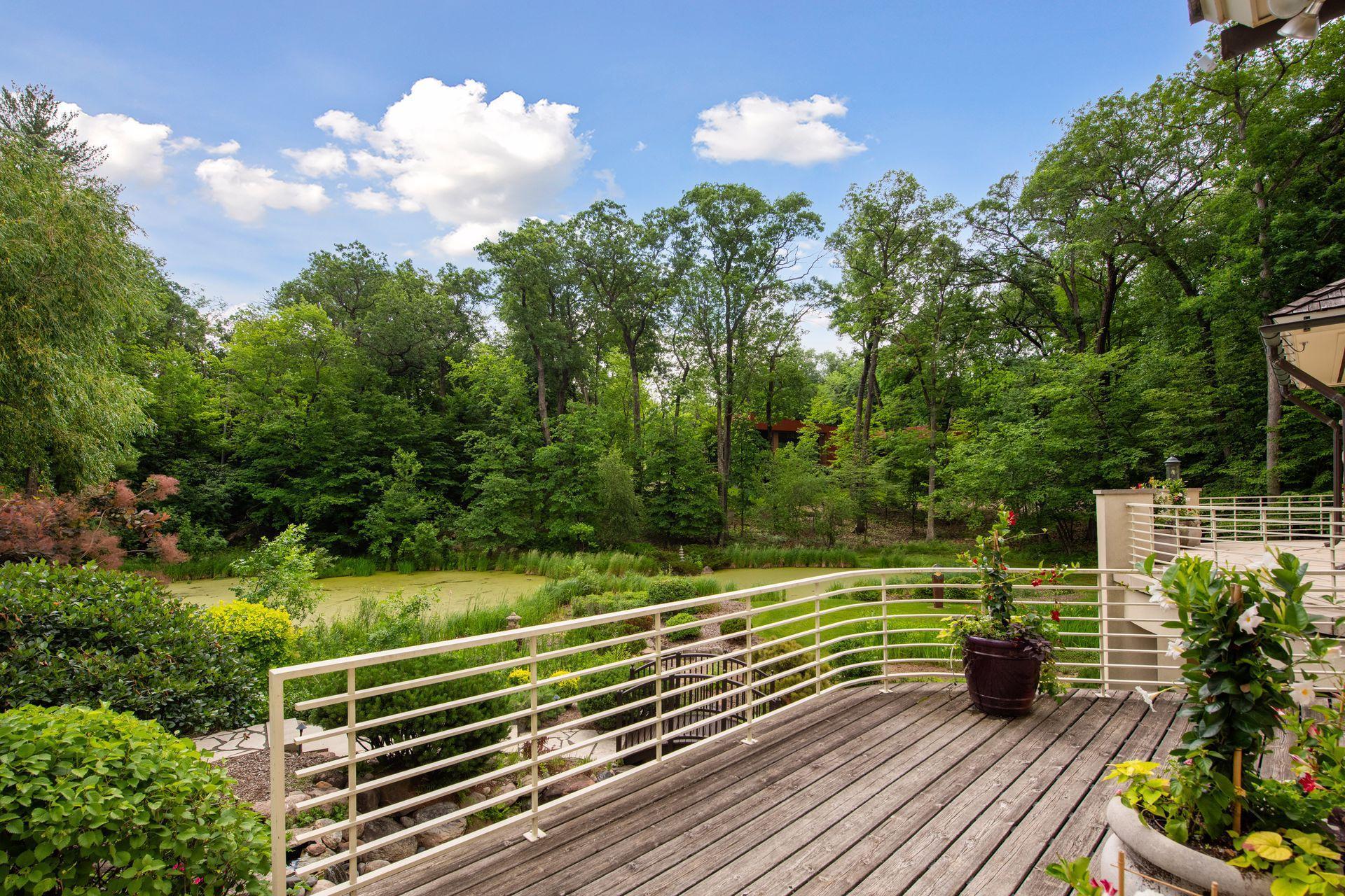 Welcome to a truly remarkable custom-built residence, beautifully nestled on a secluded 4.60 acre lot in the heart of Minnetonka. Surrounded by mature trees and overlooking a peaceful pond, this home offers the rare combination of natural privacy, refined elegance, and premier craftsmanship. A heated paver driveway and grand double-door entry set the tone as you step into a breathtaking foyer flooded with natural light from a dramatic glass cupola and many oversized windows overlooking the private yard and pond. The formal dining room dazzles with a crystal chandelier, while the chef’s kitchen impresses with top-of-the-line appliances and an extraordinary 20' x 21' island, seamlessly connected to the butler’s pantry for effortless entertaining. The inviting living room features vaulted ceilings, exposed beams, a cozy fireplace, and expansive windows that capture the scenic landscape. A richly finished library with custom bookcases and hardwood floors adds warmth and elegance, complemented by a conveniently located main-level office. The luxurious Primary Suite offers tranquil views, refined ceiling treatments, and two expansive walk-in closets with center islands. A private dressing room leads to the spa-like bath showcasing dual vanities, two water closets, a soaking tub, and a double-headed walk-in shower. The elevator and dual staircases provide easy access to an impressive lower level, featuring two additional bedroom suites, (fourth bedroom suite is framed out and ready for your finishes) a large flex room with rough-in plumbing for a potential fourth suite, and an entertainment area complete with projection TV and a full bar that can double as a second kitchen. Wellness amenities abound with an exercise room, hot tub, sauna, and steam shower—your own private retreat. Enhanced by an auto generator, forced-air heating, and extensive radiant in-floor heat, this home delivers unmatched comfort and peace of mind. A rare opportunity to experience elevated living in one of Minnetonka’s most coveted locations.