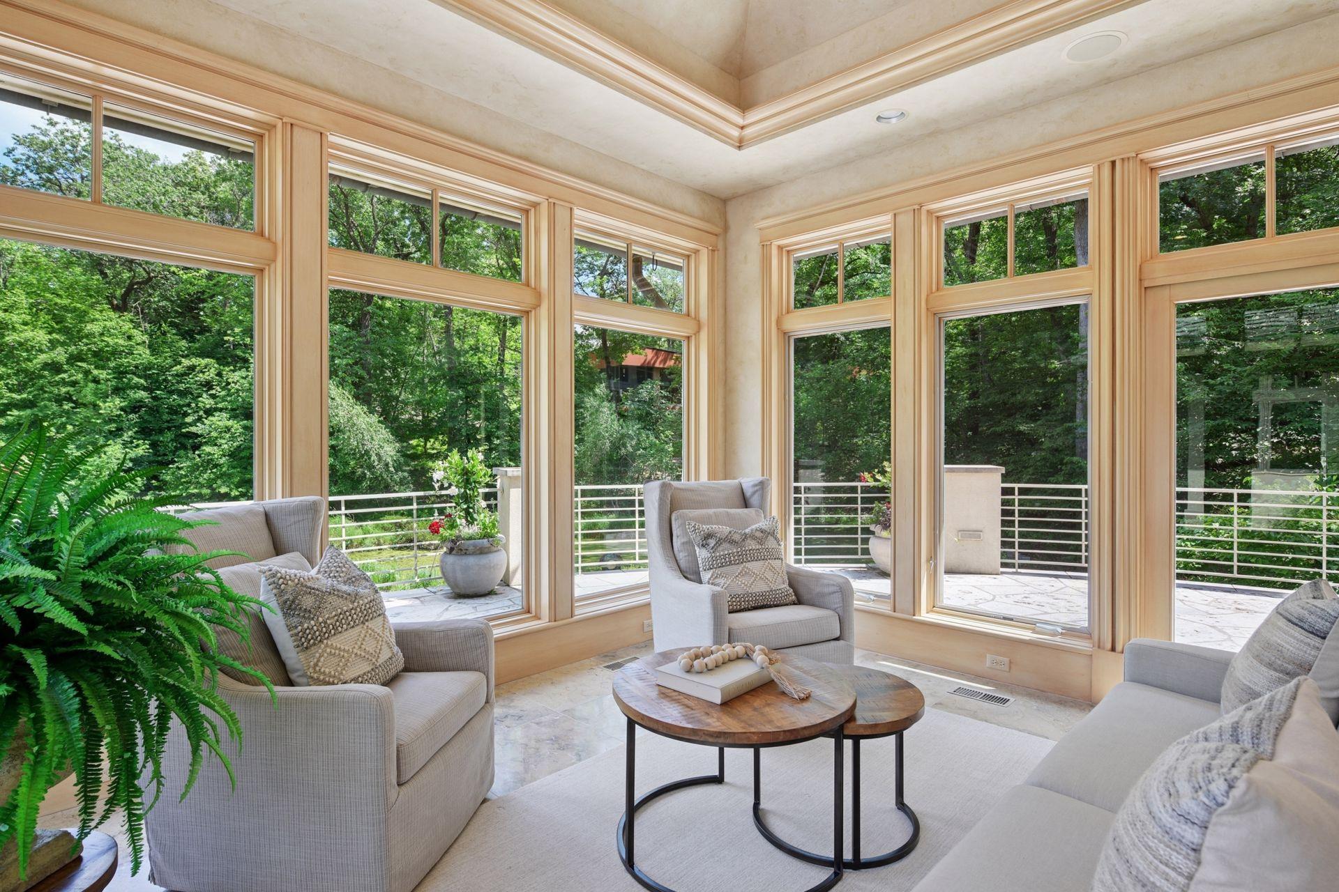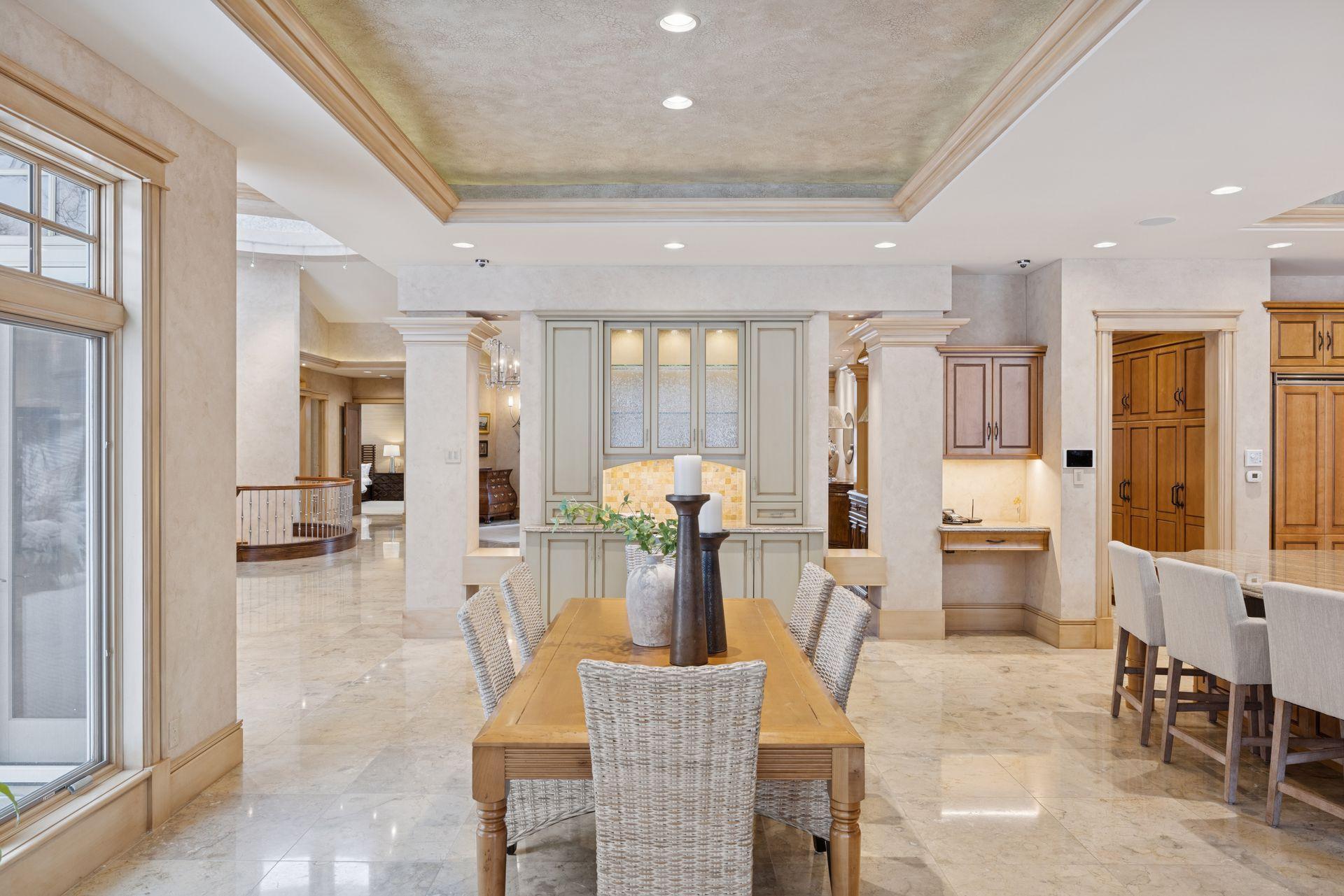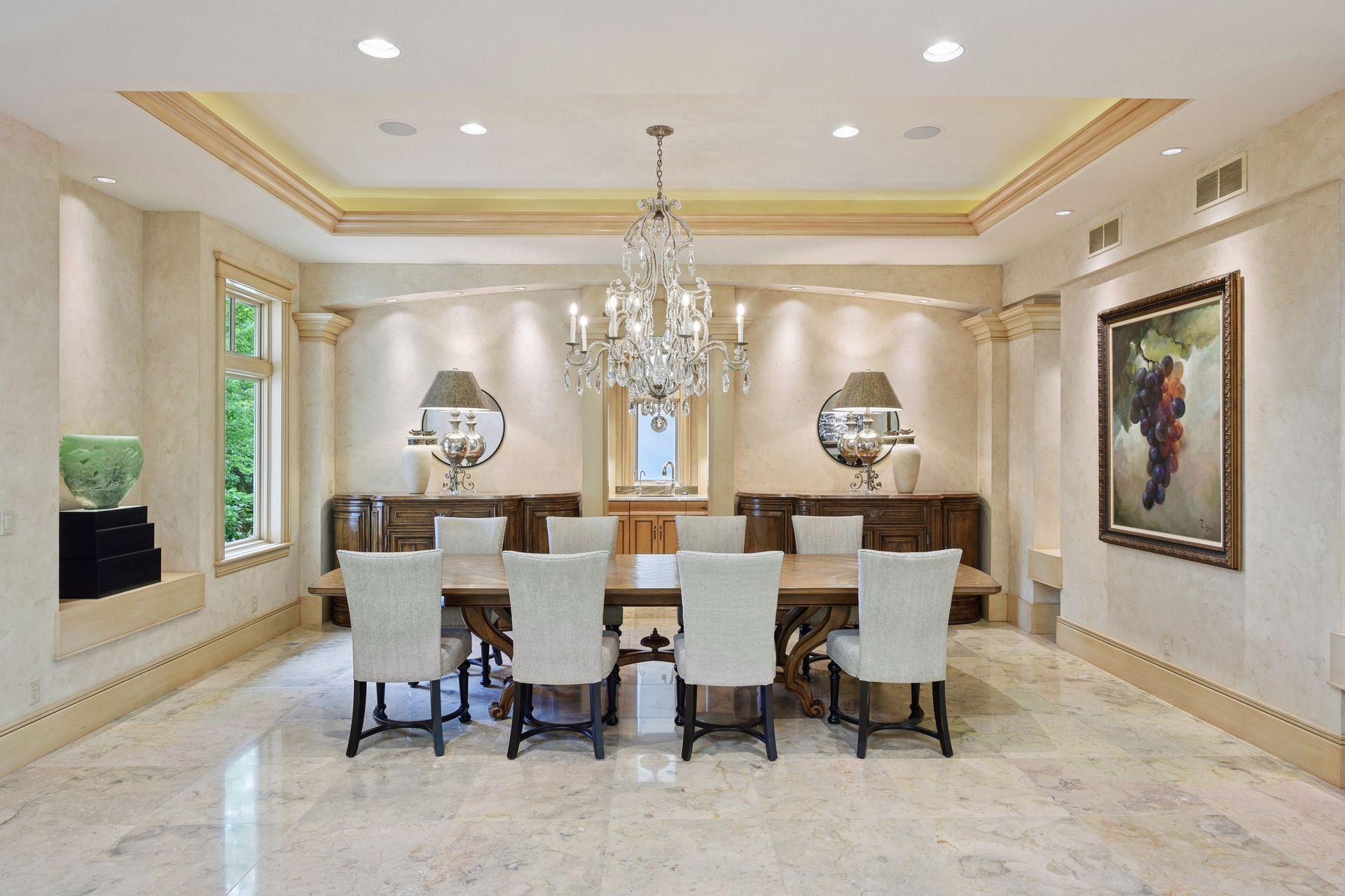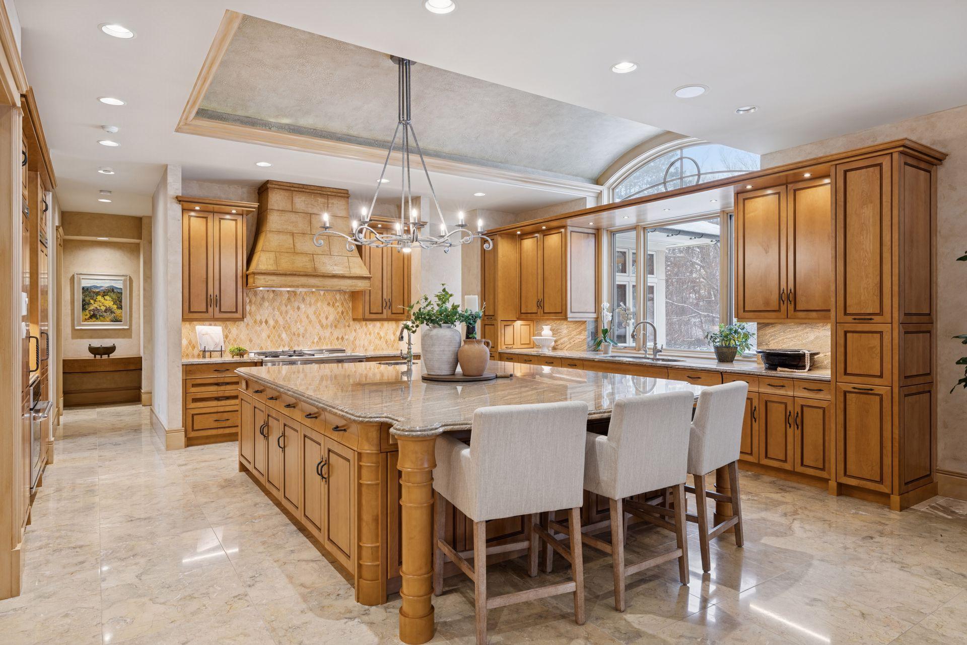 Welcome to a truly remarkable custom-built residence, beautifully nestled on a secluded 4.60 acre lot in the heart of Minnetonka. Surrounded by mature trees and overlooking a peaceful pond, this home offers the rare combination of natural privacy, refined elegance, and premier craftsmanship. A heated paver driveway and grand double-door entry set the tone as you step into a breathtaking foyer flooded with natural light from a dramatic glass cupola and many oversized windows overlooking the private yard and pond. The formal dining room dazzles with a crystal chandelier, while the chef’s kitchen impresses with top-of-the-line appliances and an extraordinary 20' x 21' island, seamlessly connected to the butler’s pantry for effortless entertaining. The inviting living room features vaulted ceilings, exposed beams, a cozy fireplace, and expansive windows that capture the scenic landscape. A richly finished library with custom bookcases and hardwood floors adds warmth and elegance, complemented by a conveniently located main-level office. The luxurious Primary Suite offers tranquil views, refined ceiling treatments, and two expansive walk-in closets with center islands. A private dressing room leads to the spa-like bath showcasing dual vanities, two water closets, a soaking tub, and a double-headed walk-in shower. The elevator and dual staircases provide easy access to an impressive lower level, featuring two additional bedroom suites, (fourth bedroom suite is framed out and ready for your finishes) a large flex room with rough-in plumbing for a potential fourth suite, and an entertainment area complete with projection TV and a full bar that can double as a second kitchen. Wellness amenities abound with an exercise room, hot tub, sauna, and steam shower—your own private retreat. Enhanced by an auto generator, forced-air heating, and extensive radiant in-floor heat, this home delivers unmatched comfort and peace of mind. A rare opportunity to experience elevated living in one of Minnetonka’s most coveted locations.