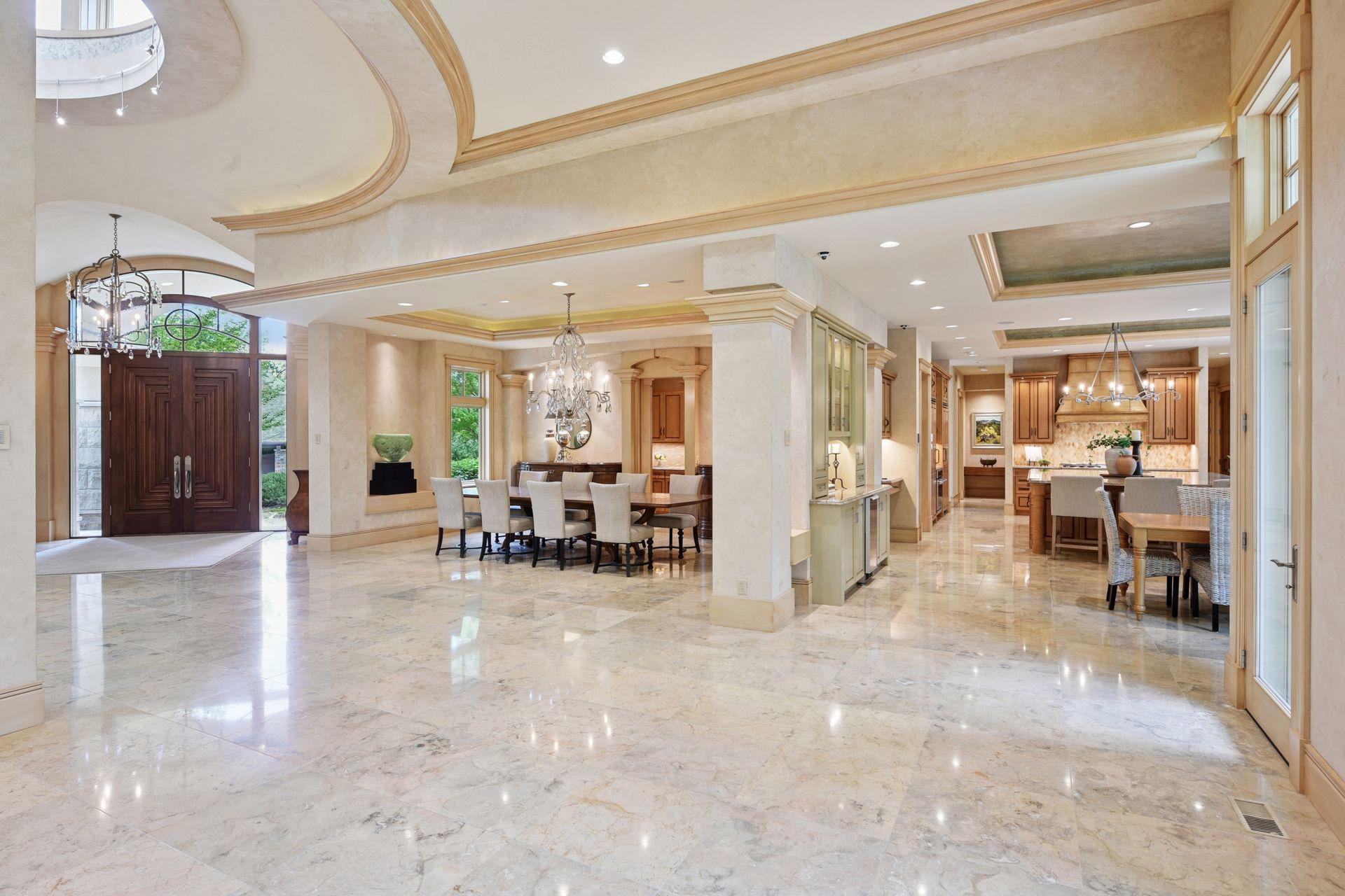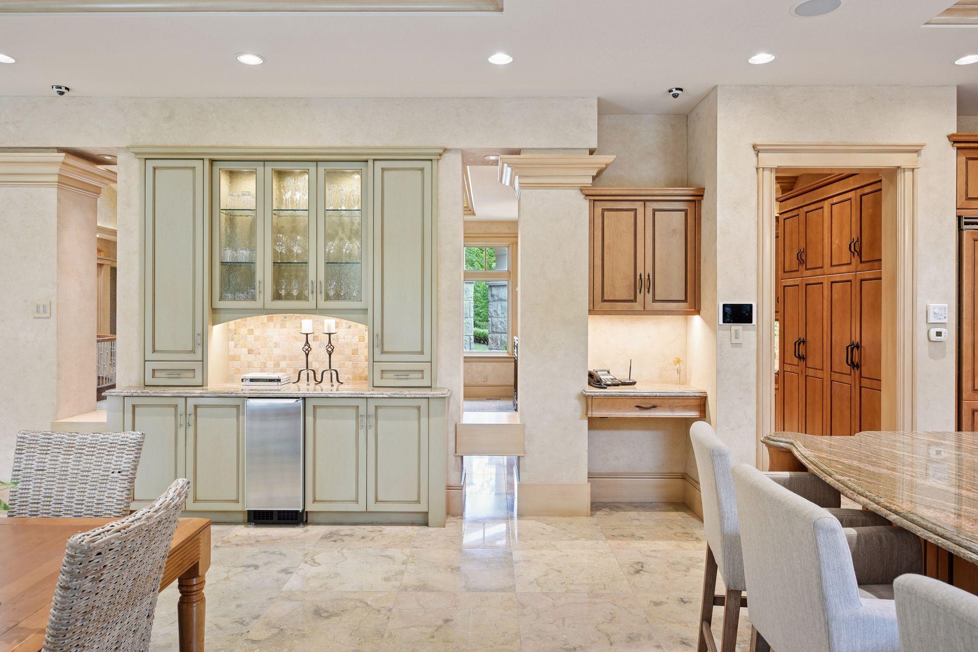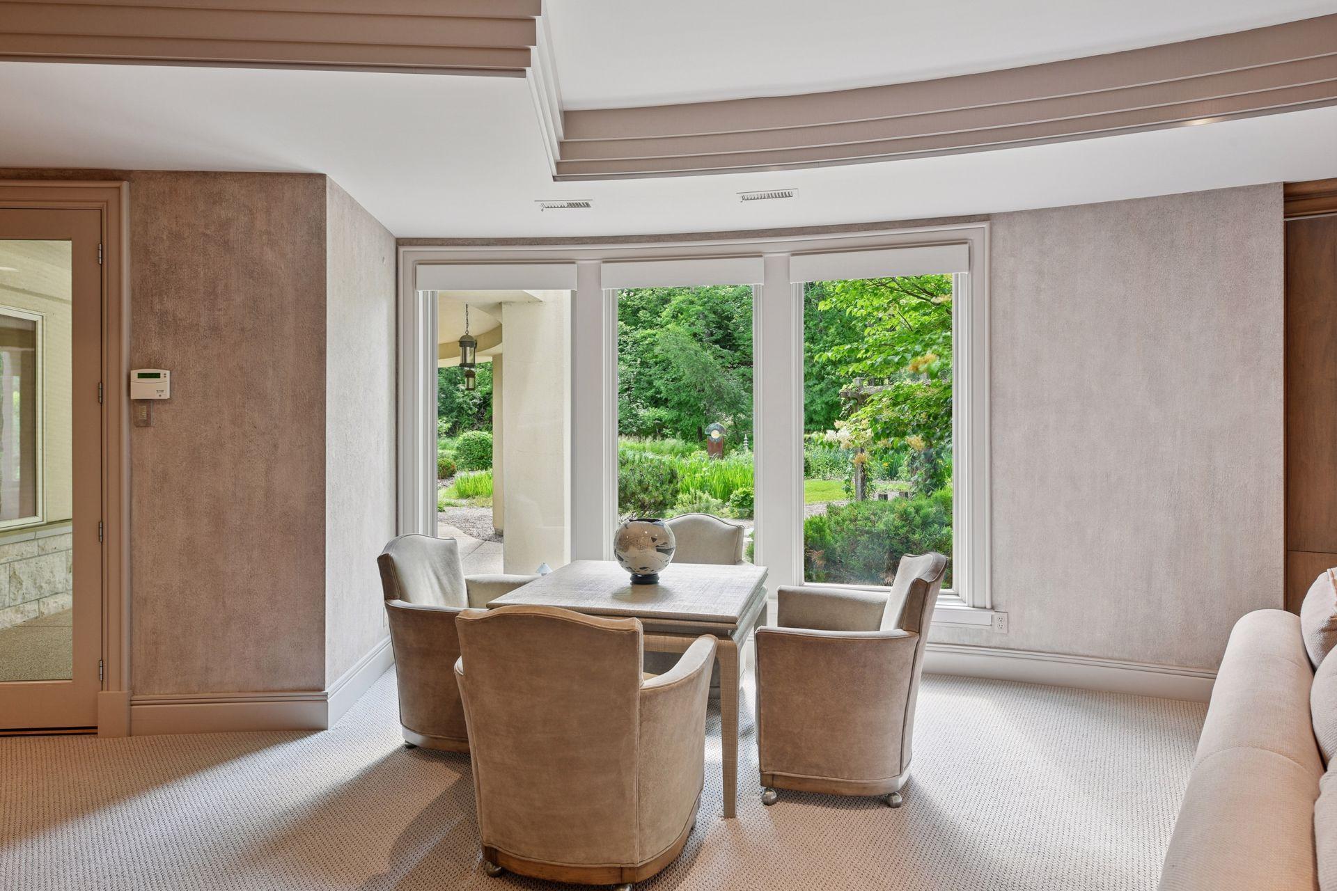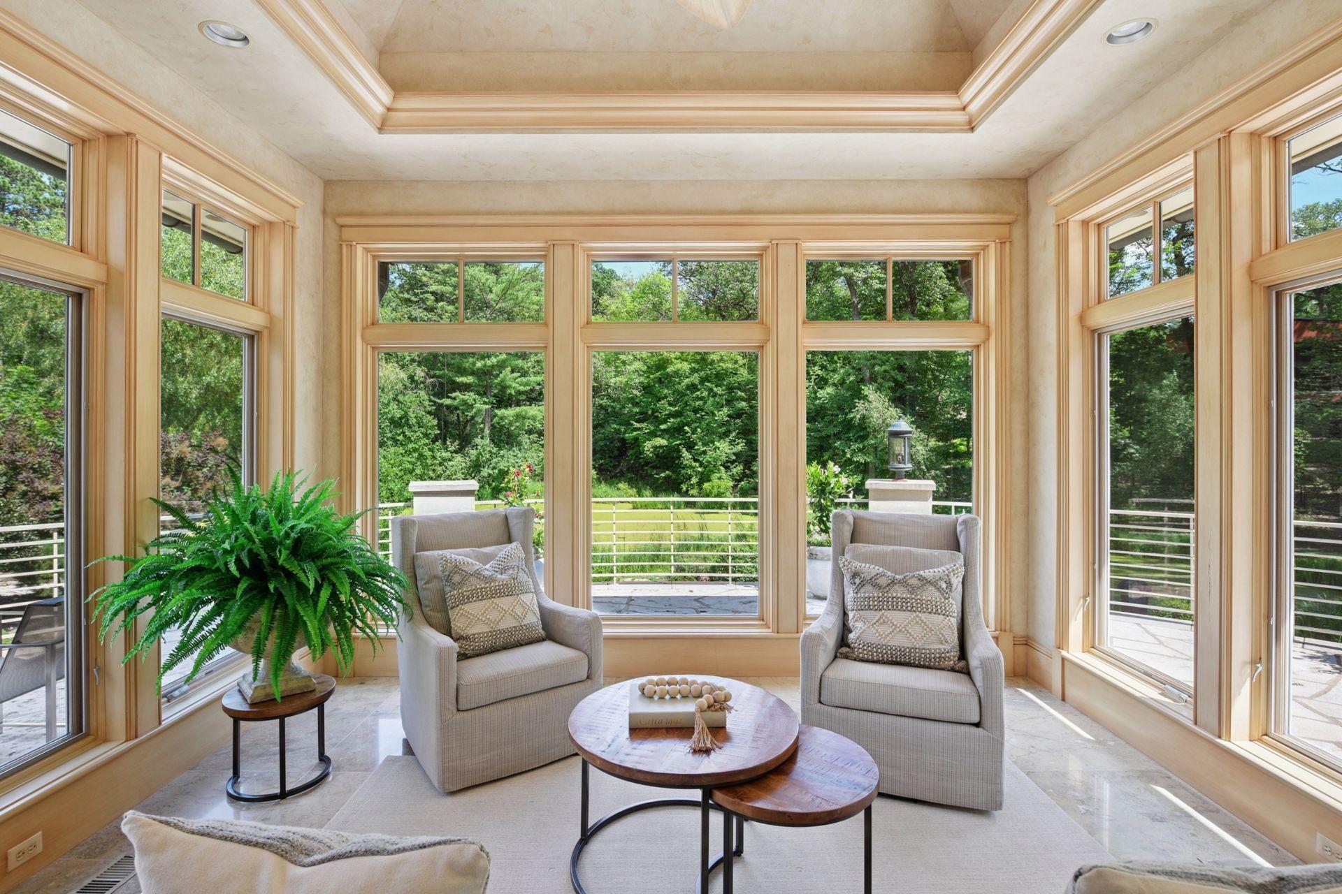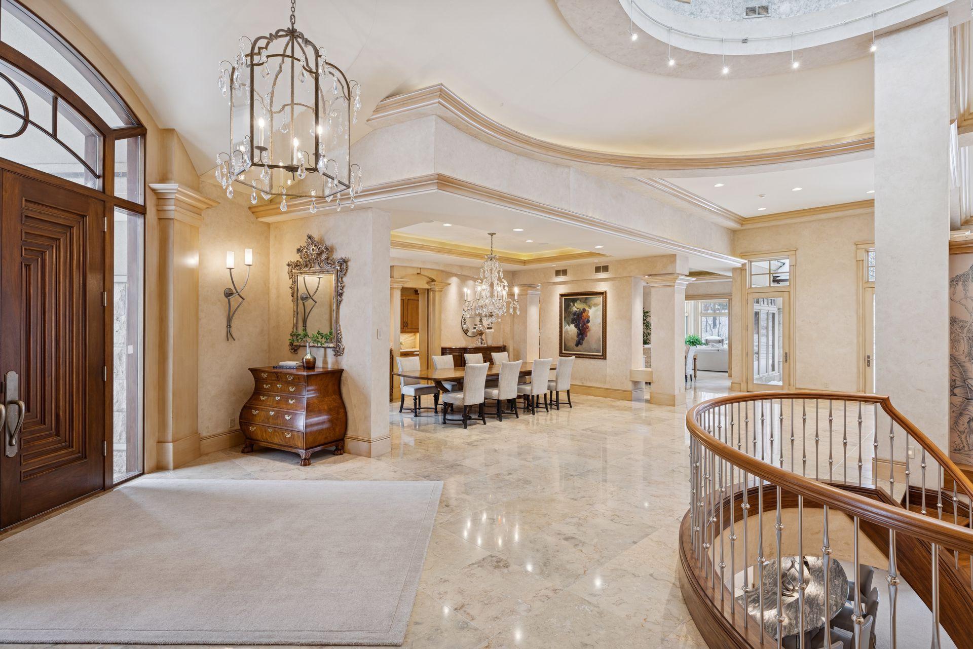 Welcome to a truly remarkable custom-built residence, beautifully nestled on a secluded 4.60 acre lot in the heart of Minnetonka. Surrounded by mature trees and overlooking a peaceful pond, this home offers the rare combination of natural privacy, refined elegance, and premier craftsmanship. A heated paver driveway and grand double-door entry set the tone as you step into a breathtaking foyer flooded with natural light from a dramatic glass cupola and many oversized windows overlooking the private yard and pond. The formal dining room dazzles with a crystal chandelier, while the chef’s kitchen impresses with top-of-the-line appliances and an extraordinary 20' x 21' island, seamlessly connected to the butler’s pantry for effortless entertaining. The inviting living room features vaulted ceilings, exposed beams, a cozy fireplace, and expansive windows that capture the scenic landscape. A richly finished library with custom bookcases and hardwood floors adds warmth and elegance, complemented by a conveniently located main-level office. The luxurious Primary Suite offers tranquil views, refined ceiling treatments, and two expansive walk-in closets with center islands. A private dressing room leads to the spa-like bath showcasing dual vanities, two water closets, a soaking tub, and a double-headed walk-in shower. The elevator and dual staircases provide easy access to an impressive lower level, featuring two additional bedroom suites, (fourth bedroom suite is framed out and ready for your finishes) a large flex room with rough-in plumbing for a potential fourth suite, and an entertainment area complete with projection TV and a full bar that can double as a second kitchen. Wellness amenities abound with an exercise room, hot tub, sauna, and steam shower—your own private retreat. Enhanced by an auto generator, forced-air heating, and extensive radiant in-floor heat, this home delivers unmatched comfort and peace of mind. A rare opportunity to experience elevated living in one of Minnetonka’s most coveted locations.