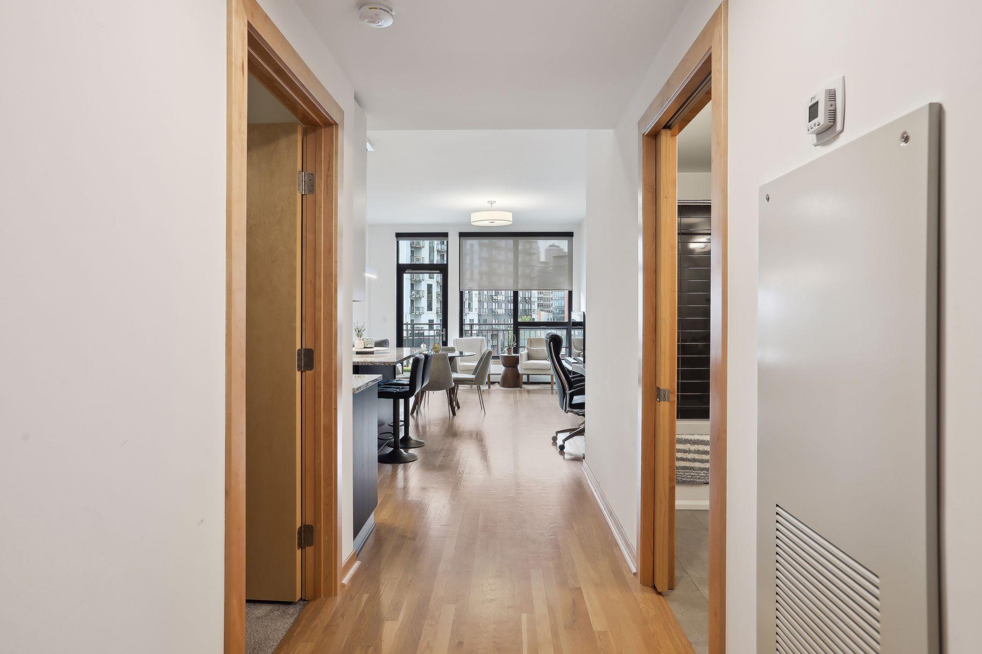 Welcome home to modern style and amazing convenience in the Mill District. Live just steps from Gold Medal Park, The Guthrie, and the parks & trails along the riverfront. Unit features real hardwood floors, granite countertops, upgraded modern cabinetry, stainless steel appliances, backsplash, custom blinds and closet organizers, large balcony facing downtown with gas grill hook-up and more! Building amenities include 24/7 front desk staff, swimming pool, hot tub, patios, fire pits, grills, lawn bowling, community room with a catering kitchen, game room with golf simulator, fitness center, separate weight room, and playground. Included with rent: 2-car indoor heated tandem parking stall, storage unit, water/sewer/trash, gas, basic cable & internet. Tenant responsible for electricity. Application fee: $78 per adult occupant, Admin Fee: $150, HOA Moving fee: $700, HOA Occupancy fee: $175 per lease. Security Deposit is one month's rent.