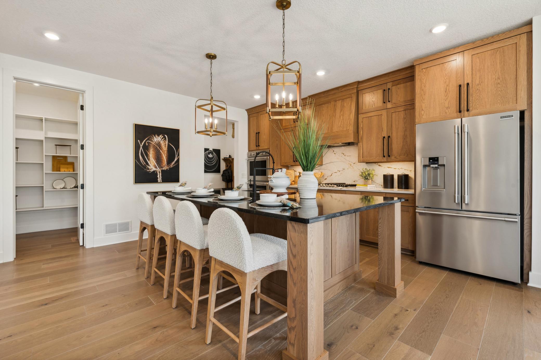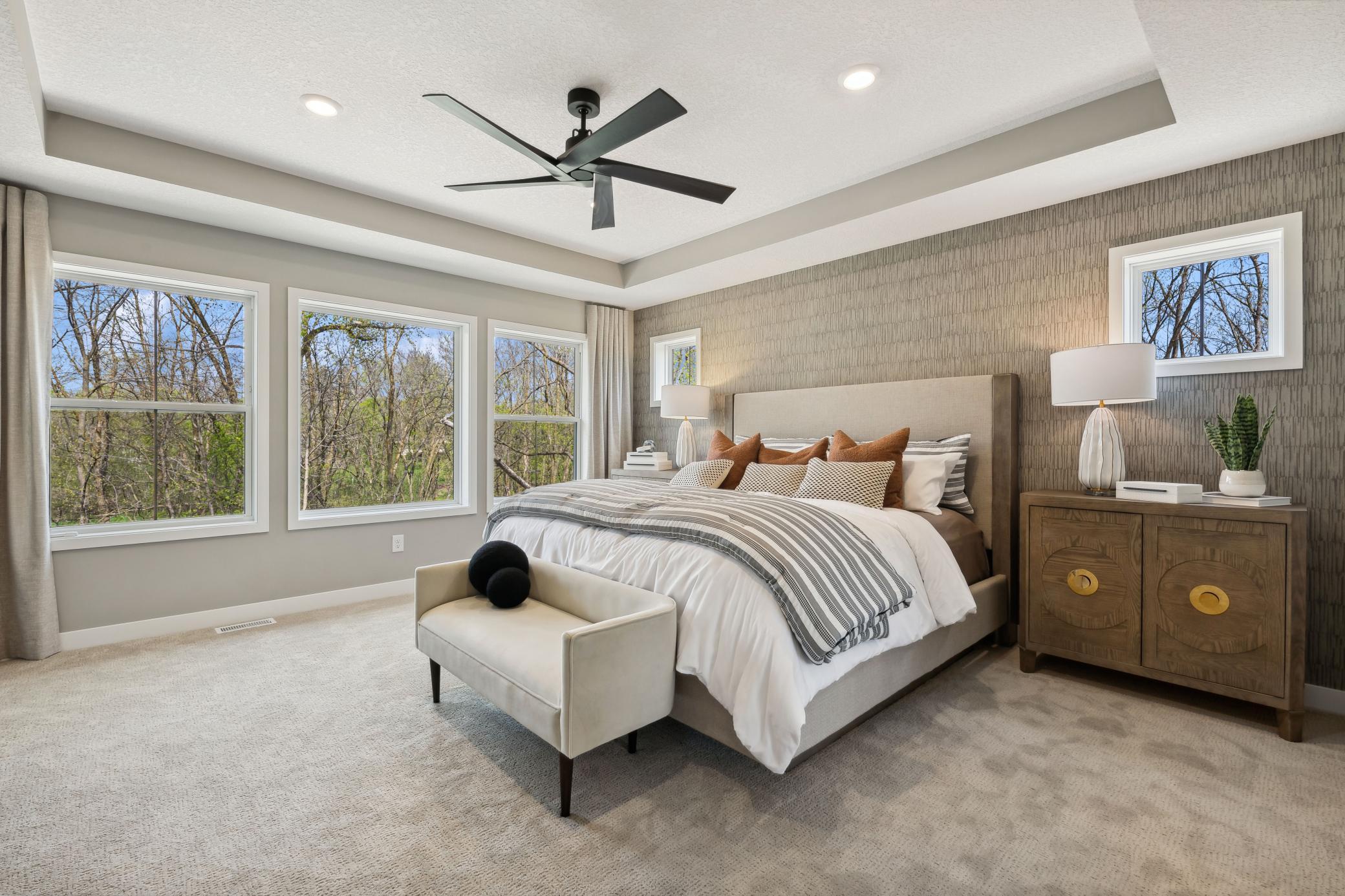 This home is under construction and available for an August closing! The Prestige plans are offered on some of the most desirable homesites in the Wayzata School District, featuring private yards and serene nature views. The spacious Sonoma plan boasts 4 bedrooms, 4.5 baths, a finished basement, and a 4-car garage, providing room for every lifestyle need. The bright, open main level seamlessly connects the kitchen, dining, and family areas, anchored by a cozy gas fireplace that adds warmth and charm. This level also includes a sequestered study, offering versatility for a home office, relaxing moments, or guests. Upstairs, the luxurious primary suite features a spa-like bath with a tiled shower, separate soaking tub, and walk-in closet. The upstairs also offers three secondary bedrooms, each with a walk-in closet, and a convenient laundry room. The finished lookout lower level expands entertainment space even further, complete with a recreation room featuring an electric fireplace, a wet bar, an additional 3/4 bath, and a sport court. Nestled in the scenic Tavera community, residents enjoy lush greenery, walking paths, and all the benefits of the top-rated Wayzata School District.