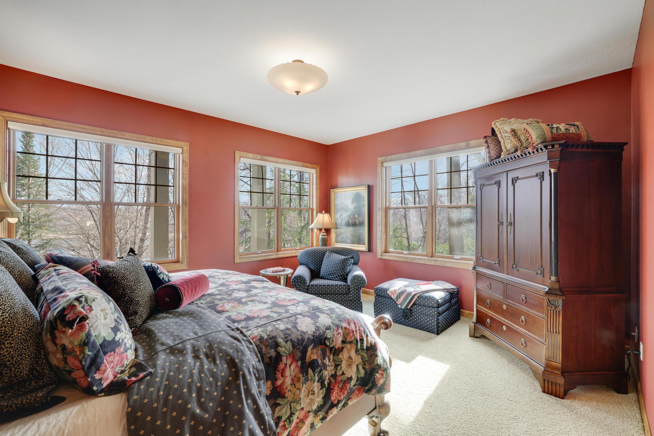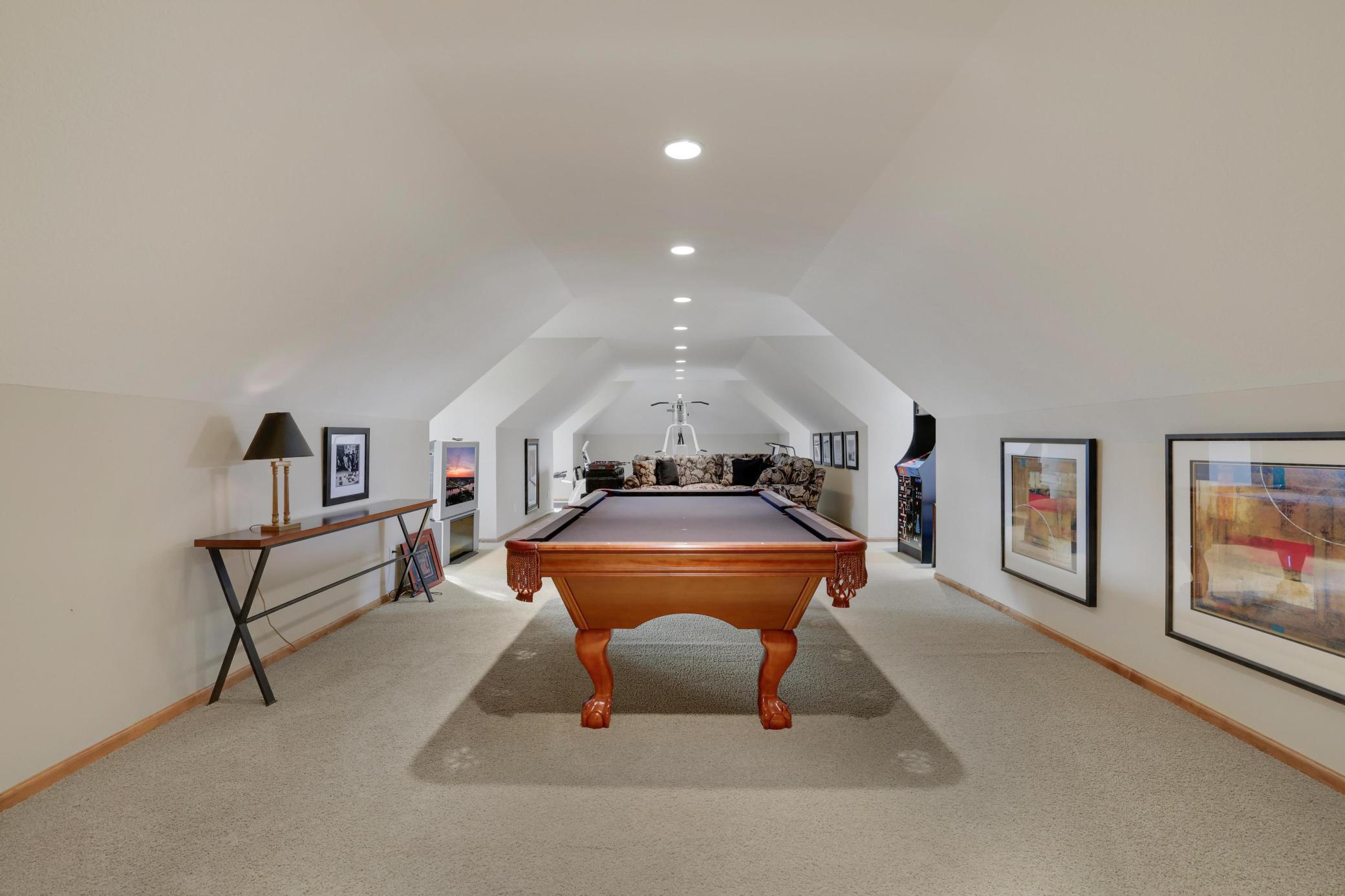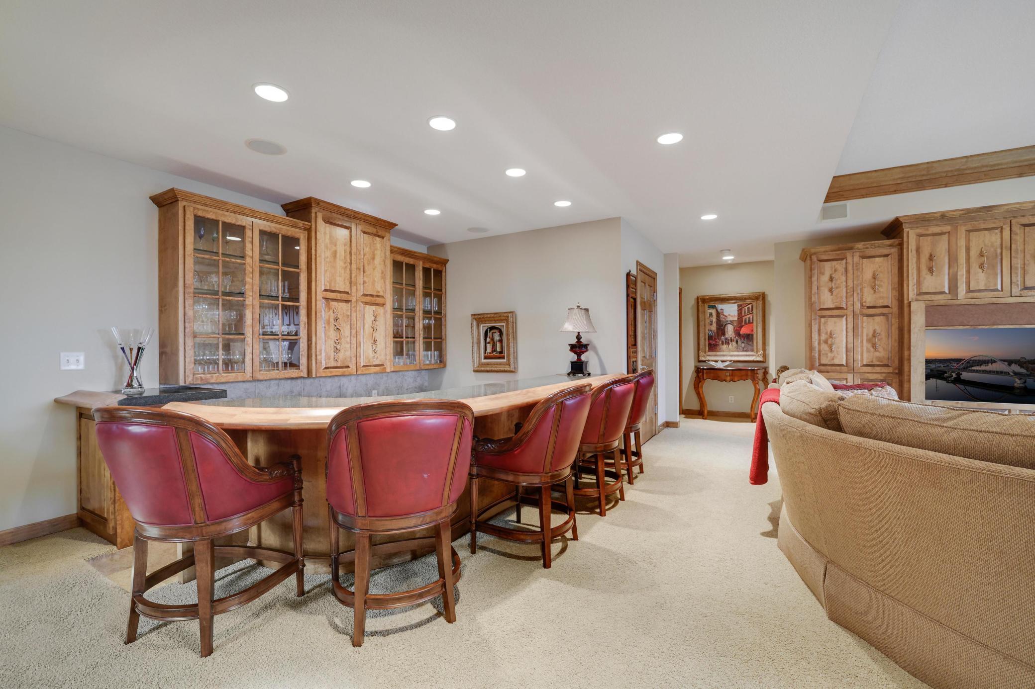 Magnificent walkout Robert Mason built home on private culdesac with over 1 acre of Red Rock Lake. Grand open concept with cherry wood floors, walls of windows impeccable detailing. 10 foot ceilings with tray accents throughout rooms. Gourmet kitchen with Thermadore & Asko appliances, a pasta bar & sink, and builtin eating area with door to deck with gas to a grill. Primary bedroom with double walkin closets with safe, primary bath with whirlpool, double head shower & two vanities. Staircase to Eagle's nest library with 270 degree views of lake. Main floor laundry, adjacent mud room with doggy shower and access to 3 car heated garage with epoxy floors. Above the garage is a fantastic game room. Walkout lower level has entertaining area with Sonos Surround Sound, sunken wet bar, wall wine cooler, and space around the fireplace to enjoy your technology. 3 great bedrooms and 2 baths (one a Jack & Jill). Take time to walk the trails to the lake, check out the Koi pond and patio, multilple decks and fenced in yard.This house has been meticously maintained by owner.