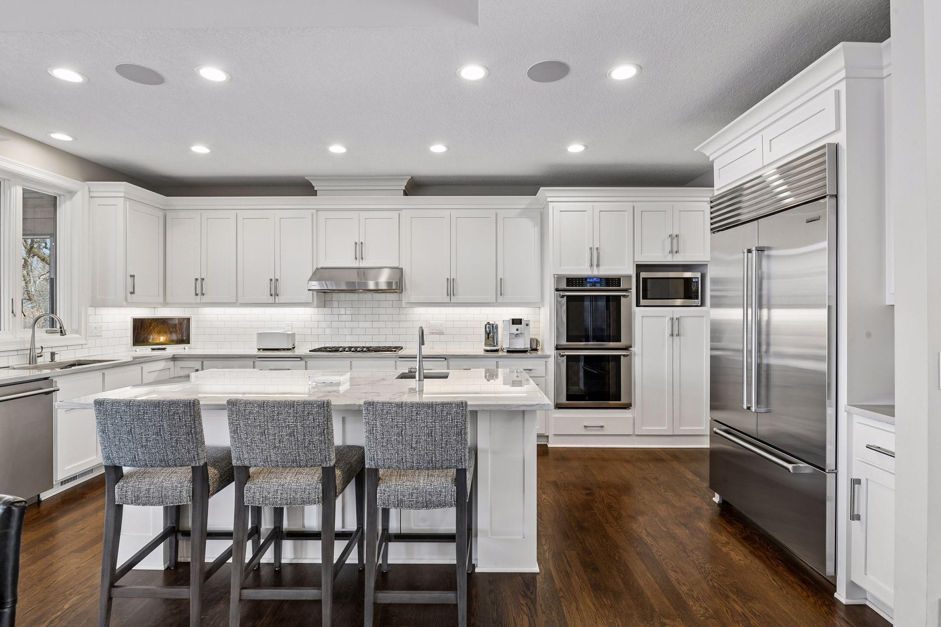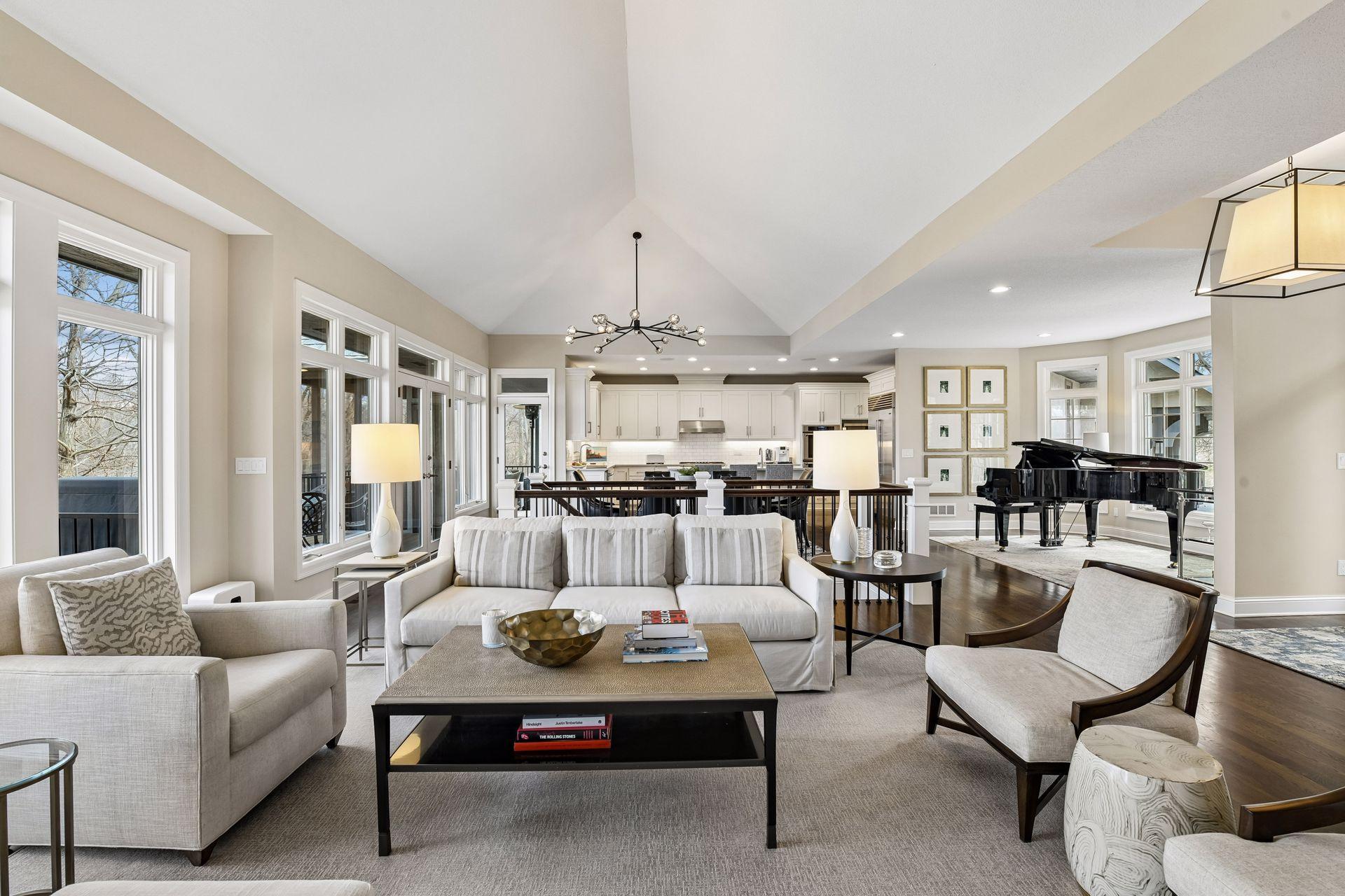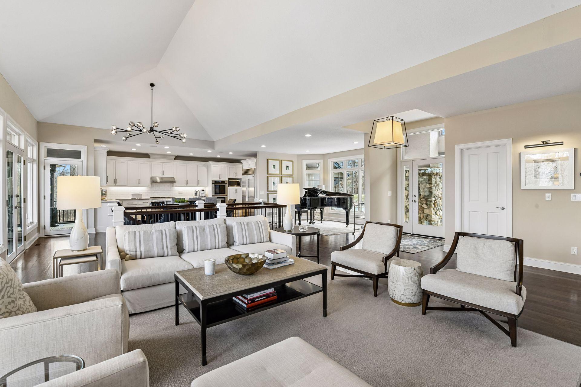Private wooded drive leads to this exquisite home in Orono. Sited on 5+ acres, this property offers privacy and a serene, natural setting. Completely updated and designed for modern, main-level living, this home features an open floor plan with walls of windows that bring the outdoors in. Crisp white interior complemented by vaulted ceilings, hardwood floors and an open gathering space. Stunning center-island kitchen steps out to three-season porch and deck overlooking the lawn and surrounding woods. Primary suite with private lounge, walk-in closet and luxury bath. Walkout lower-level features family room with fireplace, game area, three additional bedrooms with adjacent baths and spacious storage room currently used as an exercise space. Numerous improvements includ new roof, extensive landscaping, updated kitchen, new mechanical systems, heated garage and much more. Tucked at the end of a quiet cul-de-sac, this property offers the perfect blend of privacy and convenience—just minutes to restaurants, shopping, Bederwood Park, Luce Line Trail, Lake Minnetonka, and the Orono School Campus.